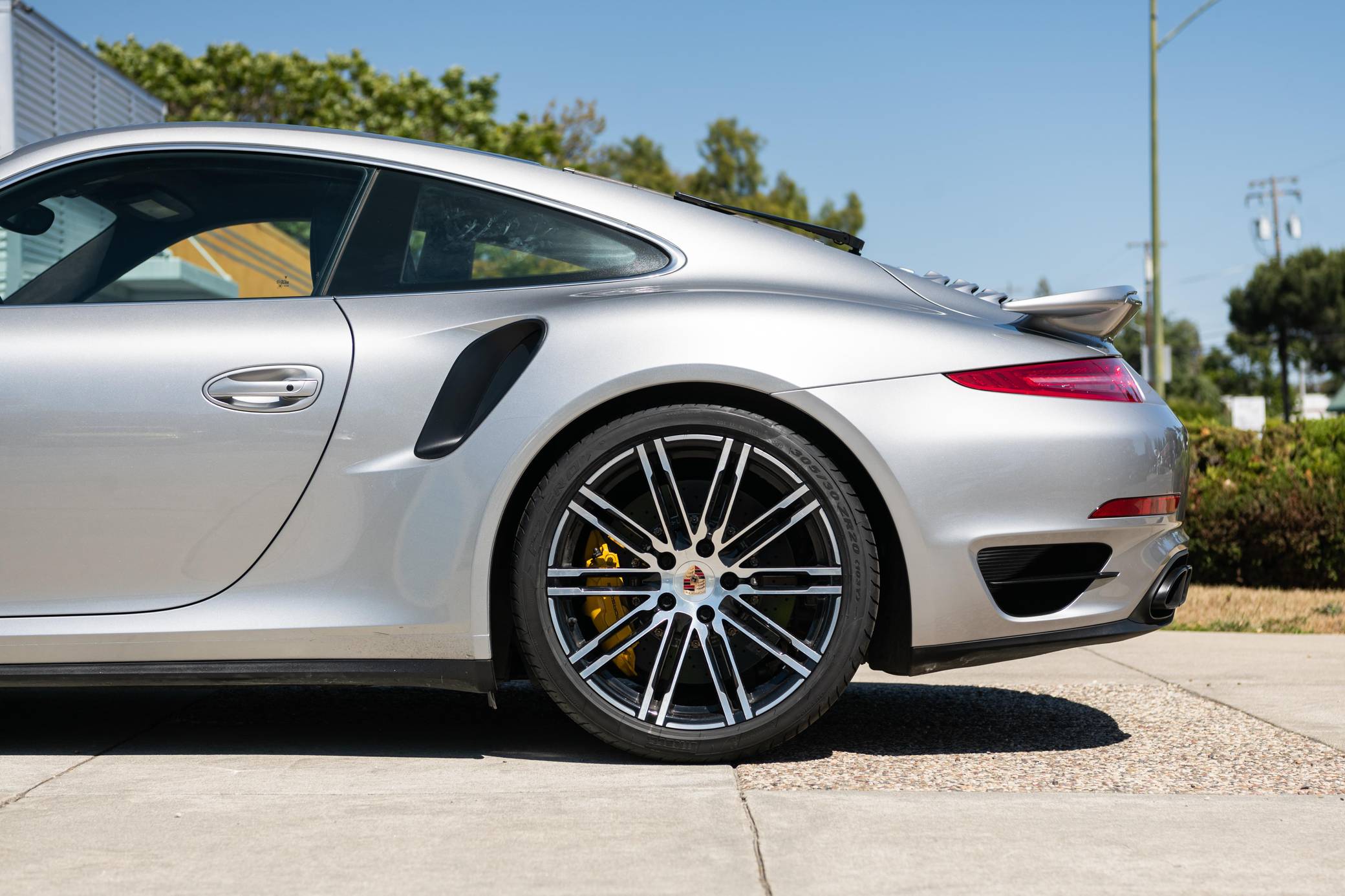 THIS. . . is a 2014 Porsche 911 Turbo S, finished in GT Silver Metallic with an Espresso interior. This coupe's odometer displays about 38,600 miles. Highly optioned, this 911 is equipped with the Sport Chrono Package, 20-inch wheels, the Power Steering Plus system, black "911 Turbo S" decals on the doors, leather upholstery, contrast stitching, heated, ventilated, and power-adjustable front Adaptive Sport Seats Plus, carbon fiber trim on the gear selector, and a Burmester sound system, among other features. This car's build sheet is pictured in the gallery, and the only modification reported by the seller is a hardwired ESCORT radar detector. Porsche introduced the 991-generation 911 for the 2012 model year. It arrived as an evolution of its predecessor, the 997, which received more powerful engines across the board and a more luxurious interior. It was longer, lower, and wider but it relied extensively on aluminum to avoid putting on weight. The top of the line model Turbo S could sprint from 0-to-60 mph in just 2. 9 seconds, yet had a luxurious interior and all-wheel drive, making it a highly usable everyday sports car. Power comes from a 3. 8-liter twin-turbocharged flat-6, rated at 560 horsepower and 516 lb-ft of torque. It spins the four wheels via a 7-speed automatic transmission.
