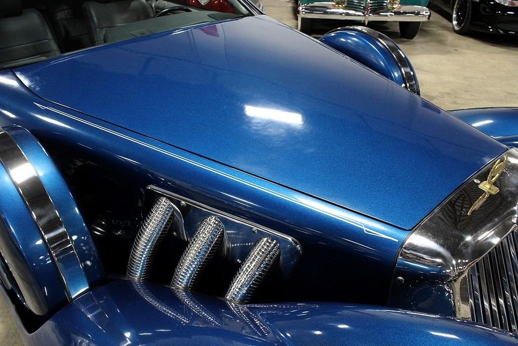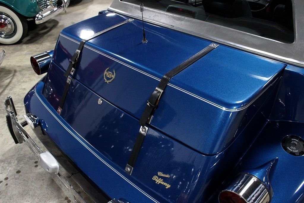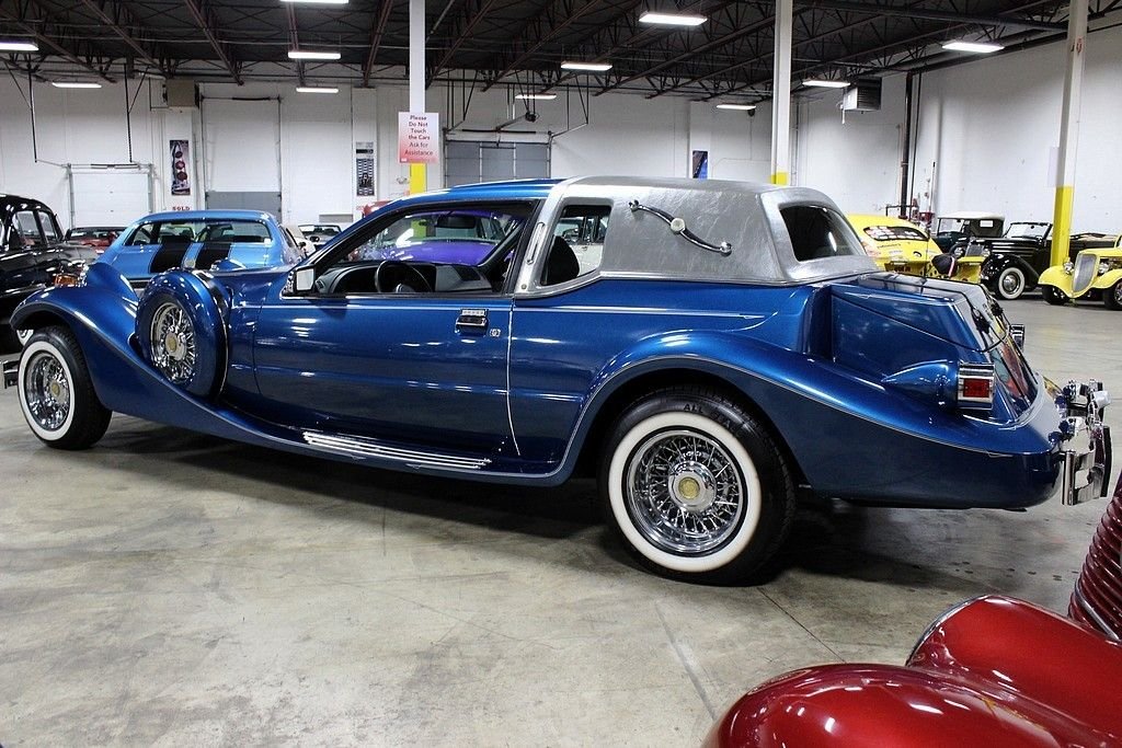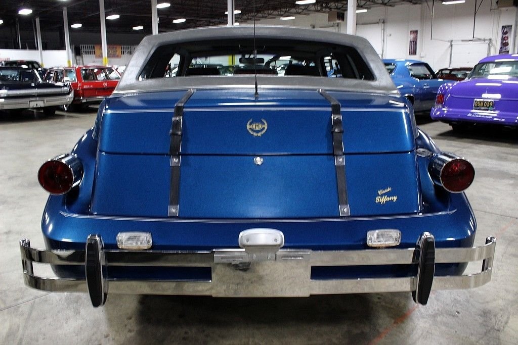 Classic Motor Carriages produced the Tiffany Classic through the 80's and wrapped up their production of this model in 1988. These cars were among the most technically advanced vehicles available in the market back then and came equipped with an amazing list of standard features including power sunroofs, carriage opera roofs, fog lamps, and automatic dimming rearview mirrors. The designers who were tasked with designing this vehicle spent extra time on ensuring that the vehicle had amazing curb appeal with a comfortable interior as well. Although some of these were sold as kits to complete yourself, this was also a true manufactured vehicle in most instances giving it that extra guarantee of quality and consistency one would expect from such a luxurious looking vehicle. From the top to the bottom, inside and out, this model has more personality and luxurious looks than any car being built today! The exterior is in excellent shape with its beautiful dark blue exterior, the chrome spoke wheels, opera roof with opera lights and even comes with a tint to the windows and pinstripes to emphasize its curves. The trunk has leather straps, the wide white tires look great, the trumpet horns and chrome grill all go towards setting this one over the top. The interior is just as sharp with its plush grey leather seating, the seats are also power capable, the mirrors have vanity lights to them and with a digital dash and premium sound system, this is as good as it gets from an 80's era car! Mechanically this is a sound vehicle with its multi-port fuel injected 5.0L V8 mated to its rebuilt 4-speed automatic transmission, with only marginal fixes for convenience or cosmetic purposes, this is a great overall ride all things considered!