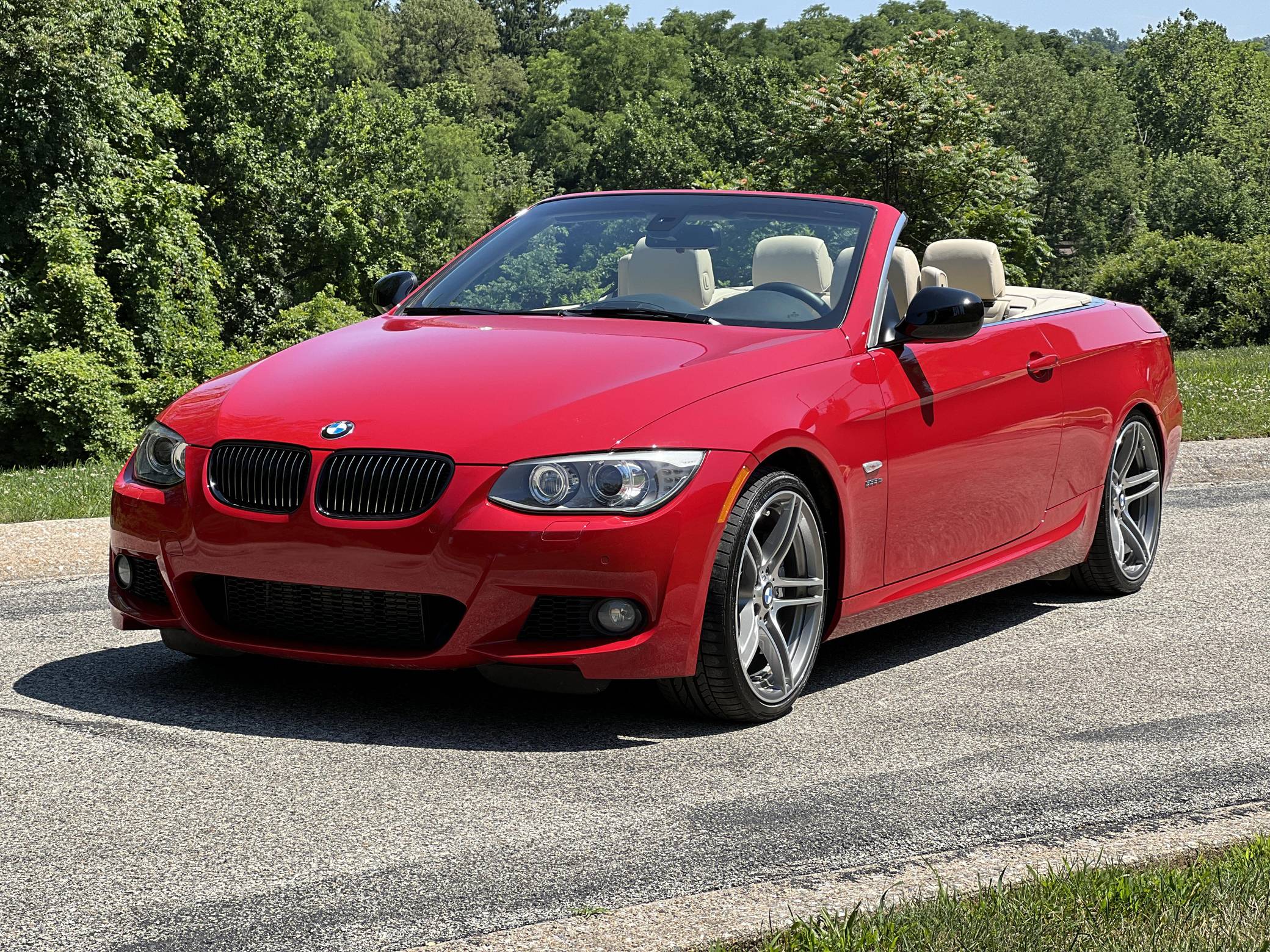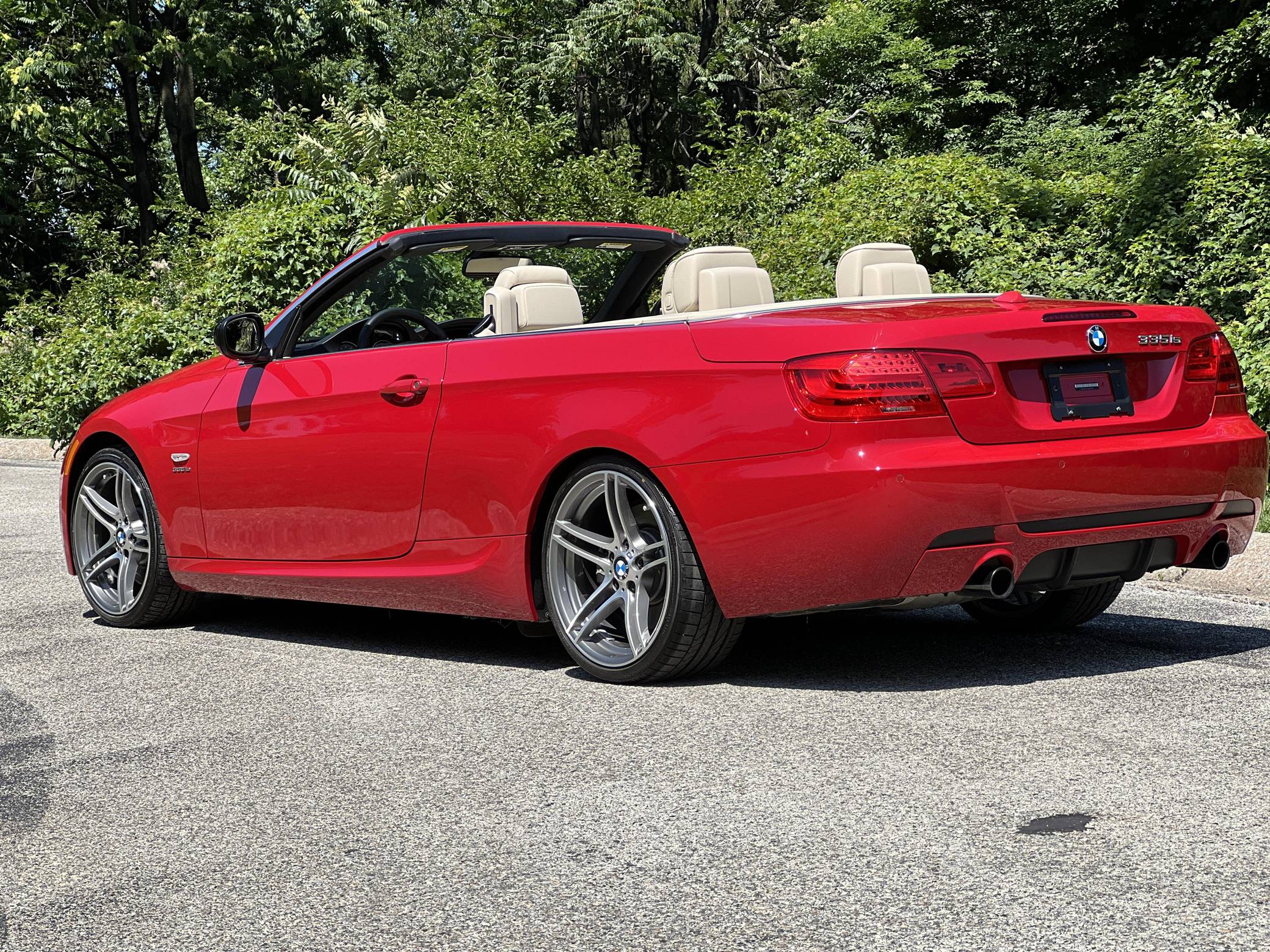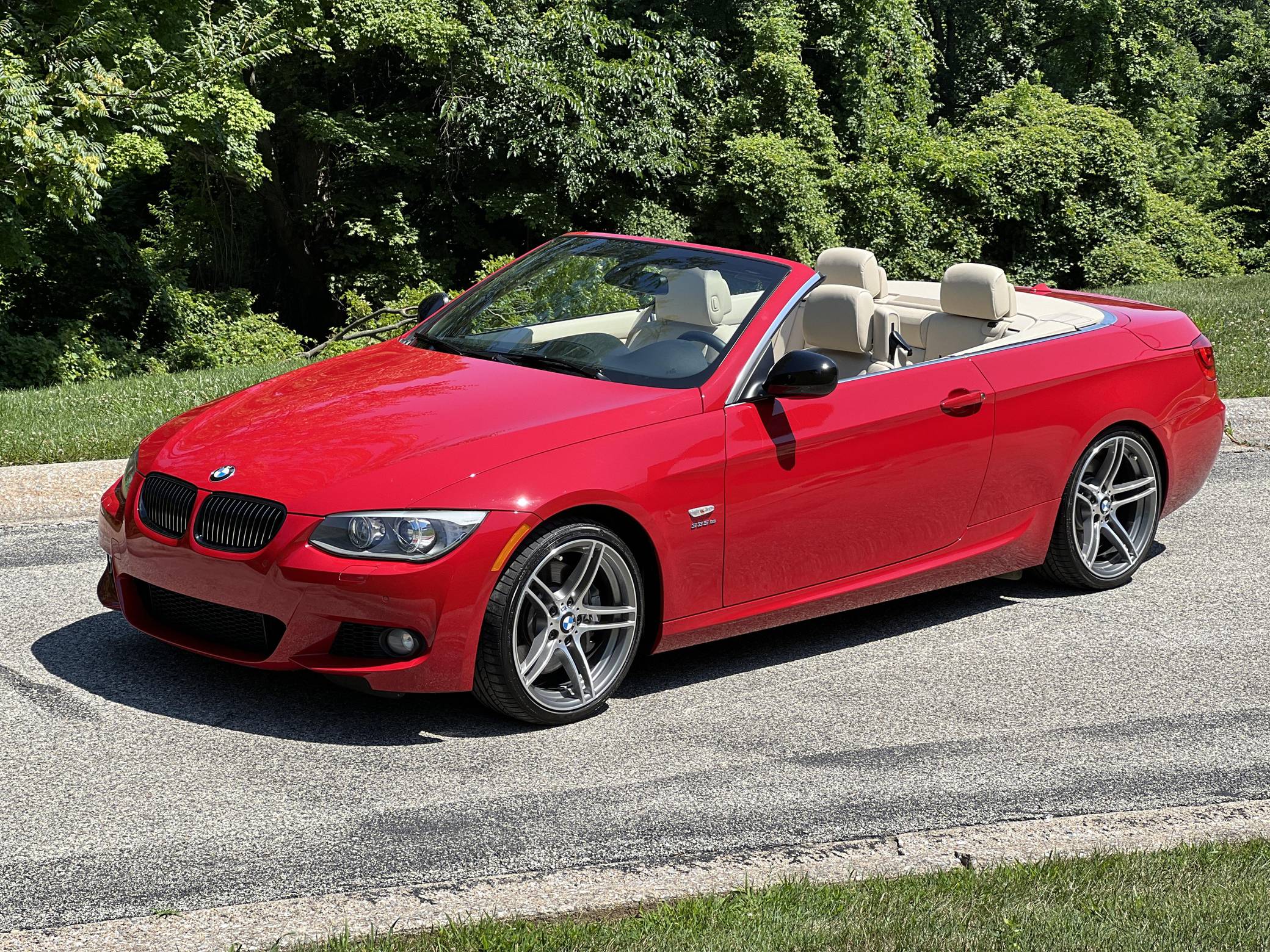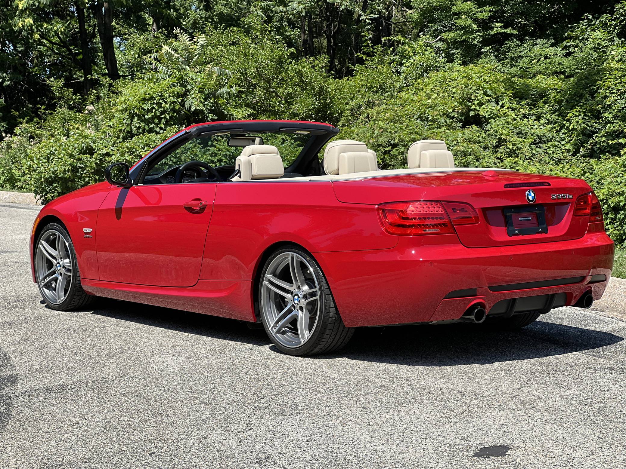 2011 BMW 335is Coupe, finished in Carmine Red with a Cream Beige interior. The odometer on this 335is displays about 15,800 miles. A build sheet is provided in the photo gallery, and a partial list of notable equipment includes 19-inch alloy wheels, M Sport suspension, adaptive xenon headlights, electronically adjustable and heated sport seats, a Harman/Kardon surround sound system, a navigation system, and Park Distance Control (PDC). The seller reports no modifications. The "is" package was added for the 2011 model year to the 3 Series to bridge the gap between the 335i and M3. Upgrades included standard sports seats, an M Sport steering wheel, textured aluminum trim, an M Sport suspension package, and revised engine tuning for more power including a seven-second overboost of up to 370 lb-ft of torque. It also featured an optional dual-clutch gearbox as opposed to the torque-converter automatic found in the standard 335i. Power comes from an “N54” 3. 0-liter turbocharged inline-6, rated at 320 horsepower and 332 lb-ft of torque. Output is sent to the rear wheels through a 7-speed dual-clutch transmission.