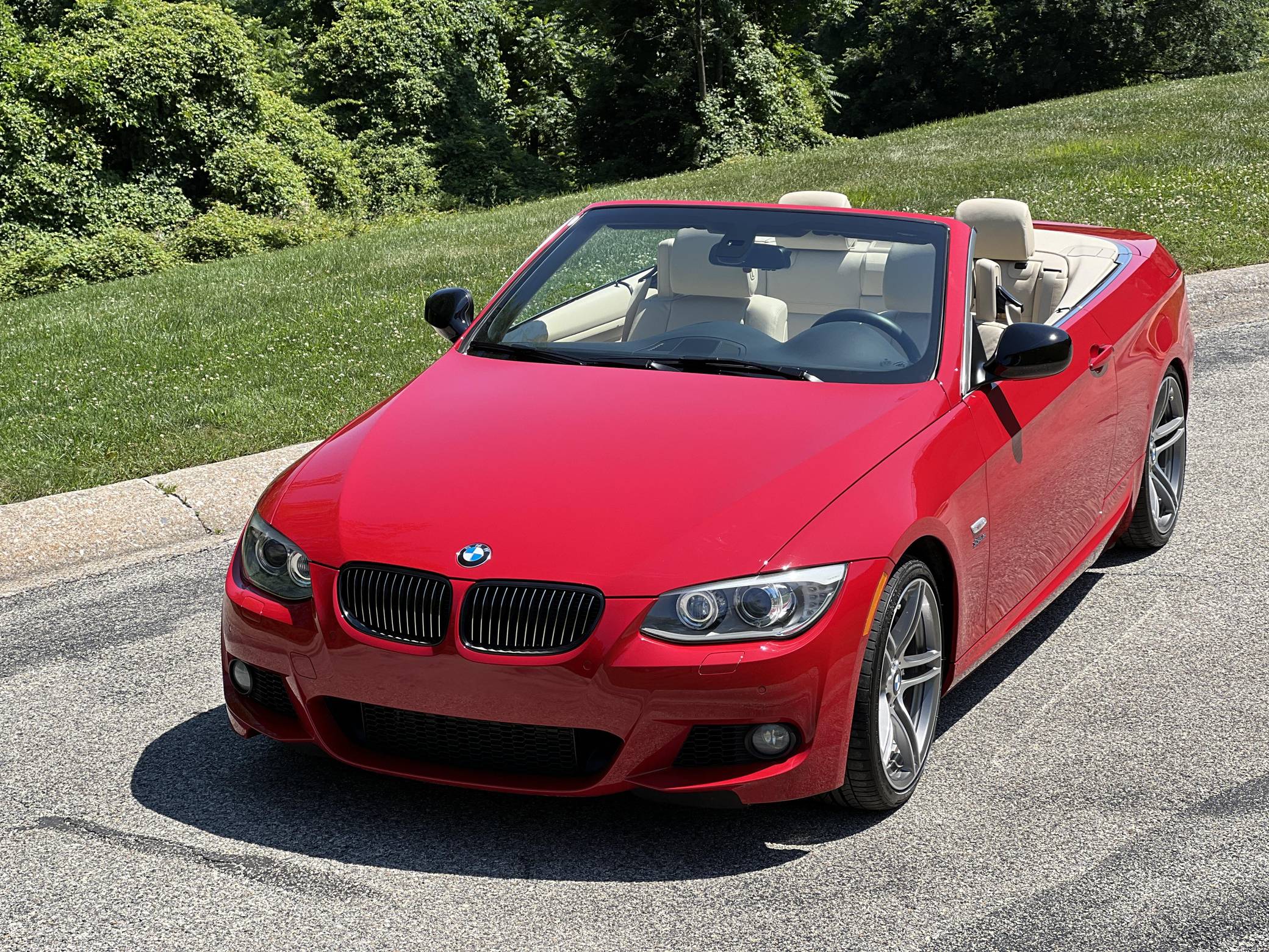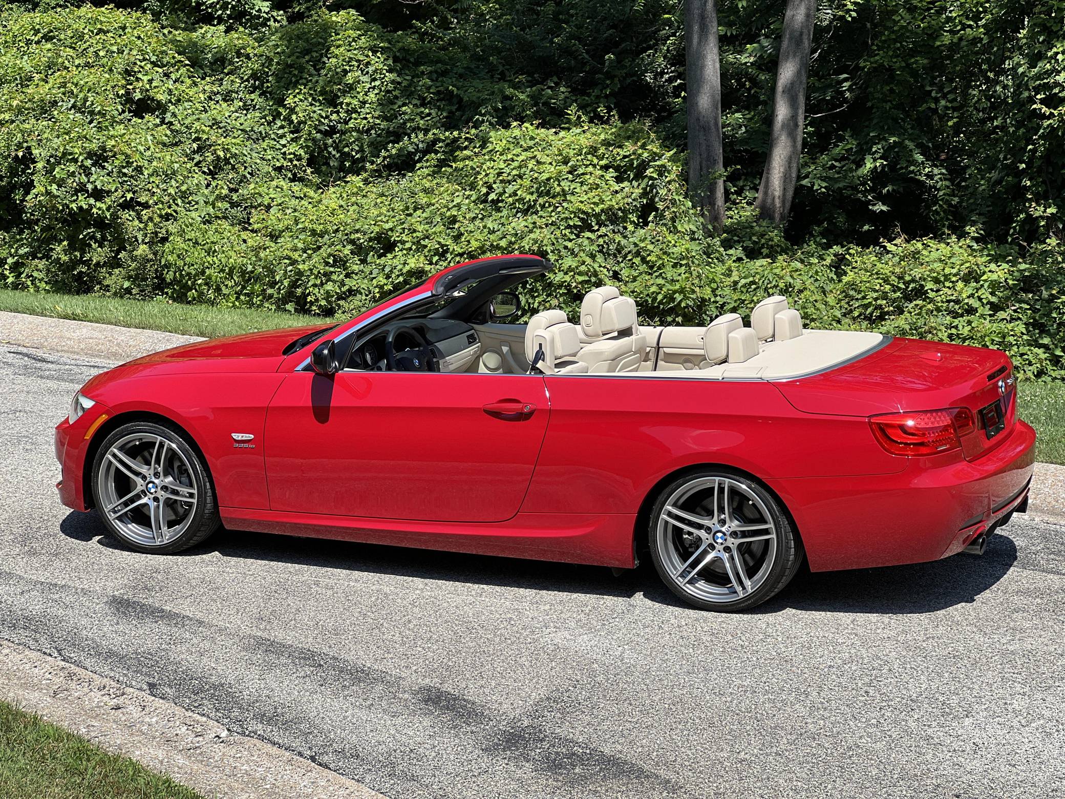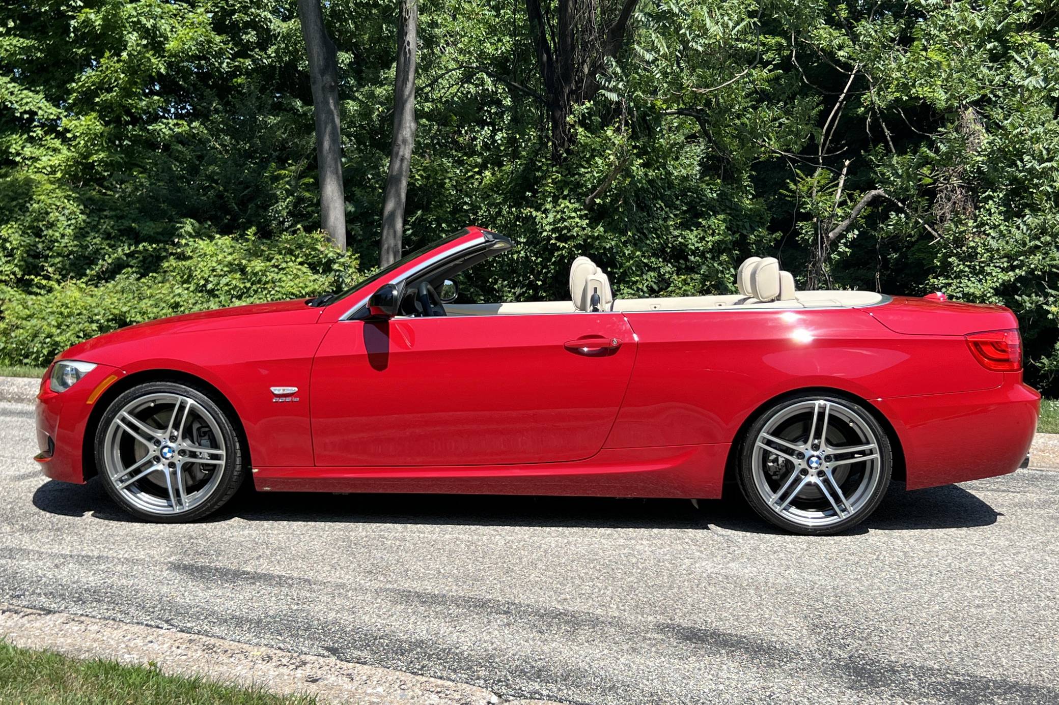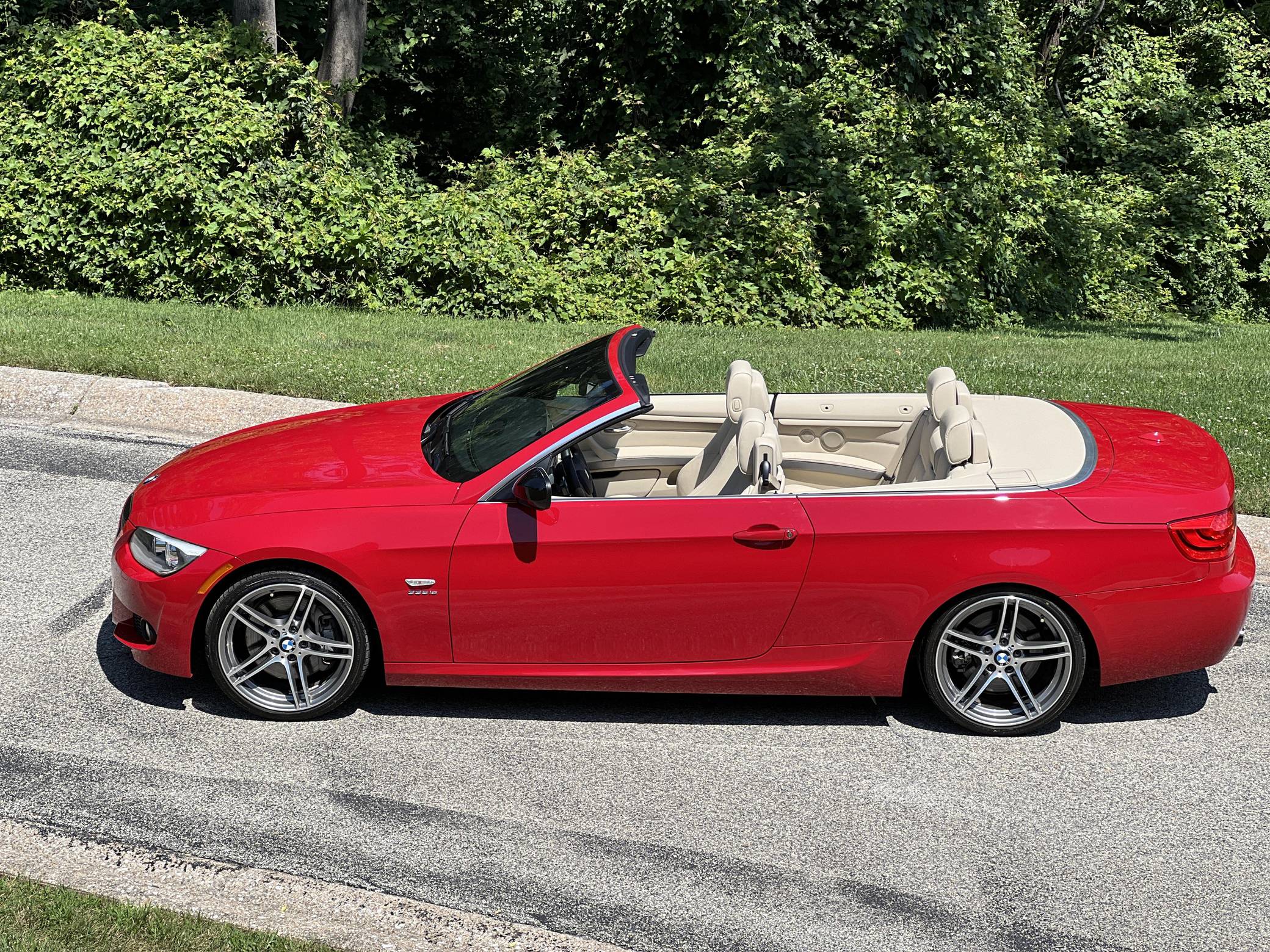 2011 BMW 335is Coupe, finished in Carmine Red with a Cream Beige interior. The odometer on this 335is displays about 15,800 miles. A build sheet is provided in the photo gallery, and a partial list of notable equipment includes 19-inch alloy wheels, M Sport suspension, adaptive xenon headlights, electronically adjustable and heated sport seats, a Harman/Kardon surround sound system, a navigation system, and Park Distance Control (PDC). The seller reports no modifications. The "is" package was added for the 2011 model year to the 3 Series to bridge the gap between the 335i and M3. Upgrades included standard sports seats, an M Sport steering wheel, textured aluminum trim, an M Sport suspension package, and revised engine tuning for more power including a seven-second overboost of up to 370 lb-ft of torque. It also featured an optional dual-clutch gearbox as opposed to the torque-converter automatic found in the standard 335i. Power comes from an “N54” 3. 0-liter turbocharged inline-6, rated at 320 horsepower and 332 lb-ft of torque. Output is sent to the rear wheels through a 7-speed dual-clutch transmission.