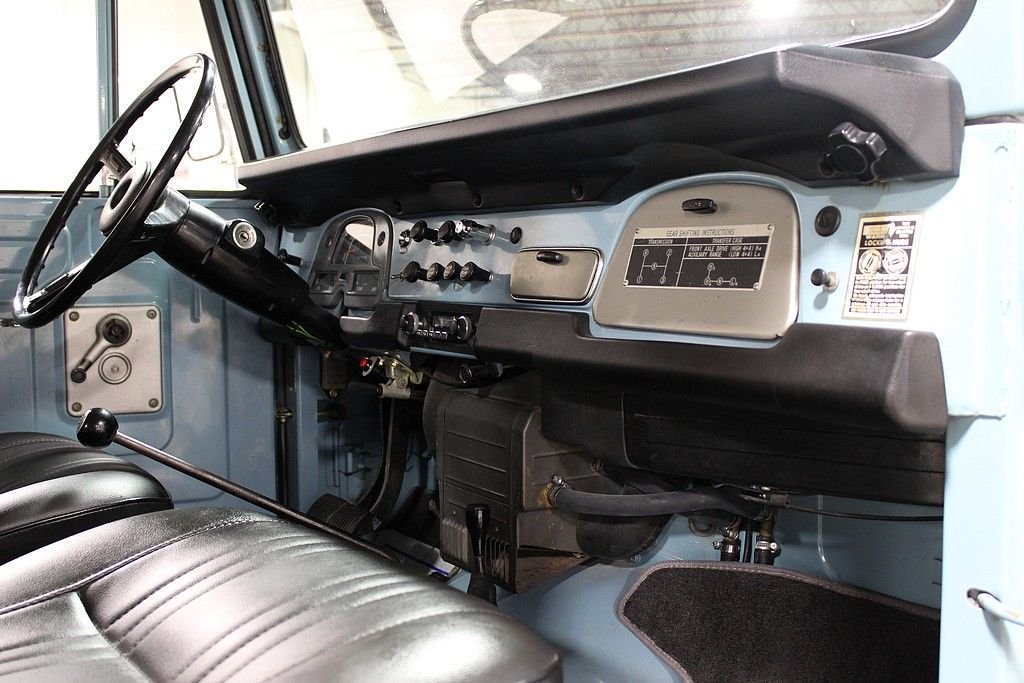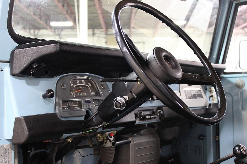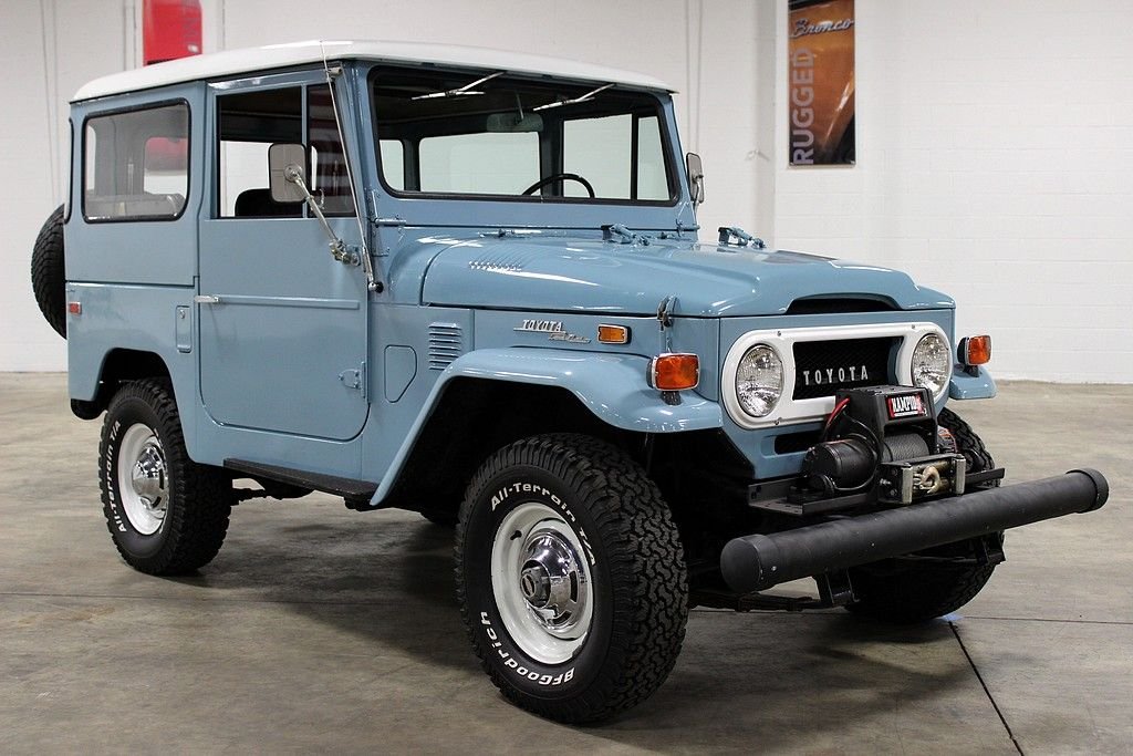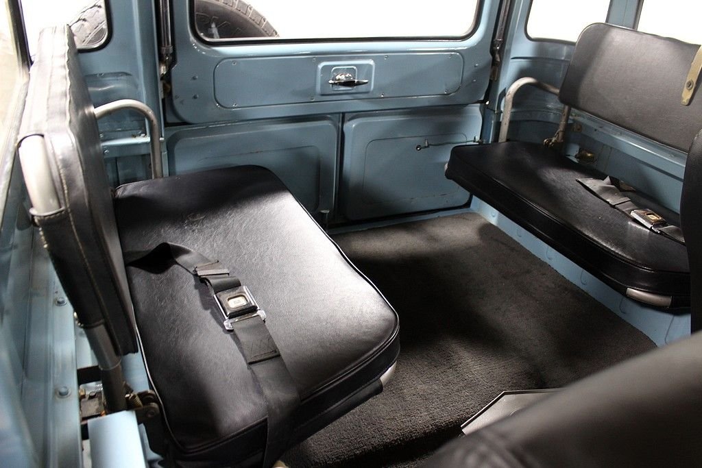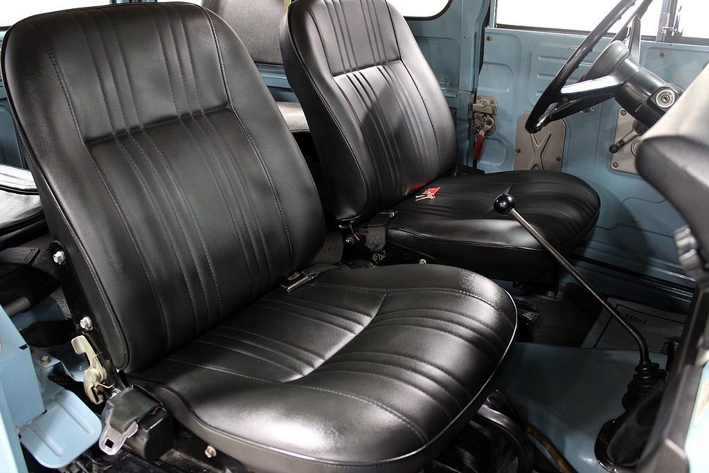 The FJ40 is a model designation for the Toyota Land Cruiser 40 series. Most 40 series Land Cruisers were built as 2-door vehicles with slightly larger dimensions than a Jeep CJ. The Land Cruisers are the longest running model line in Toyota history known for their go anywhere capabilities and rigorous testing. The 1973 Toyota FJ 40 present here is a very tidy, highly original example that has been driven just 88 025 miles since new. The FJ has been received one professional repaint in its original color, Lake Blue. The interior is highly original with the exception of new, professionally sewn, front seat covers. FJ 40's are known for their bullet proof mechanicals and this one is no exception. The 2F engine runs great as this vehicle was driven 150 miles to us when purchased, and its road worthiness is proven. It's off-road worthiness is quite impressive as the sure footed 4WD system engages perfectly and is ready to take you just about anywhere you want to go. Other features include: Champion winch, lower barn door style rear doors making topless use easy, rear heater, the larger fold down rear bench seats, original emblems, Meaty BF Goodrich All Terrains, original owner's manual, etc. Recent services include water pump, carburetor rebuild, wheel cylinders and brake shoes, new exhaust, battery replacement, new bushings, grommets and other rubber pieces etc. Toyota's FJ40 has long been a must have for any 4X4 enthusiast and have recently fallen into favor with auto enthusiasts and collectors around the globe. With the utilitarian nature of the vehicles and the extreme demands many have been subject to, quality, original type examples are few in numbers and restoration figures on these vehicles are high. The 1973 Toyota FJ 40 offered here offers a great opportunity to acquire a high quality, very usable FJ 40 that is accepted in all circles. You are well invested here.