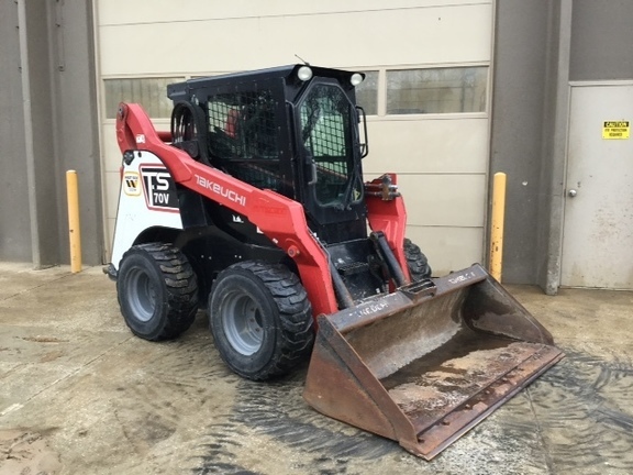 2013 Takeuchi, TS70V, skid_steer_loaders, Operators Station: Cab Enclosure, A/C, EH Controls, Powertrain: 2 Speed, Attachments: Aux Hydraulics, Buckets: General Purpose Bkt, 76" Bucket, Mechanical Suspension Seat, Radio, SPM.