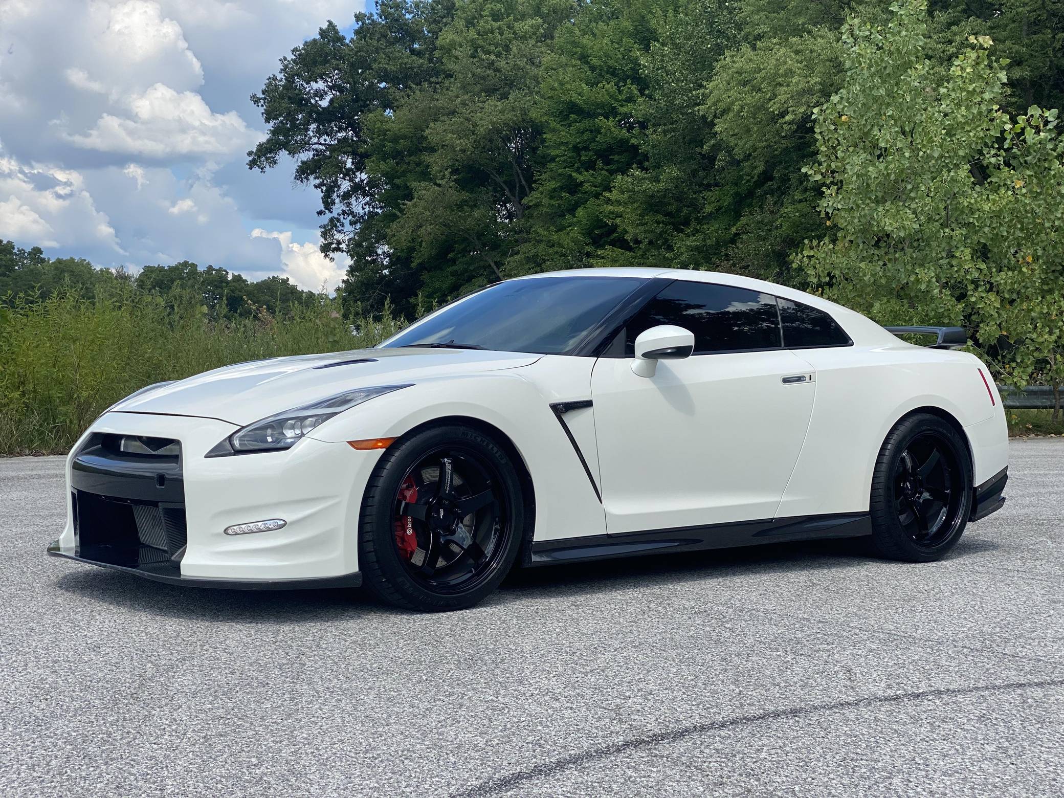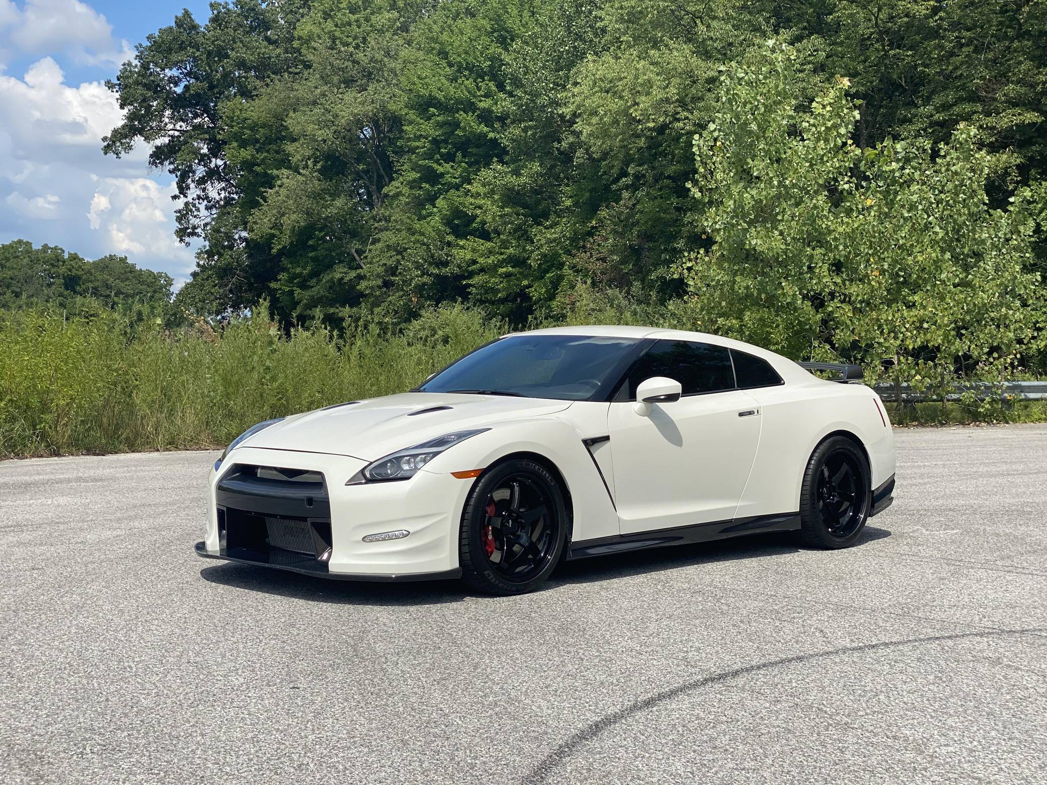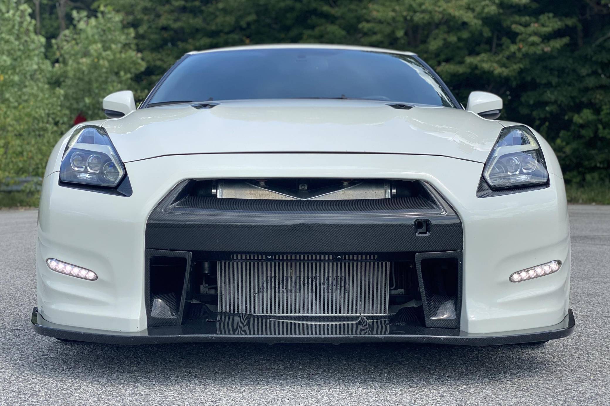 2015 Nissan GT-R, finished in Pearl White with a black interior. The odometer on this GT-R currently displays about 10,500 miles. Modifications to this GT-R are extensive, and the full list is detailed below. include an AMS Performance Alpha 9 Performance Upgrade Package, 20-inch Advan GT wheels, TiAL blow off valves, a GReddy Power Extreme exhaust, Sparco SPX carbon fiber reclining seats, and more listed below. Called "R35" internally, and Godzilla by its legions of fans, the GT-R arrived for 2009 as the performance bargain of its decade. Power comes from a 3. 8-liter twin-turbocharged V6, rated at 545 horsepower and 463 lb-ft of torque when left stock. The seller states that the modifications increase output to 865 horsepower at the wheels on E85 fuel and 700 horsepower at the wheels on 93 octane fuel, but a dyno sheet is not available. The engine spins the four wheels via a 6-speed automatic transmission.