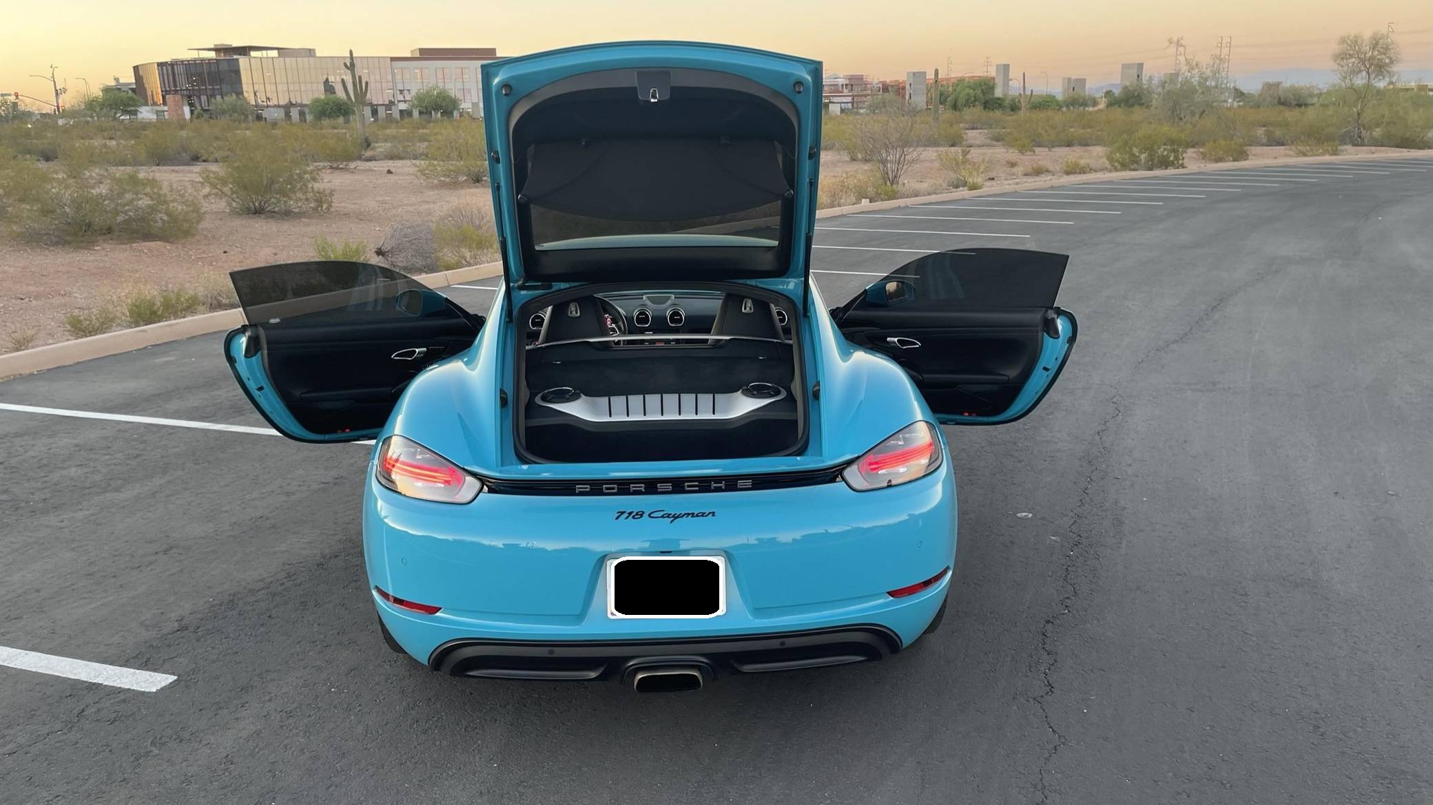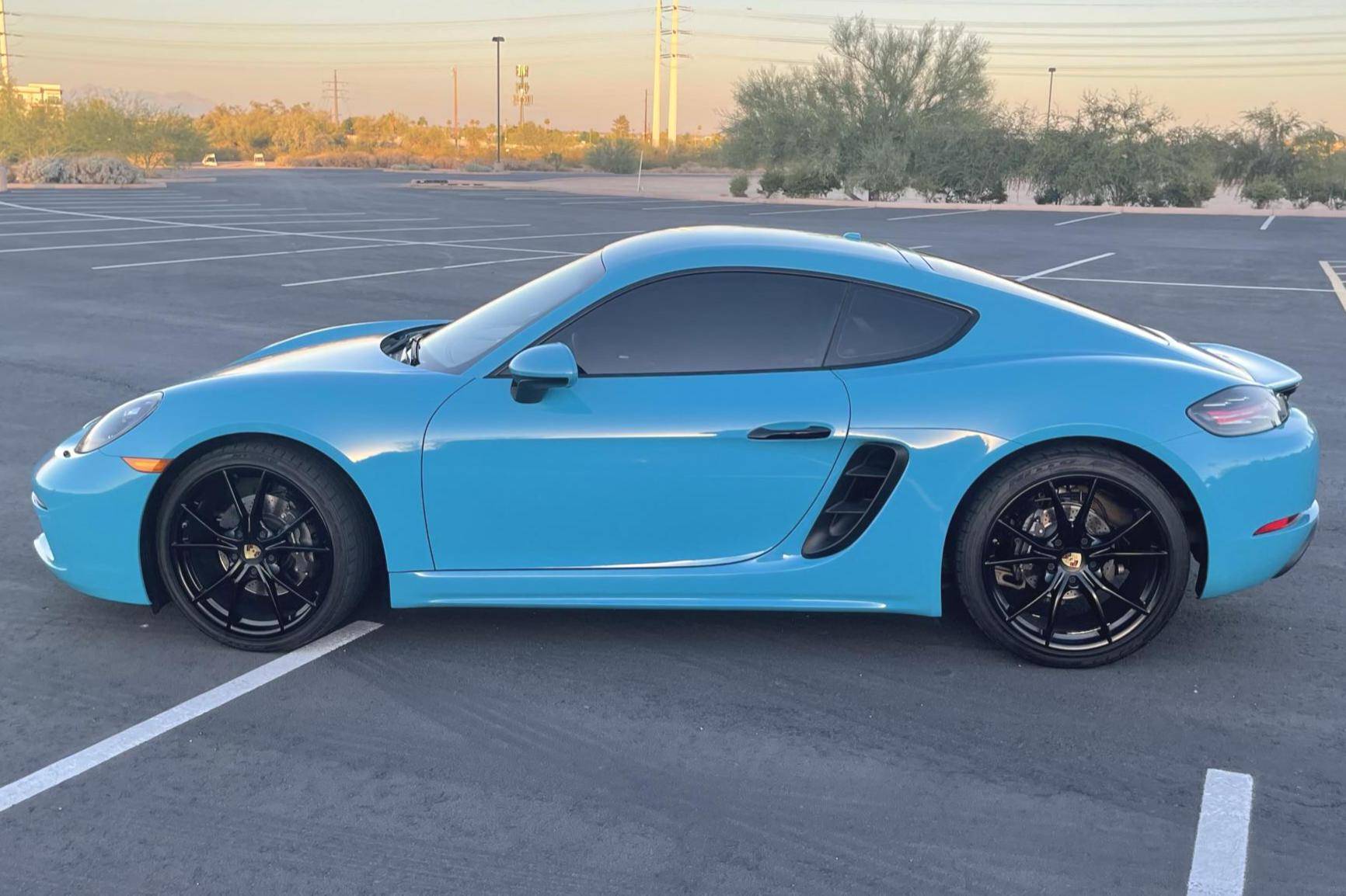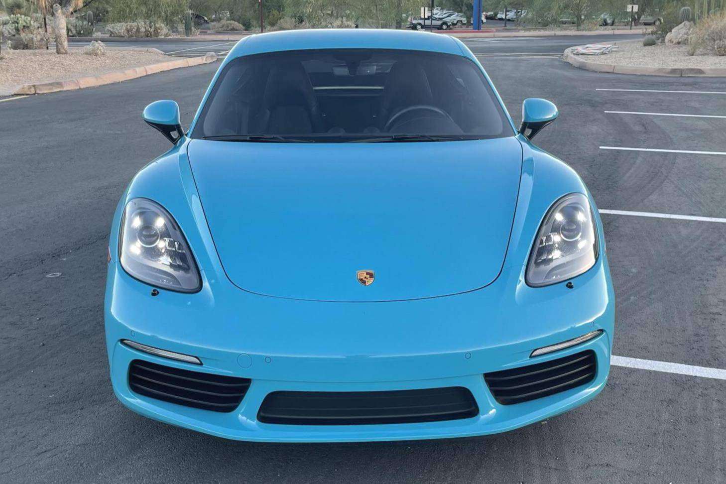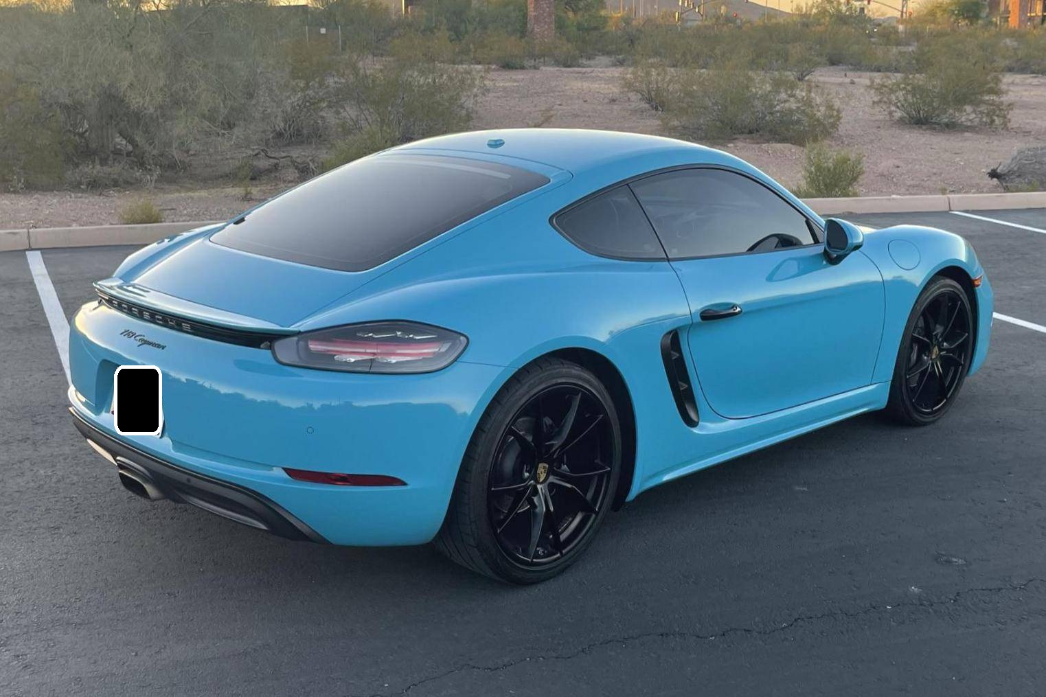 THIS… is a 2017 Porsche 718 Cayman, finished in Miami Blue with a black interior. Factory equipment includes the Premium Package Plus, the Leather Interior Package, 20-inch Black Satin-painted Carrera S wheels, an automatically extending speed-activated rear spoiler, a heated multifunction steering wheel, 14-way power-adjustable sport seats with memory package, a Bose surround sound system, and a center infotainment screen. Modifications reported by the seller are limited to tinted windows, a clear bra, and a ceramic coating. This Cayman comes with a transferrable Porsche CPO warranty which is active until October 2023. Please contact the seller directly with any questions. The "982" generation 718 Cayman debuted for the 2017 model year as an evolution on the Cayman nameplate, with the "718" designation paying homage to Porsche's 718 race cars from the 1950s. The model's powerplant was updated with a turbocharged 4-cylinder engine, and the result was a more powerful and more efficient car than its predecessor. Power comes from a 2. 0-liter turbocharged flat-4, rated at 300 horsepower and 280 lb-ft of torque. Output is sent to the rear wheels via a 7-speed Porsche Doppelkupplung (PDK) automatic transmission.