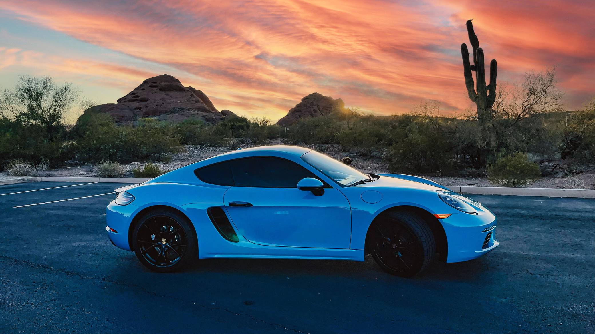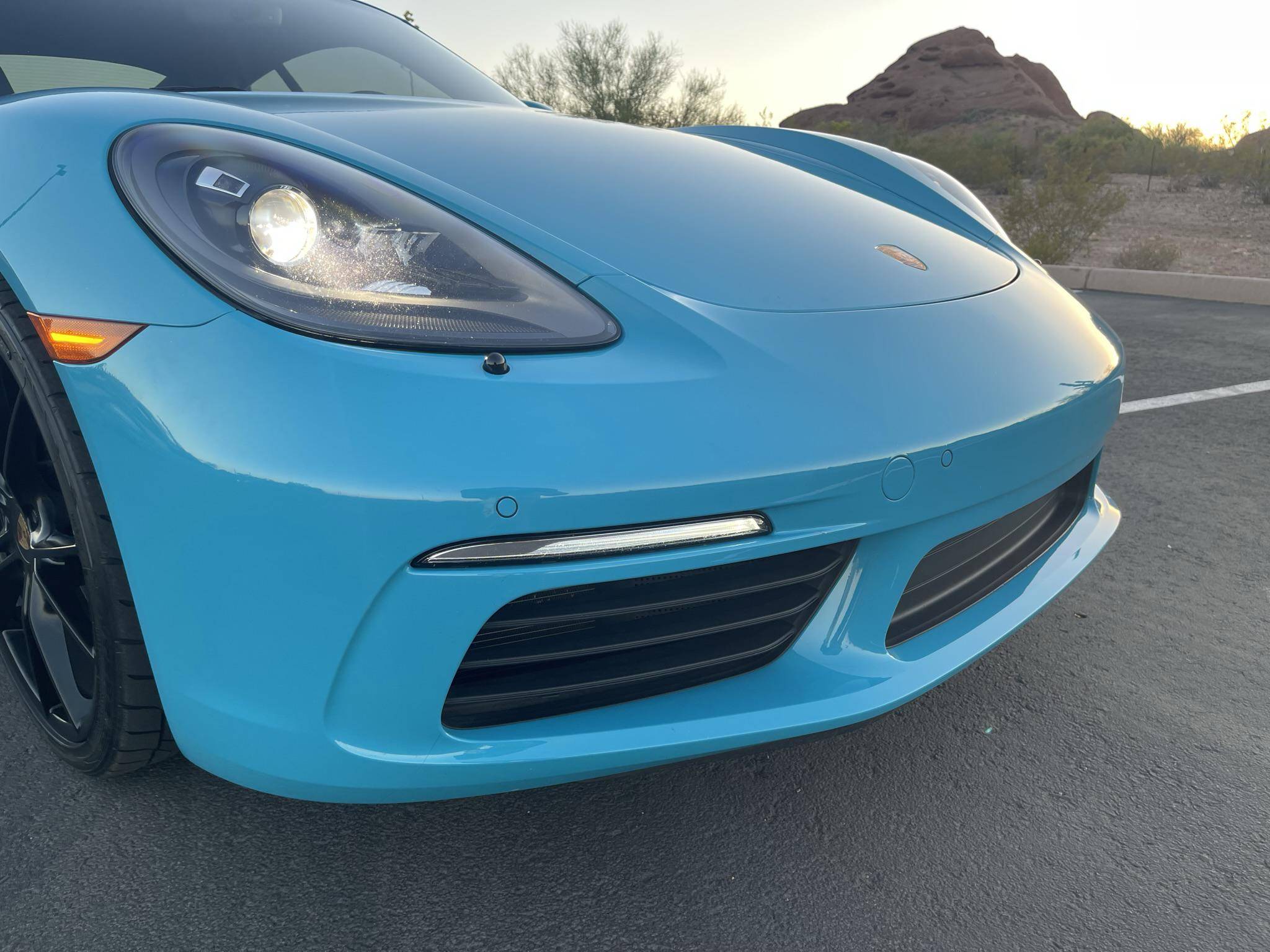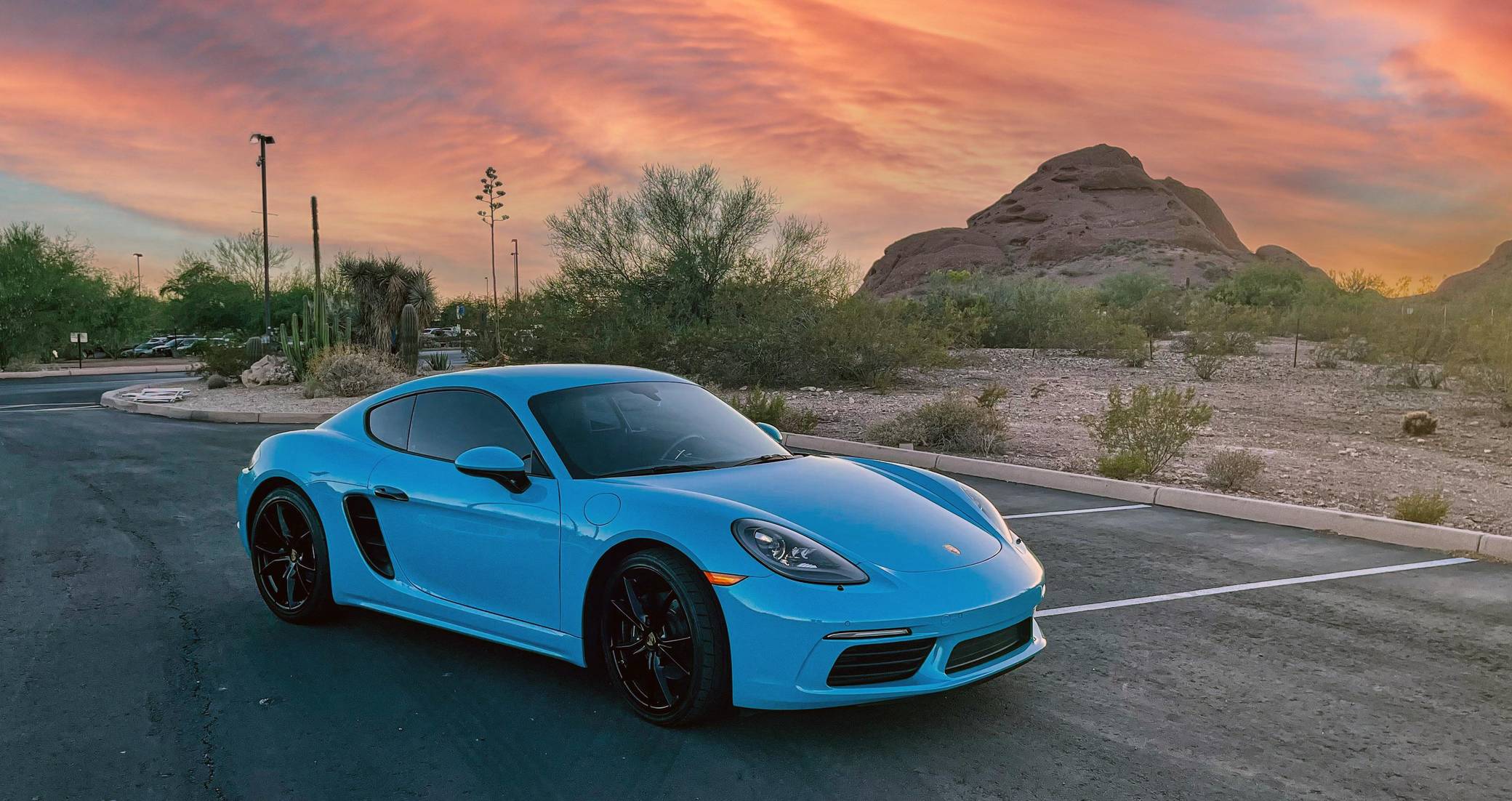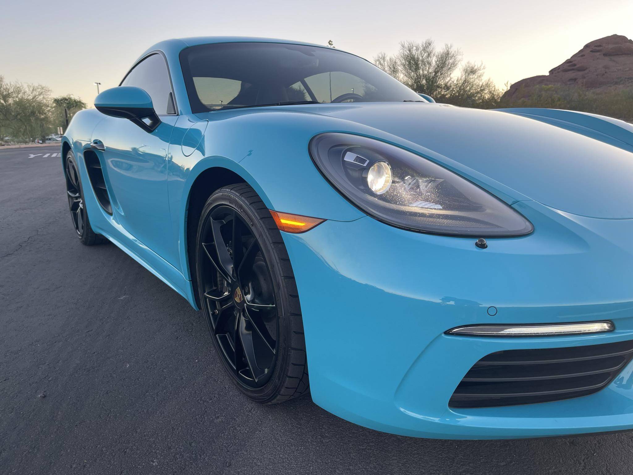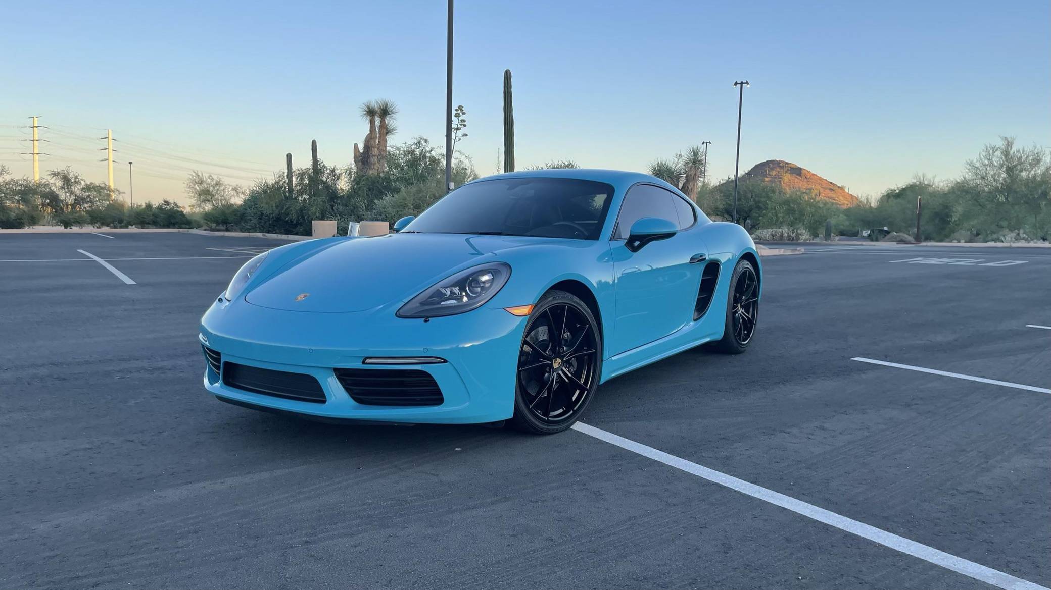 THIS… is a 2017 Porsche 718 Cayman, finished in Miami Blue with a black interior. Factory equipment includes the Premium Package Plus, the Leather Interior Package, 20-inch Black Satin-painted Carrera S wheels, an automatically extending speed-activated rear spoiler, a heated multifunction steering wheel, 14-way power-adjustable sport seats with memory package, a Bose surround sound system, and a center infotainment screen. Modifications reported by the seller are limited to tinted windows, a clear bra, and a ceramic coating. This Cayman comes with a transferrable Porsche CPO warranty which is active until October 2023. Please contact the seller directly with any questions. The "982" generation 718 Cayman debuted for the 2017 model year as an evolution on the Cayman nameplate, with the "718" designation paying homage to Porsche's 718 race cars from the 1950s. The model's powerplant was updated with a turbocharged 4-cylinder engine, and the result was a more powerful and more efficient car than its predecessor. Power comes from a 2. 0-liter turbocharged flat-4, rated at 300 horsepower and 280 lb-ft of torque. Output is sent to the rear wheels via a 7-speed Porsche Doppelkupplung (PDK) automatic transmission.