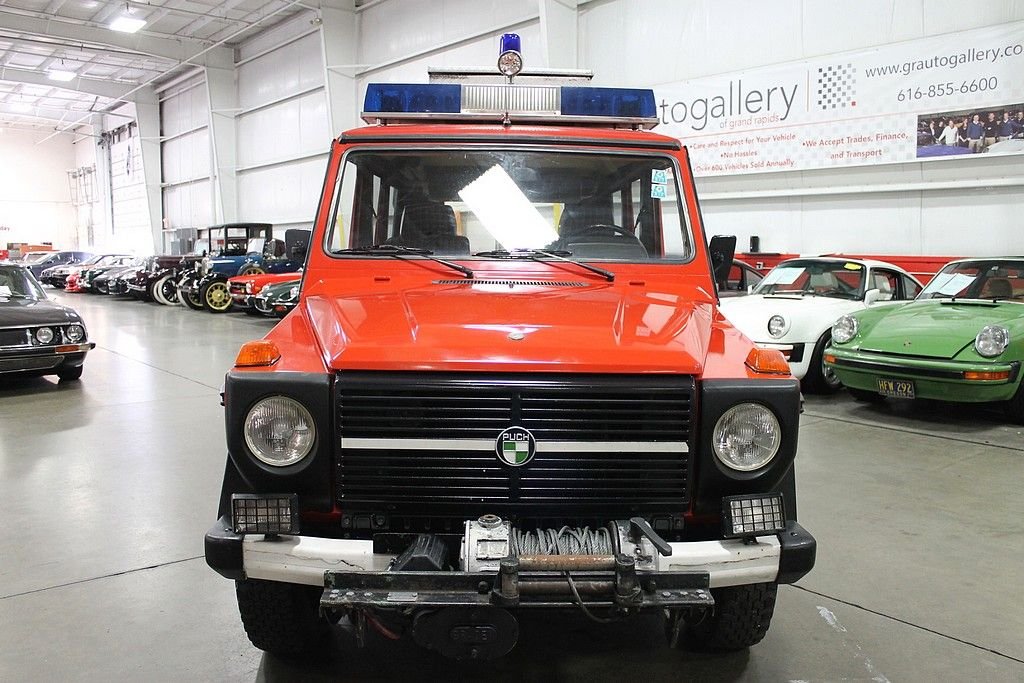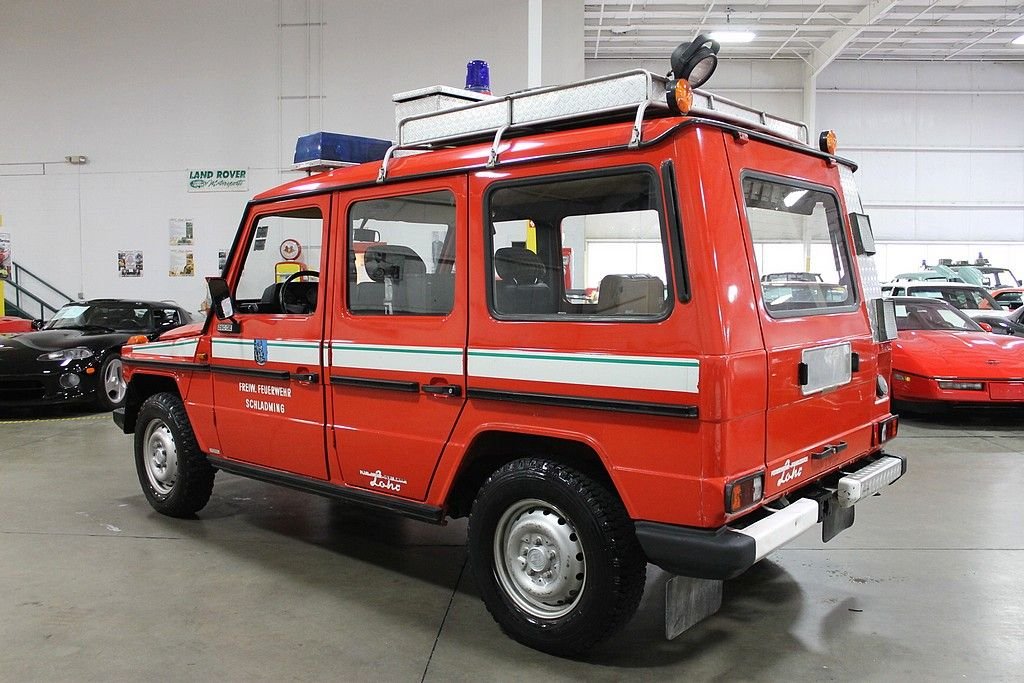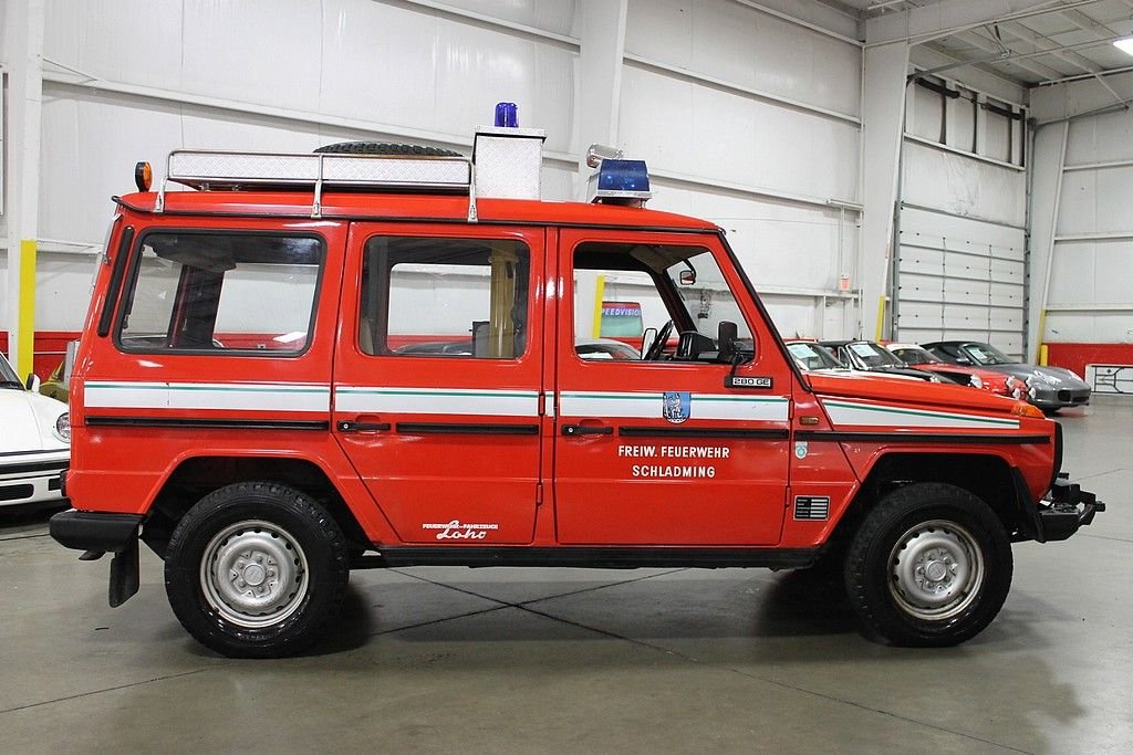 The 280GE is a gas powered version of the famous G-wagons made by Puch and distributed by Mercedes-Benz. These are the go-anywhere SUV's that are used for government services, military, and civilian use all over the globe. This is a 1980 280GE 4x4 adapted for firefighting service in beautiful Schladming, Austria. It was used as a Chief's command vehicle. The words Freiwillige (shortened to Freiw.) and Feuerwehr are translated from German to English to mean “Volunteer Fire Defense”. It's powered by the original 2746cc V6 engine paired with a 4-speed manual transmission and a 4x4 drivetrain. It has 3 seats, a generator, working lights & sirens, an extending pole with flood lights, front mounted winch, tow kit, tire chains, loudspeaker, and medical kit. The odometer reads 18,218 kilometers which equates to 11,230 miles. This is a great low mileage imported G-wagon that is really cool and a lot of fun to drive. As a Fire apparatus it was always well maintained and stored in a heated space. Its condition reflects the care. If you look up Schladming, Austria you will see why they need these G-wagons to cover the terrain of their jurisdiction.