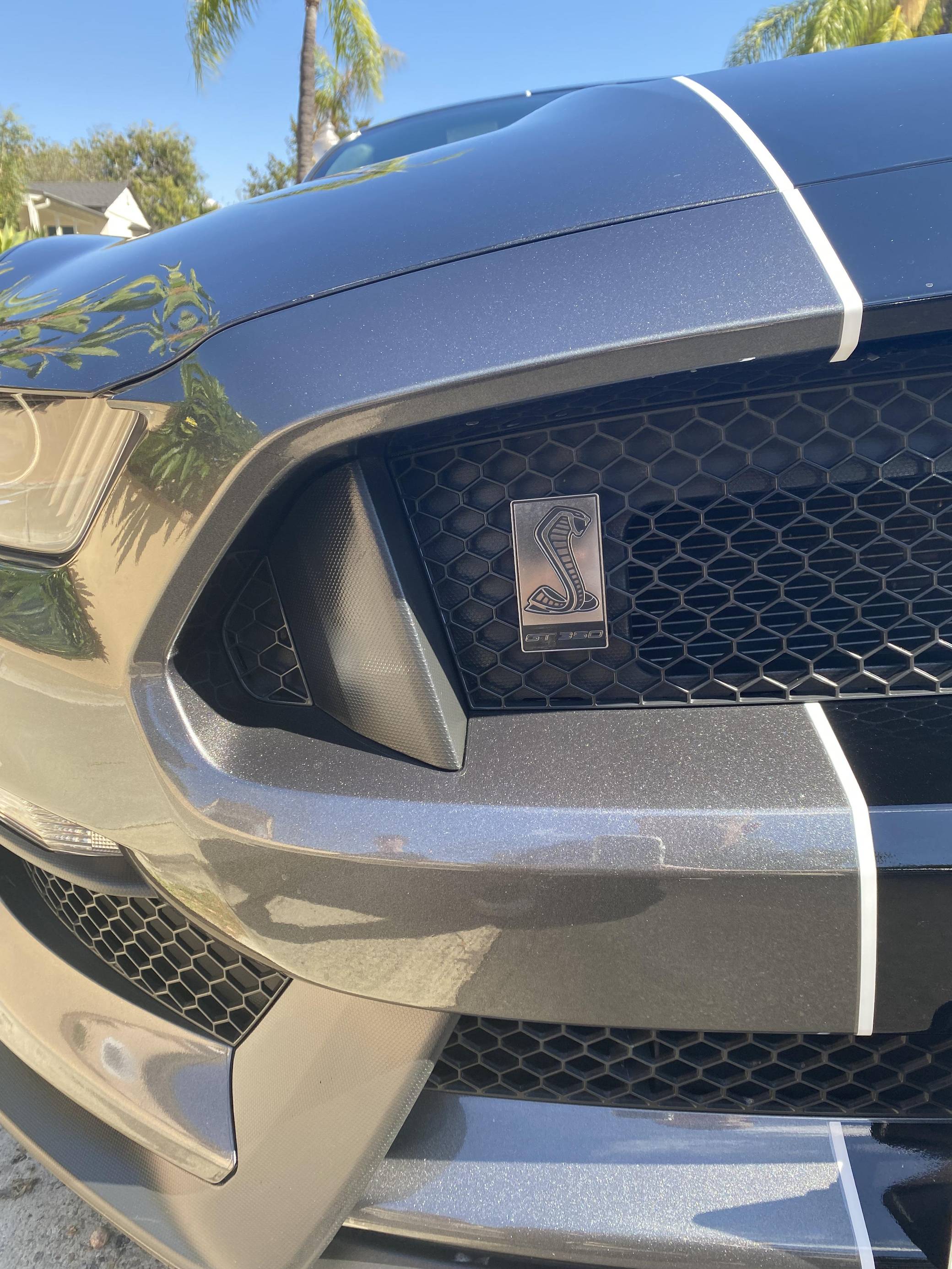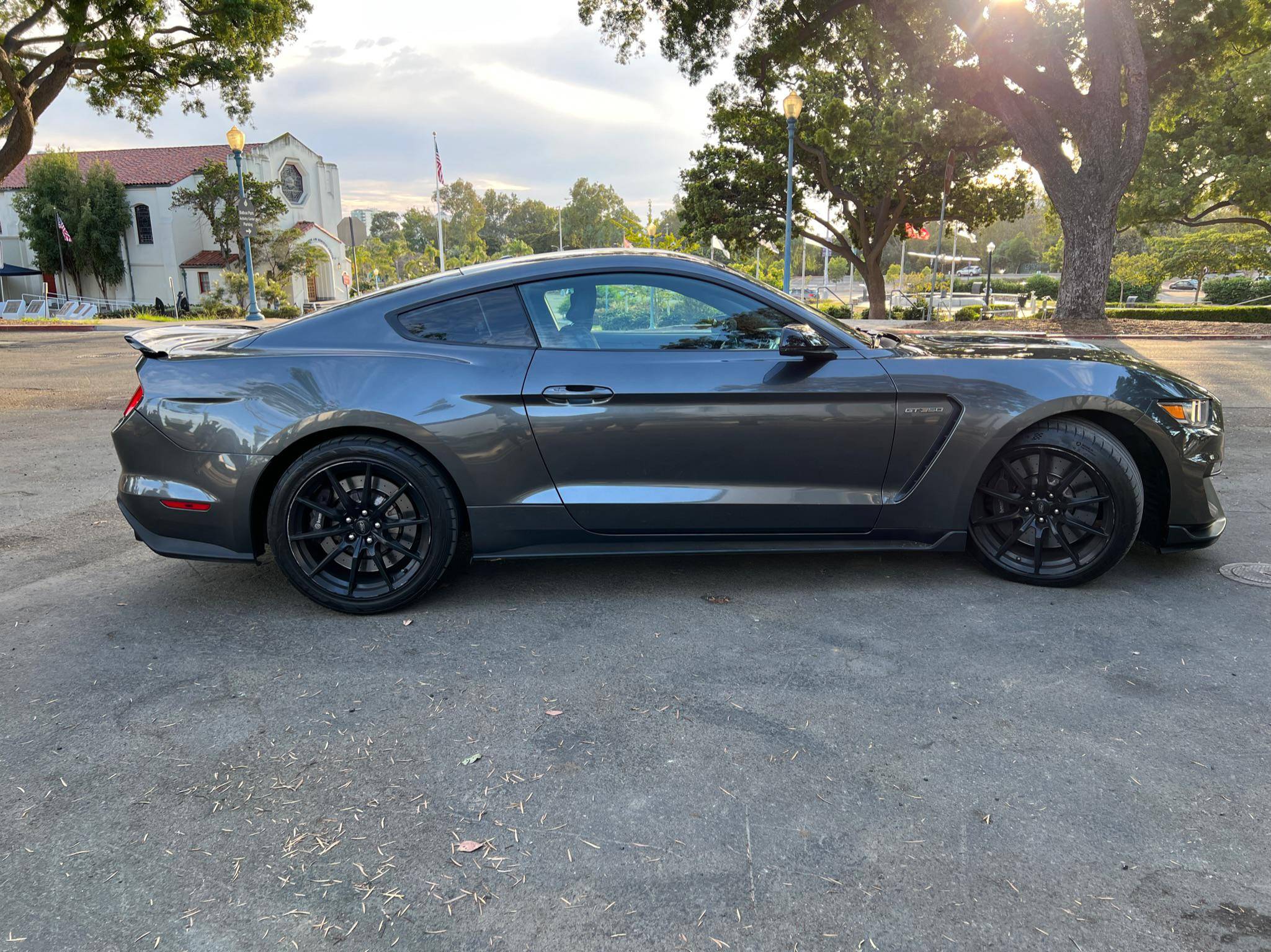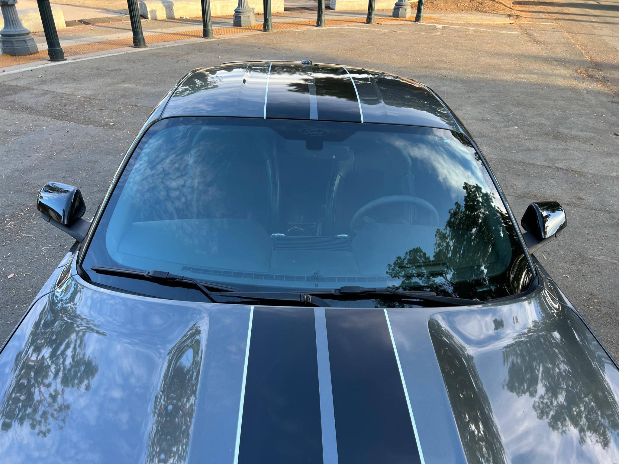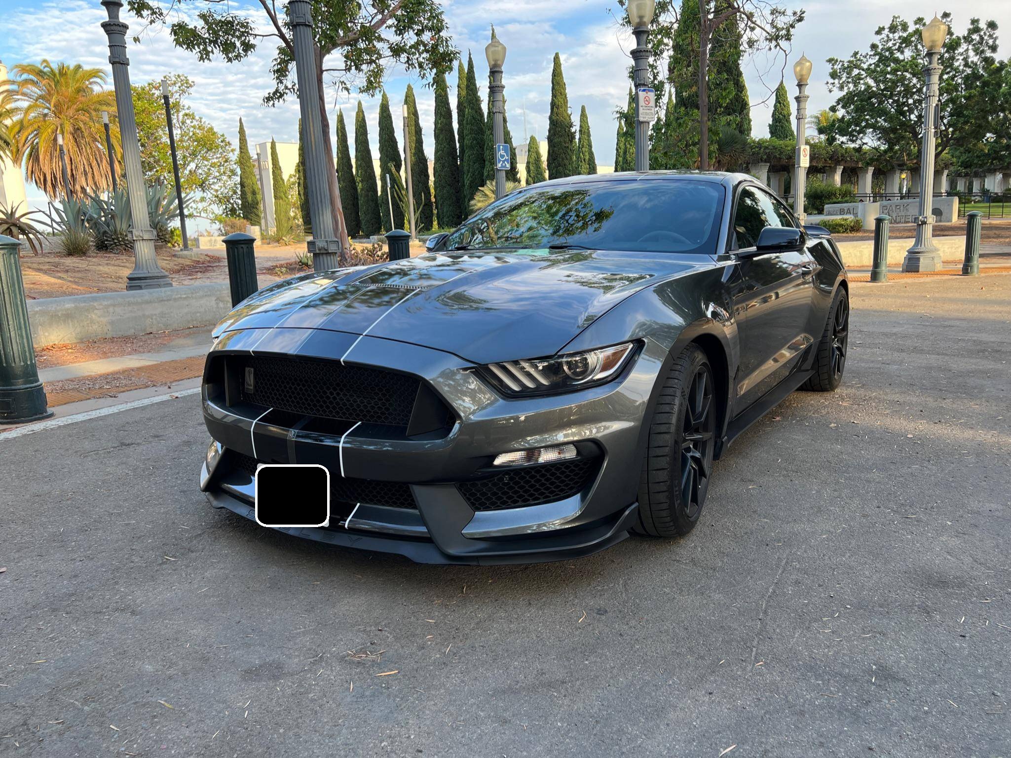 2016 Ford Mustang Shelby GT350, finished in Magnetic Metallic with an Ebony interior. A partial list of notable equipment includes Brembo brakes, a quad-tip dual exhaust, a MagneRide damping system, leather seats with suede inserts, heated and cooled front seats, navigation, and a SYNC 3 infotainment system. Modifications are limited to tinted rear windows. The track-oriented Shelby GT350 variant of the "S550" Ford Mustang is notable for its "Voodoo" V8 engine which employs a flat-plane crank and a unique crankpin configuration and firing order. It also has upgraded aerodynamics, a revised suspension, and various lightweight components that result in a highly competent muscle car. Power comes from a 5. 2-liter "Voodoo" V8 engine, rated at 526 horsepower and 429 lb-ft of torque. Output is sent to the rear wheels via a 6-speed manual transmission.