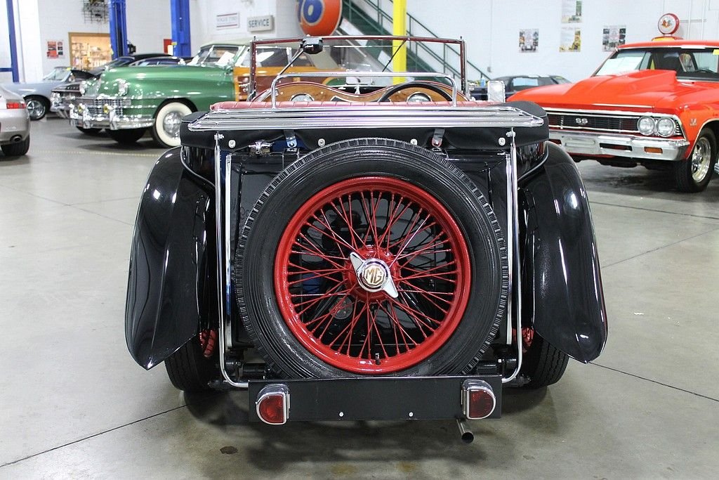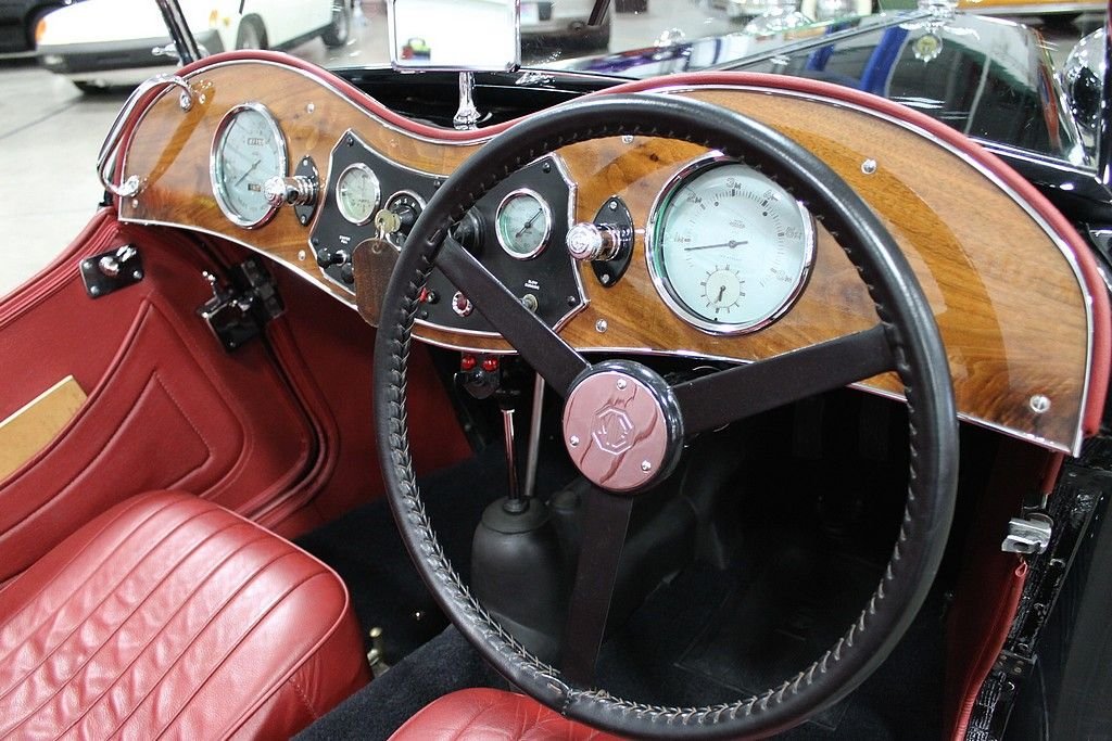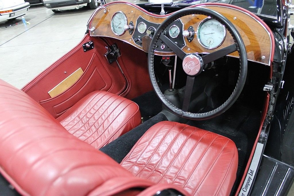 This car was completely restored in April of 2011, and sits as a “#1 quality show car”. It drives very well and all the instruments work. To make such a high show quality benchmark there were many upgrades including: the engine was reassembled with new rings & seals, welded in diagonal braces added to the doors, twin chrome racing air cleaners, frame sandblasted & powder painted, shock absorbers rebuilt with silicone rubber seals added, front & rear axle sandblasted and powder coated, rear axle has new sealed ball bearings, new spring bushings, custom molded urethane shock bushings, steering gear rebuilt with Tomkinson re-build kit and new silicone seals, front axle re-bushed, new walnut dash panel, instrument panel re-chromed painted & silk screened, new tie rod ends, new radiator mounted motometer temperature gauge, new rubber interior transmission cover, brake & clutch pedals re-bushed with a new pivot shaft, rebuilt carburetors, new radiator hoses with period clamps, radiator fan upgraded from original metal 2 bladed to MGB plastic 7 bladed, custom fabricated carburetor heat shield to preclude fuel percolation, new fan belt, cast aluminum valve cover, new water pump, rebuilt generator & starter motor, new wiring harness, hidden master electrical shut off switch, new hydraulic actuated stop light switch, new clutch, new Moss Motors leather seats & interior panels, new master cylinder, new wheel cylinders, new brake shoes, gas tank was cleaned & coated internally, new gas lines, new windshield wiper linkage (and new pivot & blades), rebuilt windshield wiper, new battery, new top, new Moss Motors tonneau cover, new tires & tubes, wheels re-painted, turn signals upgraded to mechanical relays, new leather wrapped steering wheel, new door latches, new black plush carpet, all new wheel bearings front & rear, all chrome is in perfect condition, and a new horn.