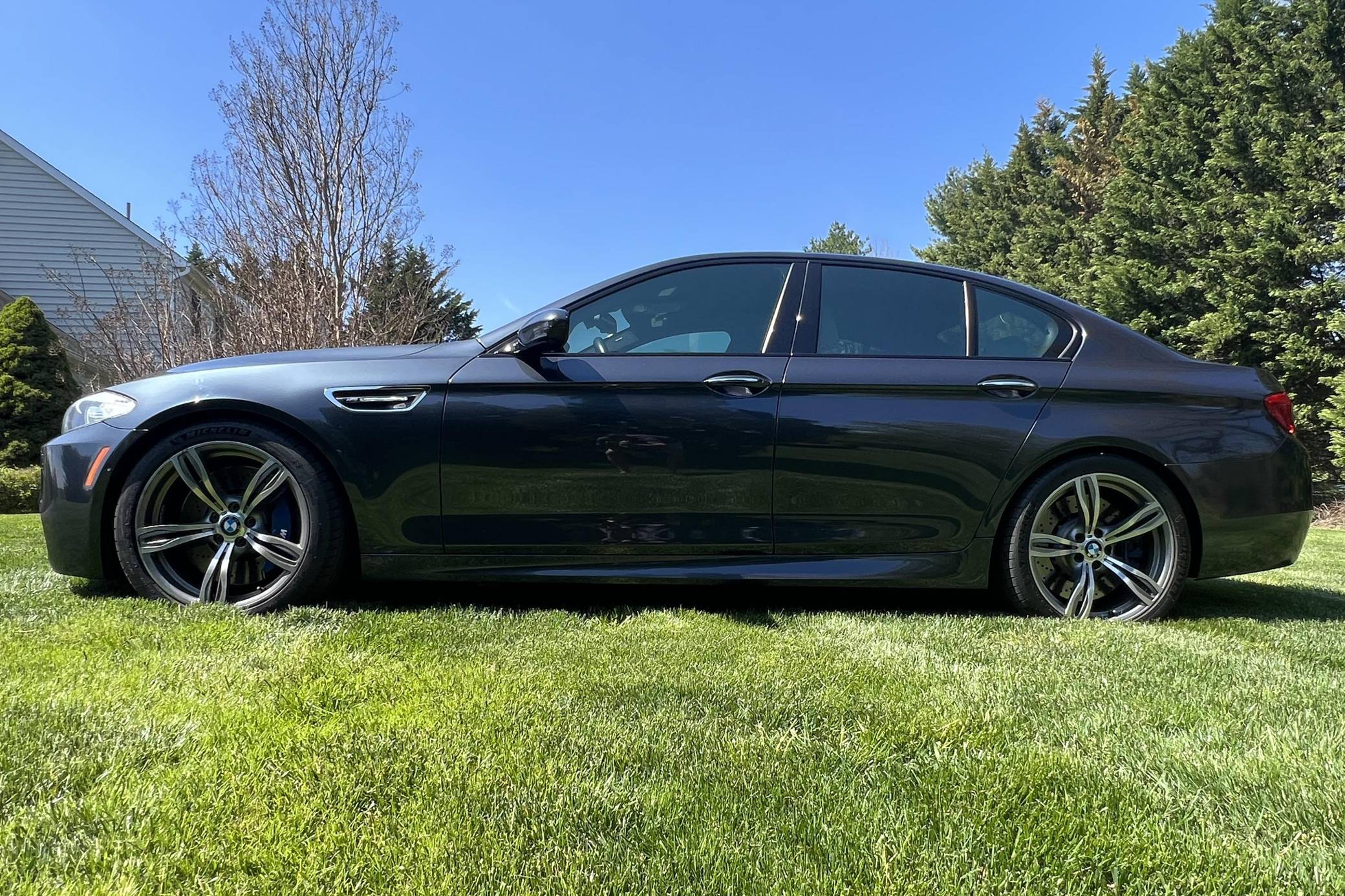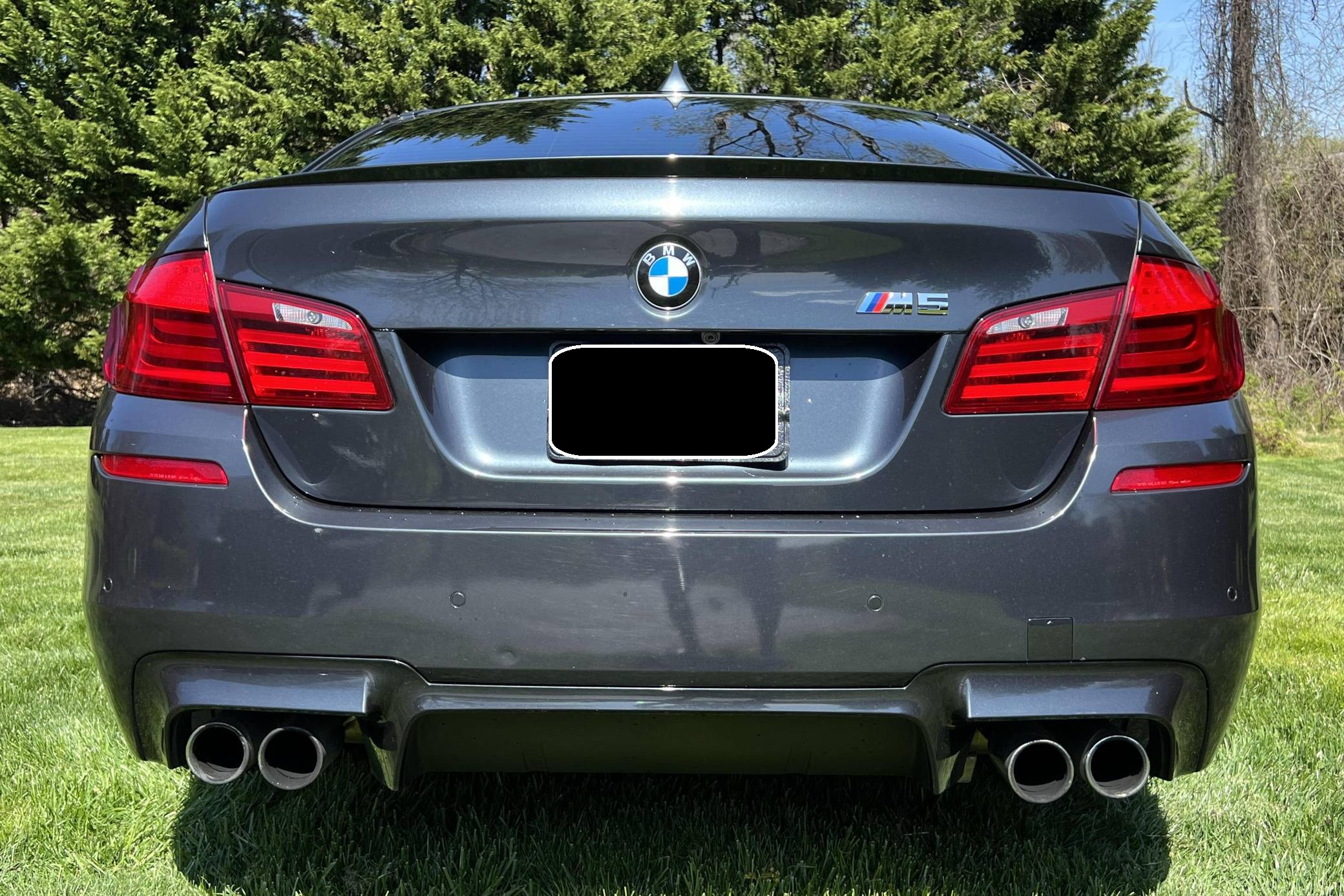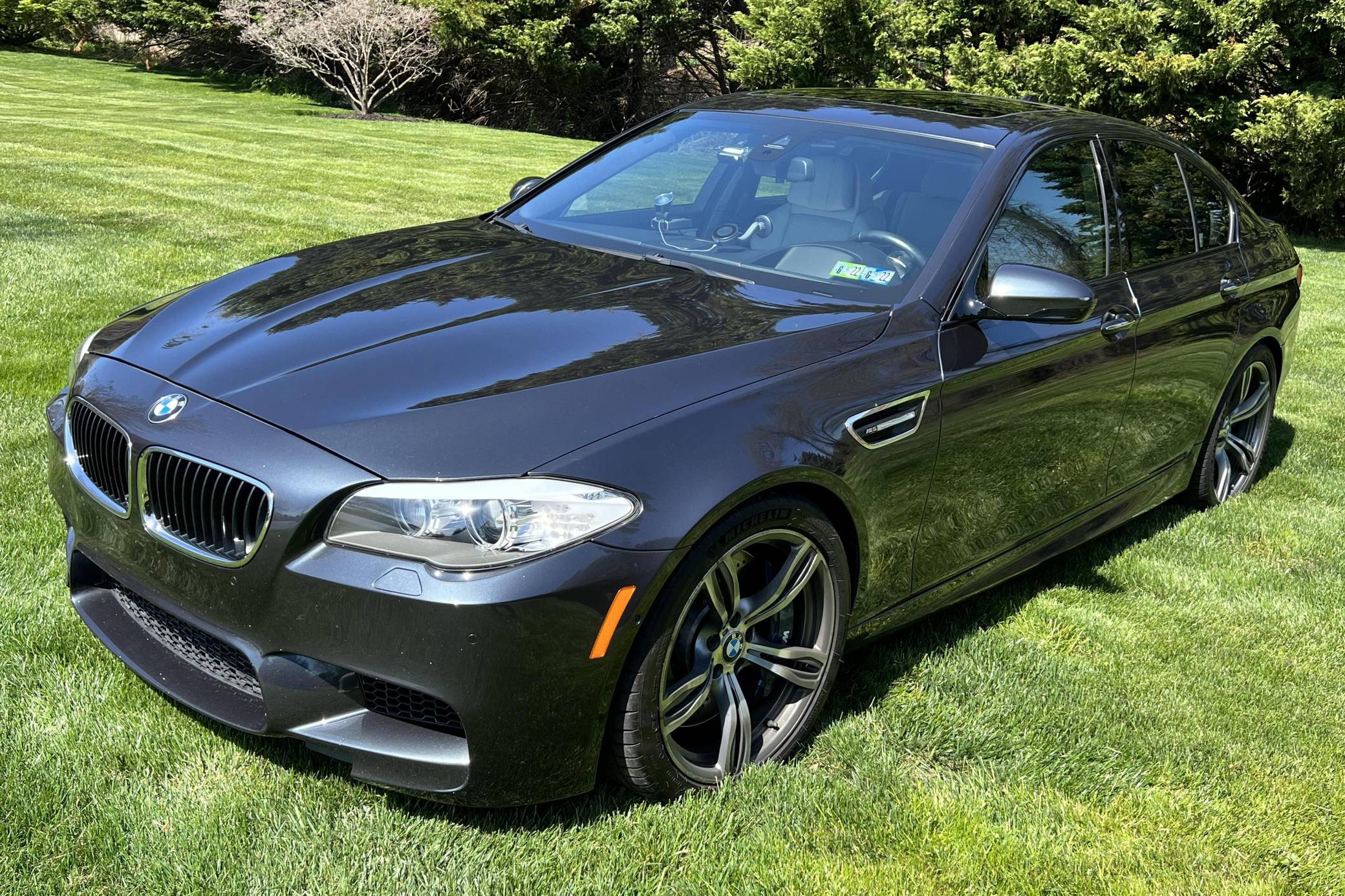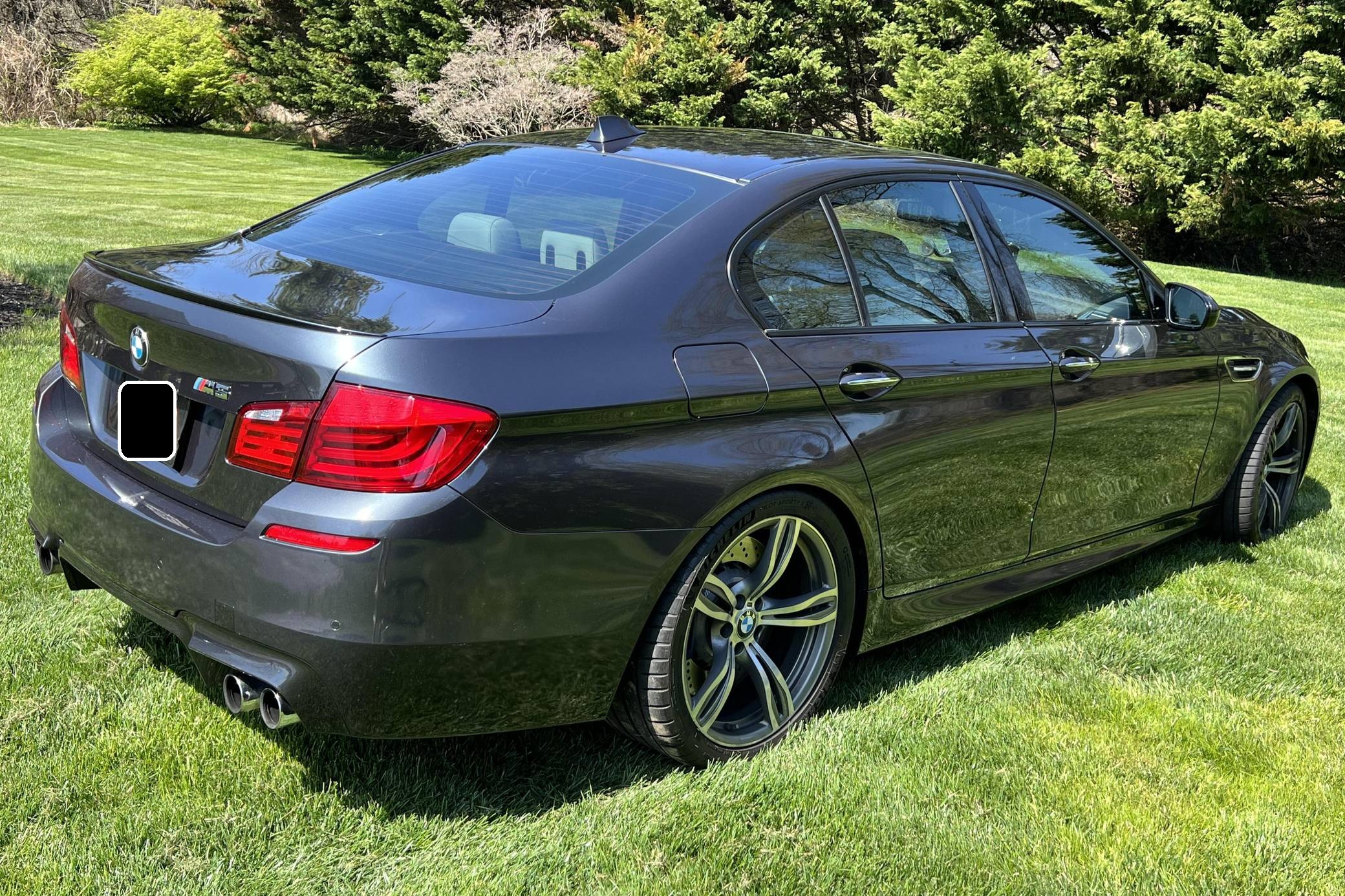 THIS. . . is a 2013 BMW M5, finished in Singapore Gray Metallic with a Silverstone II interior. This sedan's odometer displays about 55,200 miles. Factory equipment includes the Executive and Driving Assistance packages, 20-inch "Style 343M" wheels, an adaptive suspension system, heated and power-adjustable front seats, BMW Individual rear-seat reading lights, a Bang & Olufsen surround sound system, plus front and rear parking sensors. This M5's build sheet is pictured in the gallery, and the seller reports no modifications. Service records pictured in the gallery show that this M5's transmission was replaced in September 2021 at 49,409 miles and that the engine was replaced in June 2021 at 48,317 miles. BMW introduced the fifth-generation M5 for 2013. It was based on the F10-generation 5 Series, and it swapped its predecessor's naturally-aspirated V10 for a twin-turbocharged V8, though it offered enthusiasts a generous bump in horsepower and torque. This version of the M5 was also considerably more high-tech than its predecessor, but BMW M engineers went to great lengths to ensure the electronics didn't dilute the driving experience. Production ended in 2016. Power comes from a 4. 4-liter twin-turbocharged V8, rated at 560 horsepower and 500 lb-ft of torque. Called "S63" internally, it spins the rear wheels via a 7-speed automatic transmission.