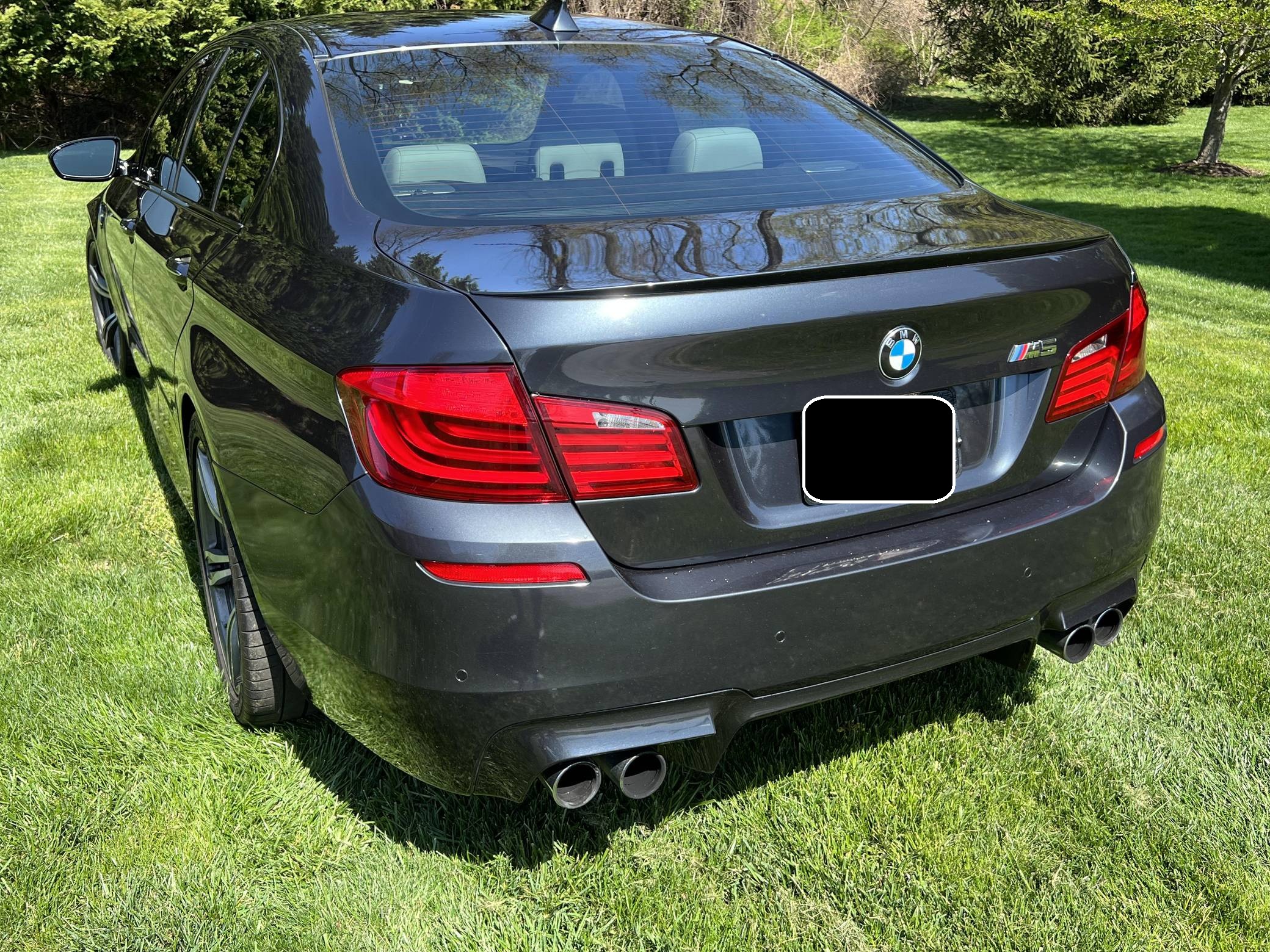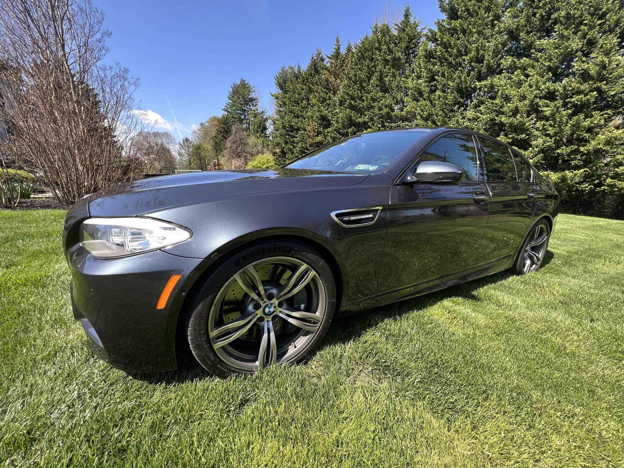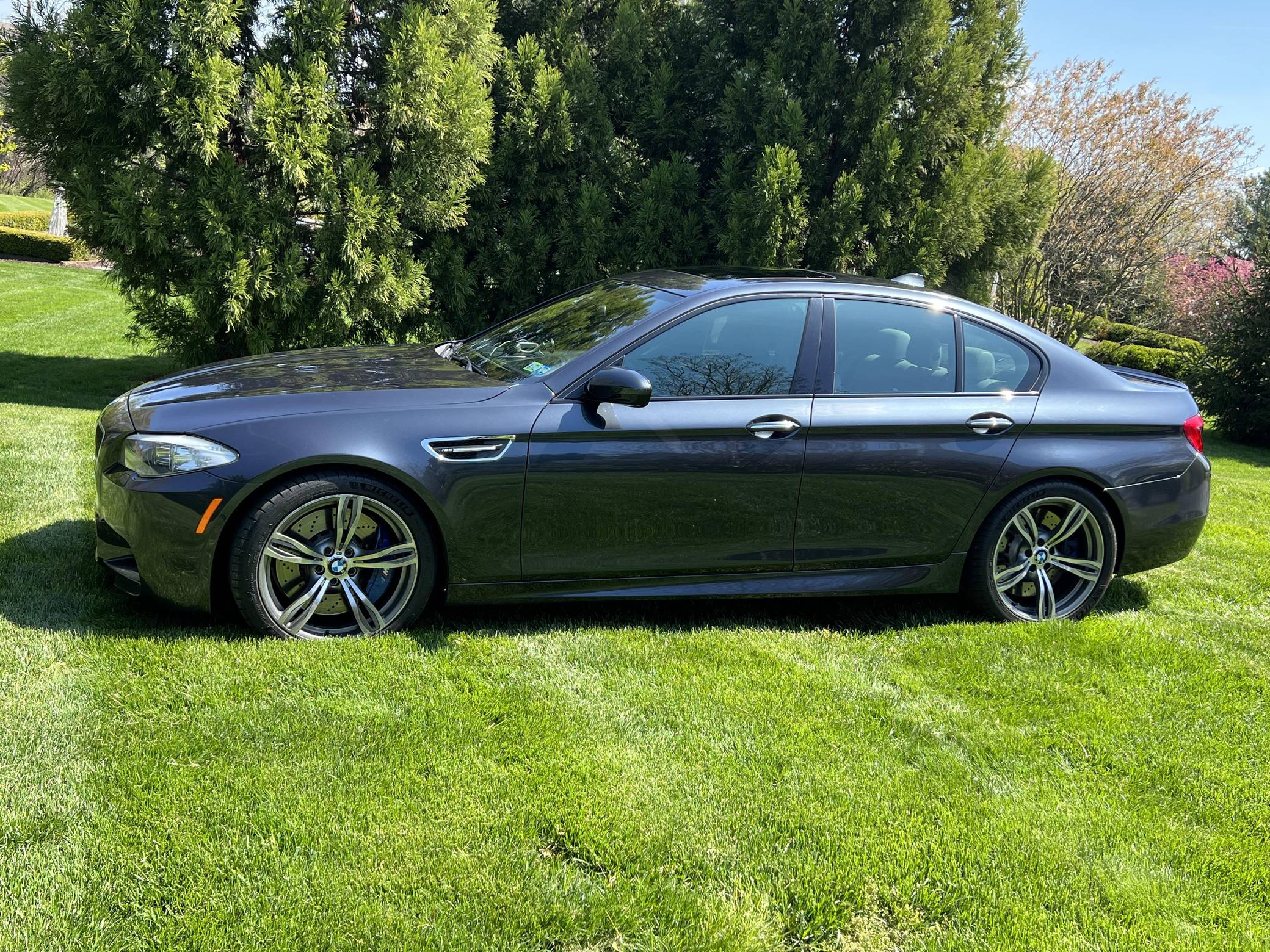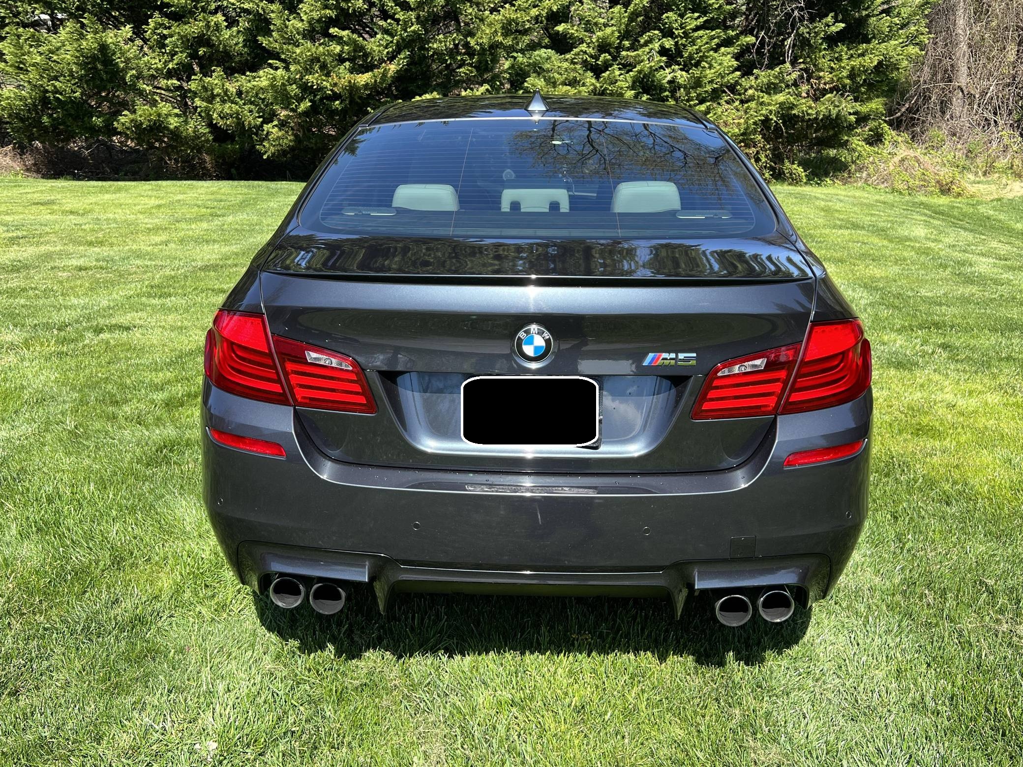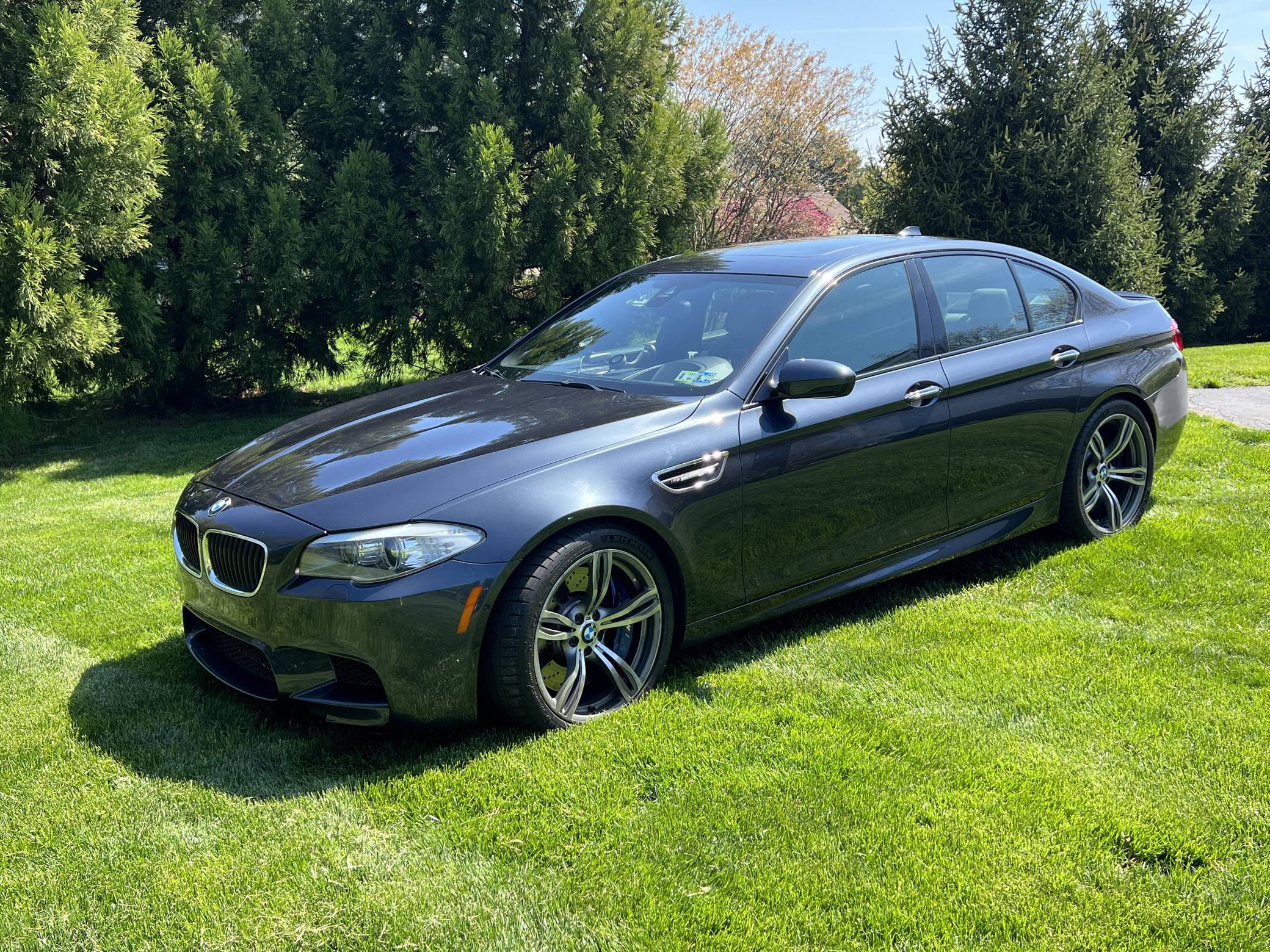 THIS. . . is a 2013 BMW M5, finished in Singapore Gray Metallic with a Silverstone II interior. This sedan's odometer displays about 55,200 miles. Factory equipment includes the Executive and Driving Assistance packages, 20-inch "Style 343M" wheels, an adaptive suspension system, heated and power-adjustable front seats, BMW Individual rear-seat reading lights, a Bang & Olufsen surround sound system, plus front and rear parking sensors. This M5's build sheet is pictured in the gallery, and the seller reports no modifications. Service records pictured in the gallery show that this M5's transmission was replaced in September 2021 at 49,409 miles and that the engine was replaced in June 2021 at 48,317 miles. BMW introduced the fifth-generation M5 for 2013. It was based on the F10-generation 5 Series, and it swapped its predecessor's naturally-aspirated V10 for a twin-turbocharged V8, though it offered enthusiasts a generous bump in horsepower and torque. This version of the M5 was also considerably more high-tech than its predecessor, but BMW M engineers went to great lengths to ensure the electronics didn't dilute the driving experience. Production ended in 2016. Power comes from a 4. 4-liter twin-turbocharged V8, rated at 560 horsepower and 500 lb-ft of torque. Called "S63" internally, it spins the rear wheels via a 7-speed automatic transmission.