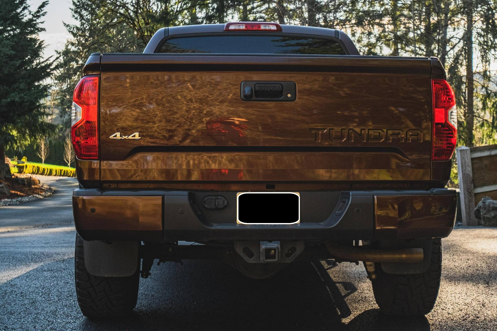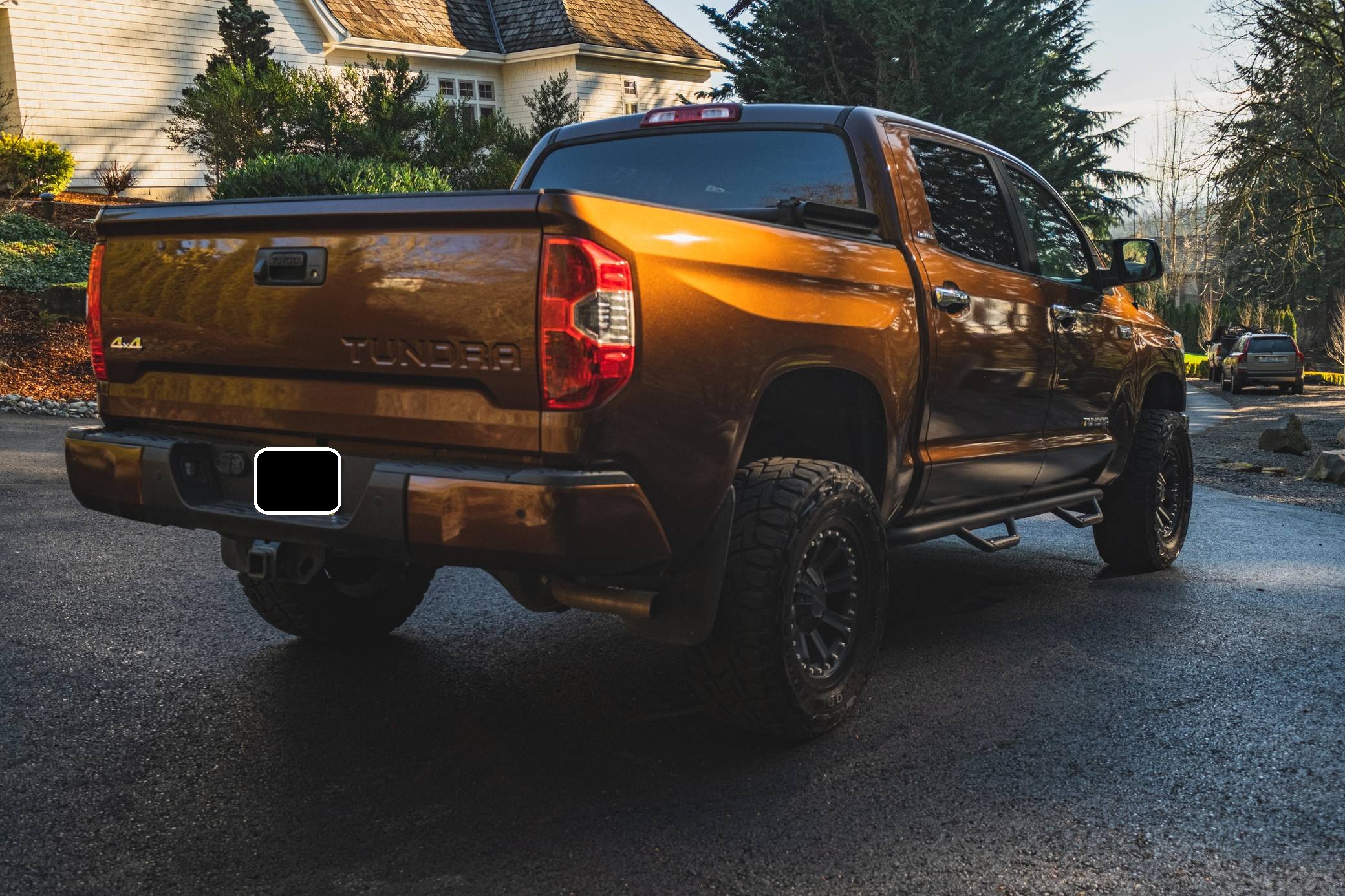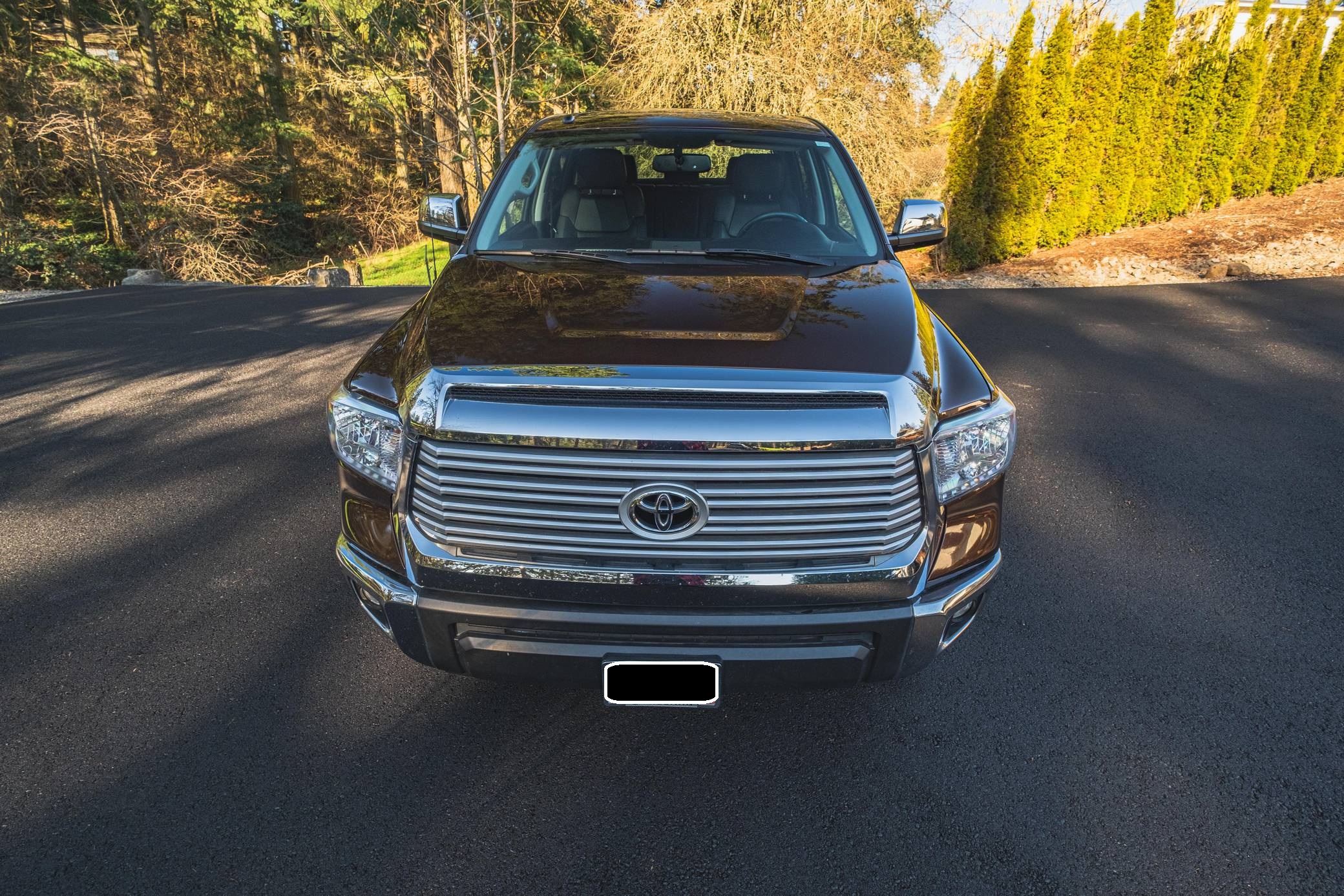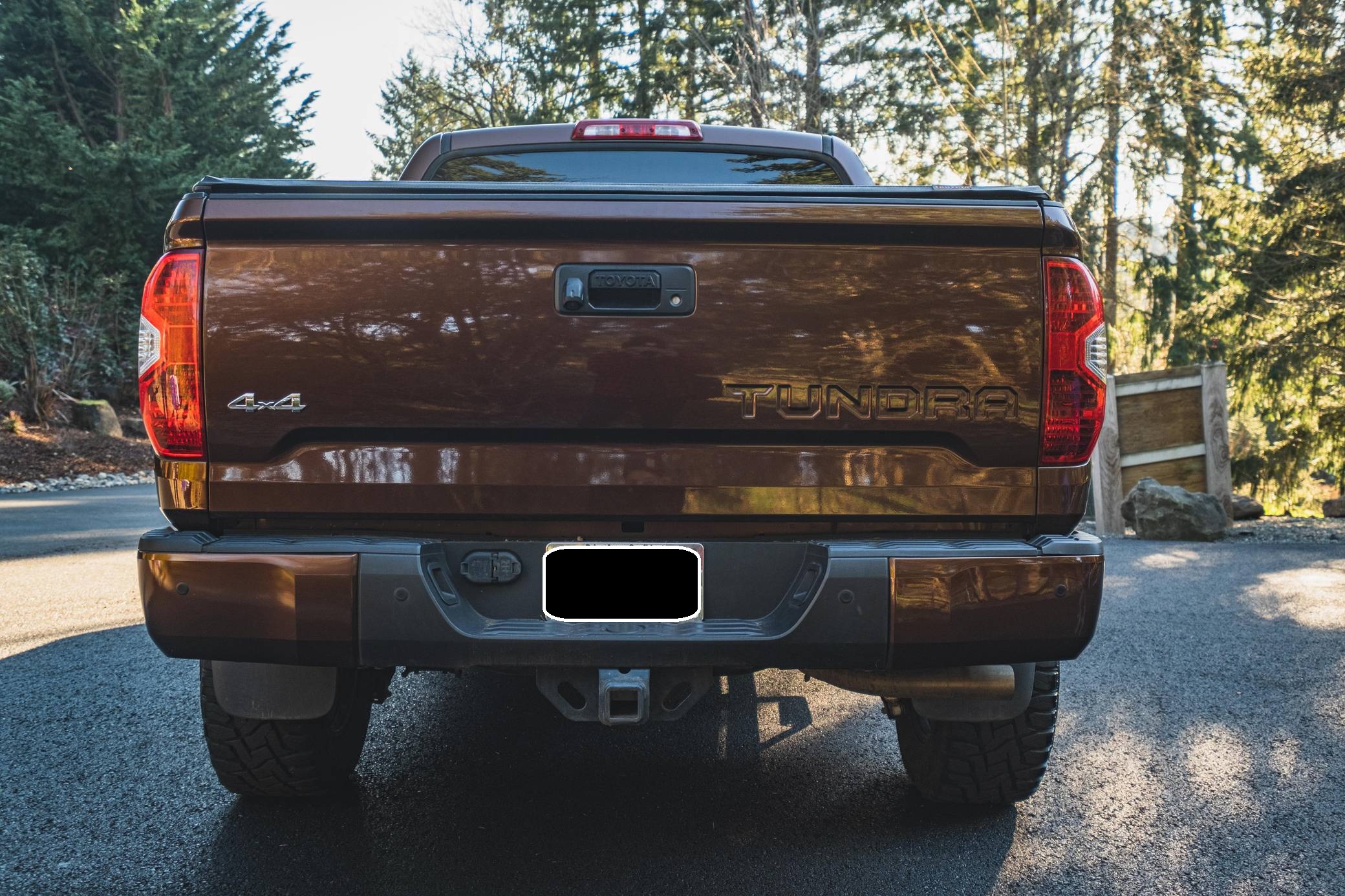 THIS. . . is a 2014 Toyota Tundra CrewMax Limited, finished in Sunset Bronze Mica with a black interior. The odometer on this Tundra currently displays about 35,200 miles. Factory equipment includes A-TRAC traction control, an automatic limited-slip differential, power-operated rear window, leather upholstery, power-adjustable heated front seats, dual-zone automatic climate control, 7-inch infotainment screen, Entune JBL premium audio system, navigation system, Bluetooth connectivity, and a rear backup camera. Modifications are limited to 18-inch Pro Comp alloy wheels, Toyo R/T Open Country tires, an electronic trailer brake, a 3-inch lift kit, Go Rhino side steps, Trifecta truck bed cover, and all-weather floor mats. Toyota released the "XK50"-generation Tundra for the 2007 model year. Designed in America for Americans and built in Texas, the second-generation Tundra was much bigger and brawnier than its predecessor to take the fight directly to Detroit's Big Three. It was available in a wide selection of configurations until production ended in 2021. Power comes from a 5. 7-liter V8, rated at 381 horsepower and 401 lb-ft of torque. Output is directed to the rear or all four wheels through a 6-speed automatic transmission and a 2-speed transfer case.