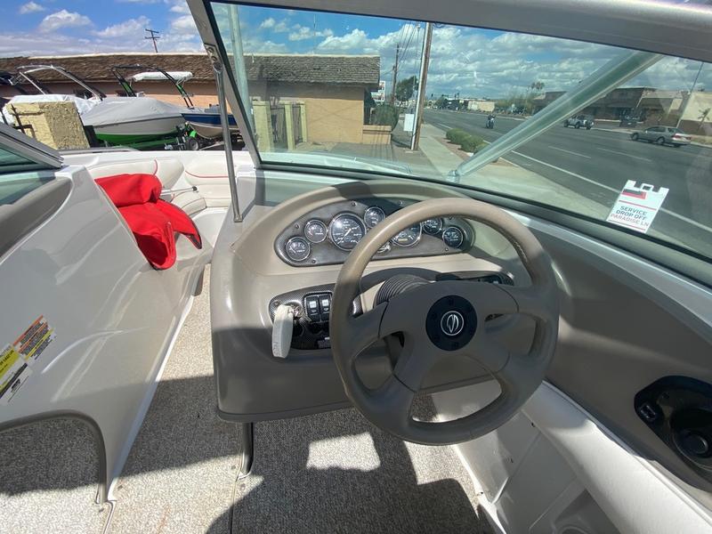 The interior layout is extremely accommodating with plenty of storage and seating up to 10 people. The transom walk-through has a filler cushion to preserve the comfortable full-length sunbed area. The cockpit seating features driver and passenger bucket seats with flip-up bolsters. The interior upholstery and carpet are in good condition. This boat is equipped with a table, tonneau covers, bimini top, cooler, stereo system, depth finder, etc. This boat has been well maintained and is looking for a new home!