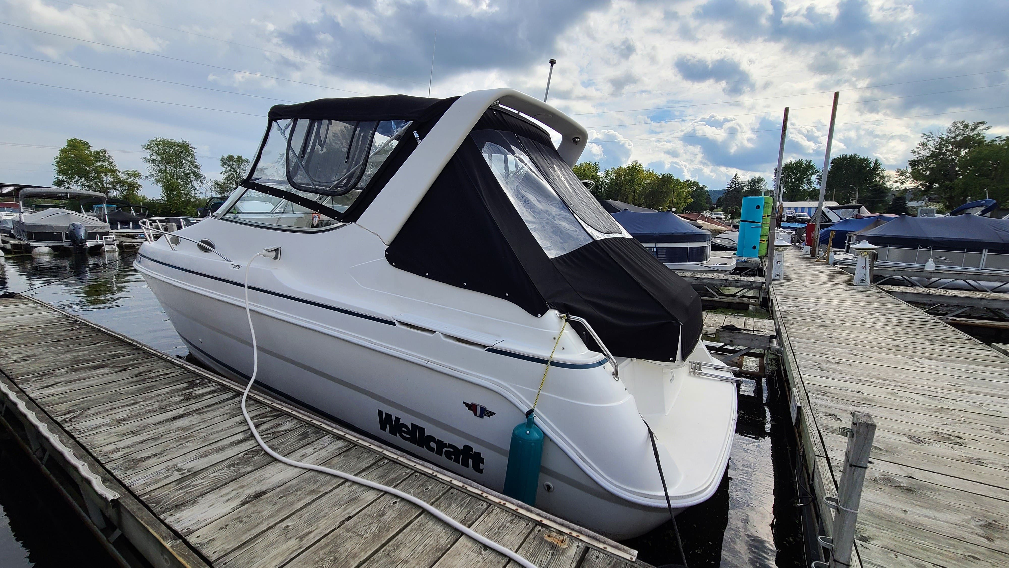 Very good looking Wellcraft 260 SE, was later known as the 2600 Martinique (Renamed in 1999), this boat was tough competition for other 26 foot boats as its interior Layout is open, roomy, and offers great seating for a boat this size. The Cockpit L Shape Seating Can Fold Out into a Full-Size Sun Island and with its Full Canvas Enclosure could be used as additional sleeping. The Captains Seat is Oversized and Comfortable and a Walk Through windshield allows access to the Bow. This boat is built on a Solid Fiberglass Hull and weighs around 5,000lbs, with its 20-degree deadrise the ride is smooth and comfortable. Step inside the Cabin and the Mid Cabin Design with forwarding Double Berth is Impressive, a Side Dinette is a Feature not seen in many 26 foot boats and the Galley is Compact yet has everything you would expect in a boat this size (Refrigerator, Stove, Microwave and Good Storage). The Mid Cabin is Exceptional in Size and has an easy entry, a window can open in the Mid Cabin as Well to allow some Air Flow. The head is Noteworthy as it has a Vacu Flush Head, the head is roomy and very clean. Overall the interior of this boat should not disappoint! Other Features & Options found on this Wellcraft 260 SE include a Compass, Depth Finder, Horn, VHF Radio, Updated Stereo, Trim Tabs, 110-12 Volt Refrigerator, Alc/Elect Stove, Microwave, Water heater, Transom Shower, Battery Charger, Dockside Power with Cord, Full Canvas Enclosure with Screens, New Cockpit Cover, Anchor, Mooring Lines & Fenders!