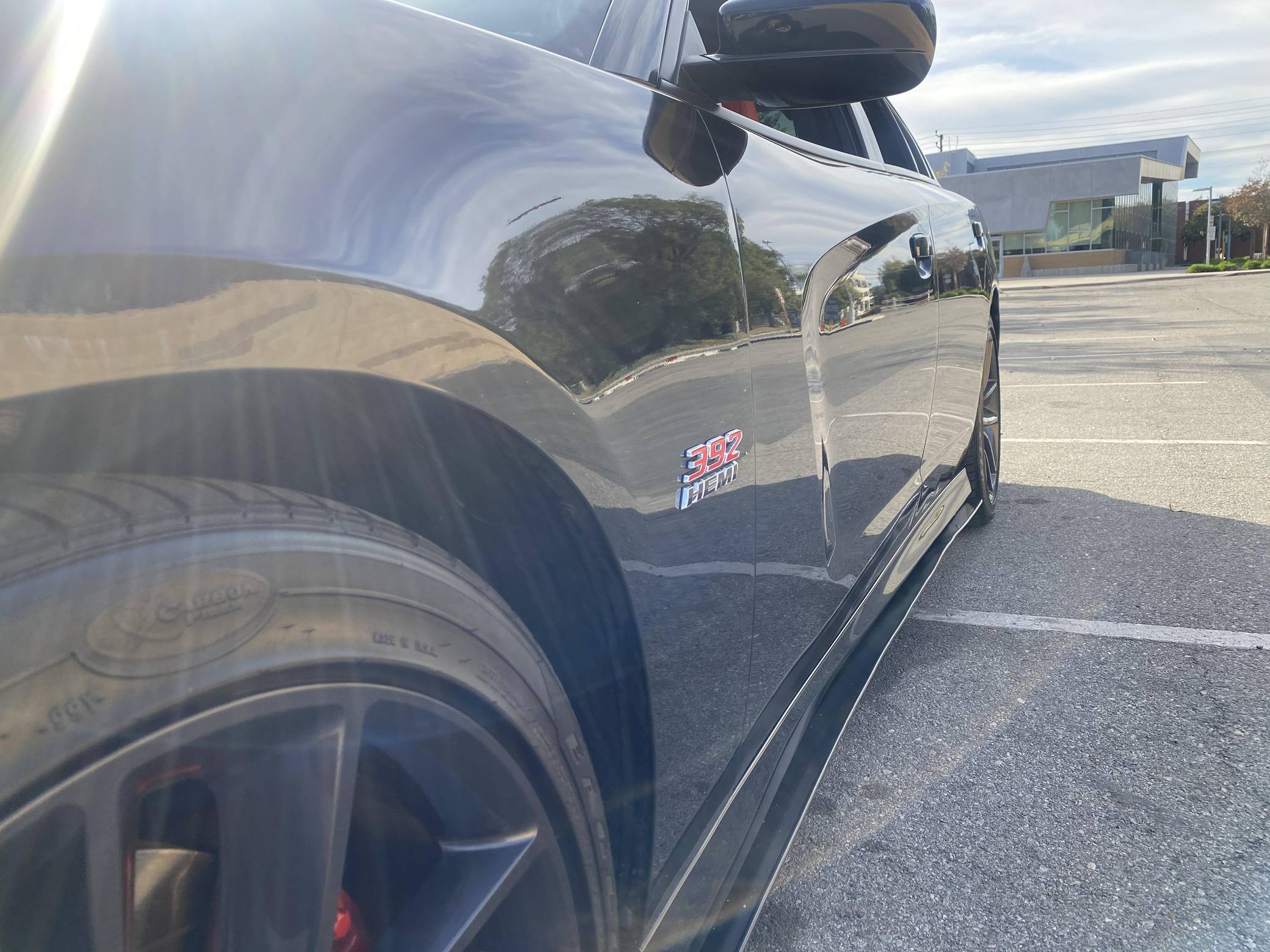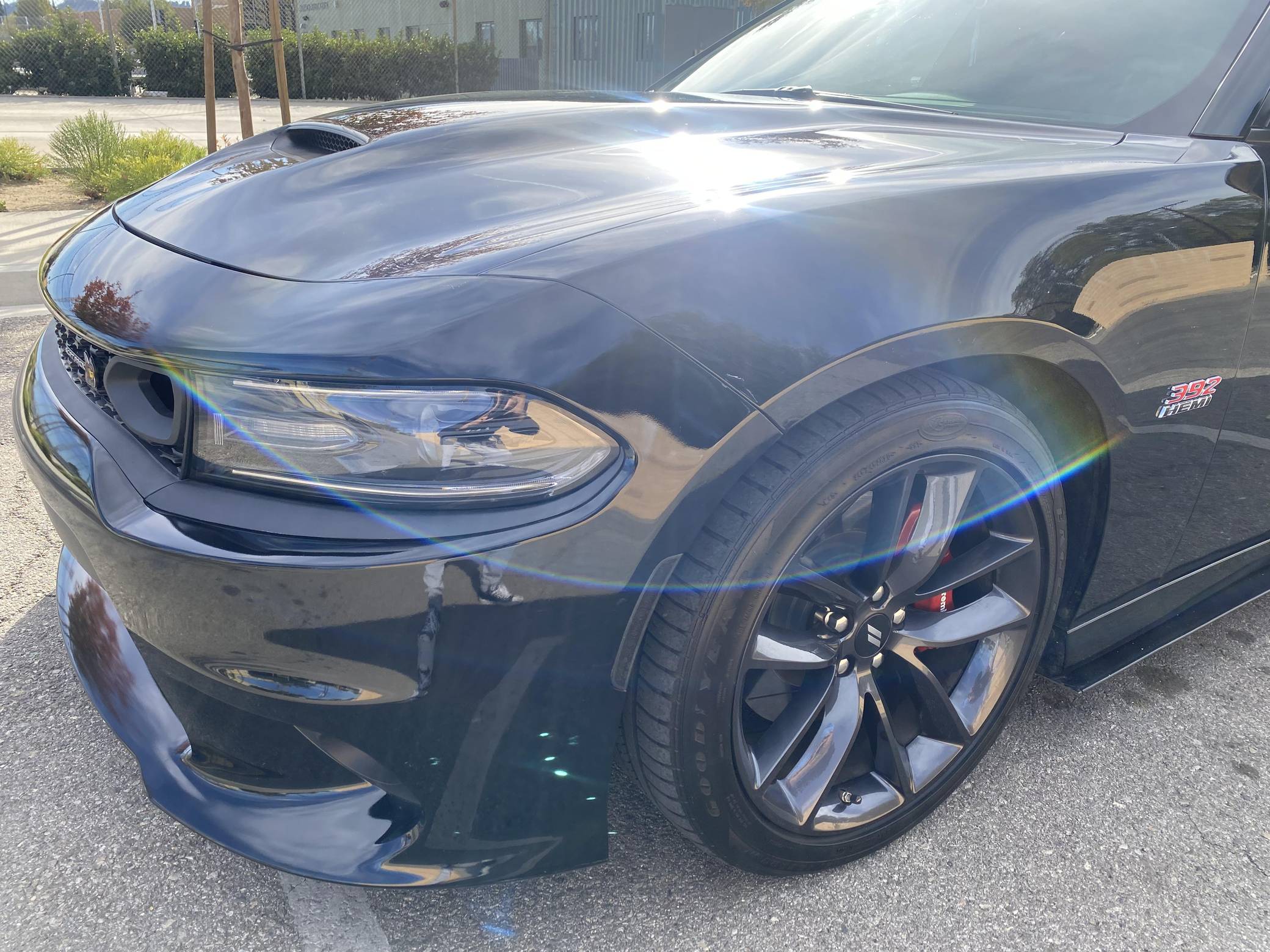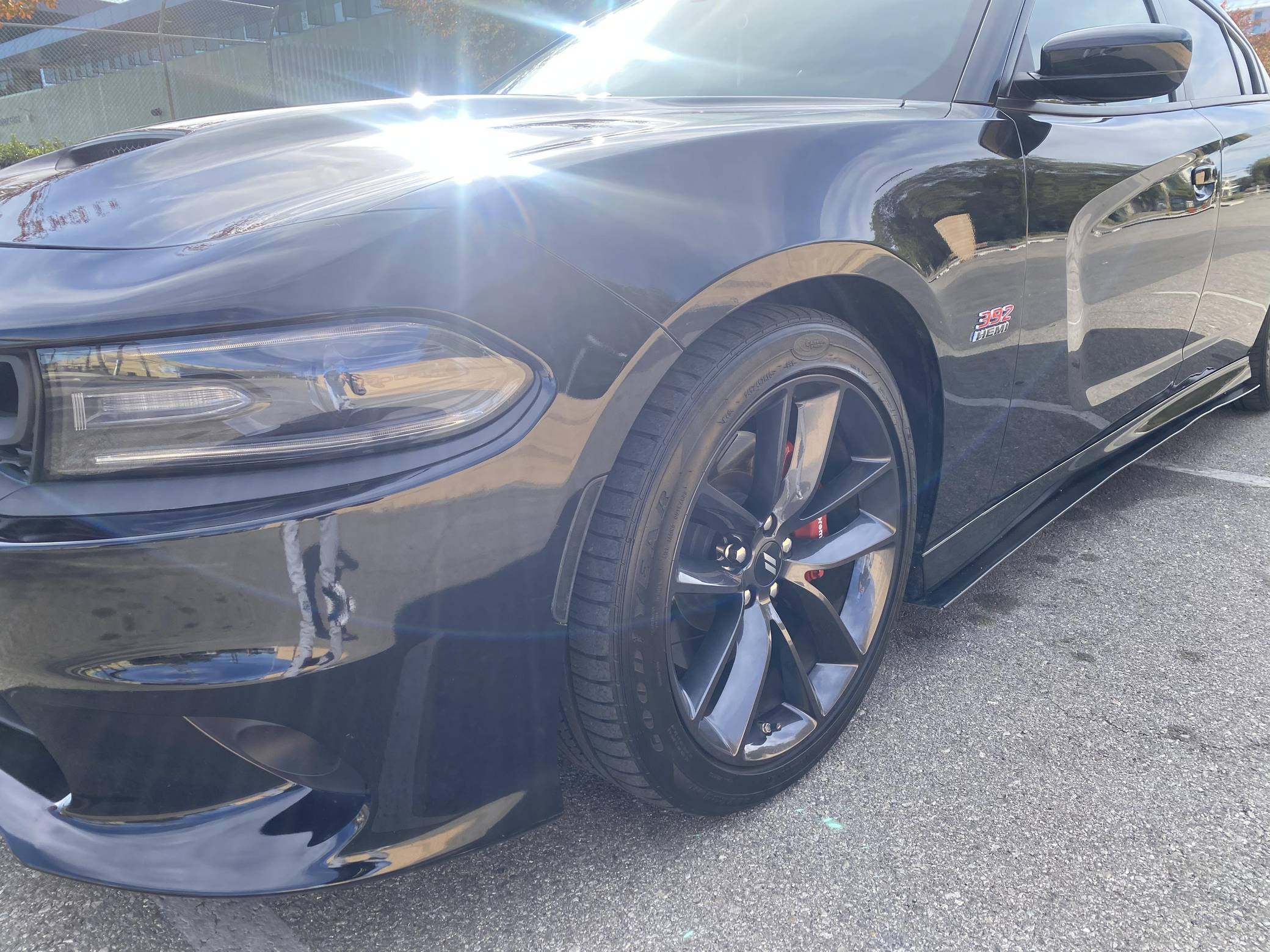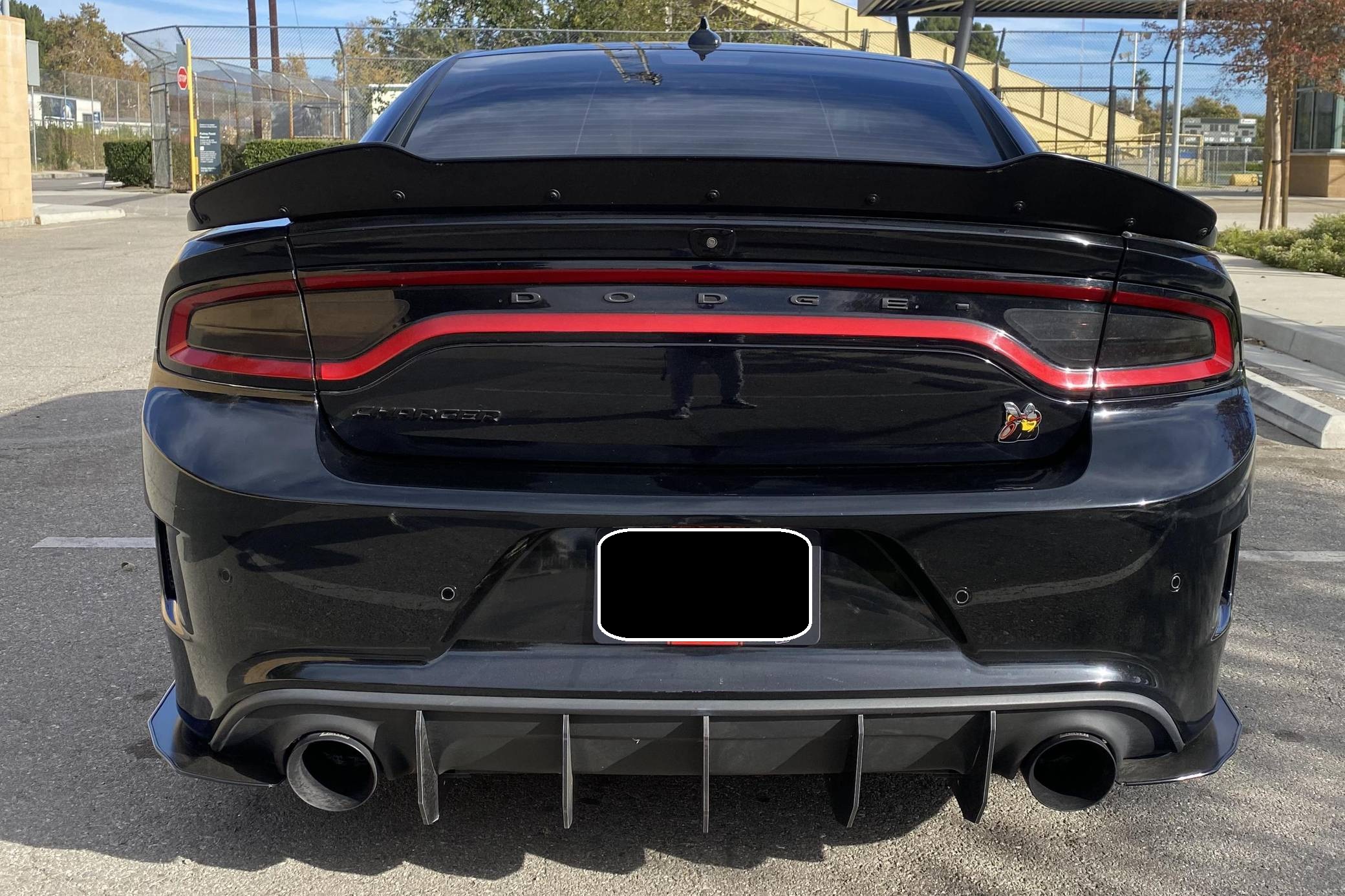 2019 Dodge Charger Scat Pack, finished in Pitch Black with a custom Red interior. Modifications reported by the seller include Dynomax Race Bullet resonators, Carven 5-inch exhaust tips in black, King Wraps custom side skirts, "wicker bill" spoiler, spats, and rear diffuser, tinted windows and taillights, Sto N Sho license plate holder, custom red leather interior, LED interior bulbs, and painted brake calipers. Dodge rebooted the Charger for the 2011 model year with a new exterior design and better visibility. 2015 brought a facelift that ushered in a more muscular-looking design and better interior materials. Power comes from a 6. 4-liter Hemi V8 engine, which produces 485 horsepower and 475 lb-ft of torque. Power is sent to the rear wheels via an 8-speed automatic transmission.