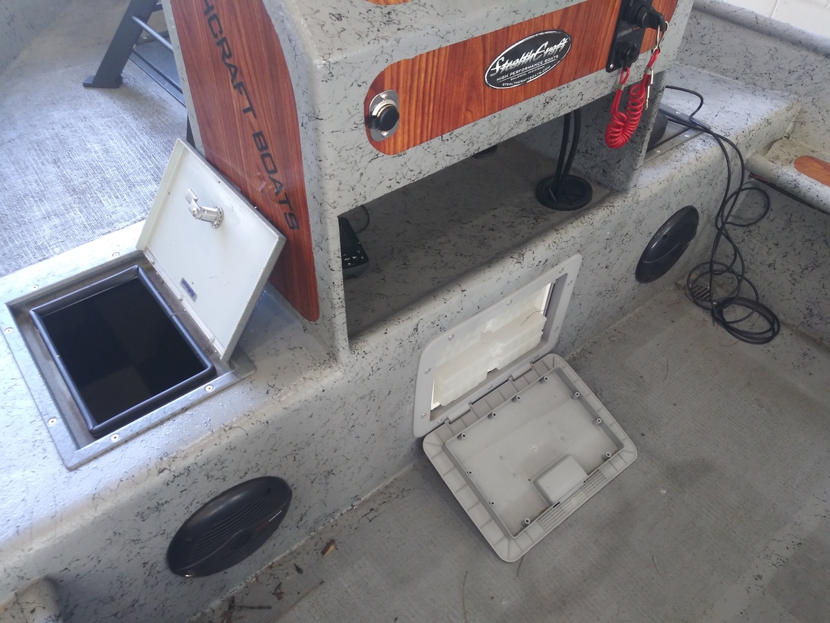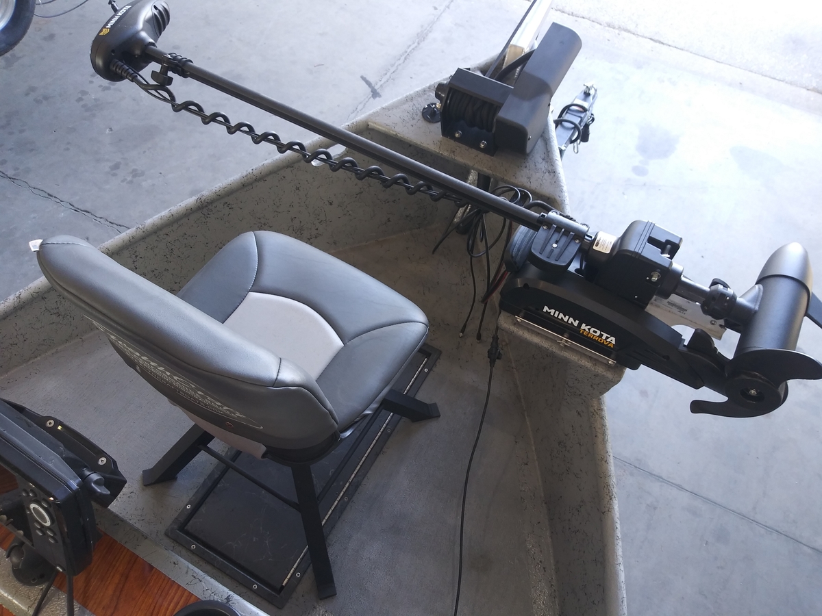 Terrova 55-lb. thrust iPilot link, Drift Pro river anchor winch with 50-lb. pyramid anchor, Stereo with 4 speakers, Humminbird Helix 7 MDI, Washdown, 2 matching Stealthcraft tables with 4 corner cupholders apiece, 3-bank Minn Kota battery charger, 17-gal. fuel tank, Aluminum I-beam trailer.