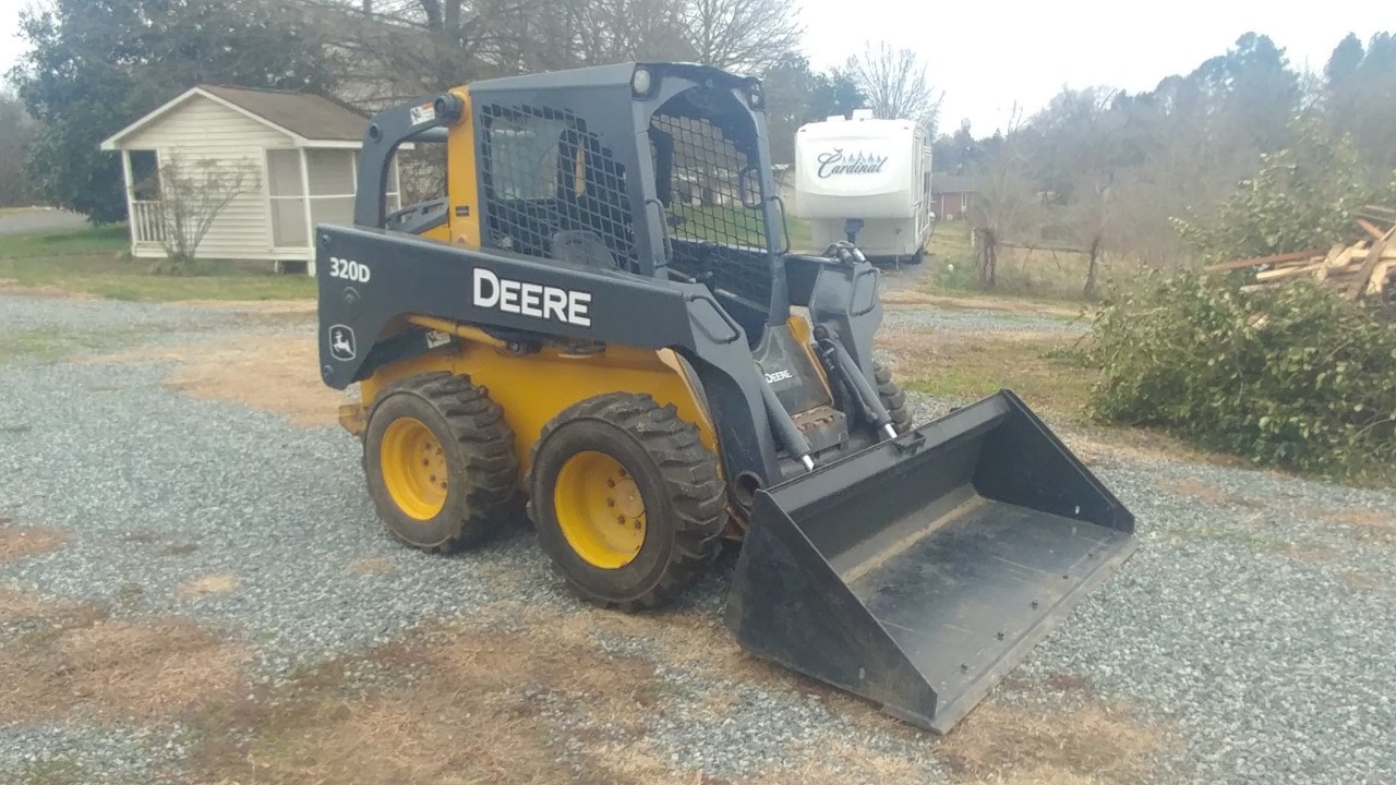 2011 JOHN DEERE 320D. Open ROPS 63 HP, 2 speed with hand-and-foot controls, 80" Bucket, Quick Attach. It has a four-cylinder John Deere 4024T E liquid-cooled turbocharged diesel engine that produces 63 horsepower.