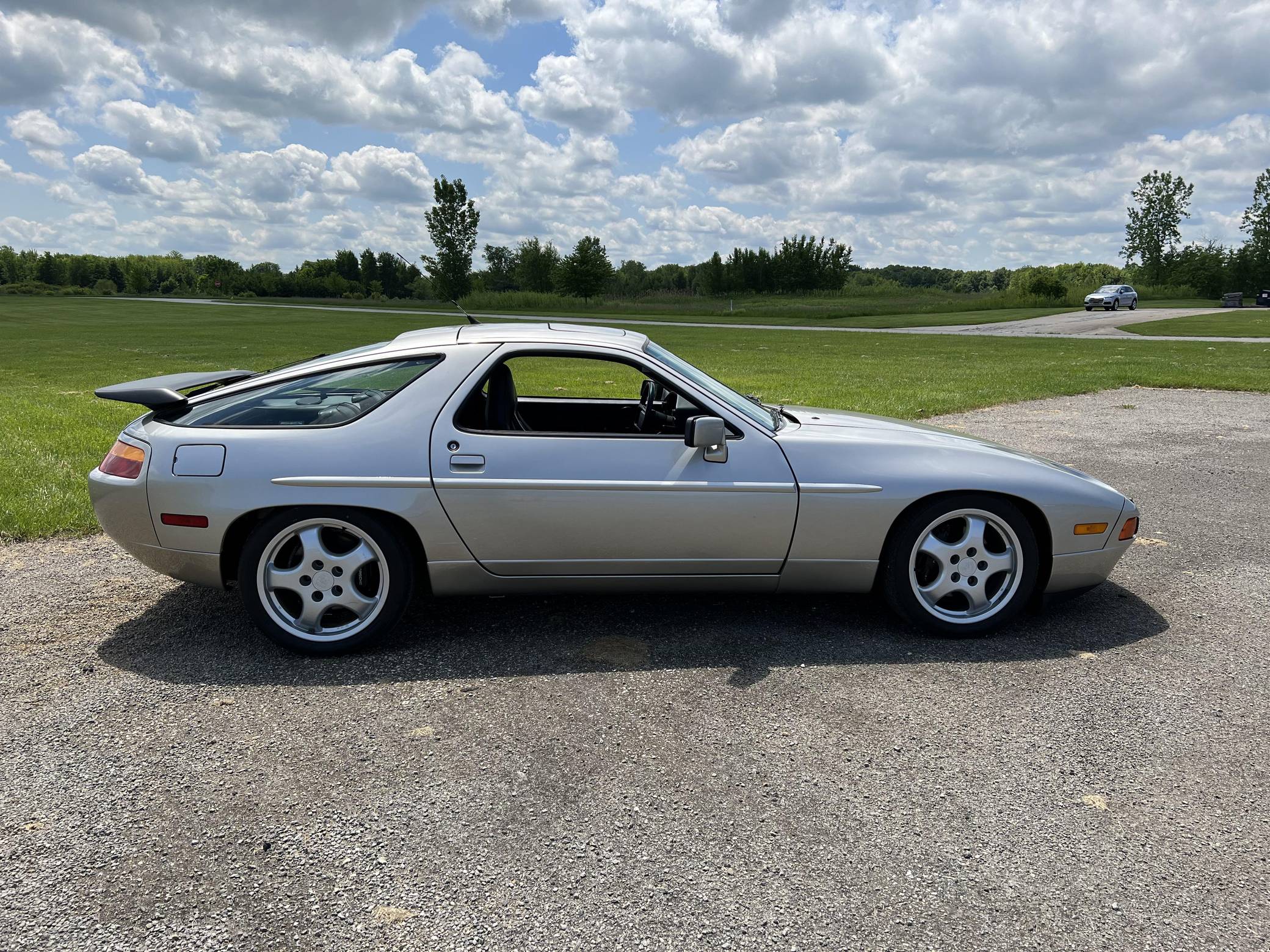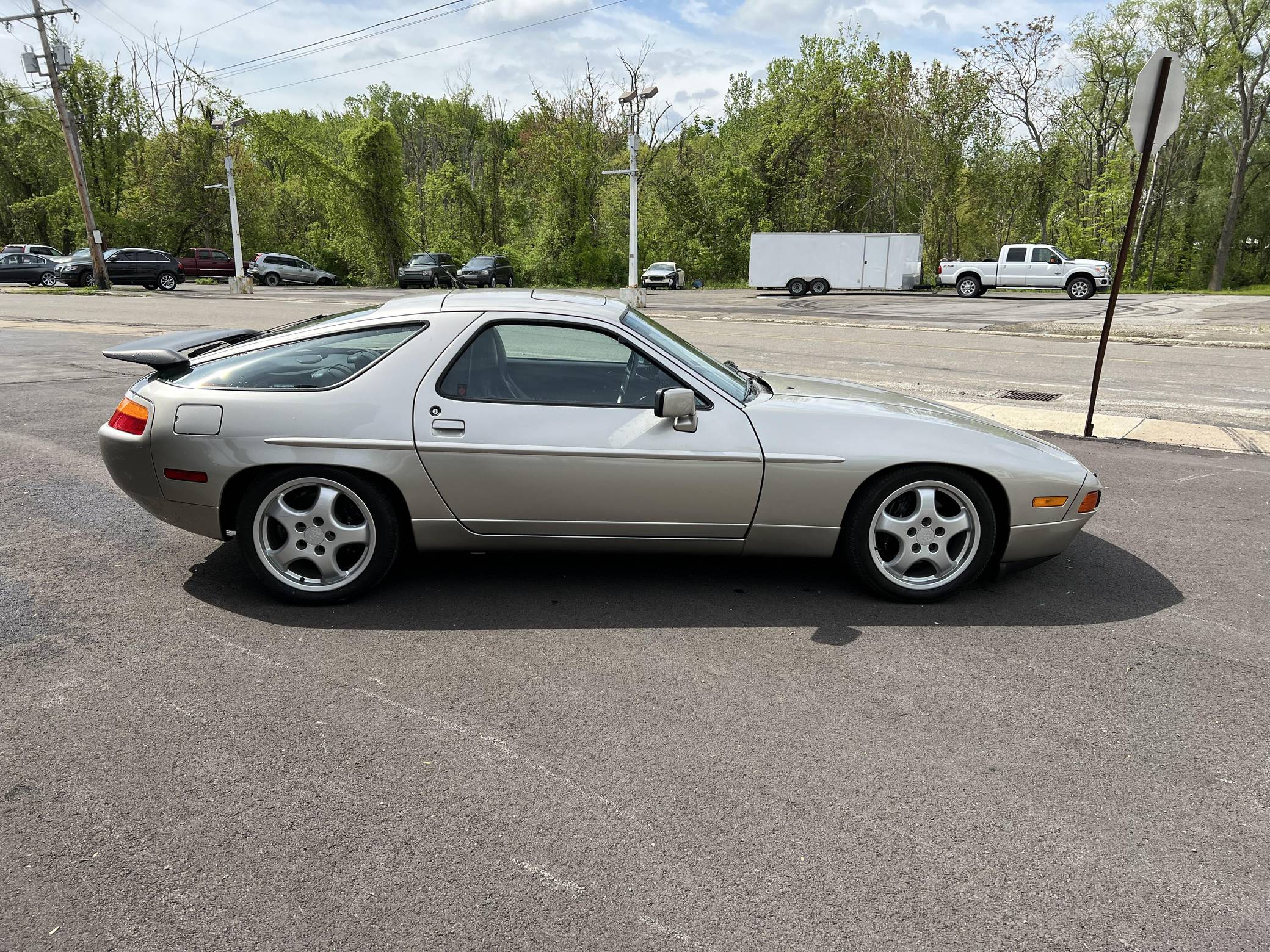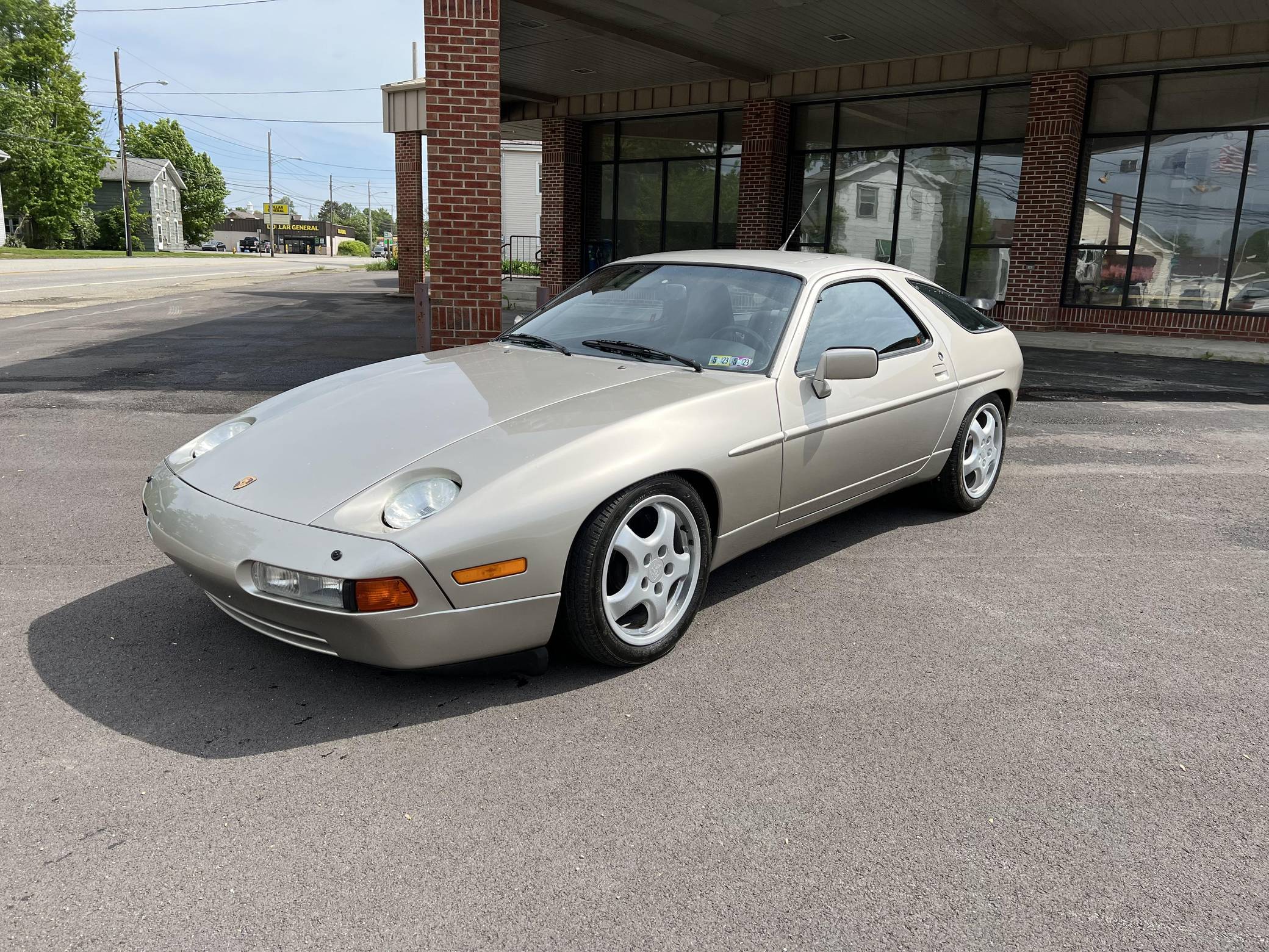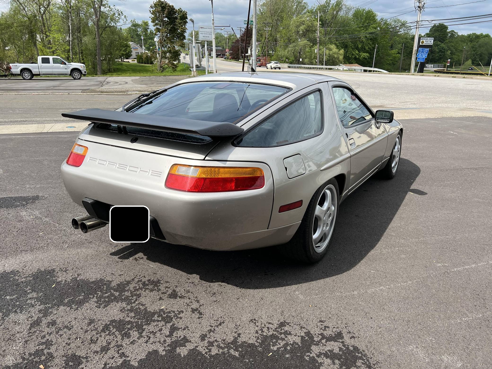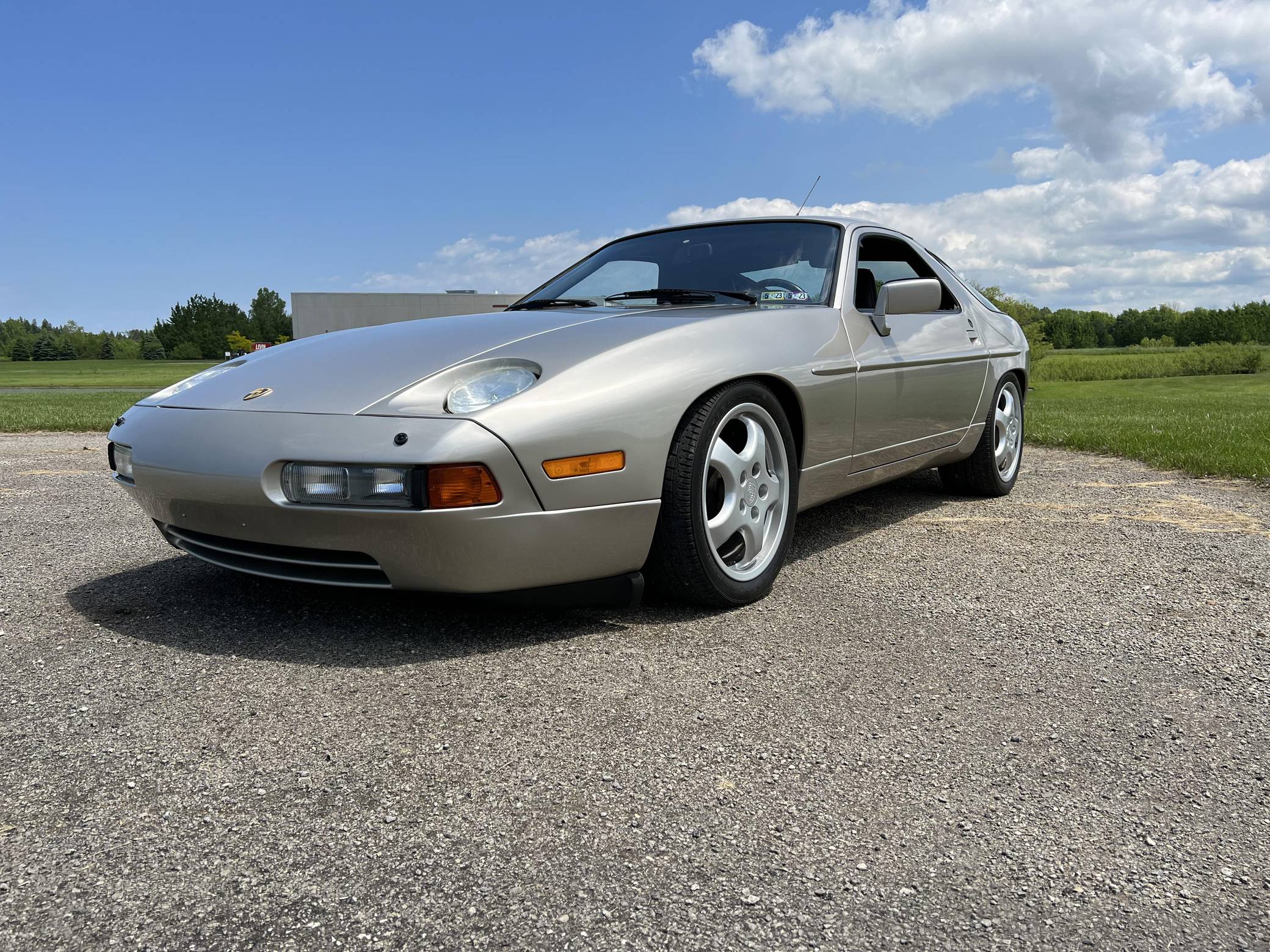 1989 Porsche 928 S4, finished in Linen Metallic with a black interior. This 928 is equipped with the desirable 5-speed manual transmission, and its odometer currently indicates about 35,100 miles. Factory equipment includes 17-inch alloy wheels, a 40% locking differential, pop-up headlights, a rear window wiper, a power sunroof, leather upholstery, and rear seat air conditioning. Modifications reported by the seller include performance camshafts, a Paxton adjustable fuel pressure regulator, a Porken timing belt tensioner, Bilstein coilovers, a Borla exhaust system, and an Alpine head unit. Originally developed to replace the 911, the 928 made its American debut for the 1978 model year. It looked nothing like its intended predecessor, it adopted a completely different engine layout, and Porsche relied on aluminum components to keep weight in check. Horsepower grew on a regular basis during the 1980s while several design updates characterized later models, and the 928 remained positioned at the top of Porsche's line-up of regular-production cars until it finally retired after the 1995 model year. Power comes from a 5. 0-liter V8 engine, rated at 320 horsepower and 317 lb-ft of torque. It spins the rear wheels via a 5-speed manual transmission.