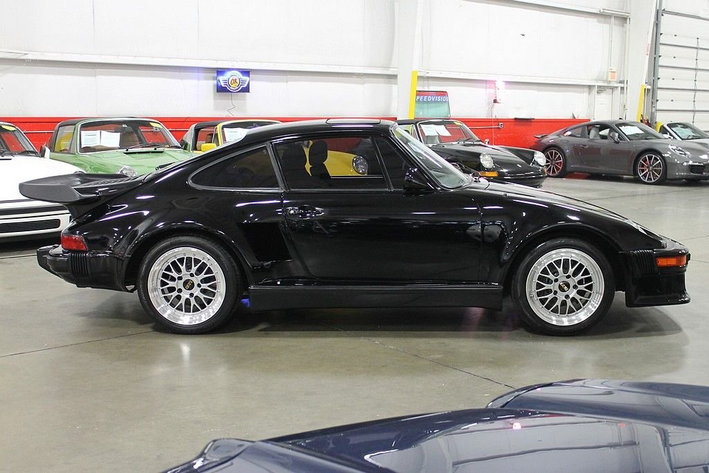 1975 marked the year that Porsche took its turbo charged program from the race track and integrated into its street production cars offered to the public. The car was introduced as the 930 and its noticeably more bodacious body lines combined with the extra kick of the turbo charged system, the 930 forced its self on the world stage as an instant exotic and later, with some improvements and the “Flachbau” or slant-nose, would be held in the highest realm of the supercars of the 80's. The “Flachbau” caught its cues from the legendary 935 race cars that dominated the endurance racing world and also brought Porsche to victory in the FIA World Championship for Makes each year from 1976 to 1979. The “Flachbau” could only be ordered through Porsche's Special Wish program and with the nose of each car hand crafted the cars commanded a hefty premium and factory examples were and are very sparse. Demand was such that the slant or 935 look spawned companies such as DP and American International Racing to take their conversions originally designed for the racing circuit and offer them as conversions to Porsche's 911 and 930 production car lines. We are pleased to offer this well documented fully serviced 1981 Porsche 930 Turbo American International Racing (A.I.R.) conversion. American International Racing was and still is one of the leading aftermarket body panel manufacturer for Porsche conversions and Porsche Race cars. History indicates that the A.I.R conversion was done performed in the early 80's with much attention to detail. The front spoiler, the cooling cut outs, the front fenders, the rear spoiler and the side sport mirrors are all derived from the 934 and 935 racing legends. The car also features Recaro Racing Seats, newer BBS Wheels and new tires (255/40/17 rear, 205/40/17's). Vehicle was purchased in June of 1987 and held in a private collection for the next 26 years with very little use. In the fall of 2011, the car went through a major engine out service addressing everything needed for a car that had been sitting for 20 plus years. Complete service on the fuel system including the tank, new oil return tubes, complete engine out reseal, new chain tensioners, new pop off valve, rebuilt turbo, and general freshening. (See Service Receipt in photo's.) The car has since been driven 725 miles and this 31218 mile example remains mechanically fit, possess plenty of power, smooth shifting and true braking. Cosmetically, the car remains excellent as it was stored in a climate controlled environment since its purchase in 1987. Air cooled 911's have taken the globe by storm in recent years and continue to be highly sought after, low mile, period modified example such as this will continue to be a proven investment.