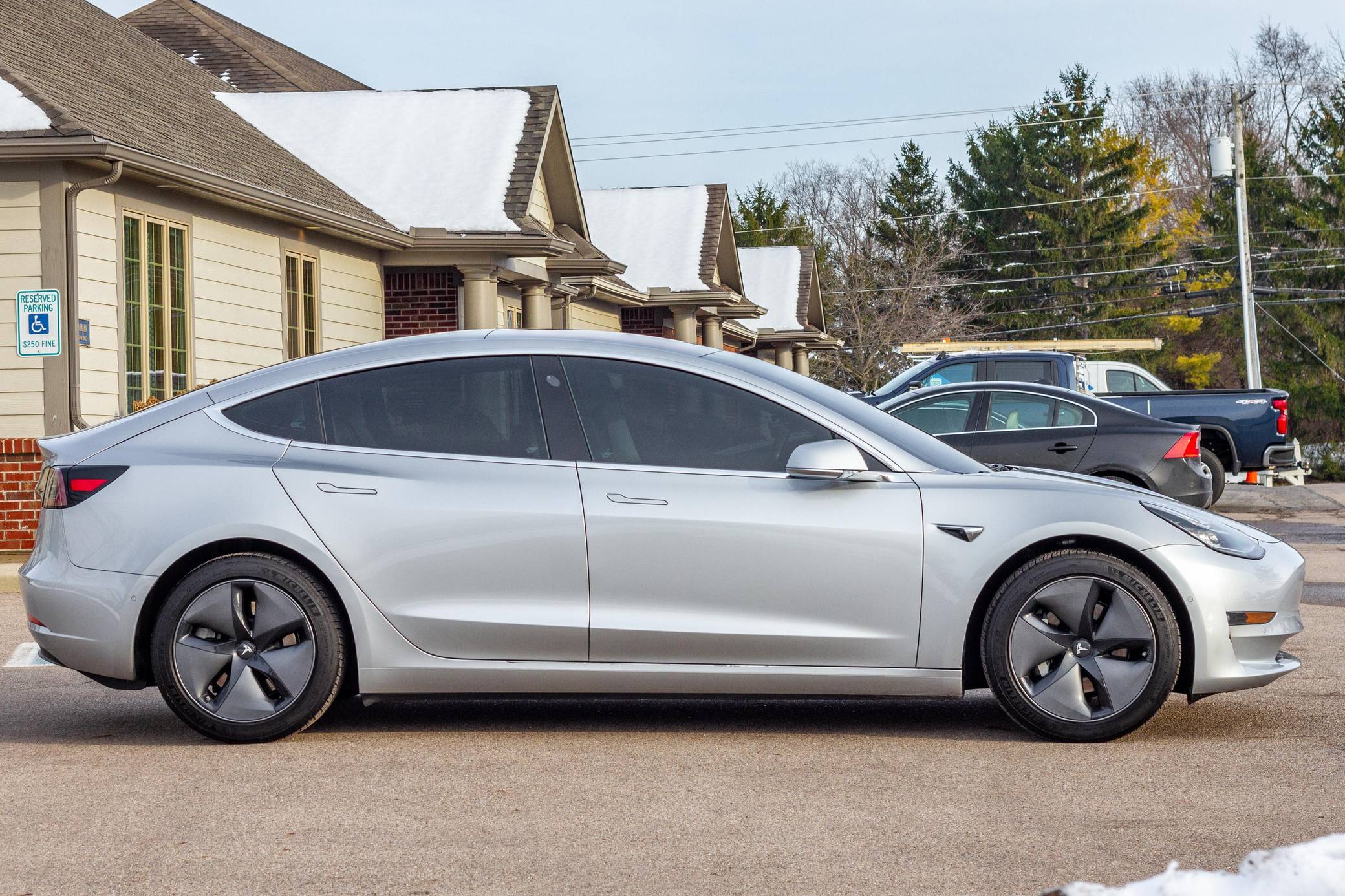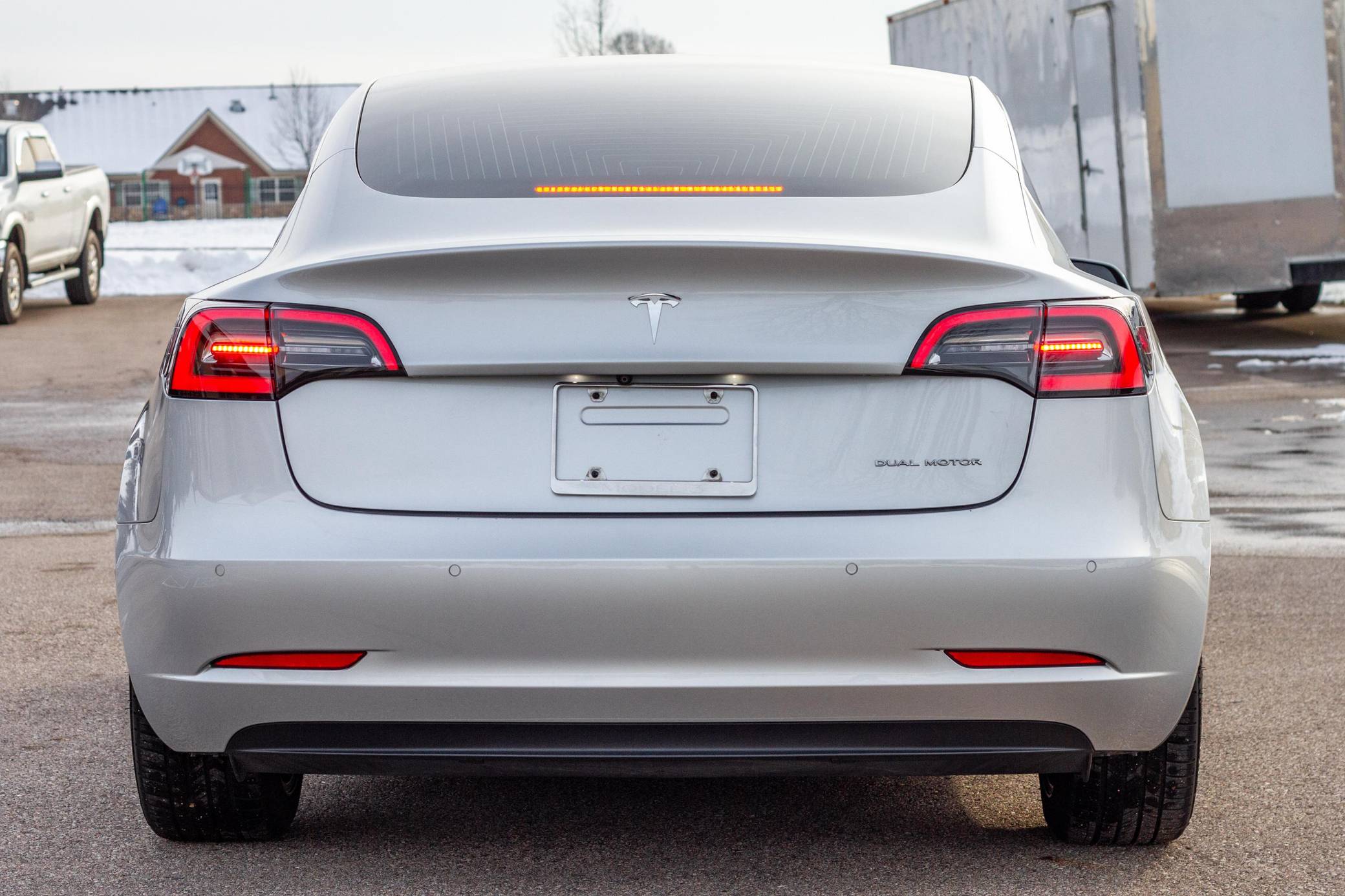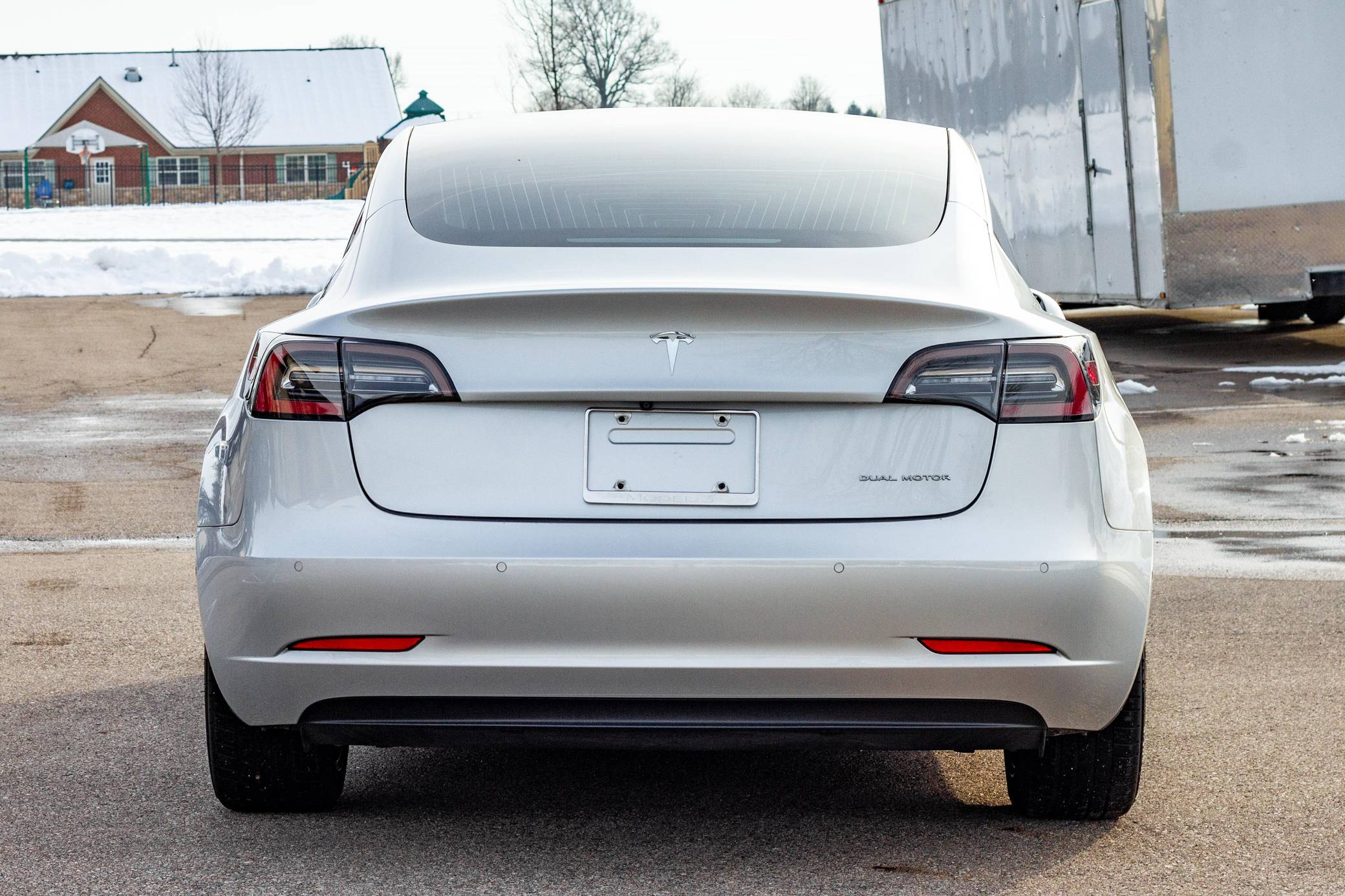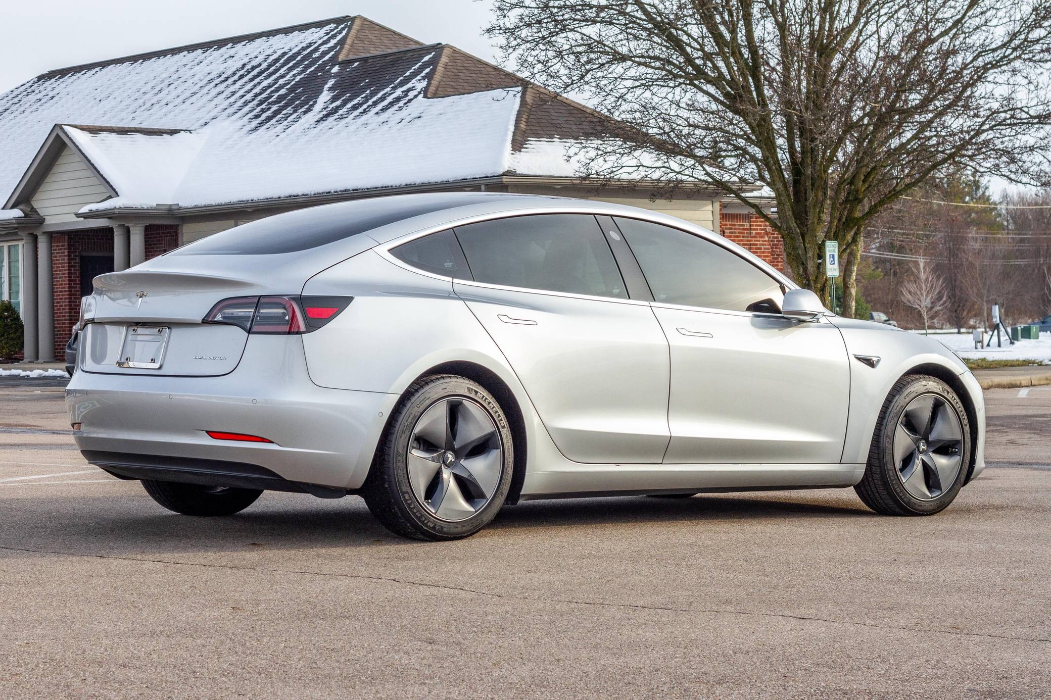 THIS. . . is a 2018 Tesla Model 3 Long Range AWD, finished in Silver Metallic with a Premium White interior. Factory equipment includes the Premium Interior Package, 18-inch wheels, a panoramic roof, automatic climate control, a navigation system, Enhanced Autopilot, and Full Self-Driving capability, among others listed below. Modifications reported by the seller include paint protection film on the forward facing panels, rocker panels, and rear bumper, a Nomad Qi phone charger, carbon fiber-style trim on center console and doors, and Tesla roof sunshades. At launch, the Model 3 was presented as a premium EV with a usable driving range and respectable performance, all at a reasonably attainable price as it was Tesla's entry-level car. It's still available today, and it has gone through several evolutions (including many software updates) since its introduction. Power comes from a pair of electric motors that draw electricity from a 75-kilowatt-hour lithium-ion battery pack to zap the four wheels with 346 horsepower and 389 lb-ft of torque, according to third-party estimates. This Model 3's maximum driving range was rated at 310 miles in 2018 by the EPA.