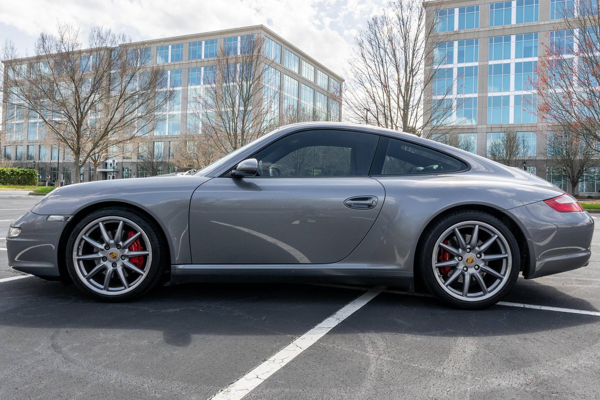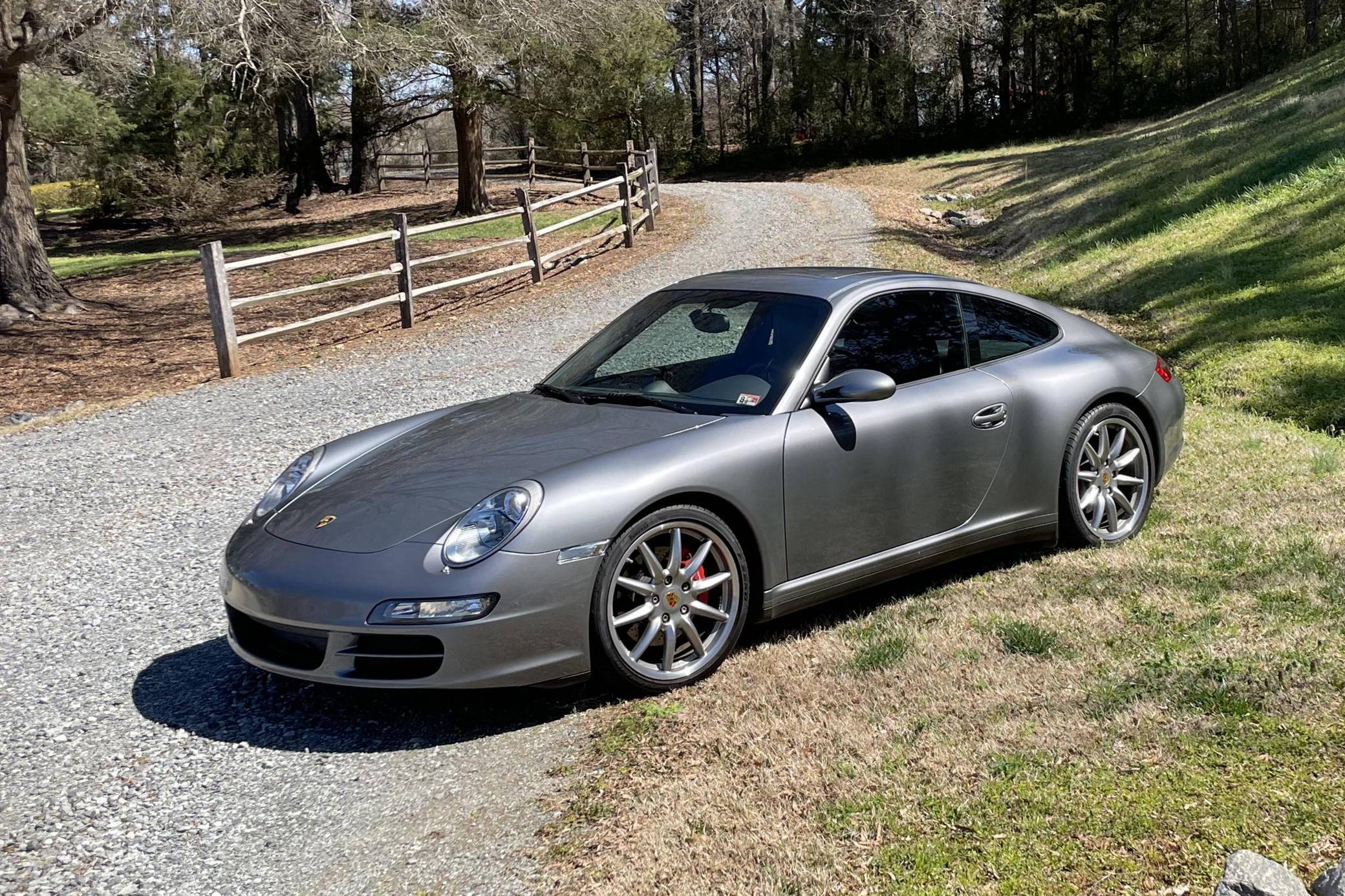 THIS. . . is a 2006 Porsche 911 Carrera 4S Coupe, finished in Seal Grey with a Natural Grey interior. The odometer on this 911 currently displays about 15,800 miles. Factory equipment includes the Sport Chrono Package Plus, 19-inch Carrera Sport wheels, a sport exhaust system, leather upholstery, adaptive sport seats, and more as detailed below. Modifications include a Pioneer head unit, an aftermarket amplifier, tinted windows, and clear side marker lights. The 997-generation 911 launched for 2005 with a more powerful flat-6 than the outgoing model, oval headlights, and an upgraded interior. By combining retro and modern design cues in a water-cooled 911, it was instantly beloved among enthusiasts — and it presents a compelling package for those looking for a smaller and lighter 911 from the modern era. Power for this 911 comes from a 3. 8-liter flat-6 engine, rated at 355 horsepower and 295 lb-ft of torque. It spins all four wheels via a 5-speed Tiptronic S automatic transmission.