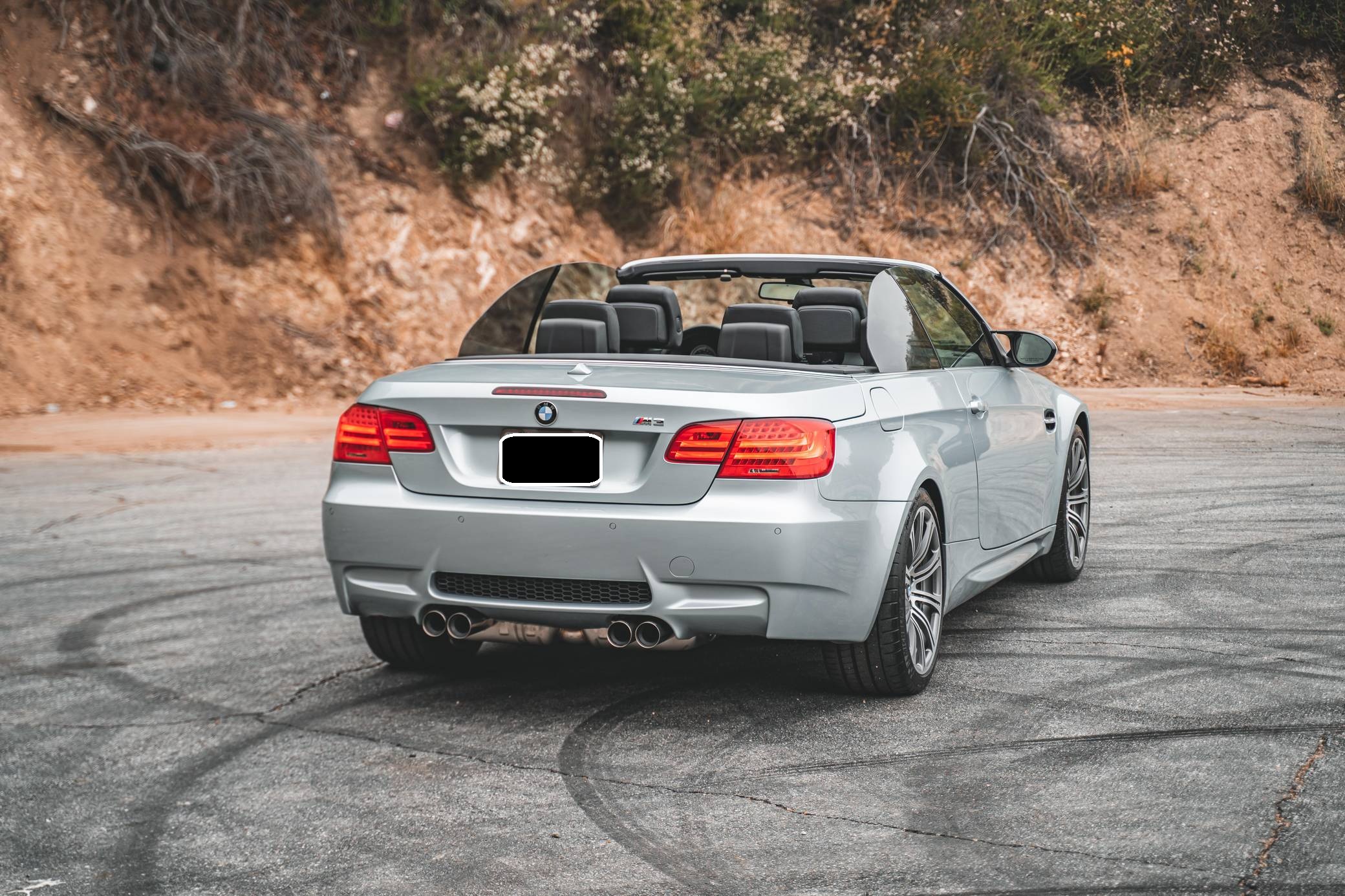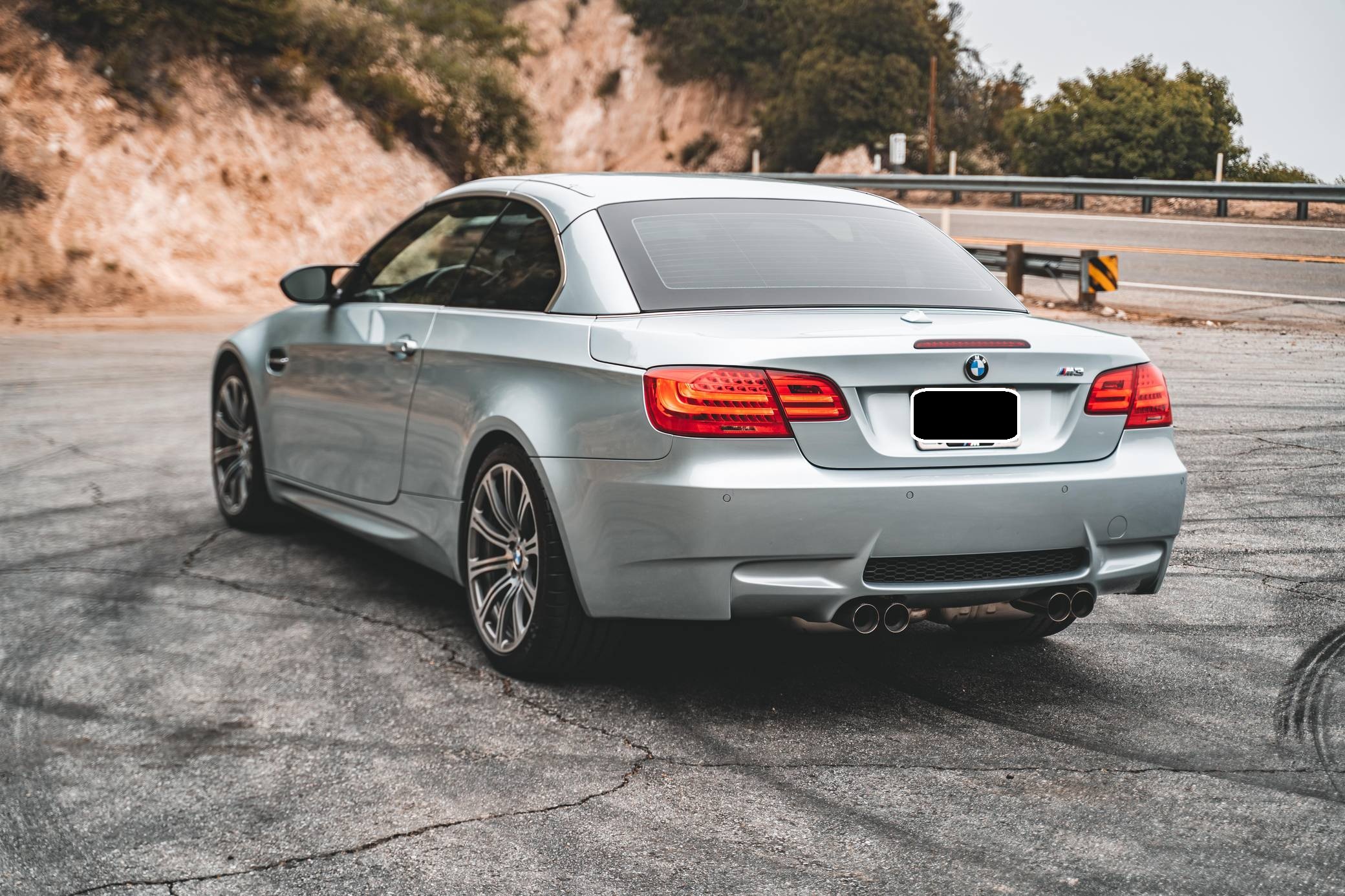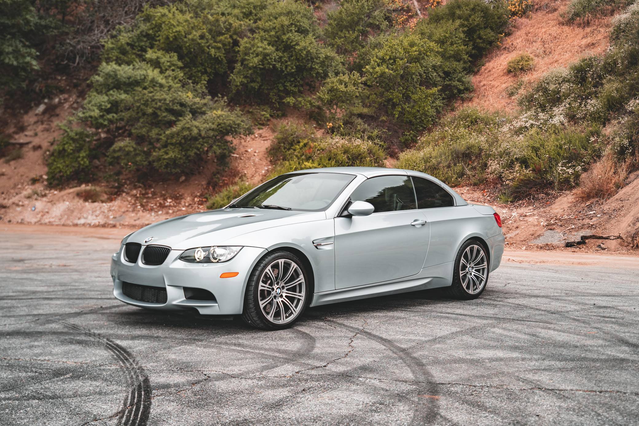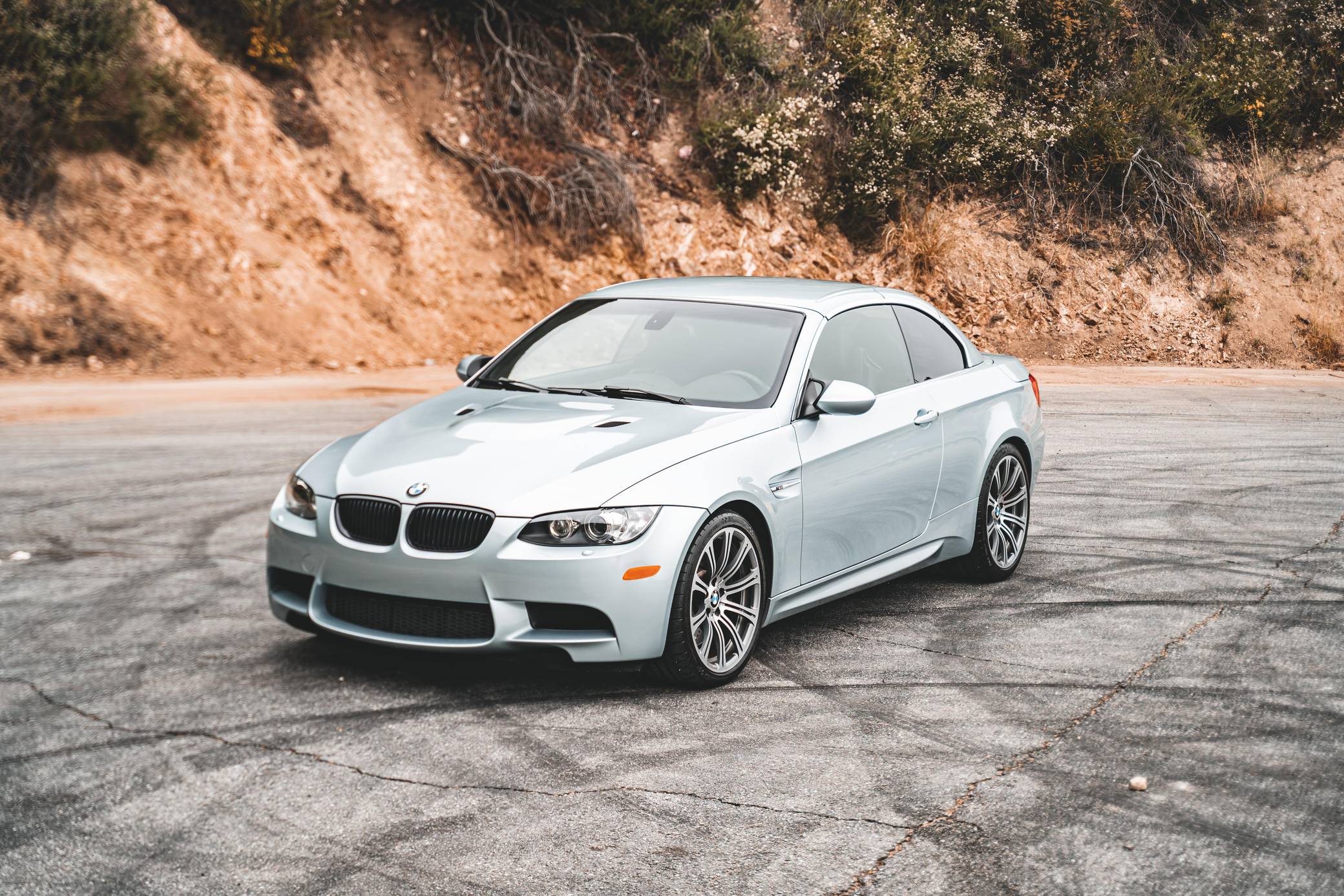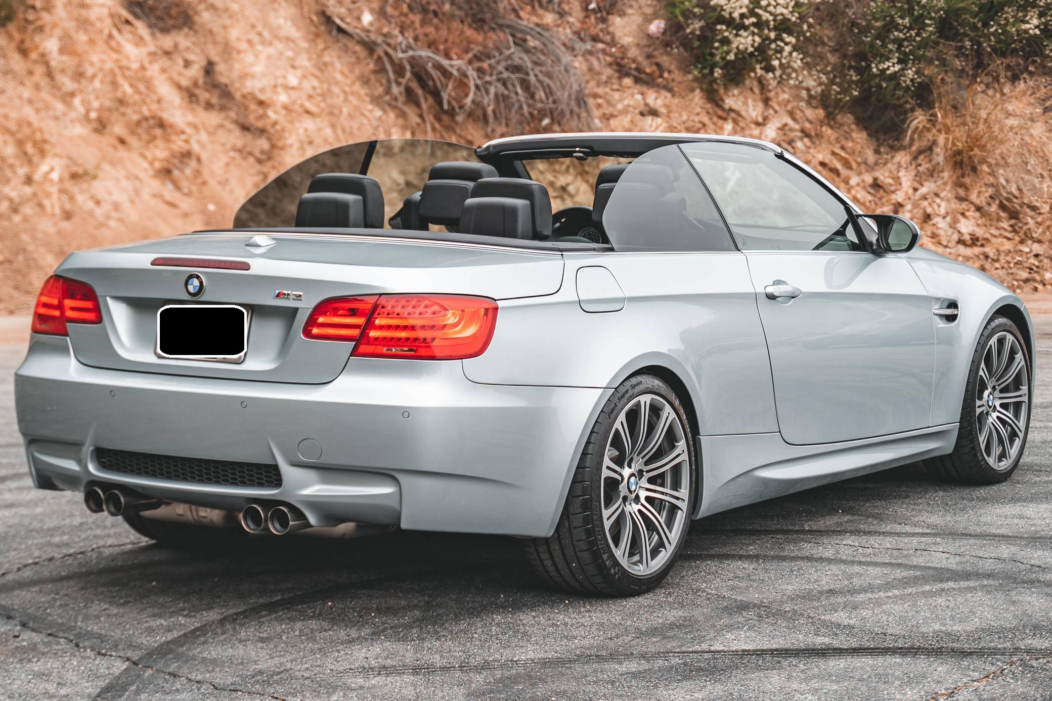 2011 BMW M3 Convertible, finished in Silverstone Metallic with a black interior. This BMW features the desirable 6-speed manual transmission, and the odometer displays approximately 22,200 miles. According to the Monroney Label shown in the gallery, this M3 had an original MSRP of $79,850. Factory equipment includes the Premium Package 2, the Convenience Package, and the Cold Weather Package, among other features. Modifications reported by the seller include a BMW M Performance exhaust system, BMW gloss black kidney grilles, and LED "angel eye" light bulbs. BMW had to balance horsepower and weight as it developed the first M3 equipped with a V8 engine. Released for 2008, and based on the "E90"-generation 3 Series, it won over skeptical enthusiasts by offering performance that approached supercar levels in a practical, daily-drivable package. Sedan, coupe, and convertible variants were offered. Power comes from a 4. 0-liter "S65" V8, rated at 414 horsepower and 295 lb-ft of torque. It spins the rear wheels via a 6-speed manual transmission and a limited-slip differential.