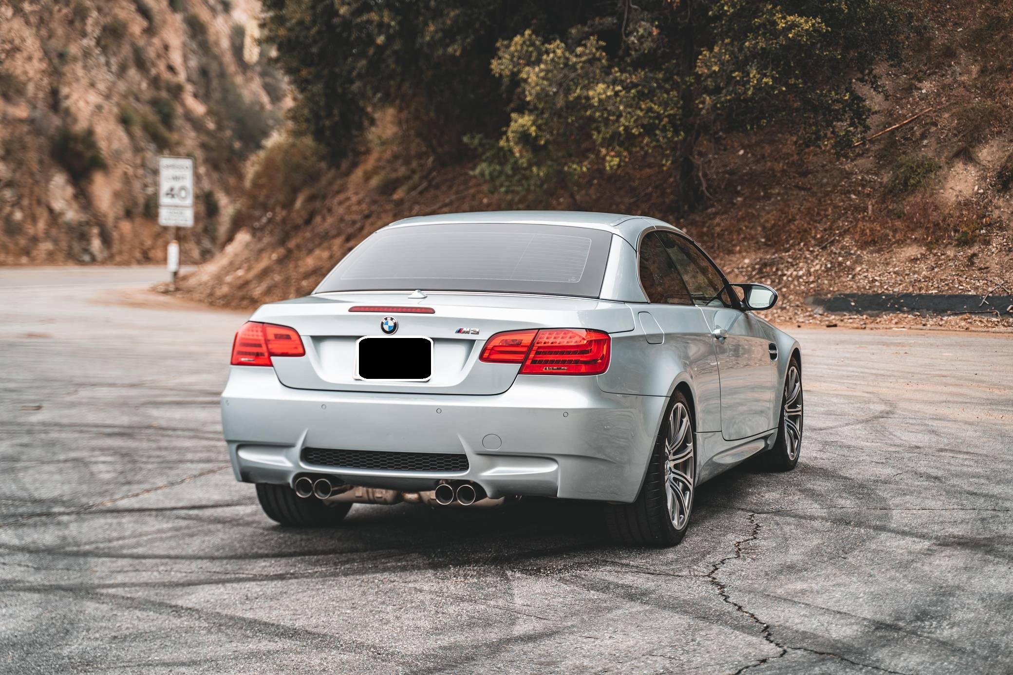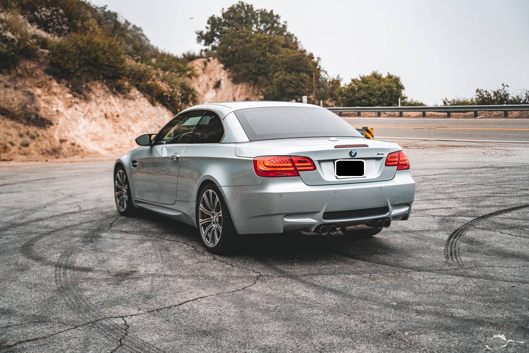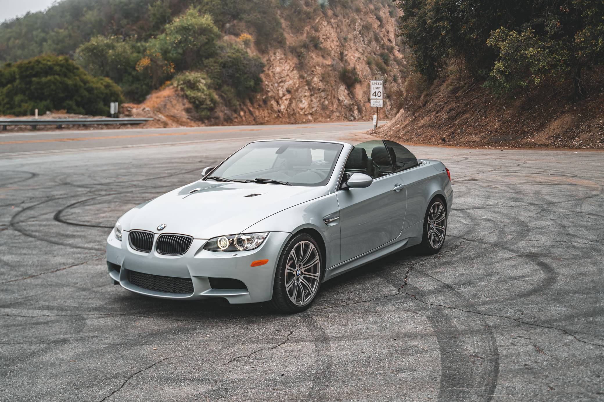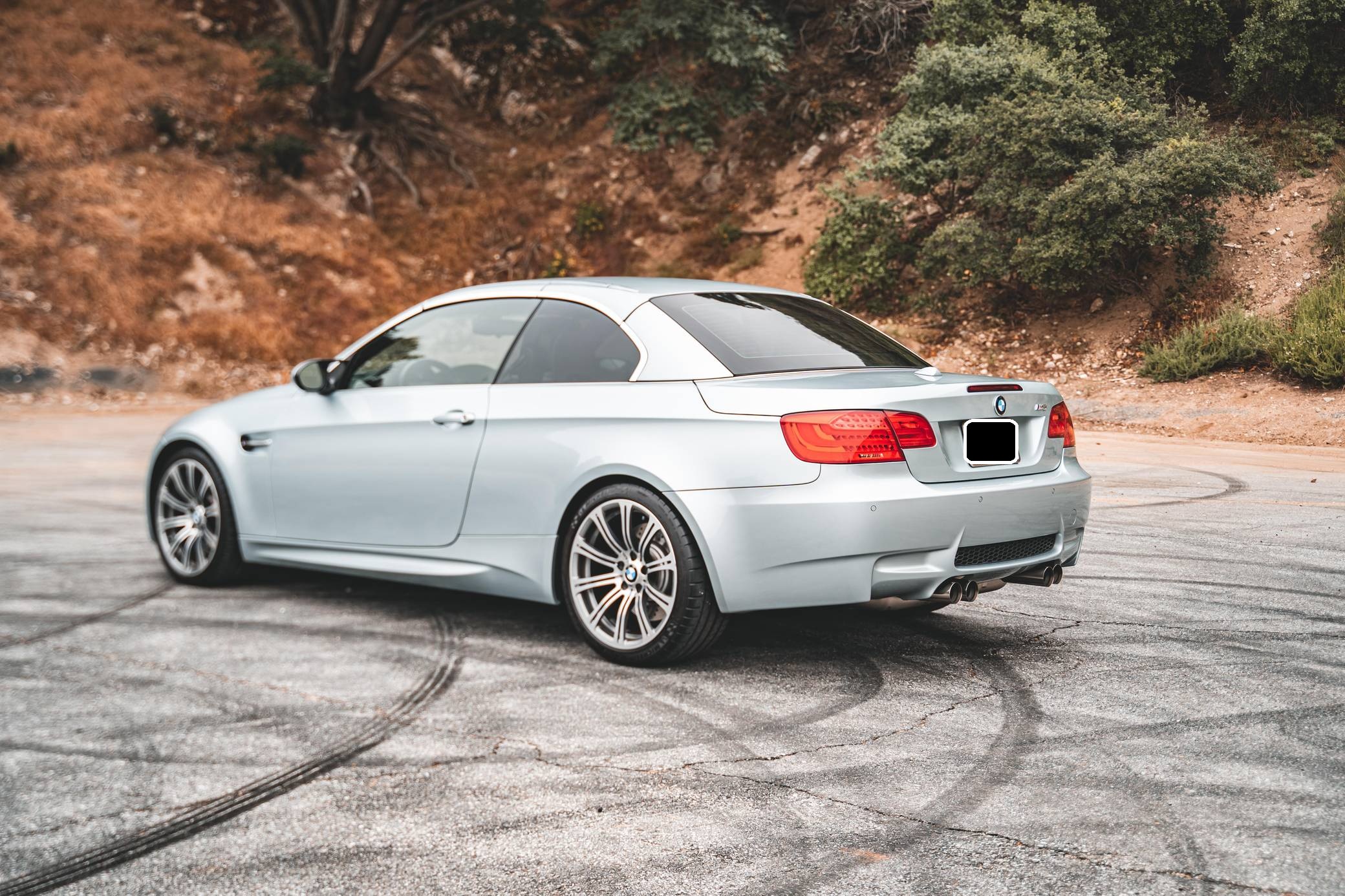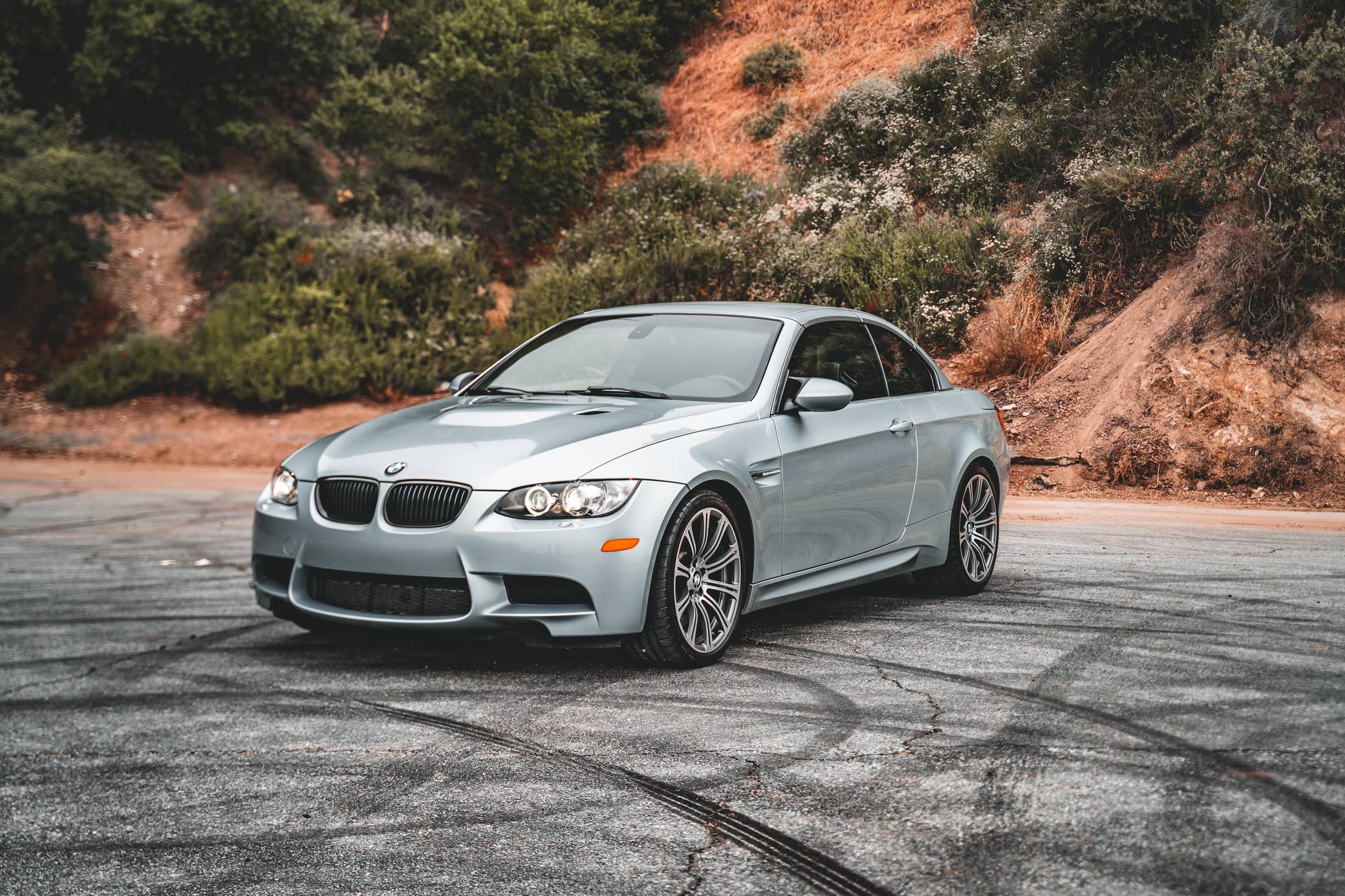2011 BMW M3 Convertible, finished in Silverstone Metallic with a black interior. This BMW features the desirable 6-speed manual transmission, and the odometer displays approximately 22,200 miles. According to the Monroney Label shown in the gallery, this M3 had an original MSRP of $79,850. Factory equipment includes the Premium Package 2, the Convenience Package, and the Cold Weather Package, among other features. Modifications reported by the seller include a BMW M Performance exhaust system, BMW gloss black kidney grilles, and LED "angel eye" light bulbs. BMW had to balance horsepower and weight as it developed the first M3 equipped with a V8 engine. Released for 2008, and based on the "E90"-generation 3 Series, it won over skeptical enthusiasts by offering performance that approached supercar levels in a practical, daily-drivable package. Sedan, coupe, and convertible variants were offered. Power comes from a 4. 0-liter "S65" V8, rated at 414 horsepower and 295 lb-ft of torque. It spins the rear wheels via a 6-speed manual transmission and a limited-slip differential.