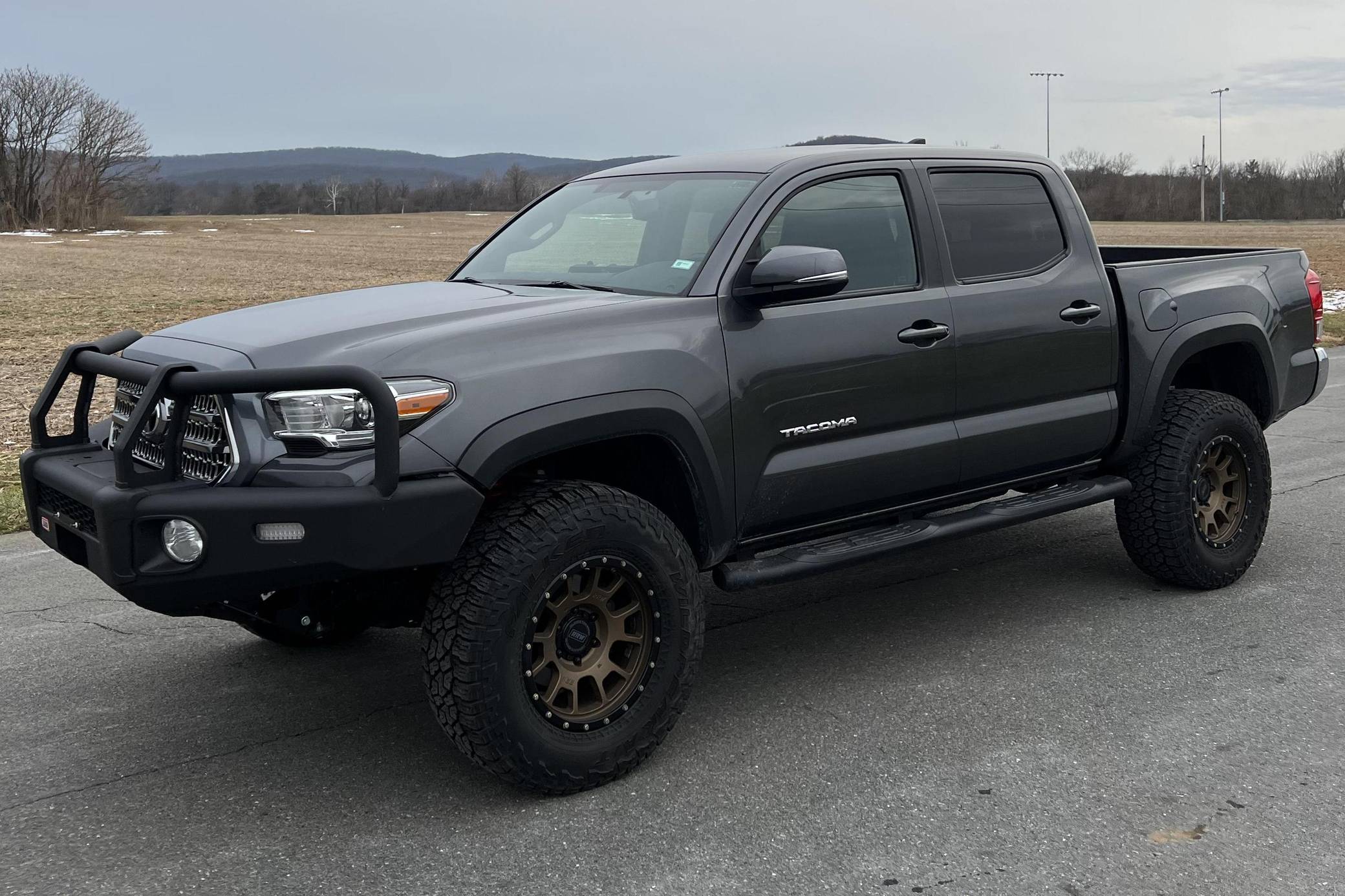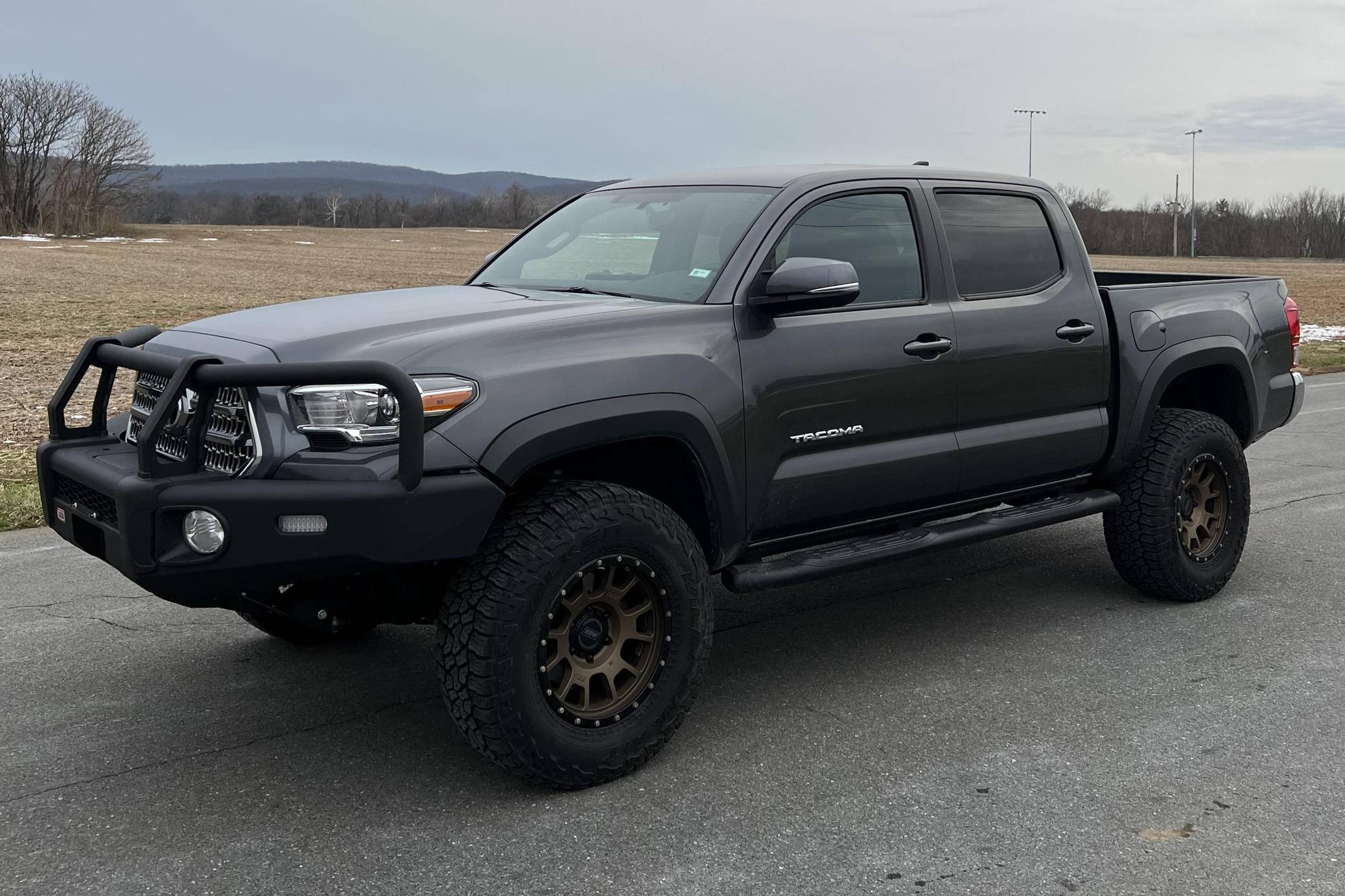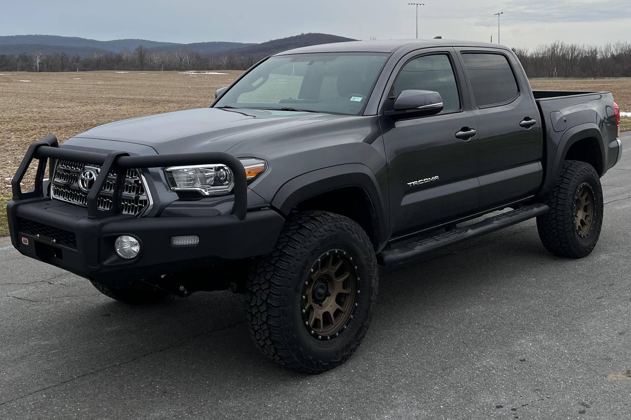 2017 Toyota Tacoma TRD Off-Road Double Cab 4x4, finished in Magnetic Gray Metallic with a black interior featuring orange accents. According to the build sheet provided in the photo gallery, factory equipment includes the TRD Off-Road Package, Entune premium sound system, the V6 Tow Package, a locking rear differential, keyless entry, Multi-Terrain Select Crawl Control, and more as detailed below. Modifications reported by the seller include an ARB front bumper, a Dobinson 2-inch suspension lift, and 17-inch RRW wheels with Falken Wildpeak tires. The full list of modifications can be seen below. Introduced in 2015, the third-generation Tacoma came equipped with an optional Atkinson cycle V6 engine utilizing Variable Valve Timing with intelligence (VVT-i), which replaced Toyota's previous VVT system. The third-generation "Taco" also featured updated styling, a more comfortable interior, and a more rigid high strength steel frame. Power comes from a 3. 5-liter V6, rated at 278 horsepower and 265 lb-ft of torque. Output is sent to the rear or all four wheels through a 6-speed manual transmission and a 2-speed transfer case.