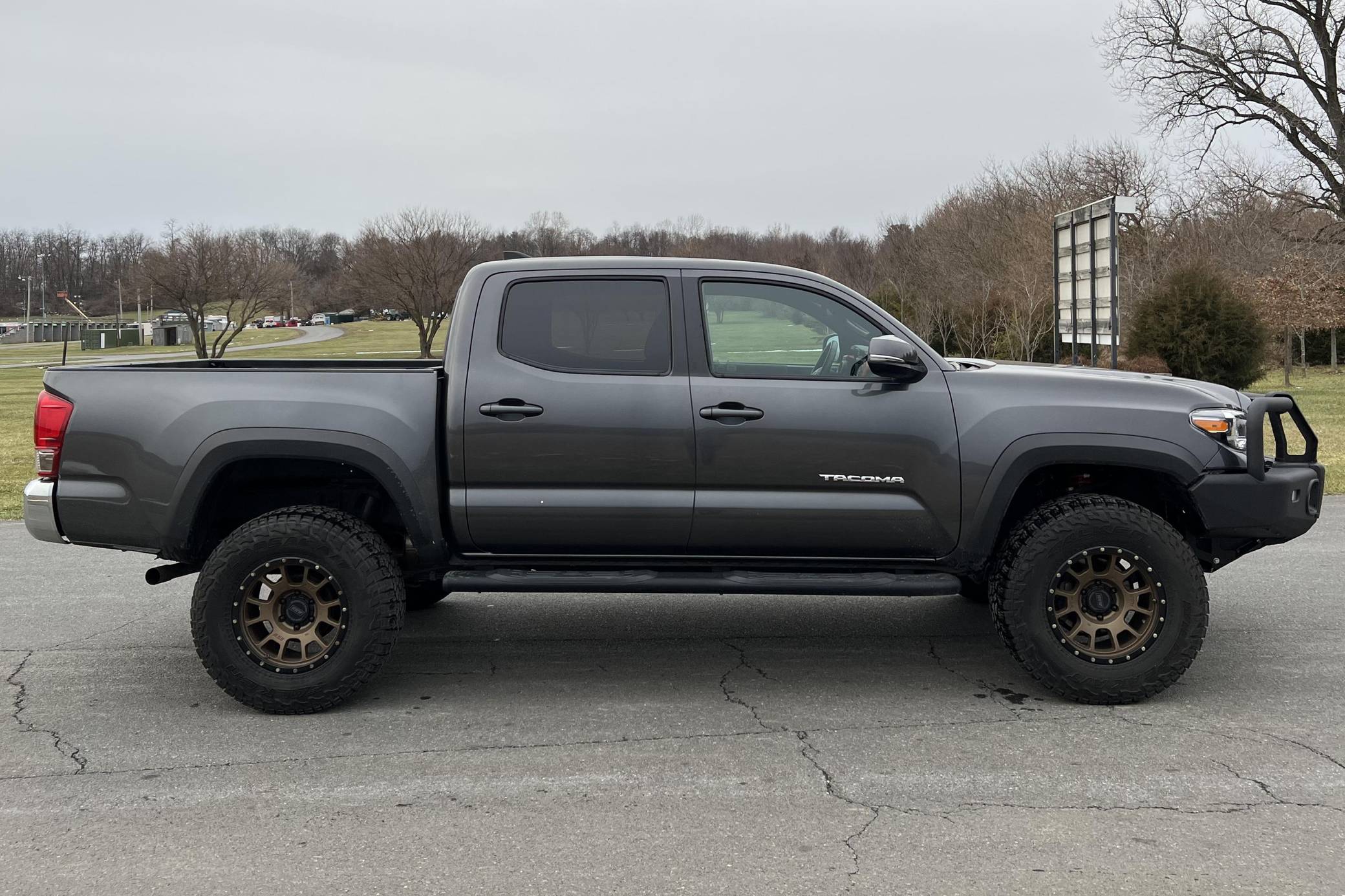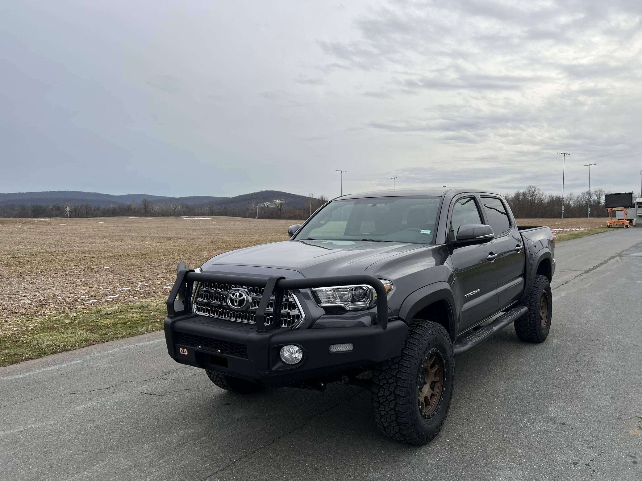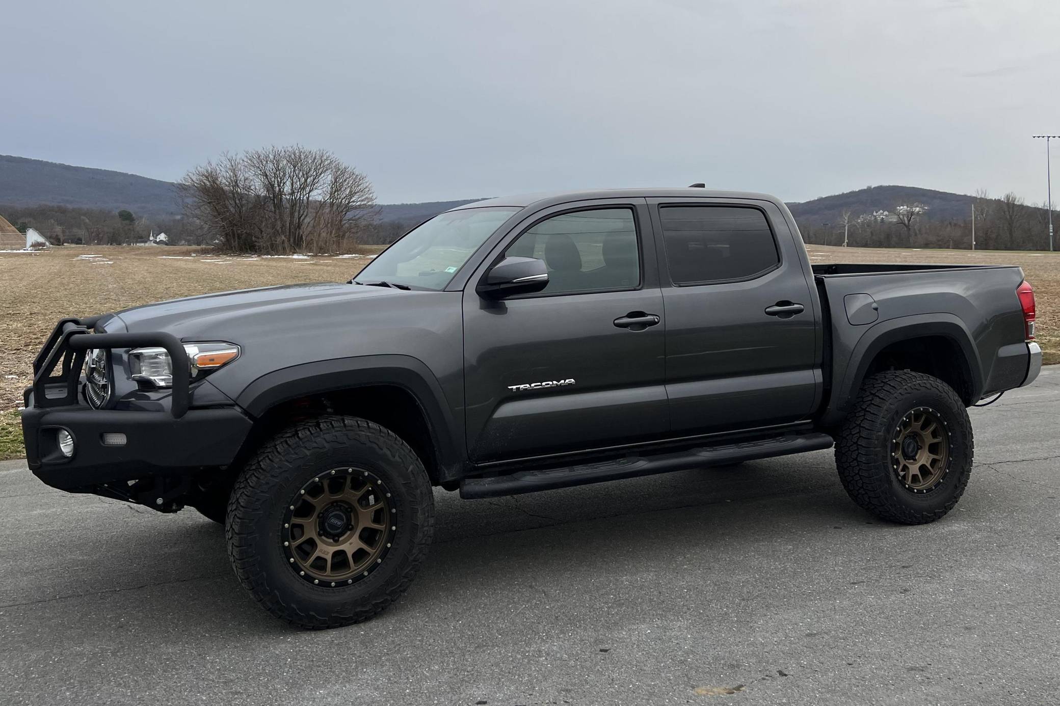 2017 Toyota Tacoma TRD Off-Road Double Cab 4x4, finished in Magnetic Gray Metallic with a black interior featuring orange accents. According to the build sheet provided in the photo gallery, factory equipment includes the TRD Off-Road Package, Entune premium sound system, the V6 Tow Package, a locking rear differential, keyless entry, Multi-Terrain Select Crawl Control, and more as detailed below. Modifications reported by the seller include an ARB front bumper, a Dobinson 2-inch suspension lift, and 17-inch RRW wheels with Falken Wildpeak tires. The full list of modifications can be seen below. Introduced in 2015, the third-generation Tacoma came equipped with an optional Atkinson cycle V6 engine utilizing Variable Valve Timing with intelligence (VVT-i), which replaced Toyota's previous VVT system. The third-generation "Taco" also featured updated styling, a more comfortable interior, and a more rigid high strength steel frame. Power comes from a 3. 5-liter V6, rated at 278 horsepower and 265 lb-ft of torque. Output is sent to the rear or all four wheels through a 6-speed manual transmission and a 2-speed transfer case.