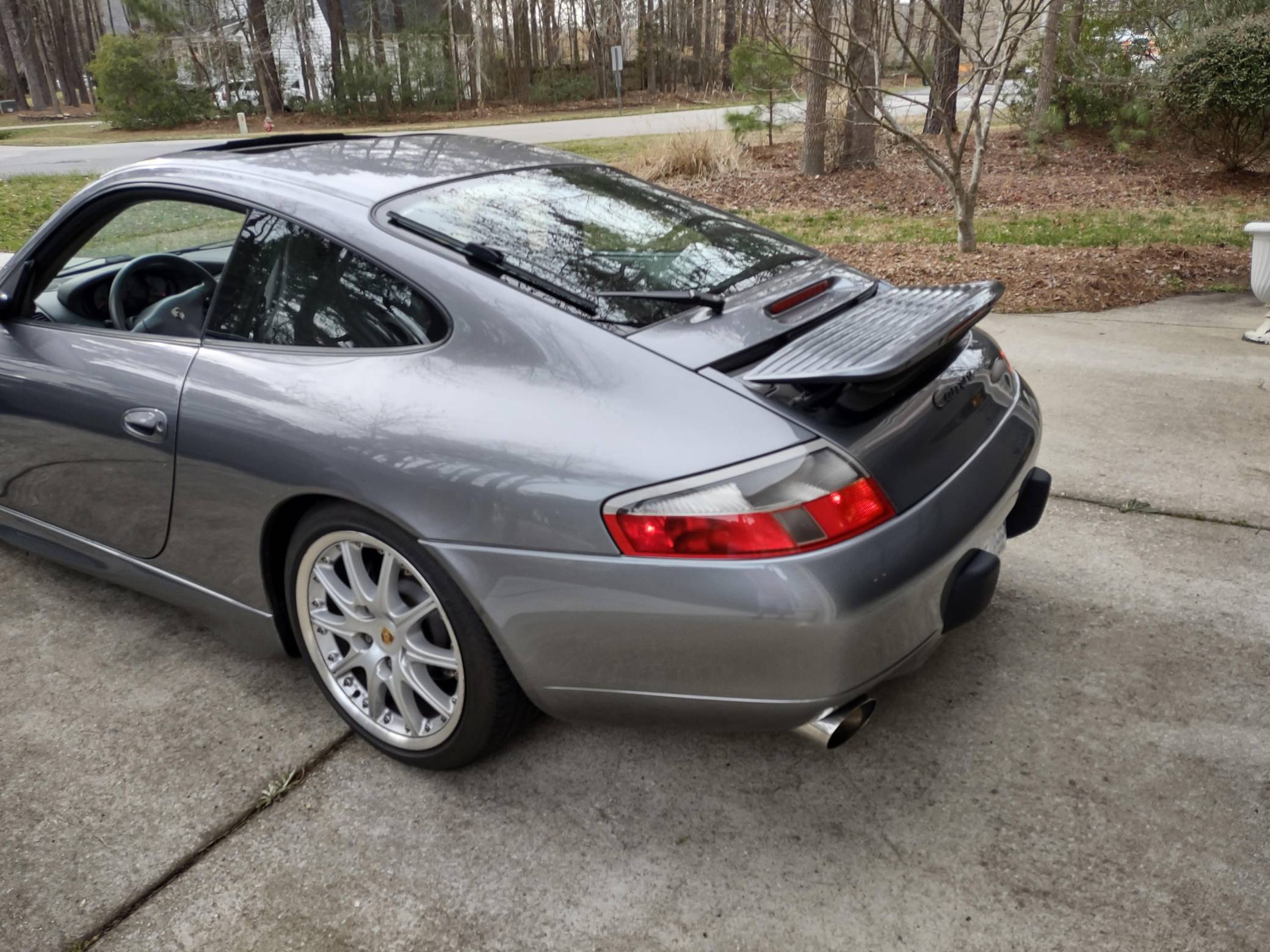 THIS. . . is a 2001 Porsche 911 Carrera Coupe, finished in Seal Grey Metallic with a Graphite Grey interior. This 911 is equipped with the desirable 6-speed manual transmission. Modifications reported by the seller include a Tubi exhaust system, Flat Six Motorsports intake tube and high flow air filter, an aftermarket short shifter kit, and an Alpine head unit. Porsche introduced the 996-generation 911 for the 1999 model year. It was the first water-cooled 911, and the line-up grew to include coupe, convertible, and Targa models plus a wide array of variants. While it marked a major departure for Porsche, appreciation for this game-changing platform is on the rise. Power comes from a 3. 4-liter flat-6, rated at 300 horsepower and 258 lb-ft of torque. The engine spins the rear wheels via a 6-speed manual transmission.