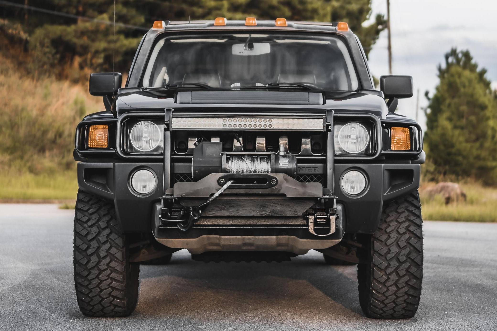 THIS… is a 2009 Hummer H3T Alpha, finished in black with a black interior. Factory equipment includes 16-inch wheels, locking front and rear differentials, a sunroof, leather upholstery, power-adjustable and heated front seats, a navigation system, and more as listed below. Modifications reported by the seller include a Tuff Stuff Overland 12,500-pound winch, an aftermarket light bar and brush guard, retrofitted factory fender flares, and more as detailed below. Launched in 2009, the H3T is derived from the H3 SUV, with 22. 3 inches added to the wheelbase and a 5-foot composite cargo bed. Most were equipped with an inline-5 engine, but the Alpha version was powered by a much larger V8 engine. The Alpha also received a higher-quality interior and other niceties to further justify the $8,565 increase in cost over the base H3. Power comes from a 5. 3-liter V8 engine, rated at 300 horsepower and 320 lb-ft of torque. Power is sent to all four wheels via a 4-speed automatic transmission.