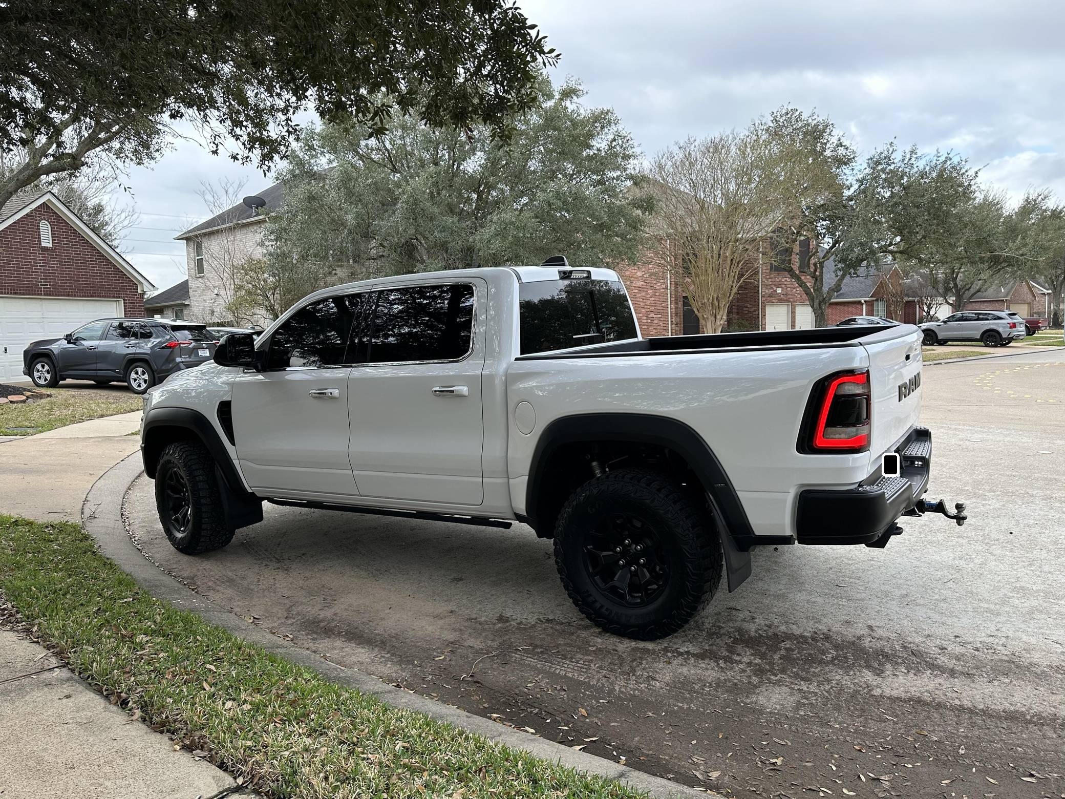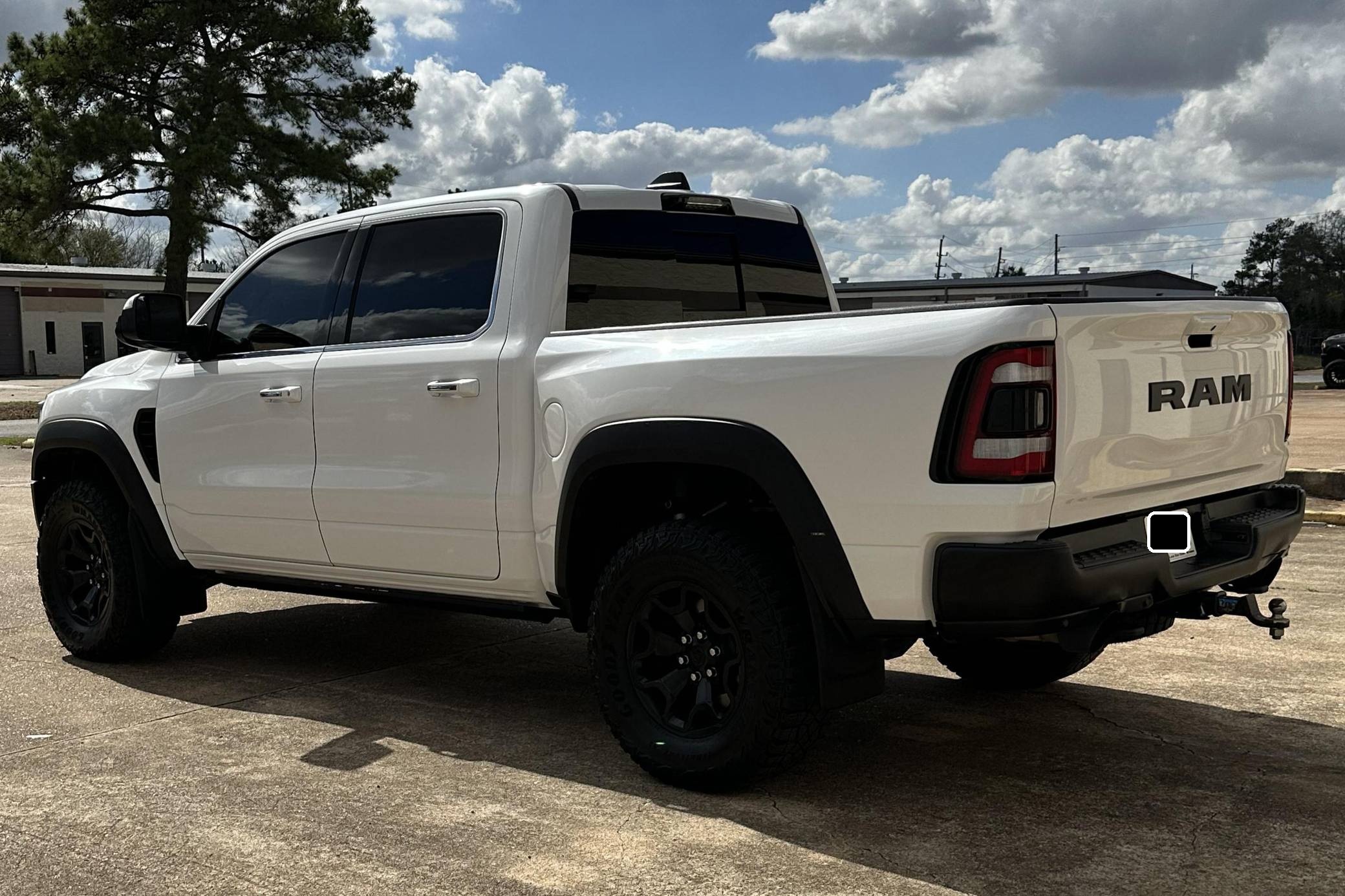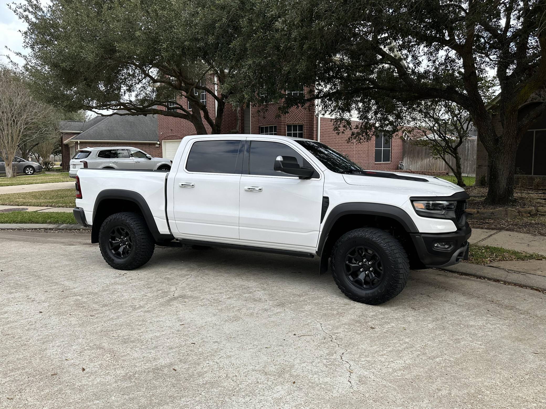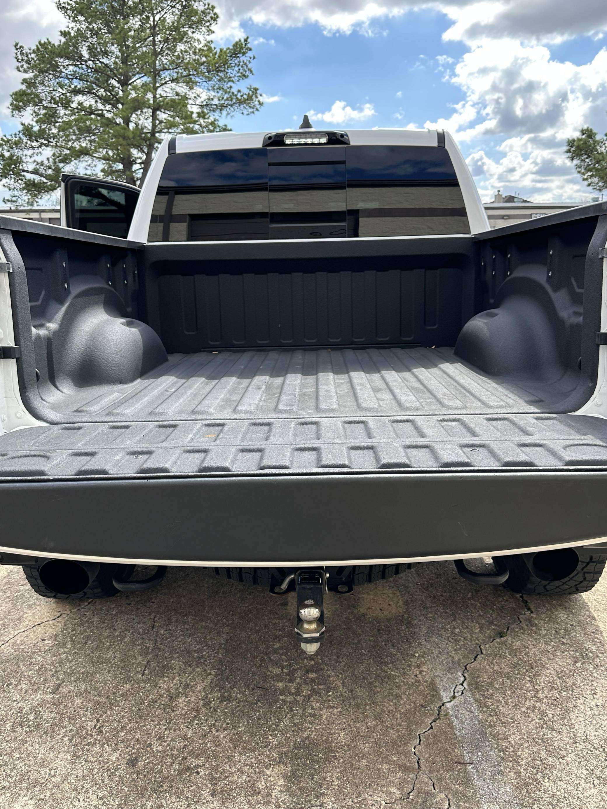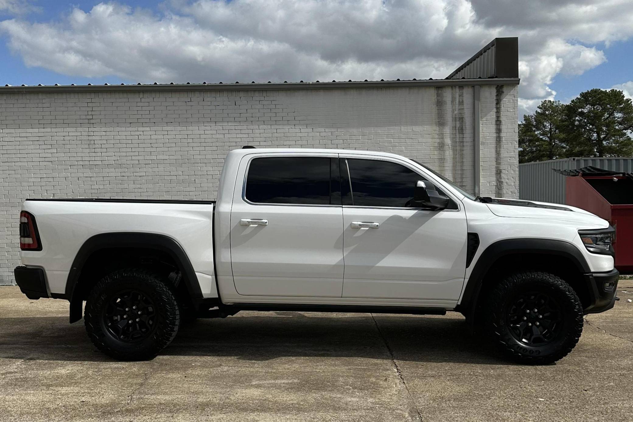 THIS. . . is a 2019 Ram 1500 Laramie 4x4, finished in Ivory White Coat with a black and red interior. Notable equipment includes a rear power sliding window, adjustable cargo tie-down hooks, LED bed lighting, a spray-in bedliner, remote tailgate release, power-adjustable pedals with memory, dual-zone automatic climate control, remote start, blind-spot monitoring, and ParkSense. Modifications to this Ram are extensive, and the full list is detailed below. include the powertrain, suspension system, exterior body parts, and interior from a 2021 Ram 1500 TRX, a Ripatuned Incognito lower damper sleeve, a custom tune, a JLT catch can, and AMP Research power running boards. Ram took a direct shot at the Ford F-150 Raptor when it released the 1500 TRX for the 2021 model year. Developed for high-speed off-road driving, the TRX gains a strengthened frame, a long-travel suspension system, a model-specific exterior design, and Dodge's celebrated Hellcat engine. It's the world's most powerful series-produced pickup. Power comes from a "Hemi SRT" supercharged 6. 2-liter V8 engine, which produces 702 horsepower and 650 lb-ft of torque in stock form. Due to the modifications performed to this Ram, it may produce more power, but a dyno sheet was not provided to confirm. Output is sent to all four wheels via an 8-speed automatic transmission.