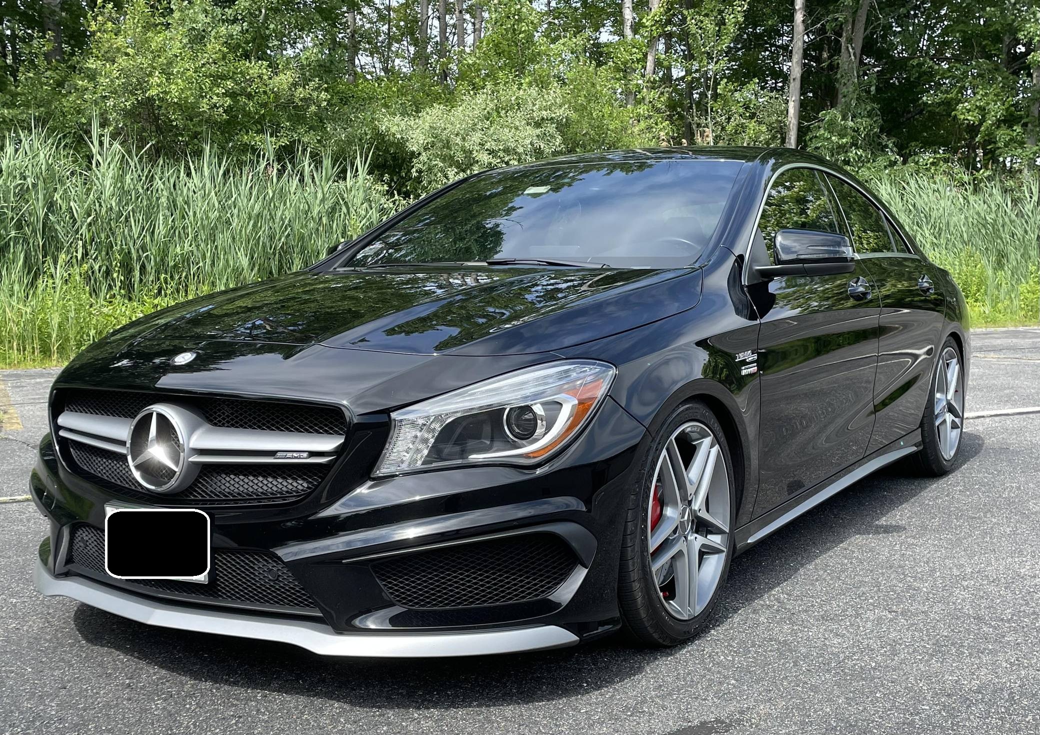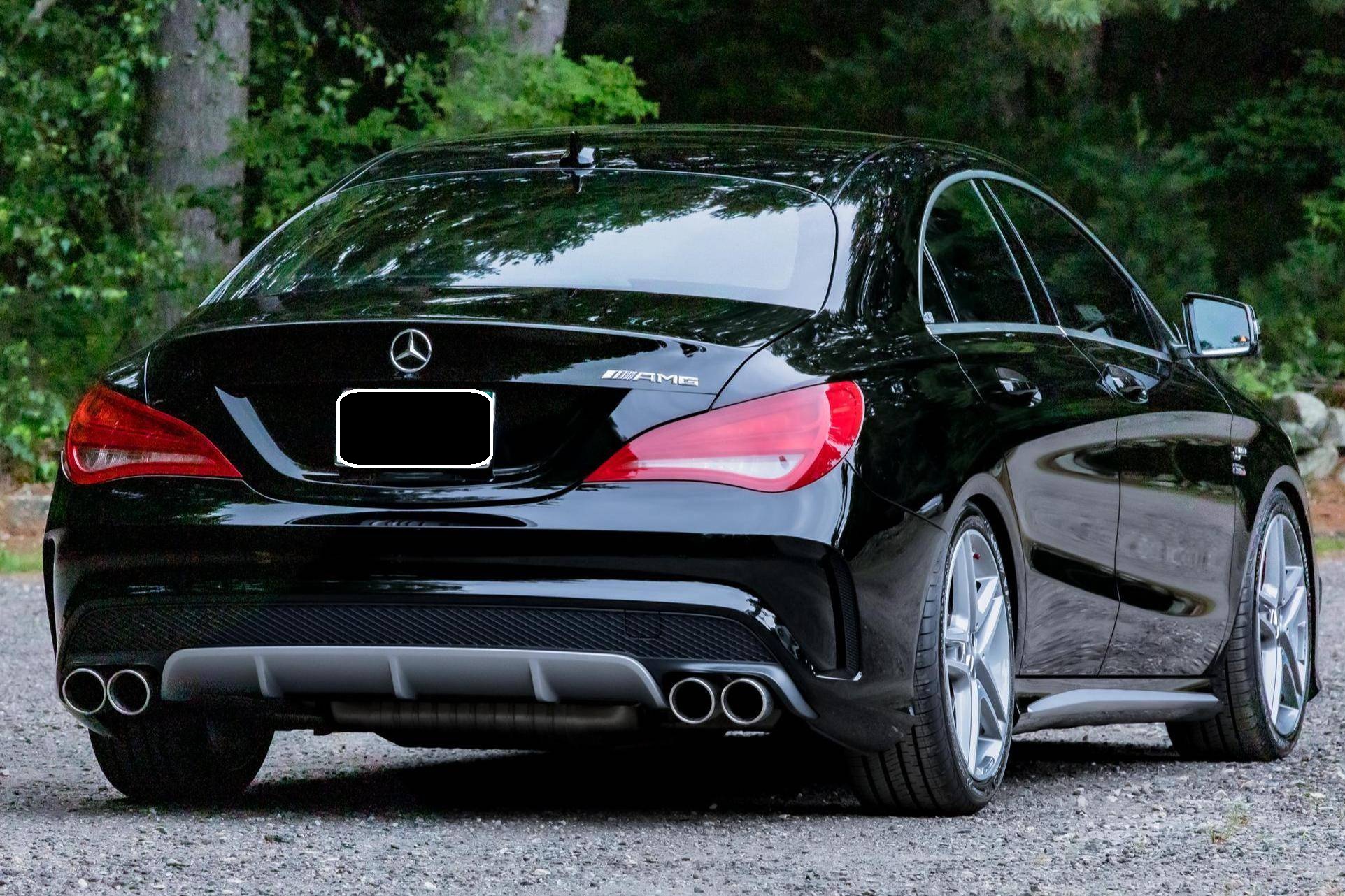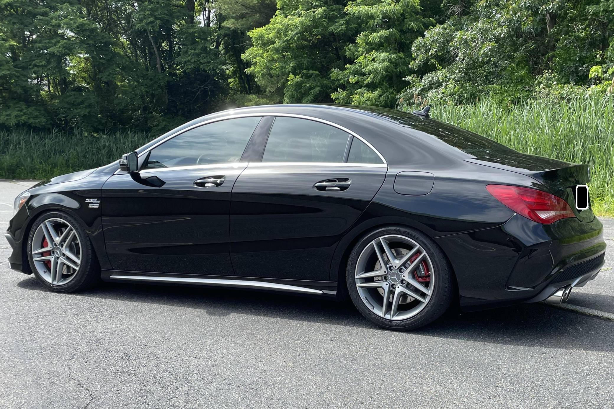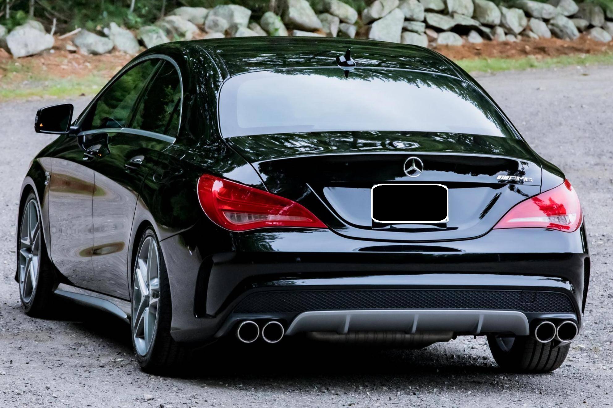 2015 Mercedes-Benz CLA45 AMG, finished in Night Black with a black interior. The odometer currently indicates approximately 29,400 miles. Notable features on this Mercedes-Benz include 18-inch AMG wheels, a sport suspension system, an AMG SPEEDSHIFT 7-speed dual-clutch automatic transmission, a sport exhaust system, AMG bodywork, Nappa Leather upholstery, heated front sport seats, a Harmon Kardon sound system, and Keyless-Go. Modifications reported by the seller include H&R lowering springs, a RENNtech Stage 1 ECU tune, a RENNtech Exhaust Valve Module, a Weistec engine air intake system, red-painted brake calipers, aftermarket exhaust tips, a Skar Audio amplifier and subwoofer, and more as described below. When launched, the CLA45 AMG carried the distinction of using the world's most power-dense production car engine at 178 horsepower per liter — a title previously held by Porsche's 911. Aside from the potent powerplant, the CLA ensures its occupants are comfortable and entertained with Nappa leather upholstery and plenty of technology. Power comes from an "M133" 2. 0-liter turbocharged inline-4, rated at 355 horsepower and 332 lb-ft of torque in stock form. Due to the modifications performed to this CLA45, it may produce more power, but a dyno sheet was not provided to confirm. Output is sent to all four wheels through a 7-speed dual-clutch automatic transmission and Mercedes-Benz's 4Matic all-wheel-drive system.
