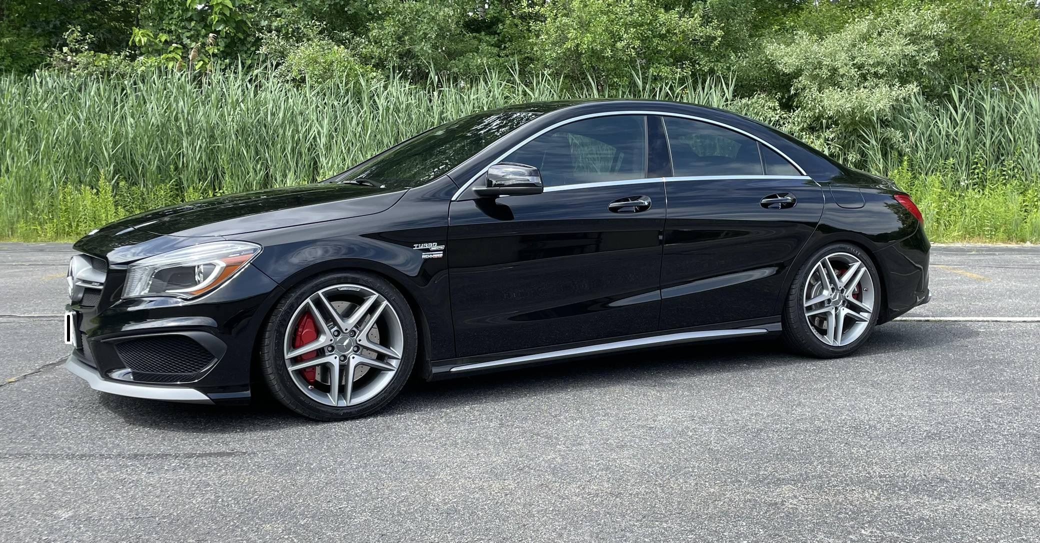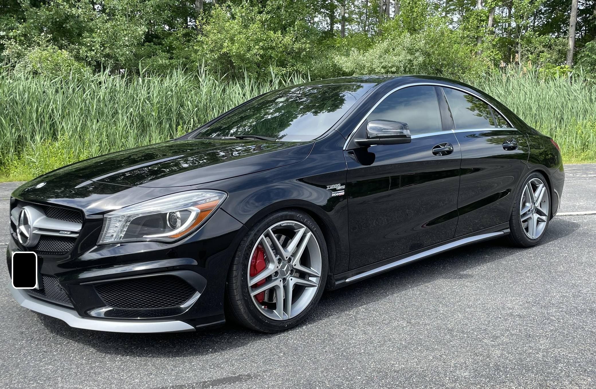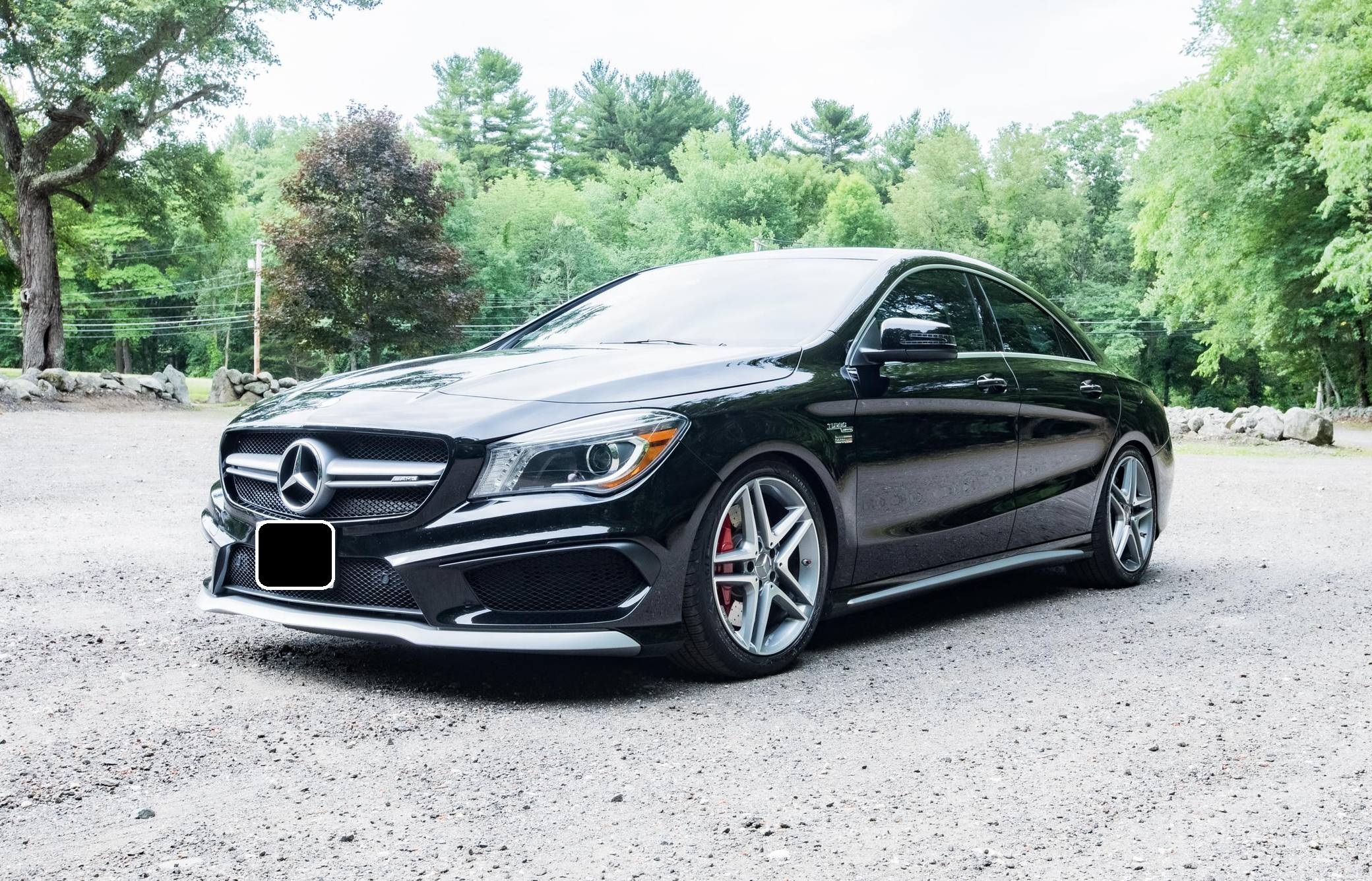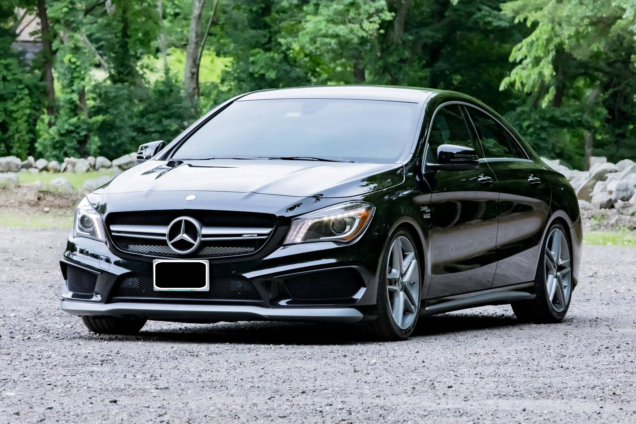 2015 Mercedes-Benz CLA45 AMG, finished in Night Black with a black interior. The odometer currently indicates approximately 29,400 miles. Notable features on this Mercedes-Benz include 18-inch AMG wheels, a sport suspension system, an AMG SPEEDSHIFT 7-speed dual-clutch automatic transmission, a sport exhaust system, AMG bodywork, Nappa Leather upholstery, heated front sport seats, a Harmon Kardon sound system, and Keyless-Go. Modifications reported by the seller include H&R lowering springs, a RENNtech Stage 1 ECU tune, a RENNtech Exhaust Valve Module, a Weistec engine air intake system, red-painted brake calipers, aftermarket exhaust tips, a Skar Audio amplifier and subwoofer, and more as described below. When launched, the CLA45 AMG carried the distinction of using the world's most power-dense production car engine at 178 horsepower per liter — a title previously held by Porsche's 911. Aside from the potent powerplant, the CLA ensures its occupants are comfortable and entertained with Nappa leather upholstery and plenty of technology. Power comes from an "M133" 2. 0-liter turbocharged inline-4, rated at 355 horsepower and 332 lb-ft of torque in stock form. Due to the modifications performed to this CLA45, it may produce more power, but a dyno sheet was not provided to confirm. Output is sent to all four wheels through a 7-speed dual-clutch automatic transmission and Mercedes-Benz's 4Matic all-wheel-drive system.