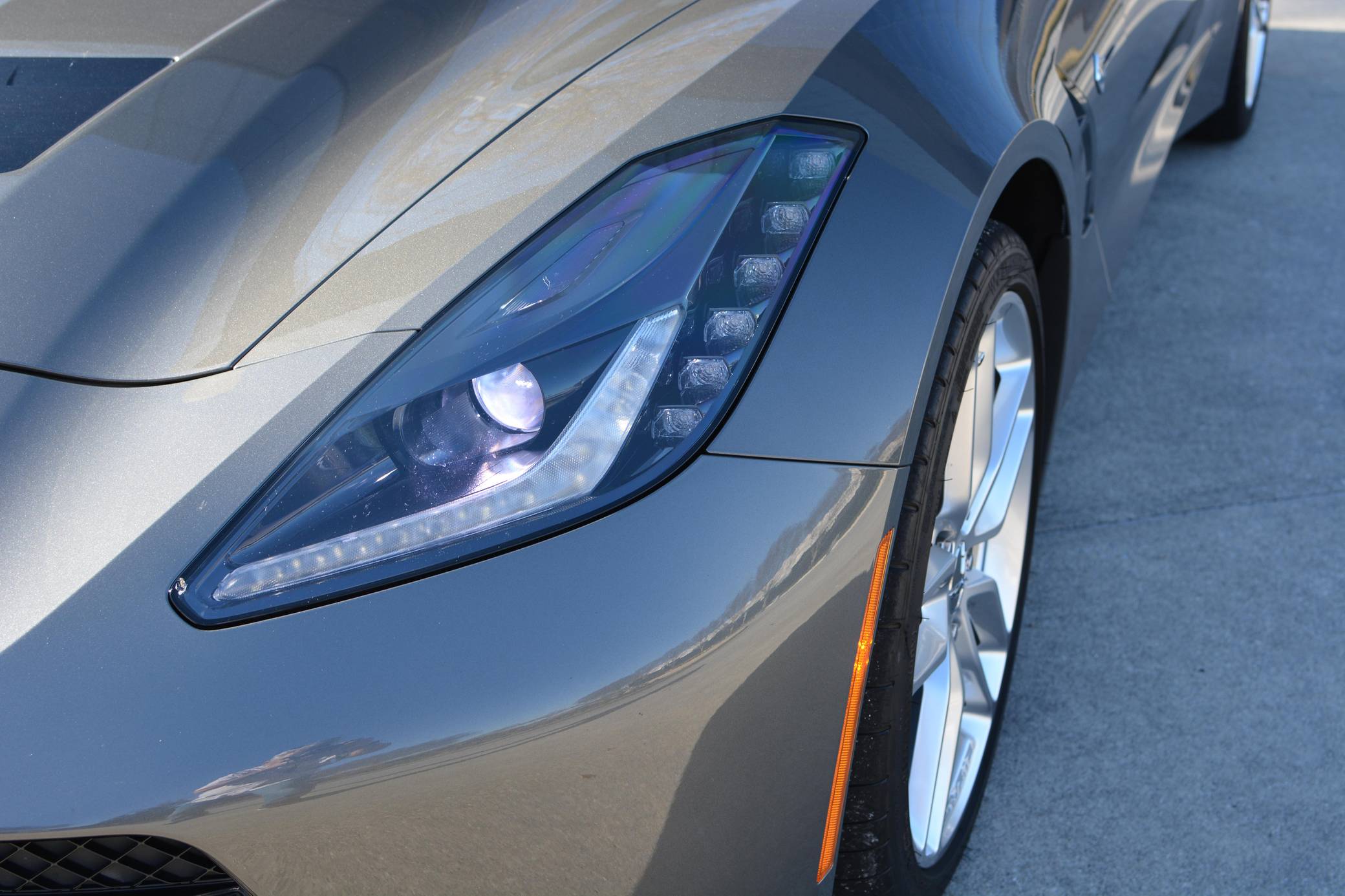 THIS… is a 2016 Chevrolet Corvette Coupe, finished in Shark Gray Metallic with a Jet Black interior. The odometer on this Corvette indicates approximately 9,600 miles. Factory equipment includes 19-inch front and 20-inch rear wheels, Magnetic Ride Control dampers, a multi-mode exhaust system, removable roof panel, a Bose sound system, and more listed below. The seller reports no modifications. Chevrolet launched the seventh-generation Corvette (colloquially called "C7") for the 2014 model year. It offered a more user-friendly interior, a sharper-looking exterior design, and, significantly, the then-new "LT1" small-block V8. The C7 represented the culmination of four decades of development, and production ended in 2019. Power comes from a 6. 2-liter V8, rated at 455 horsepower and 460 lb-ft of torque. Output is sent to the rear wheels via an 8-speed automatic transmission.