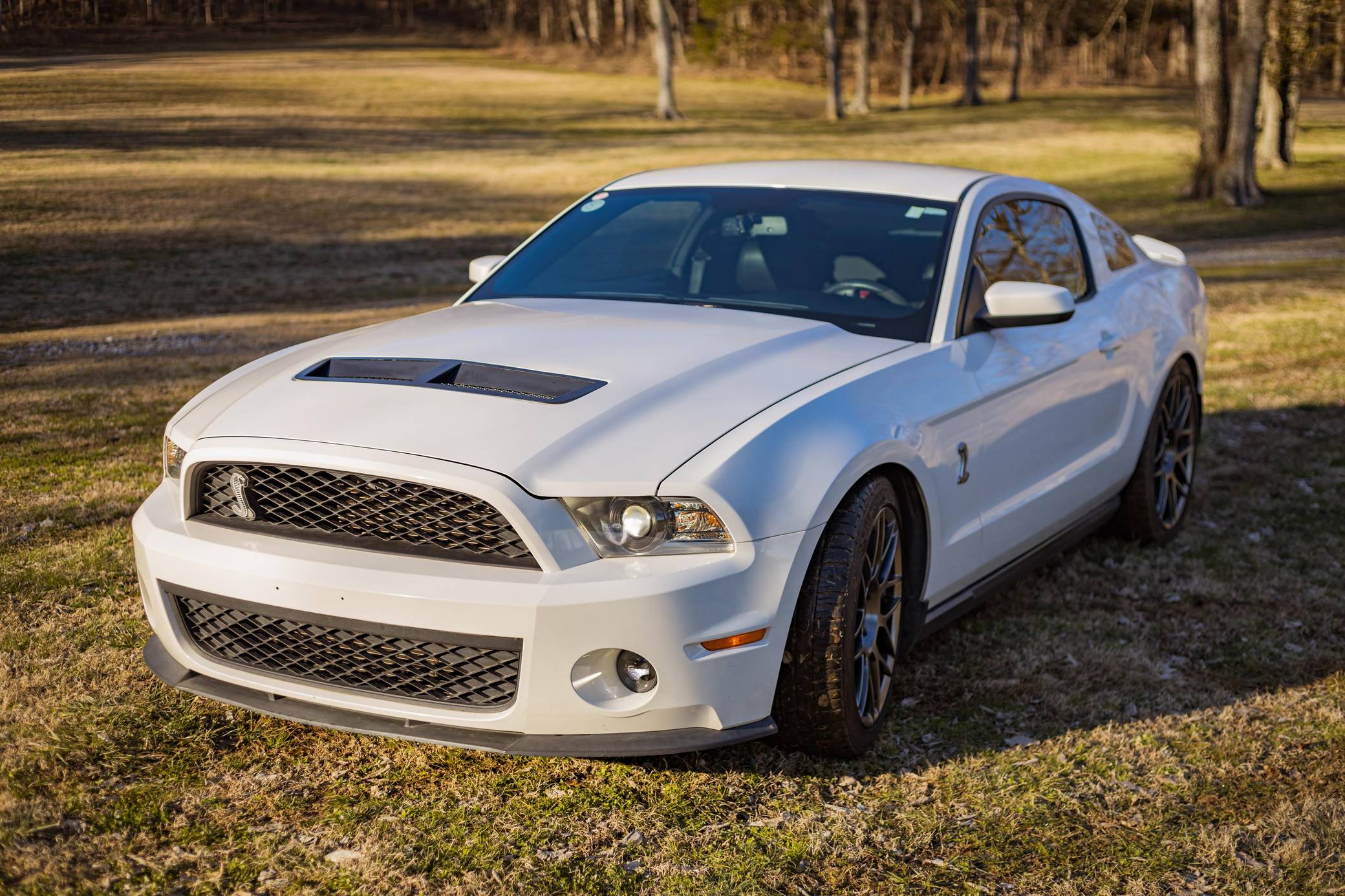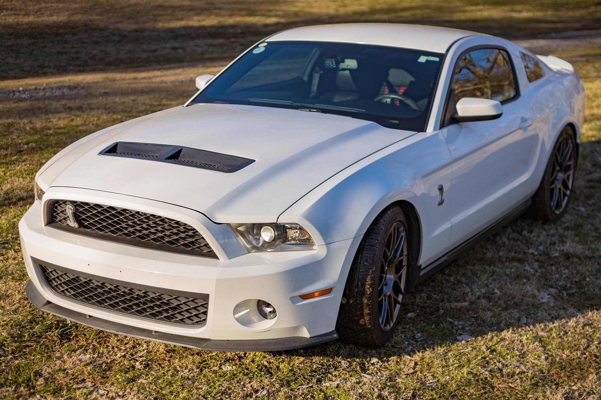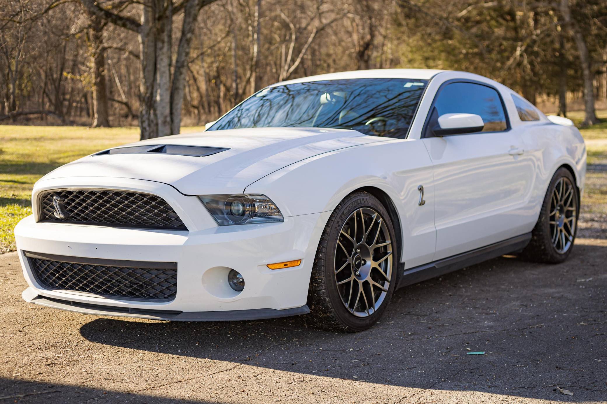 THIS. . . is a 2011 Ford Mustang Shelby GT500, finished in Performance White with a Charcoal Black and red interior. This GT500 is equipped with a 6-speed manual transmission. Factory equipment includes the SVT Performance Package (3. 73-ratio limited-slip rear axle, rear decklid spoiler, tape stripe delete, top stripe delete, 19- and 20-inch alloy wheels), the Electronics Package (HD radio compatibility and navigation system), an aluminum hood, a Shelby front facia, a two-tone interior, and more as detailed below. Modifications to this GT500 are extensive, and the full list is detailed below. include a 2. 5-mm supercharger pulley, dual fans, oil separators, a Borla S-Type cat-back exhaust, a carbon-fiber driveshaft, a McLeod clutch and aluminum flywheel, and Koni suspension. Called "S197" internally, the 5th-generation Mustang launched for 2005 with a heritage-laced design, a new platform, and an available 24-valve V8 engine. Extending the wheelbase gave the Mustang a much more compliant ride than its predecessor. 2010 brought a thorough mid-cycle update that applied to all variants (including the mighty GT500), and production ended in 2014. Power for this GT500 comes from a 5. 4-liter supercharged V8, rated at 550 horsepower and 510 lb-ft of torque when left stock. The modifications increase those figures to 578 horsepower and 569 lb-ft of torque at 12. 7 lbs of boost at the rear wheels, according to a dyno sheet pictured in the gallery. Output is sent to the rear wheels via a 6-speed manual transmission.