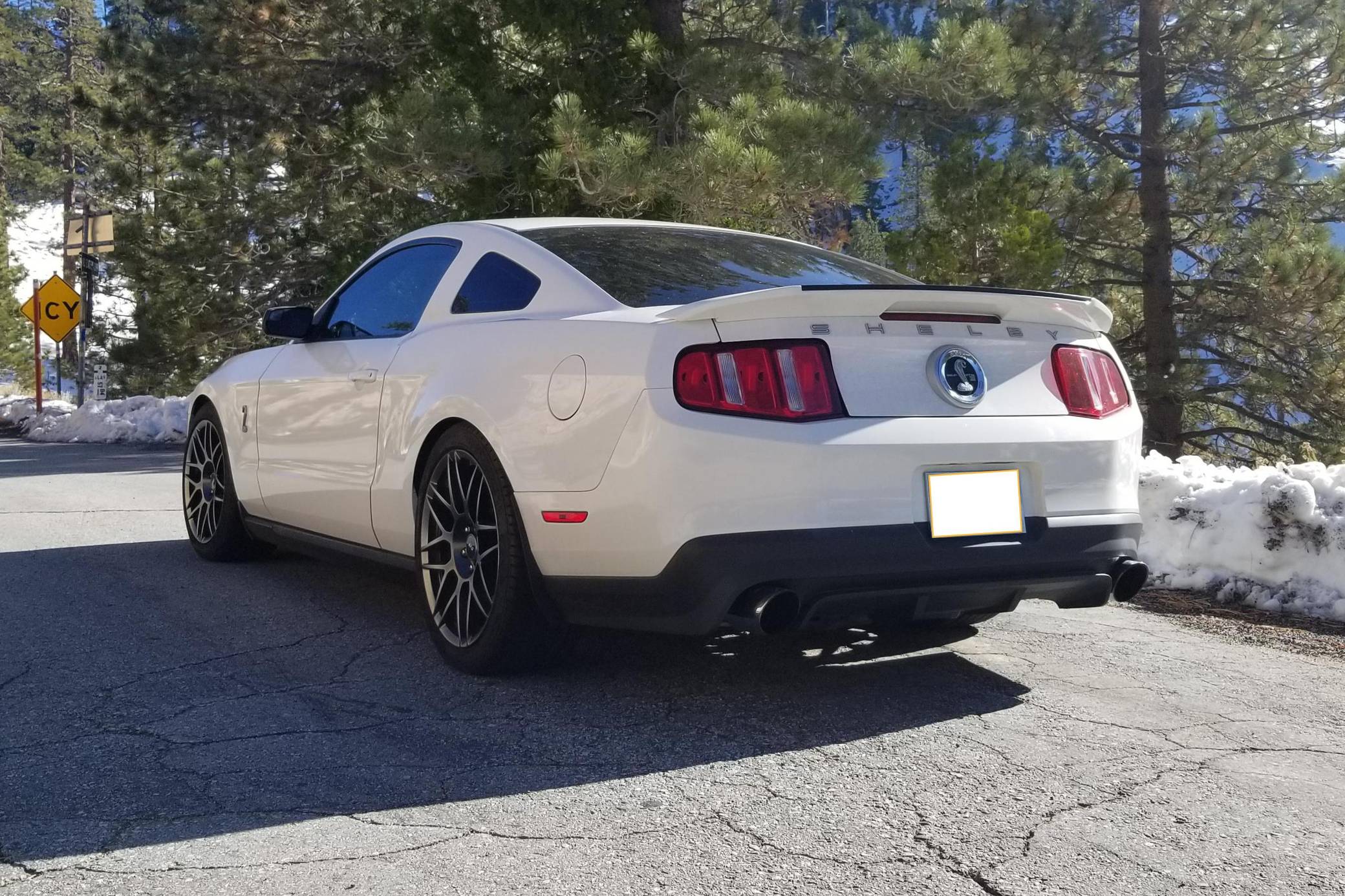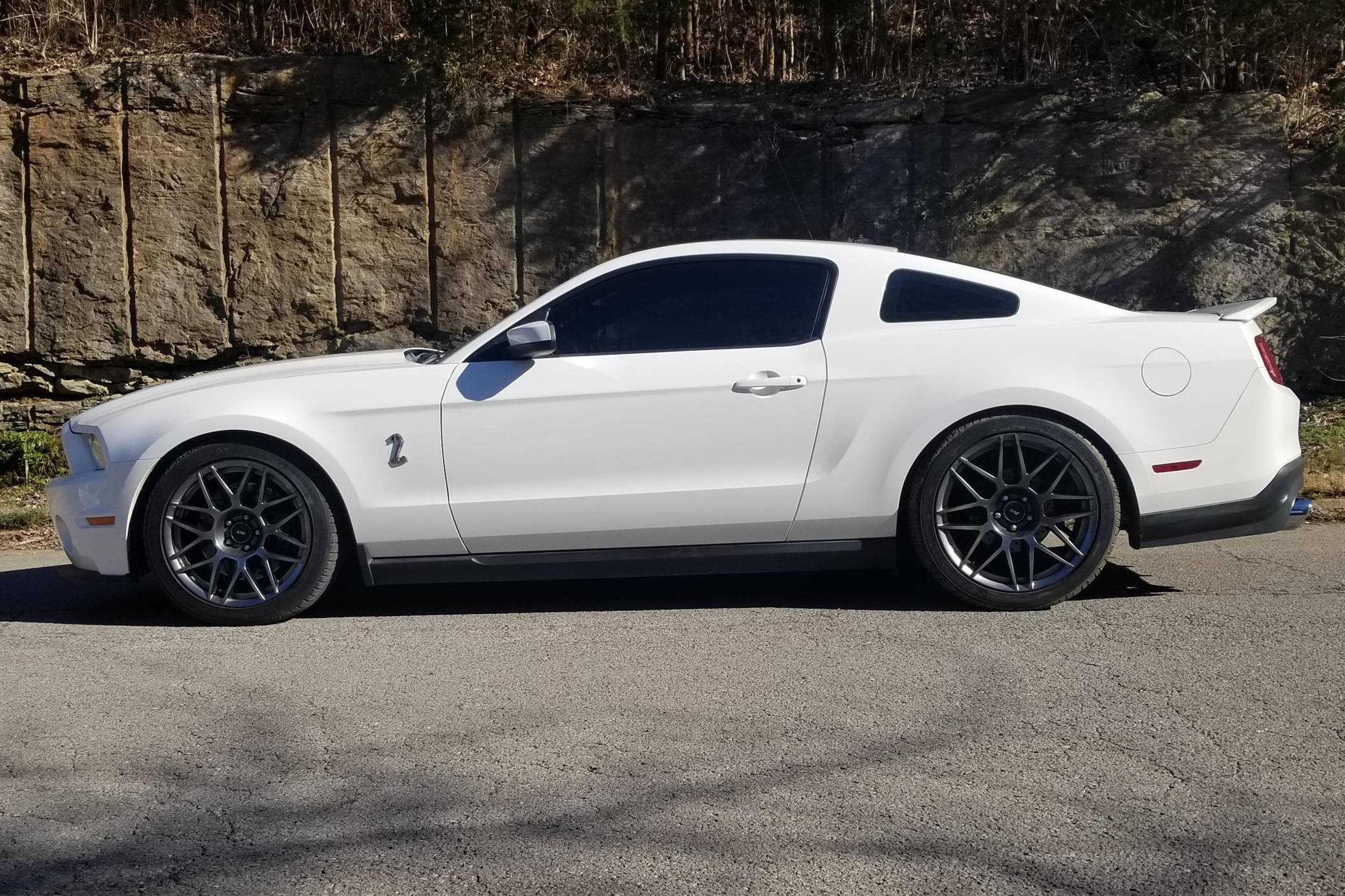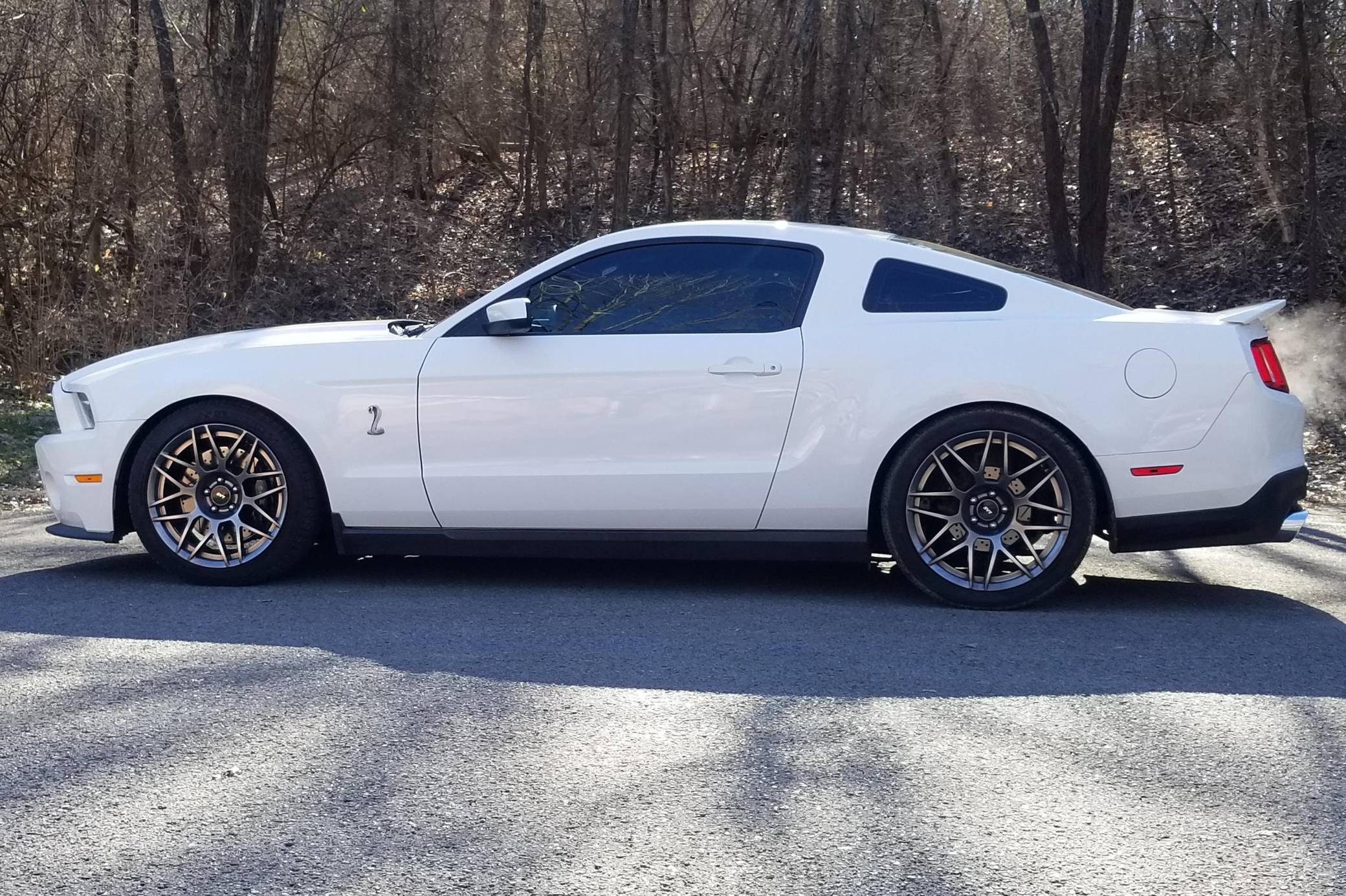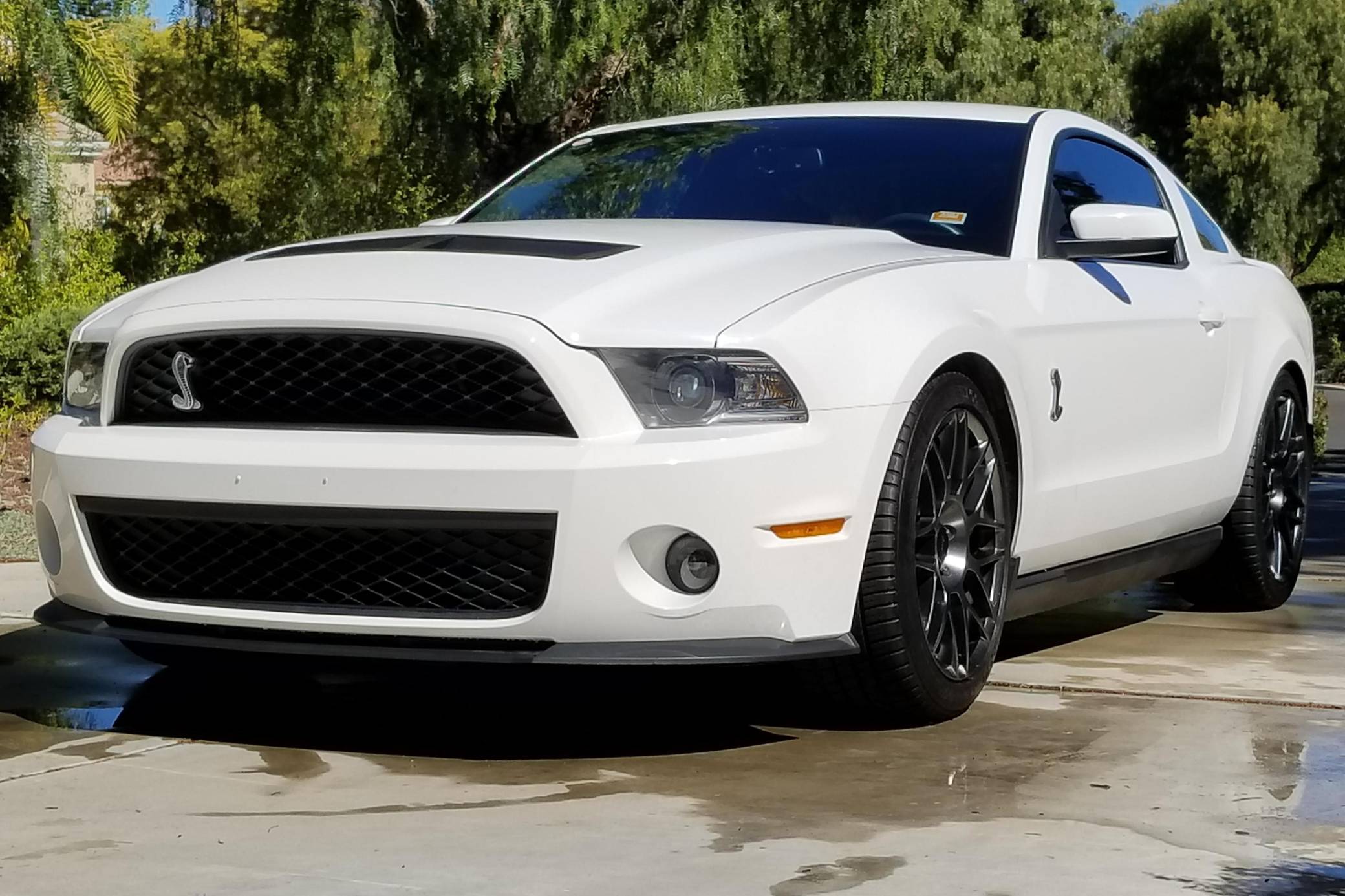THIS. . . is a 2011 Ford Mustang Shelby GT500, finished in Performance White with a Charcoal Black and red interior. This GT500 is equipped with a 6-speed manual transmission. Factory equipment includes the SVT Performance Package (3. 73-ratio limited-slip rear axle, rear decklid spoiler, tape stripe delete, top stripe delete, 19- and 20-inch alloy wheels), the Electronics Package (HD radio compatibility and navigation system), an aluminum hood, a Shelby front facia, a two-tone interior, and more as detailed below. Modifications to this GT500 are extensive, and the full list is detailed below. include a 2. 5-mm supercharger pulley, dual fans, oil separators, a Borla S-Type cat-back exhaust, a carbon-fiber driveshaft, a McLeod clutch and aluminum flywheel, and Koni suspension. Called "S197" internally, the 5th-generation Mustang launched for 2005 with a heritage-laced design, a new platform, and an available 24-valve V8 engine. Extending the wheelbase gave the Mustang a much more compliant ride than its predecessor. 2010 brought a thorough mid-cycle update that applied to all variants (including the mighty GT500), and production ended in 2014. Power for this GT500 comes from a 5. 4-liter supercharged V8, rated at 550 horsepower and 510 lb-ft of torque when left stock. The modifications increase those figures to 578 horsepower and 569 lb-ft of torque at 12. 7 lbs of boost at the rear wheels, according to a dyno sheet pictured in the gallery. Output is sent to the rear wheels via a 6-speed manual transmission.