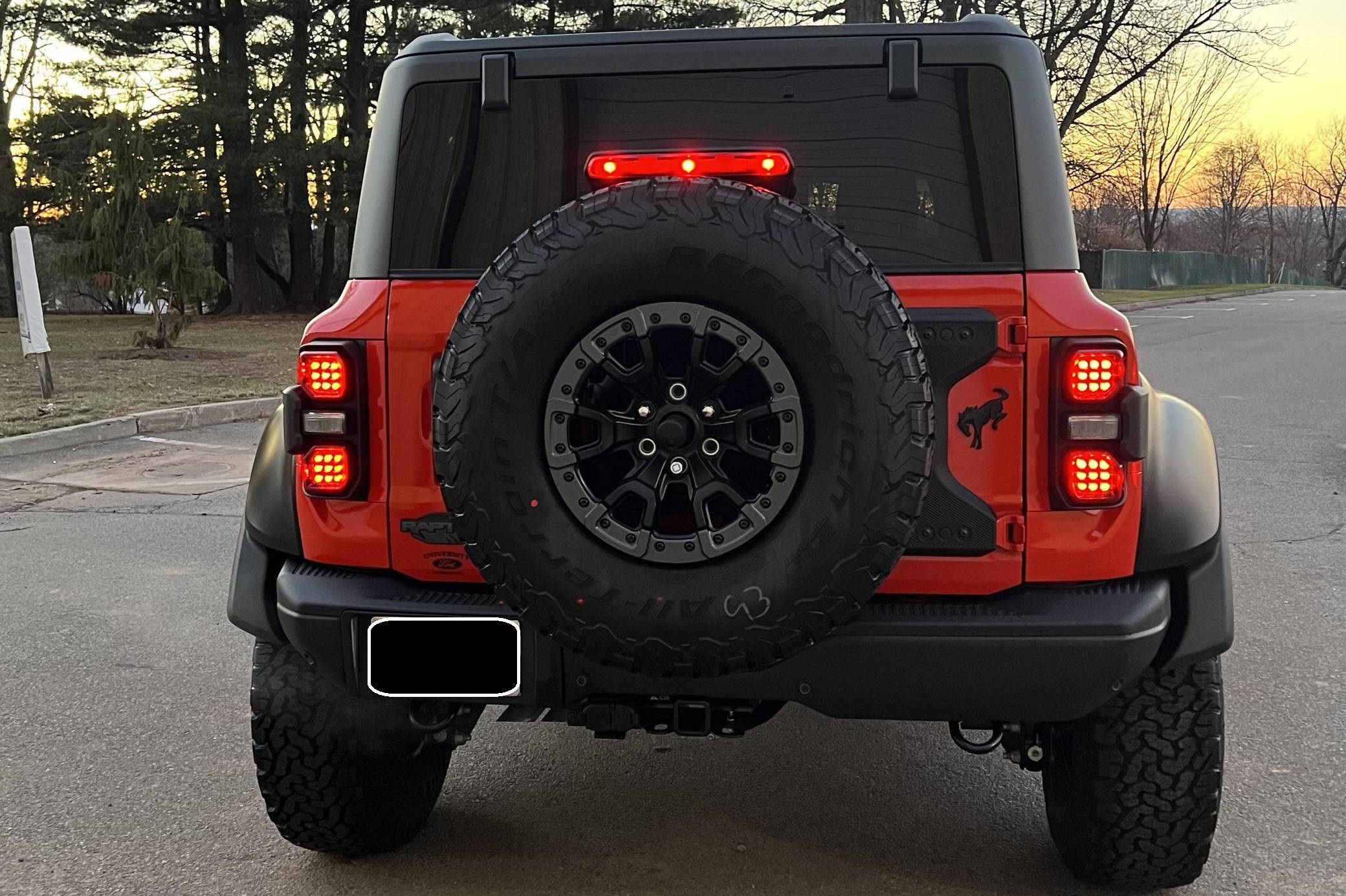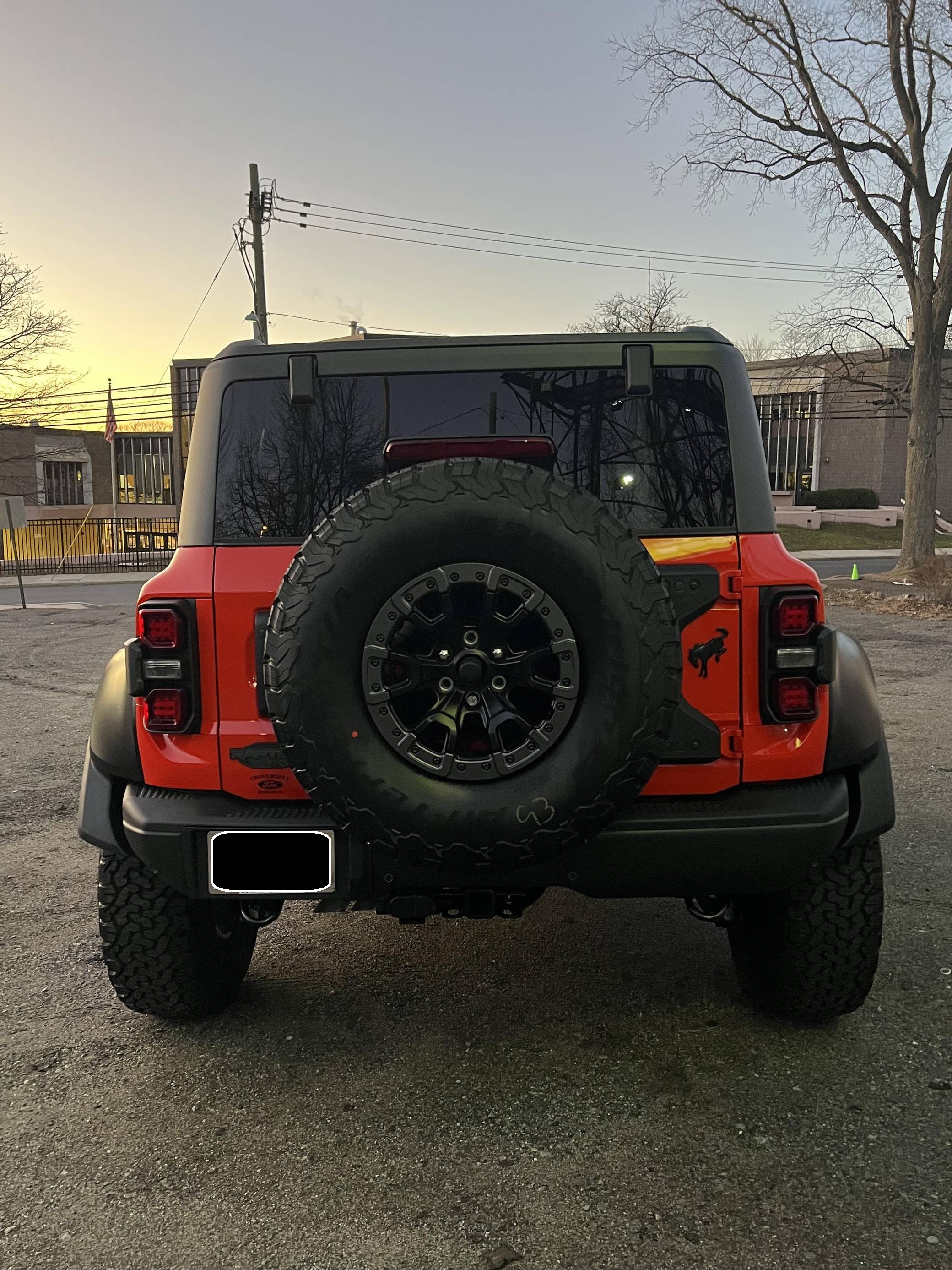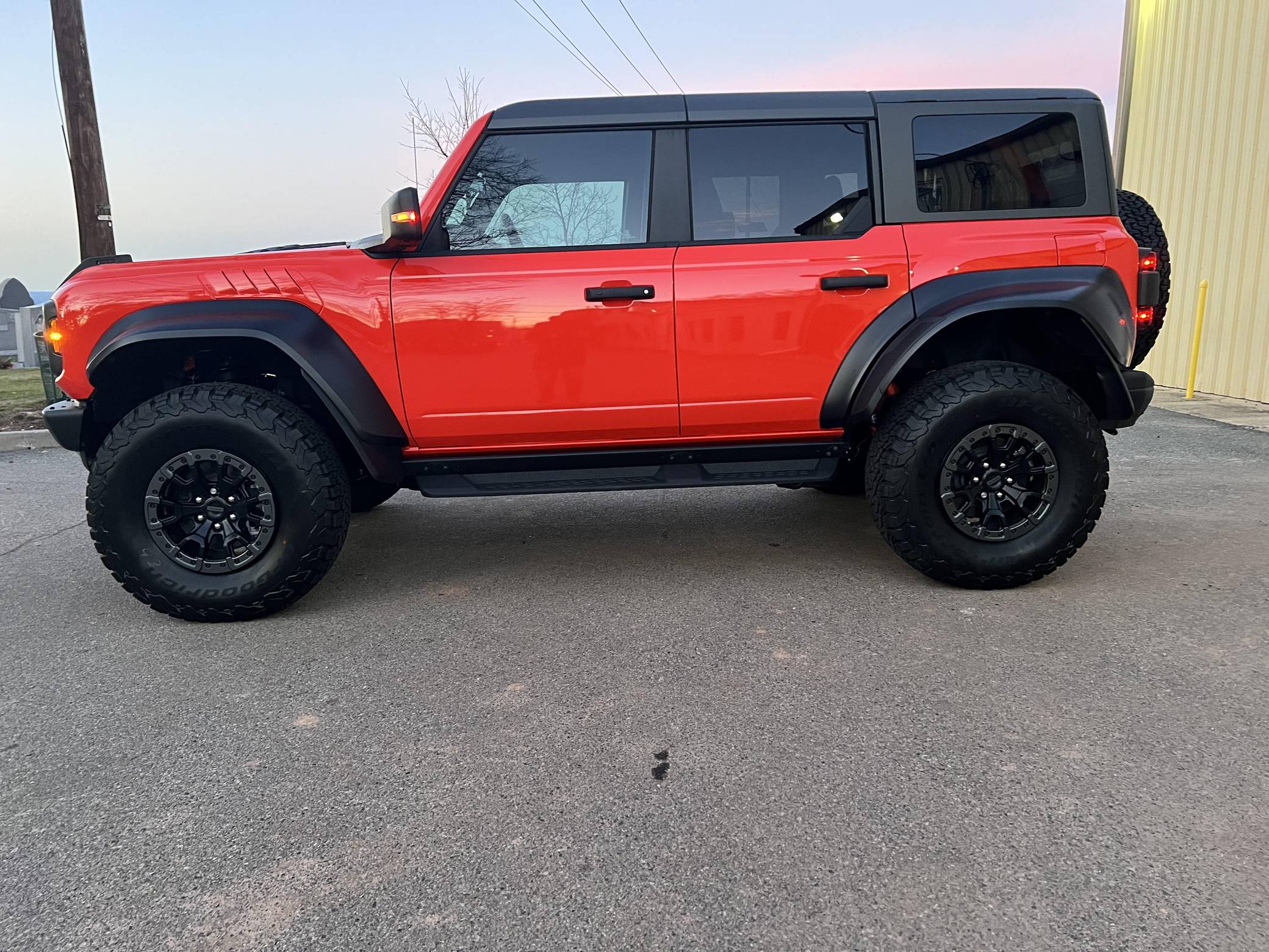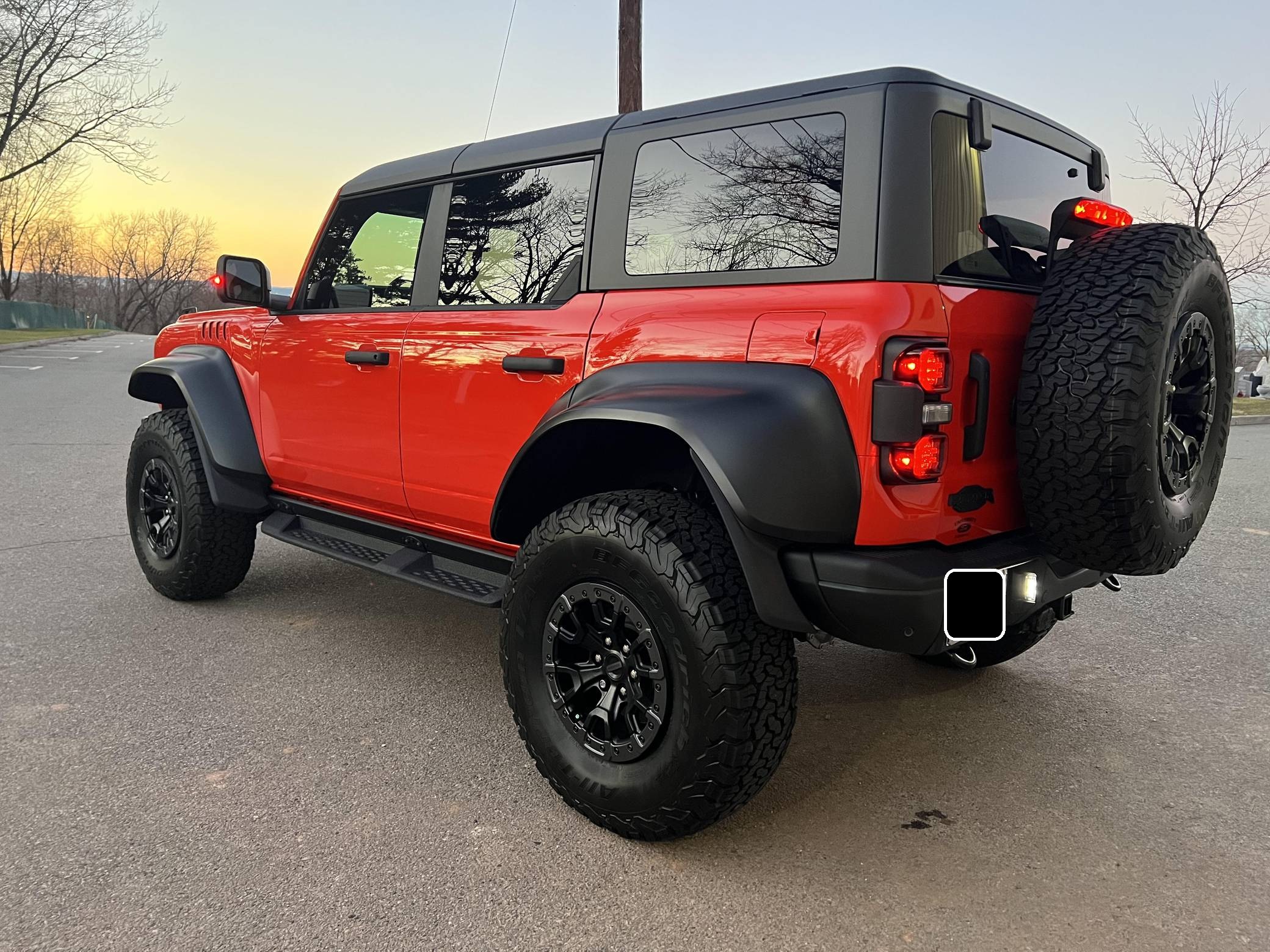 THIS. . . is a 2022 Ford Bronco Raptor, finished in Code Orange with a gray hardtop and an Onyx interior. Factory equipment includes the High and Interior Carbon Fiber packages, 17-inch forged wheels, a HOSS 4. 0 suspension system, a front sway bar disconnect system, locking front and rear differentials, Raptor-specific fender flares, rock rails with removable running boards, a removable hardtop, and Terrain Management technology with seven G. O. A. T. modes. The seller reports that modifications are limited to tinted windows. The sixth-generation Bronco was introduced for 2021, ending a 25-year hiatus and nearly a decade of speculation about its return. Retro styling, body-on-frame construction, and a suite of off-road equipment help to ensure this truck lives up to the Bronco name. It's not all old-school, however; modern features like an available 12-inch touchscreen and a wireless phone charger bring it into the 21st century. Launched for 2022, the long-awaited Raptor builds on the standard Bronco with a more powerful engine, huge tires tucked under correspondingly wide wheel arch flares, and a model-specific suspension system that includes FOX Factory Live Valve dampers. It's still available new today. Power comes from a 3. 0-liter twin-turbocharged "EcoBoost" V6, rated at 418 horsepower and 440 lb-ft of torque. It spins the four wheels via a 10-speed automatic transmission and a 2-speed transfer case.