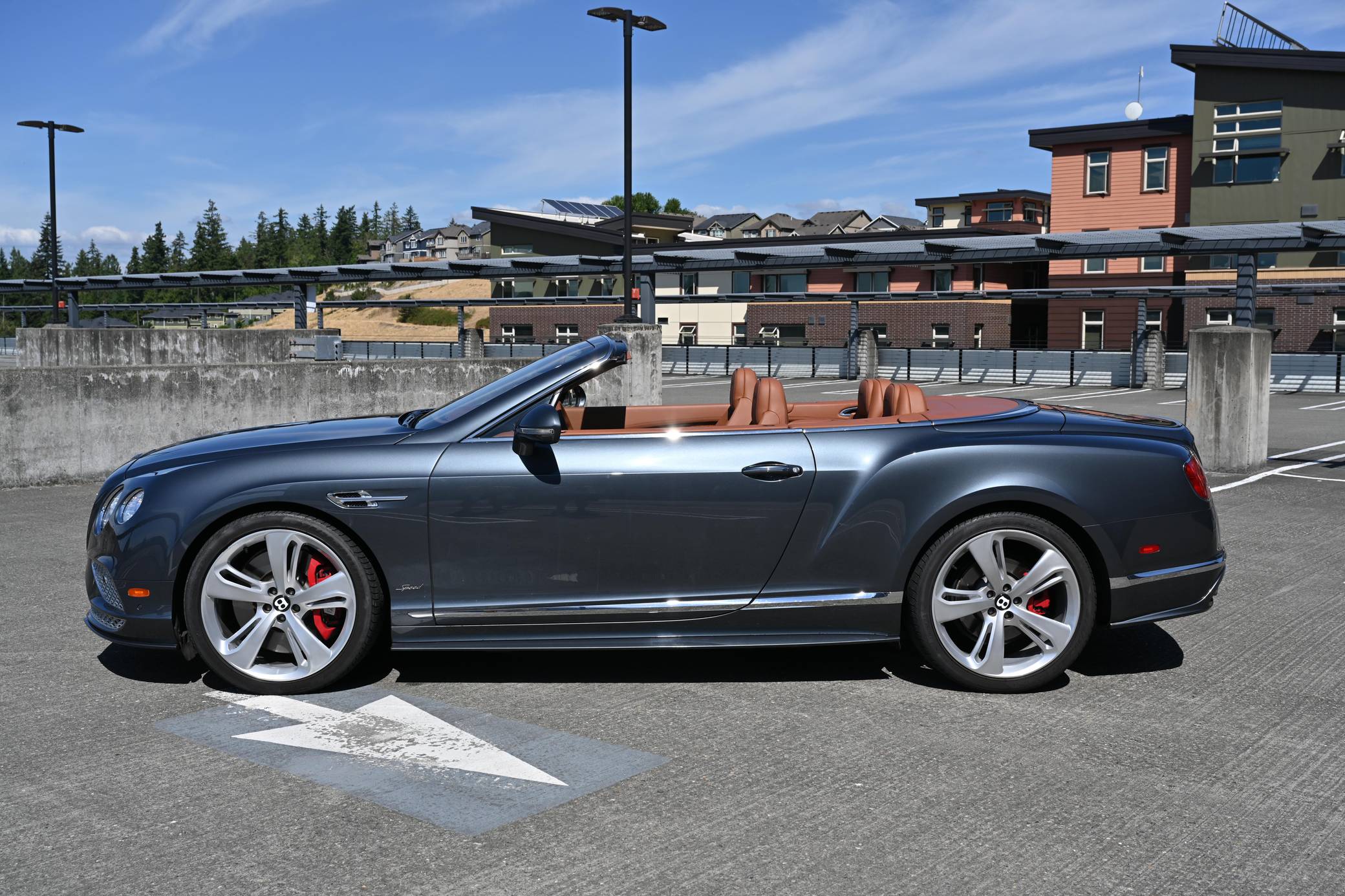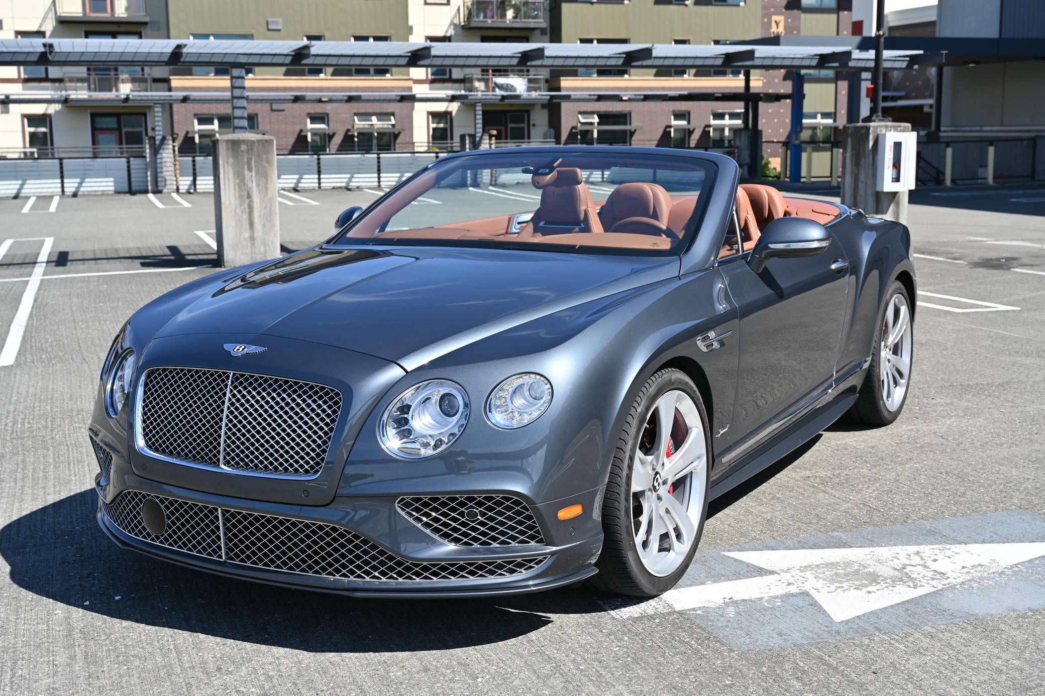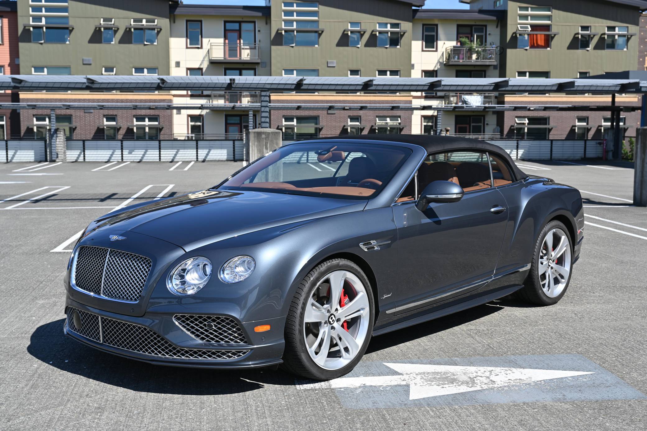 2016 Bentley Continental GT Speed Convertible finished in Thunder with a black soft top and a Saddle interior. Factory equipment includes the Mulliner Driving Specification, 21-inch directional sports wheels, air suspension, a power-operated soft top, bi-xenon headlights with washers, soft-close doors, power-adjustable heated and ventilated front seats with massage function, Madrona wood interior trim, Naim for Bentley premium audio, and more as listed below. The seller reports no modifications. The Bentley Continental GT was unveiled in 2003 for the 2004 model year. It was Bentley's first car to launch under the ownership of the Volkswagen Group and allowed Bentley to mass-produce the Continental GT and reach a wider customer base upon launch. Journalists praised the new Continental GT for its build quality, comfort, and performance. Bentley introduced the second generation of the Continental for the 2012 model year, giving the car a revised front and rear fascia, sharper body lines, and an improved interior. The Continental GT Speed benefits from additional styling and performance tweaks, including a 44 horsepower gain and 73 more lb-ft of torque over the standard W12-powered car. This additional power propels the GT Speed from 0 to 60 in just 4 seconds, onto a top speed of 203 mph. Power comes from a twin-turbocharged 6. 0-liter W12, rated at 626 horsepower and 605 lb-ft of torque. Output is sent to all four wheels via an 8-speed ZF automatic transmission.