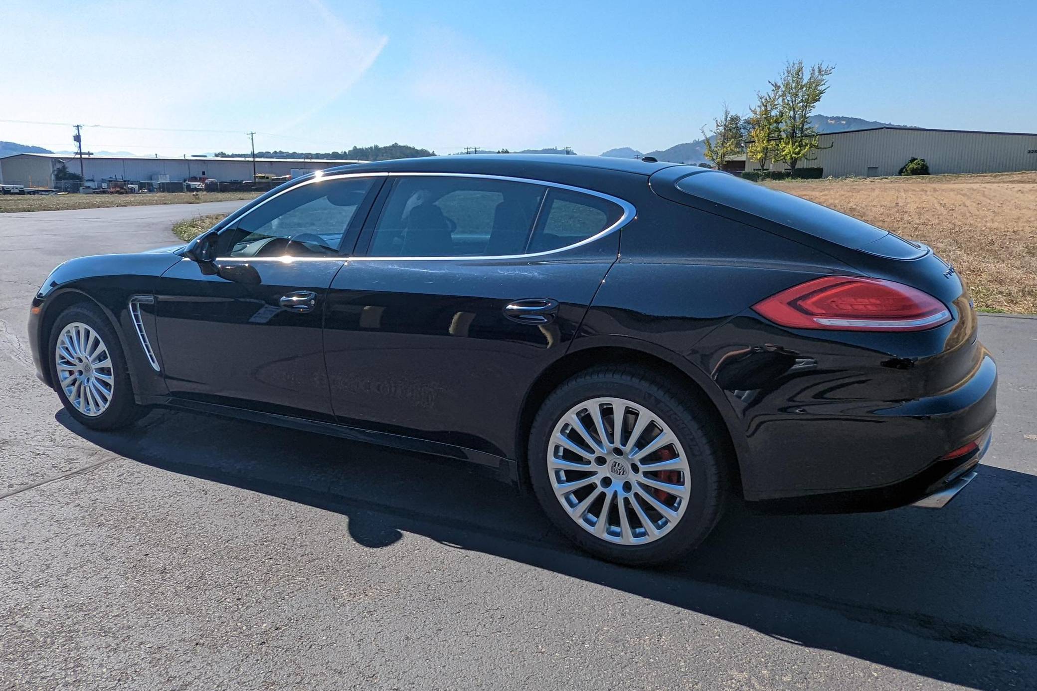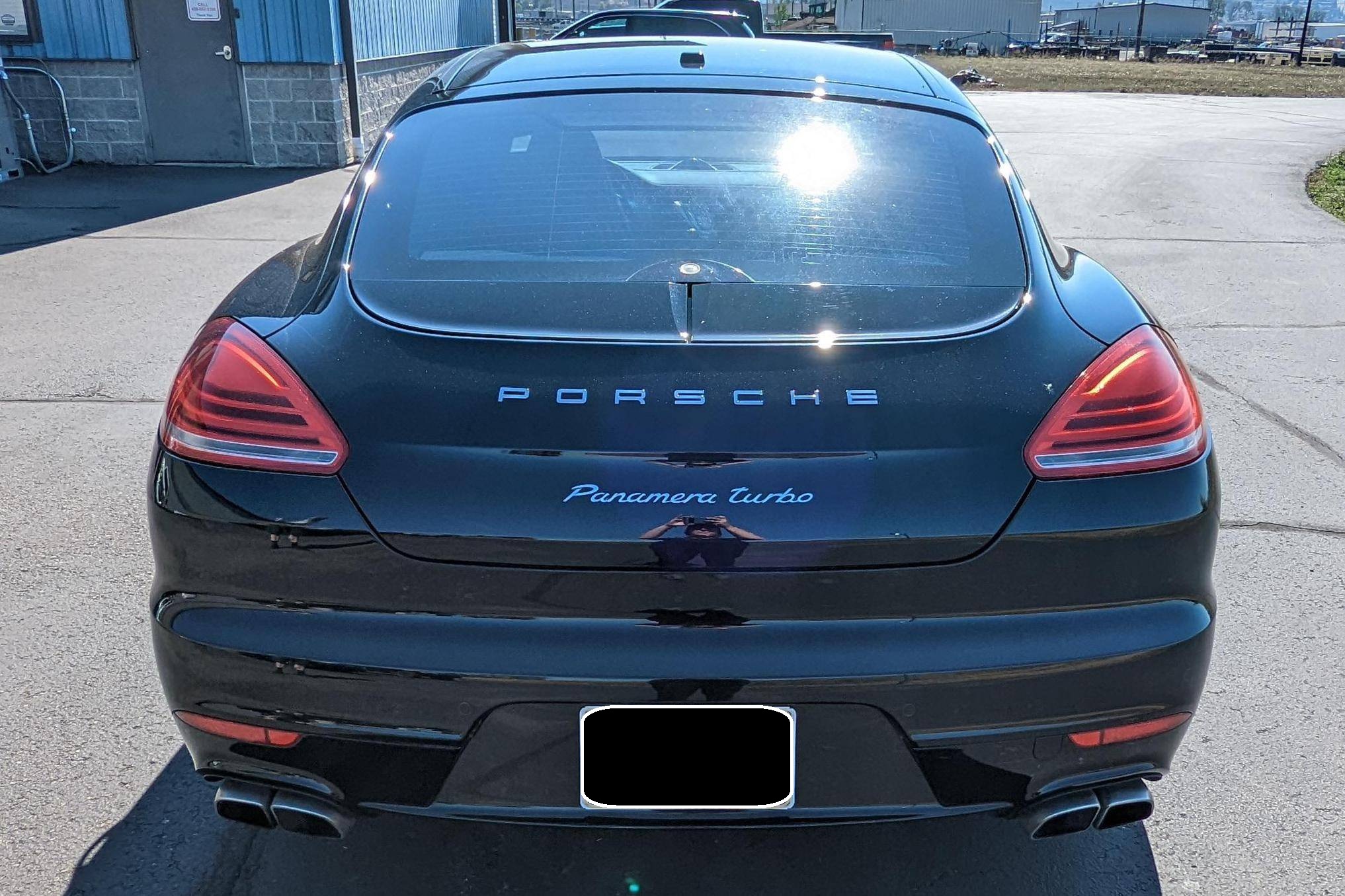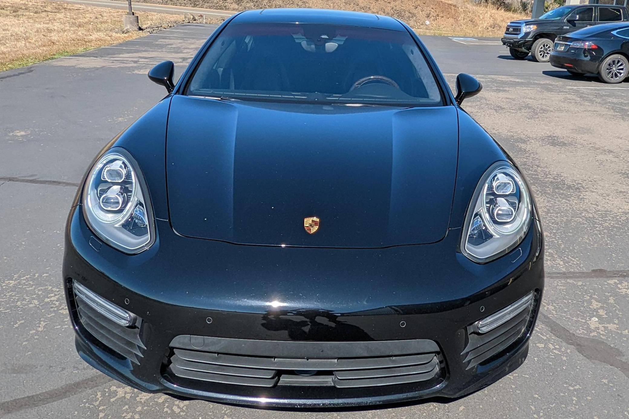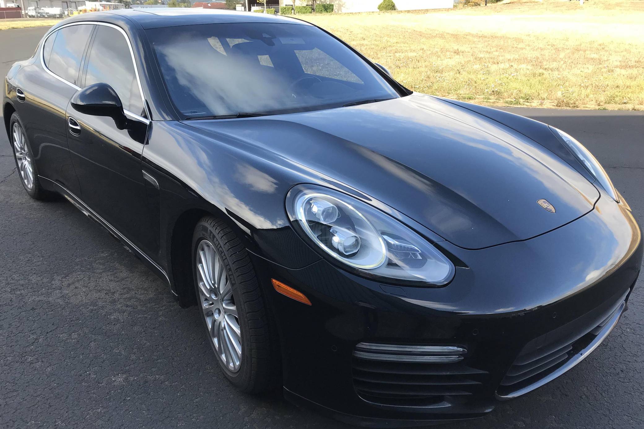 THIS. . . is a 2014 Porsche Panamera Turbo Executive, finished in black with a black interior. Factory equipment includes the Sport Chrono Package, 20-inch 911 Turbo II Wheels, LED headlights with Porsche Dynamic Light System Plus (PDLS Plus), leather upholstery, power-adjustable heated and ventilated front and rear seats, a navigation system, and a Burmester High-End surround sound system, and more as listed below. The sole modification reported by the seller is 19-inch wheels. After several false starts, Porsche entered the sedan segment for the first time when it launched the original Panamera for 2010. While its design and its very existence were controversial, the Panamera ultimately drew praise as the sportiest model in its segment and it achieved this distinction without sacrificing comfort or luxury. The Turbo model was slotted near the top of the line-up when it arrived for 2011. The Panamera Executive joined the range for 2014, featuring a longer by almost six inches wheelbase, with the extra length benefitting almost exclusively the rear passenger area. Power comes from a twin-turbocharged 4. 8-liter V8, rated at 520 horsepower and 568 lb-ft of torque. Output is sent to all 4 wheels via a 7-speed PDK dual-clutch automatic transmission.