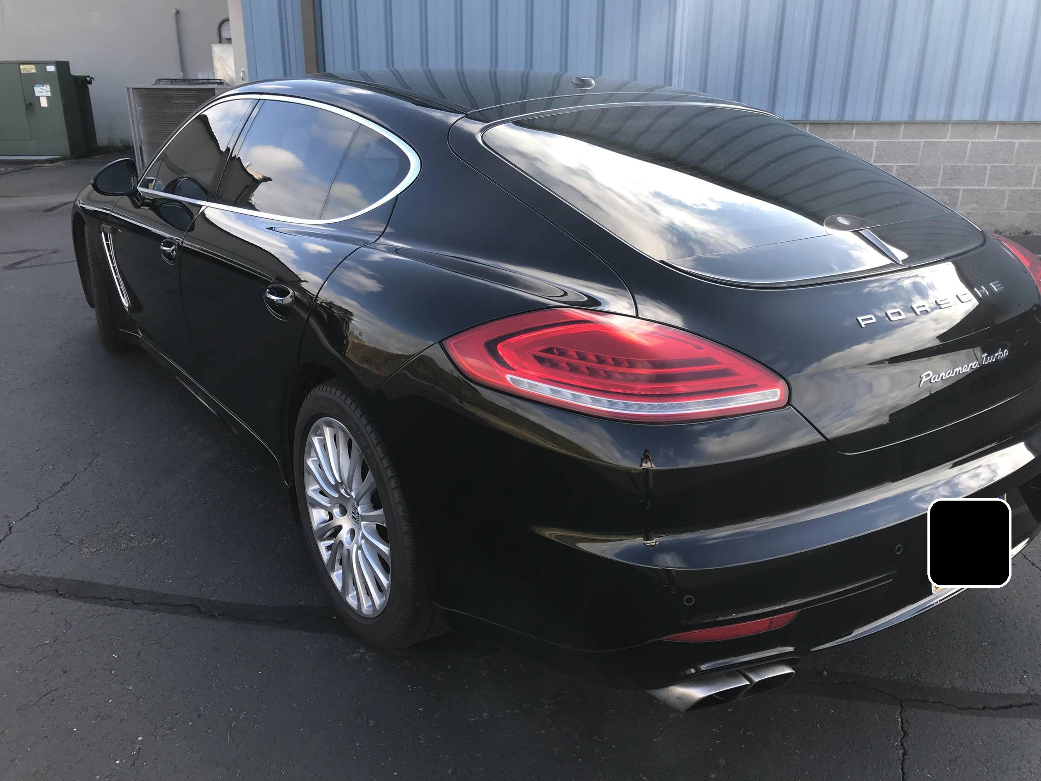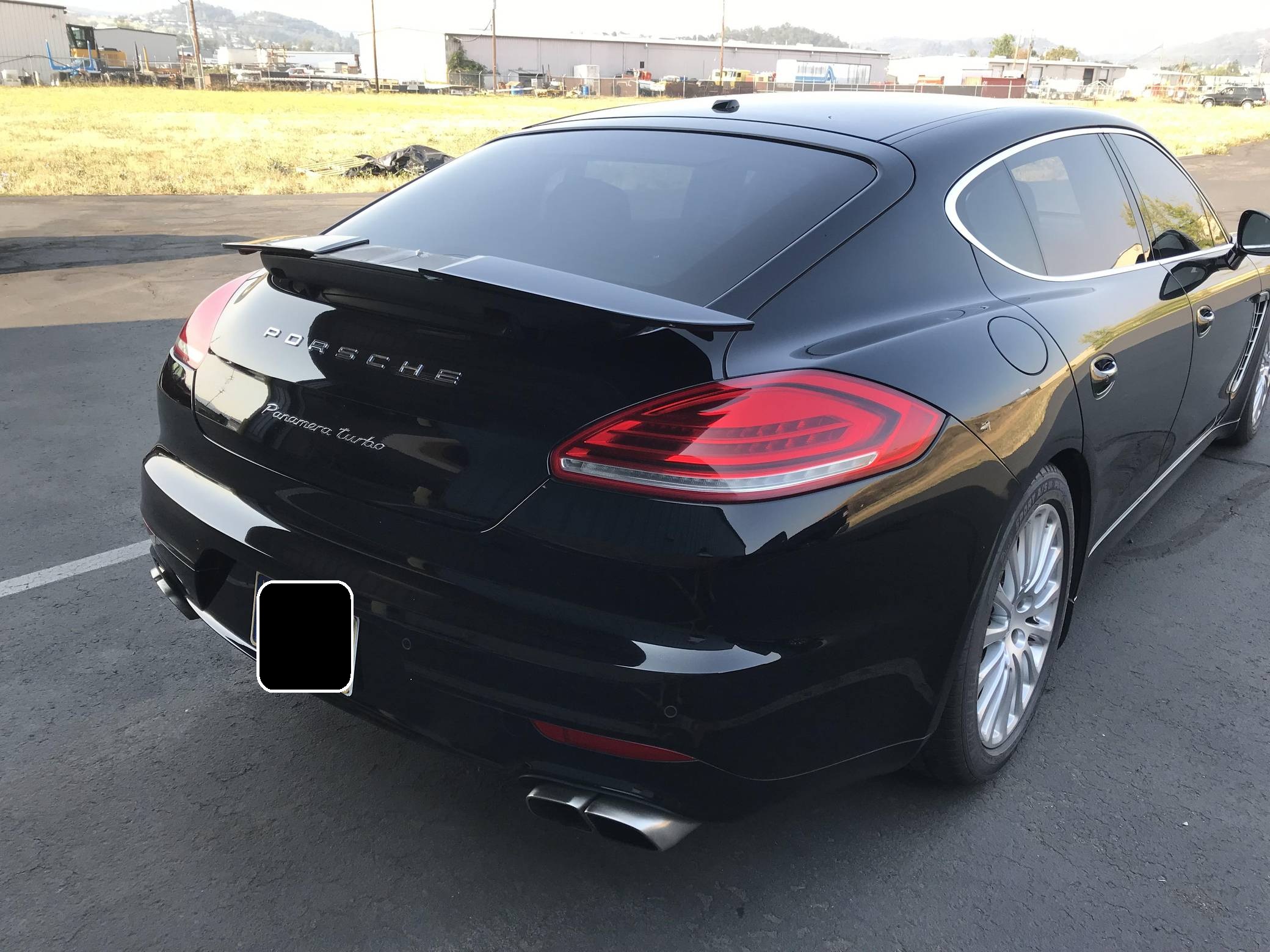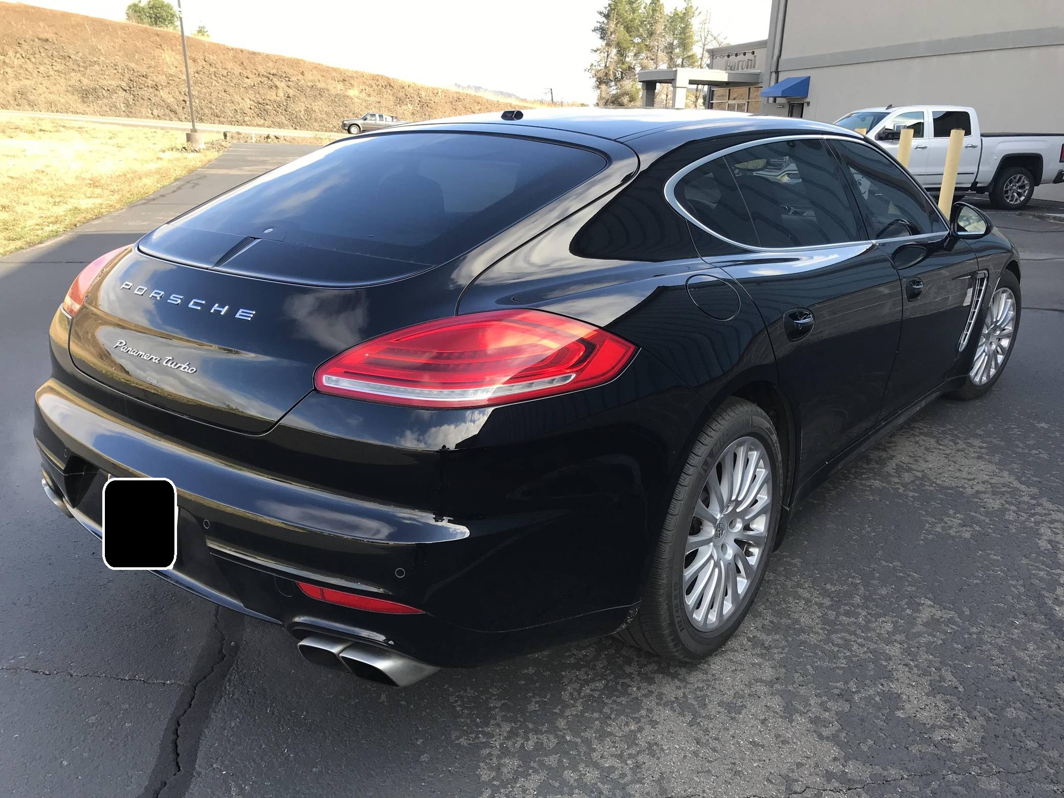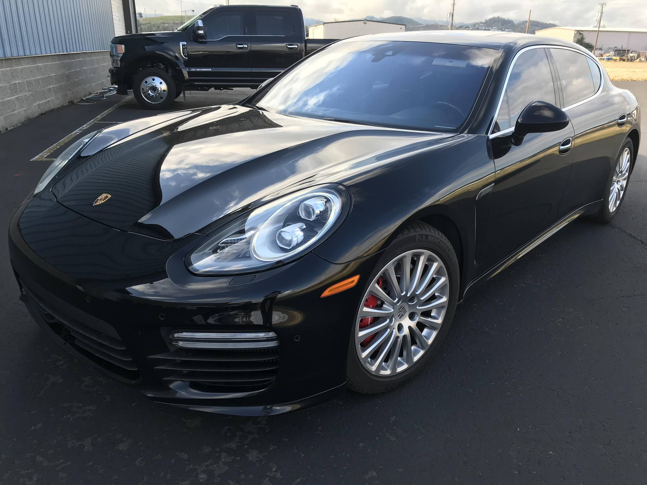 THIS. . . is a 2014 Porsche Panamera Turbo Executive, finished in black with a black interior. Factory equipment includes the Sport Chrono Package, 20-inch 911 Turbo II Wheels, LED headlights with Porsche Dynamic Light System Plus (PDLS Plus), leather upholstery, power-adjustable heated and ventilated front and rear seats, a navigation system, and a Burmester High-End surround sound system, and more as listed below. The sole modification reported by the seller is 19-inch wheels. After several false starts, Porsche entered the sedan segment for the first time when it launched the original Panamera for 2010. While its design and its very existence were controversial, the Panamera ultimately drew praise as the sportiest model in its segment and it achieved this distinction without sacrificing comfort or luxury. The Turbo model was slotted near the top of the line-up when it arrived for 2011. The Panamera Executive joined the range for 2014, featuring a longer by almost six inches wheelbase, with the extra length benefitting almost exclusively the rear passenger area. Power comes from a twin-turbocharged 4. 8-liter V8, rated at 520 horsepower and 568 lb-ft of torque. Output is sent to all 4 wheels via a 7-speed PDK dual-clutch automatic transmission.
