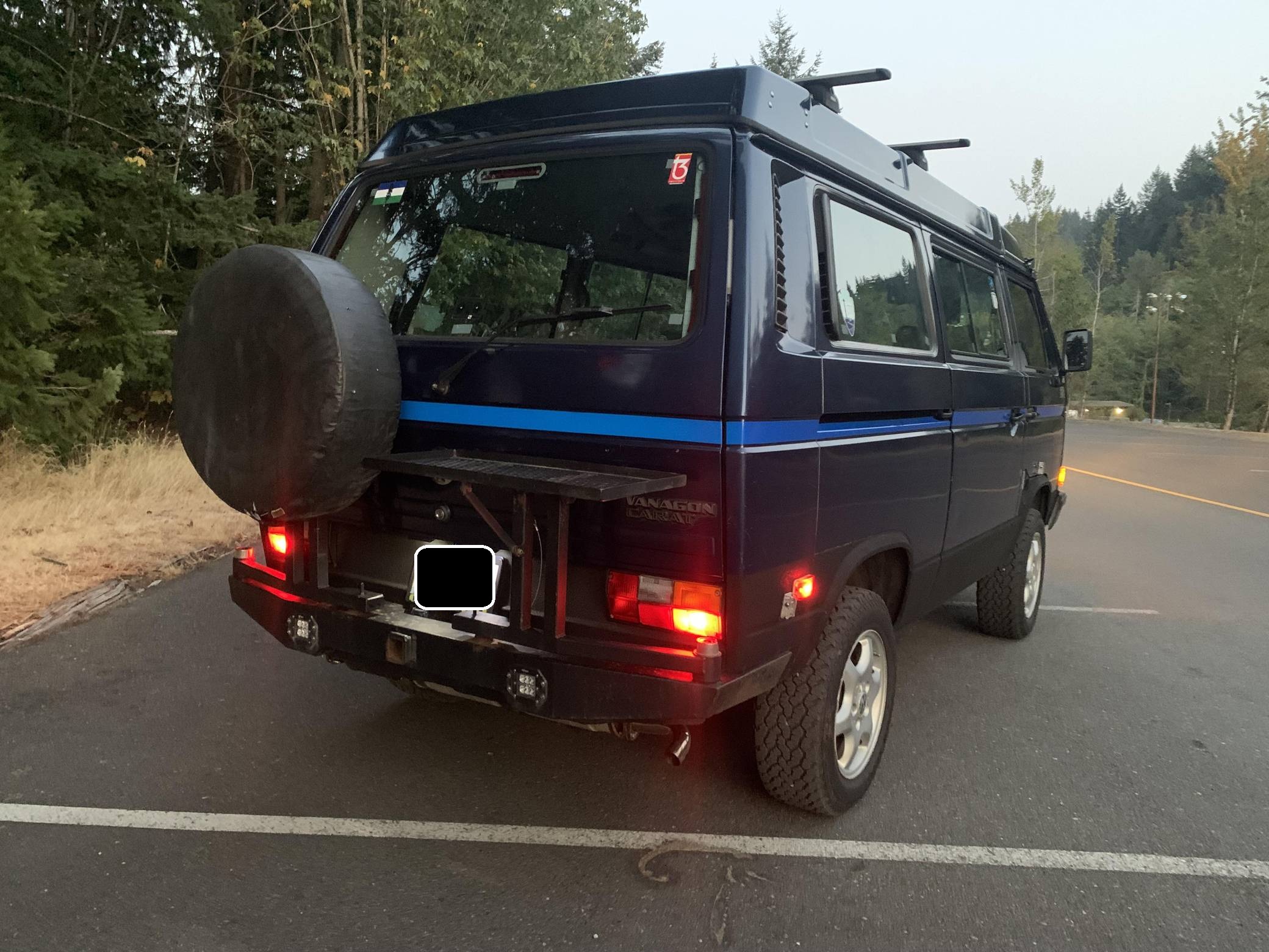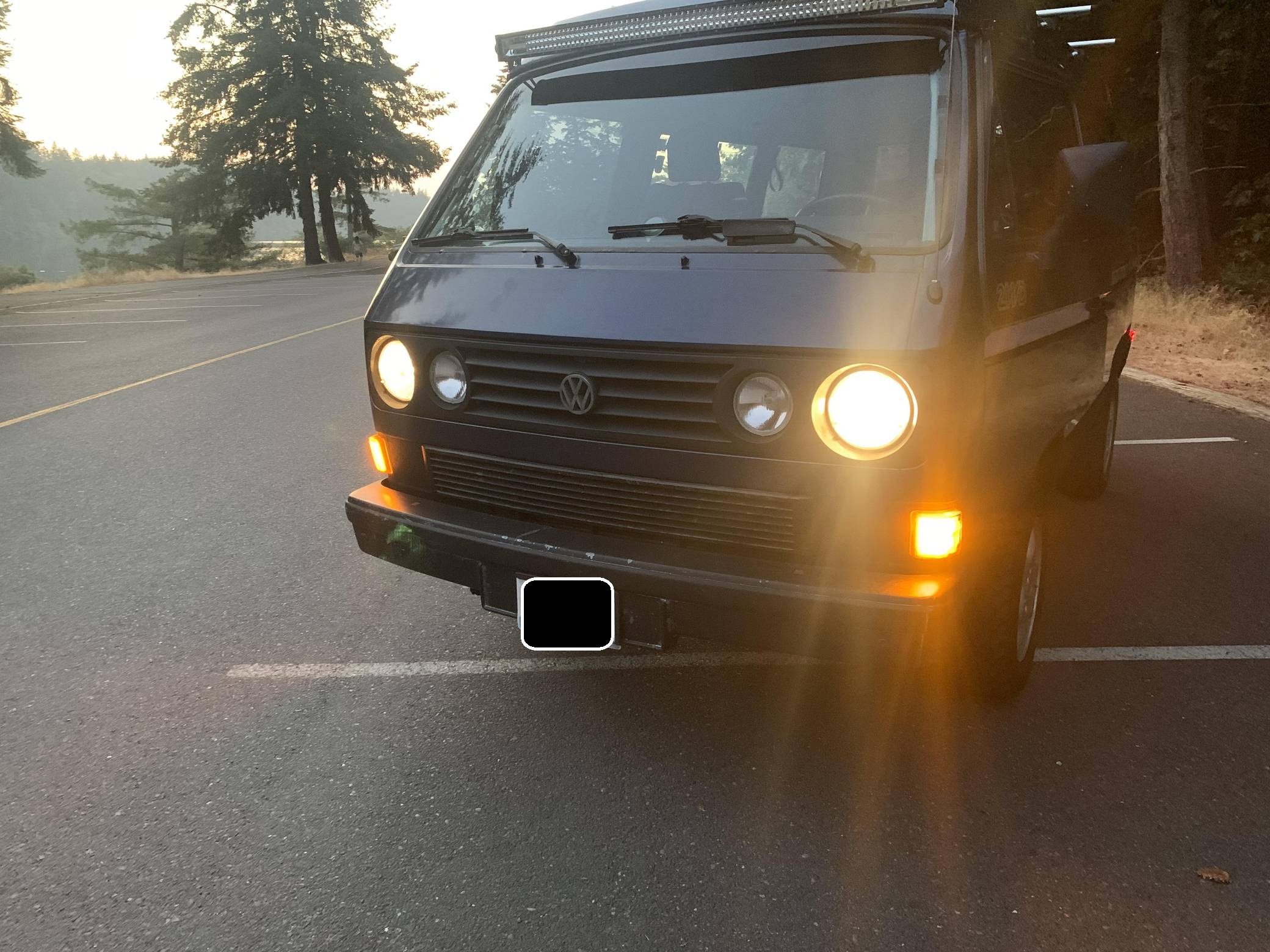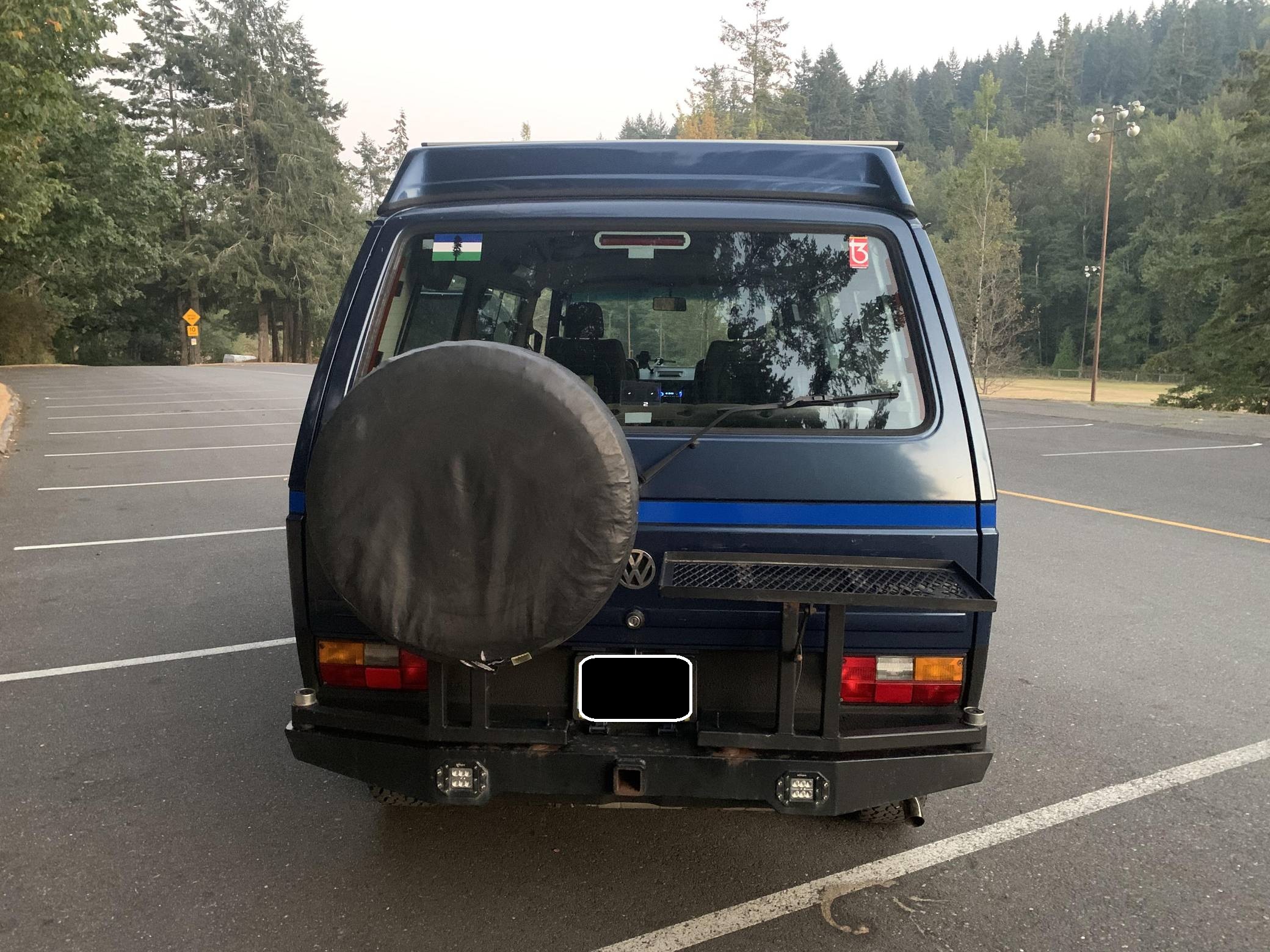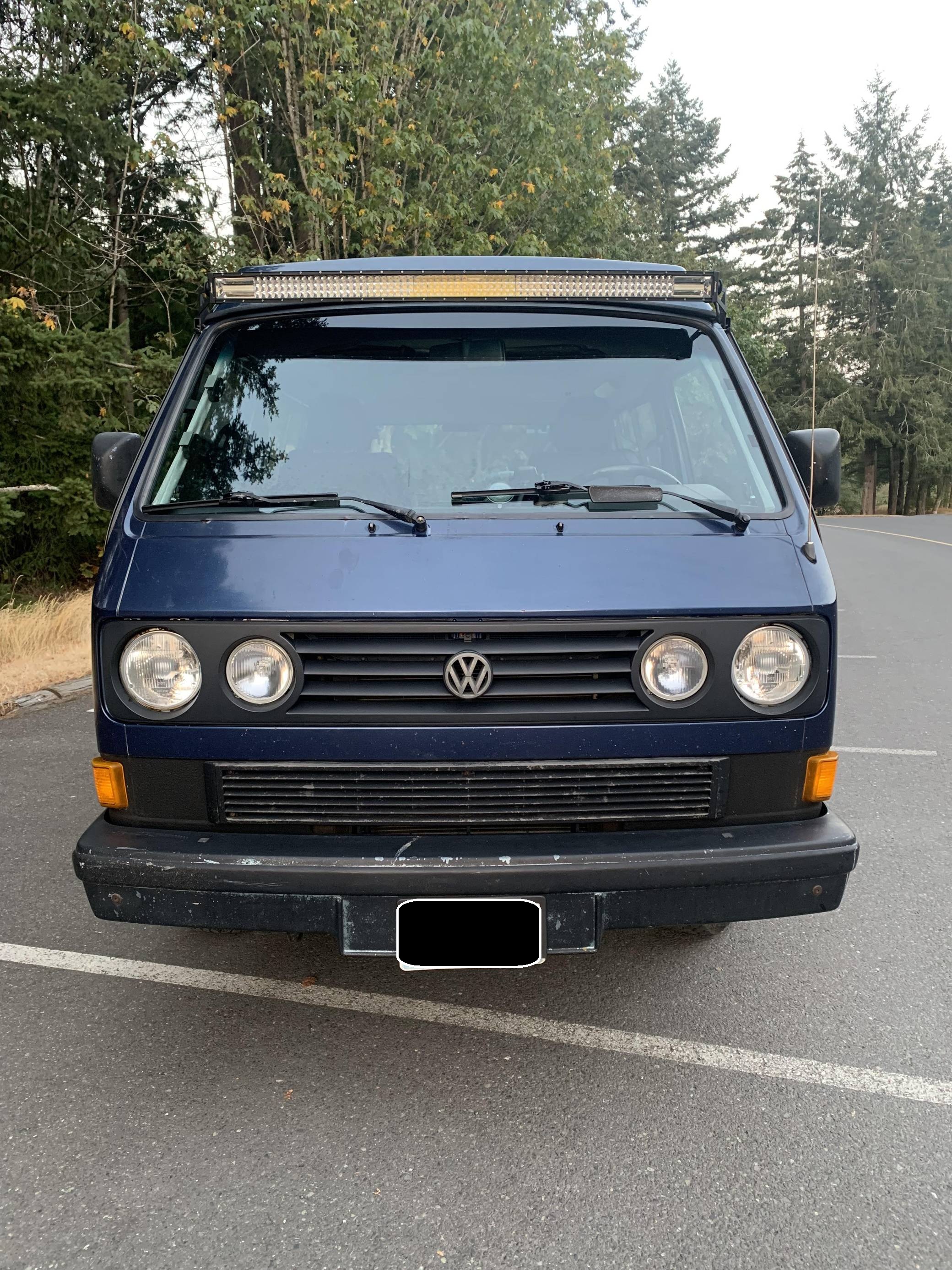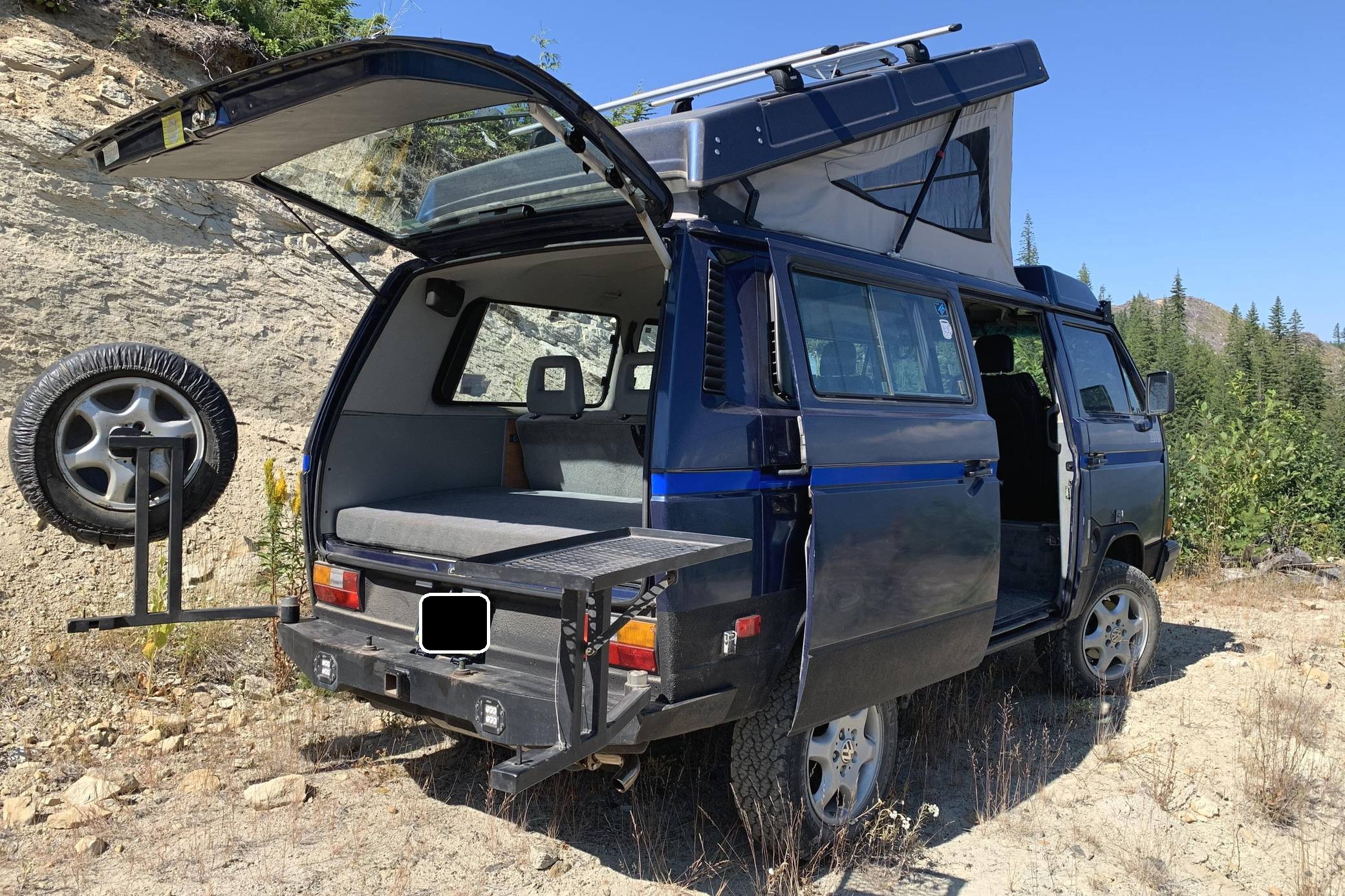 THIS… is a 1989 Volkswagen Vanagon Carat, finished in Orly Blue Metallic with a grey interior. This Vanagon features the desirable 4-speed manual transmission. A partial list of notable factory equipment includes power steering, a sliding side door, and more as detailed below. Modifications to this Vanagon are extensive, and the full list is detailed below. include a Subaru "EJ25" 2. 5-liter flat-4 engine swap, a rebuilt transmission with a taller 4th gear, a GoWesty 2-inch lift kit and Bigger Brake system, 16-inch GoWesty alloy wheels with General Grabber AT2 tires, a Volkswagen Vanagon pop-top camper roof, a 52-inch curved front light bar, black leather folding front seats with passenger swivel, a queen-size Z-bed rear bench seat, an undercarriage-mounted propane tank, a Westfalia cabinet with 2-burner stove and sink, a 100 amp-hour house battery, and a 7-gallon water tank. Volkswagen released the Vanagon for the 1980 model year to replace the Transporter, which traced its roots to the original Bus launched in 1950. It kept its predecessor's rear-mounted engine, but it was longer, wider, and characterized by a boxier design. 1983 brought a water-cooled engine, and production for the American market ended in 1991, though Volkswagen continued selling the model in South Africa until 2002. Power comes from an "EJ25" 2. 5-liter flat-4, rated at 173 horsepower and 166 lb-ft of torque. Output is sent to the rear wheels via a 4-speed manual transmission.