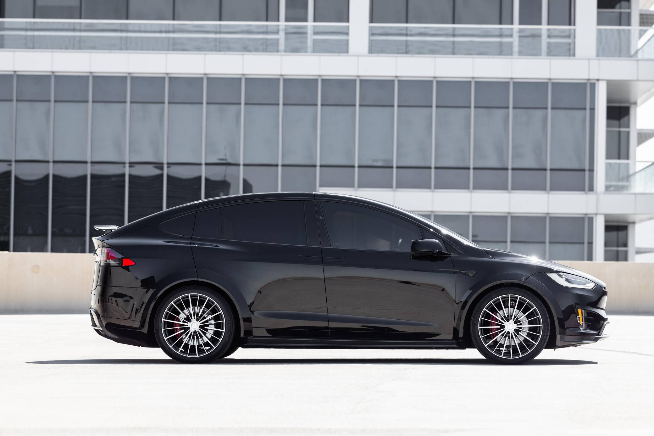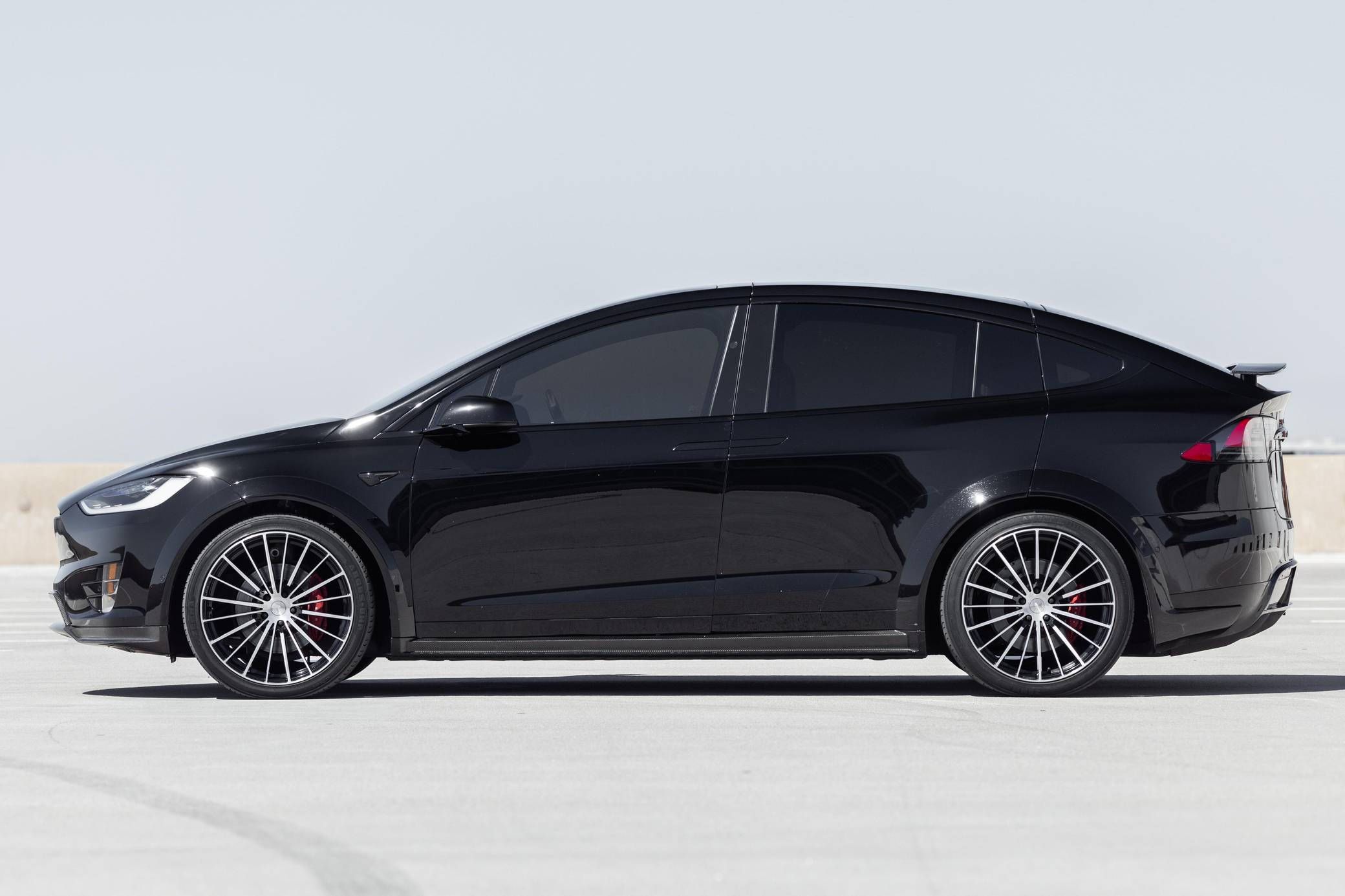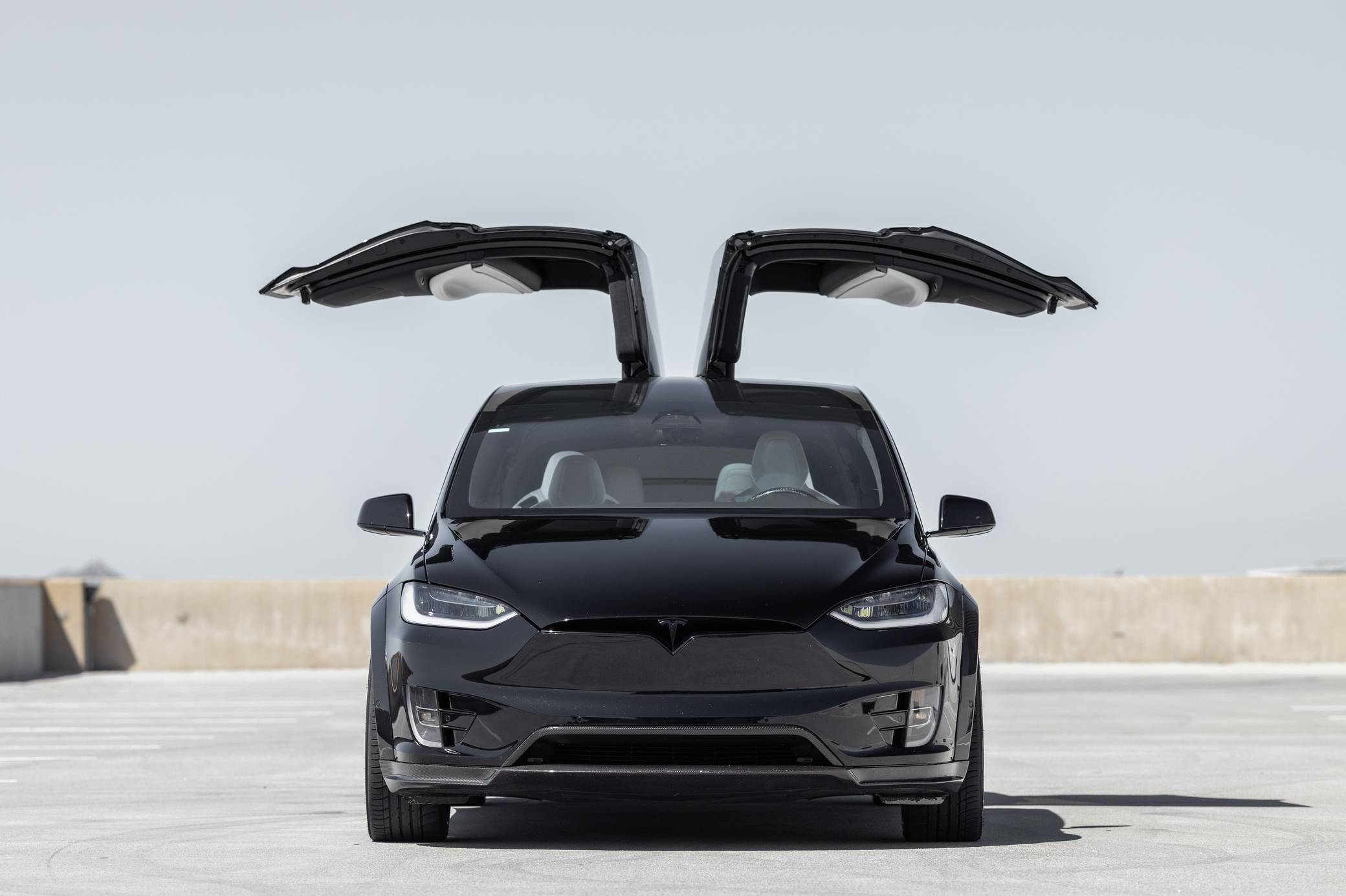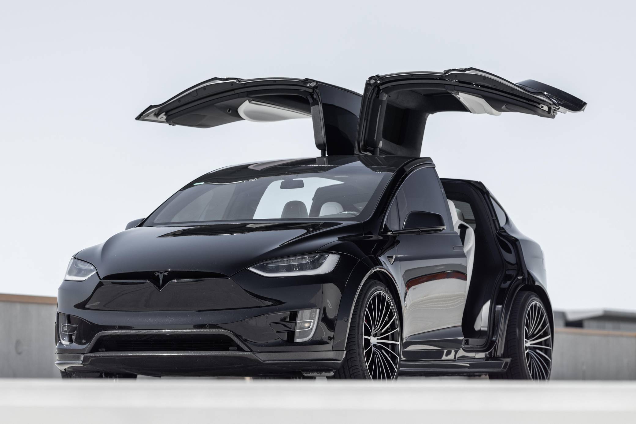 THIS. . . is a 2018 Tesla Model X P100D, finished in black with a white interior. It also lists two owners from new. Factory equipment includes the Premium Interior Package, adjustable air suspension system, red-painted brake calipers, power-operated "Falcon" rear doors, a rear spoiler, heated, ventilated, and power-adjustable front seats, 6-seat configuration, a heated steering wheel, 17-inch capacitive touchscreen, Enhanced Autopilot technology, and cruise control. Modifications reported by the seller include a T Sportline “T Largo” Founders Edition kit, 22-inch TS120 forged alloy wheels, tinted windows, carbon fiber trim, and much more listed below. Tesla introduced the Model X for the 2016 model year as a taller and more spacious alternative to the Model S. It stood out from other crossovers with unusual double-hinged falcon doors. It has gone through several powertrain and software evolutions, and it's still available new today. Power comes from a pair of electric motors, which draw electricity from a 100-kilowatt-hour lithium-ion battery pack to zap the four wheels with 680 horsepower and 791 lb-ft of torque, according to third-party estimates. In 2018, the EPA gave the P100D a maximum driving range rating of 289 miles.