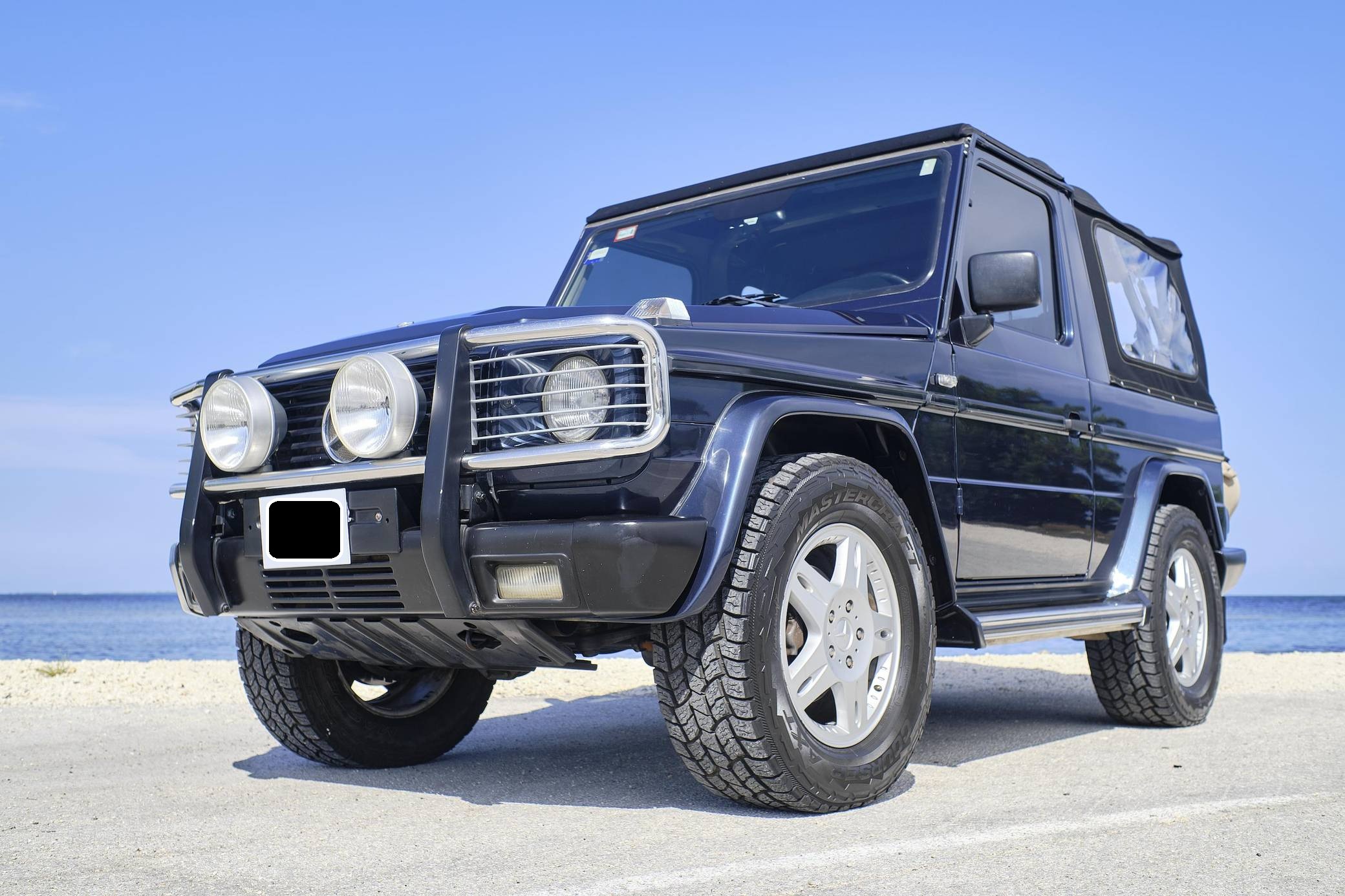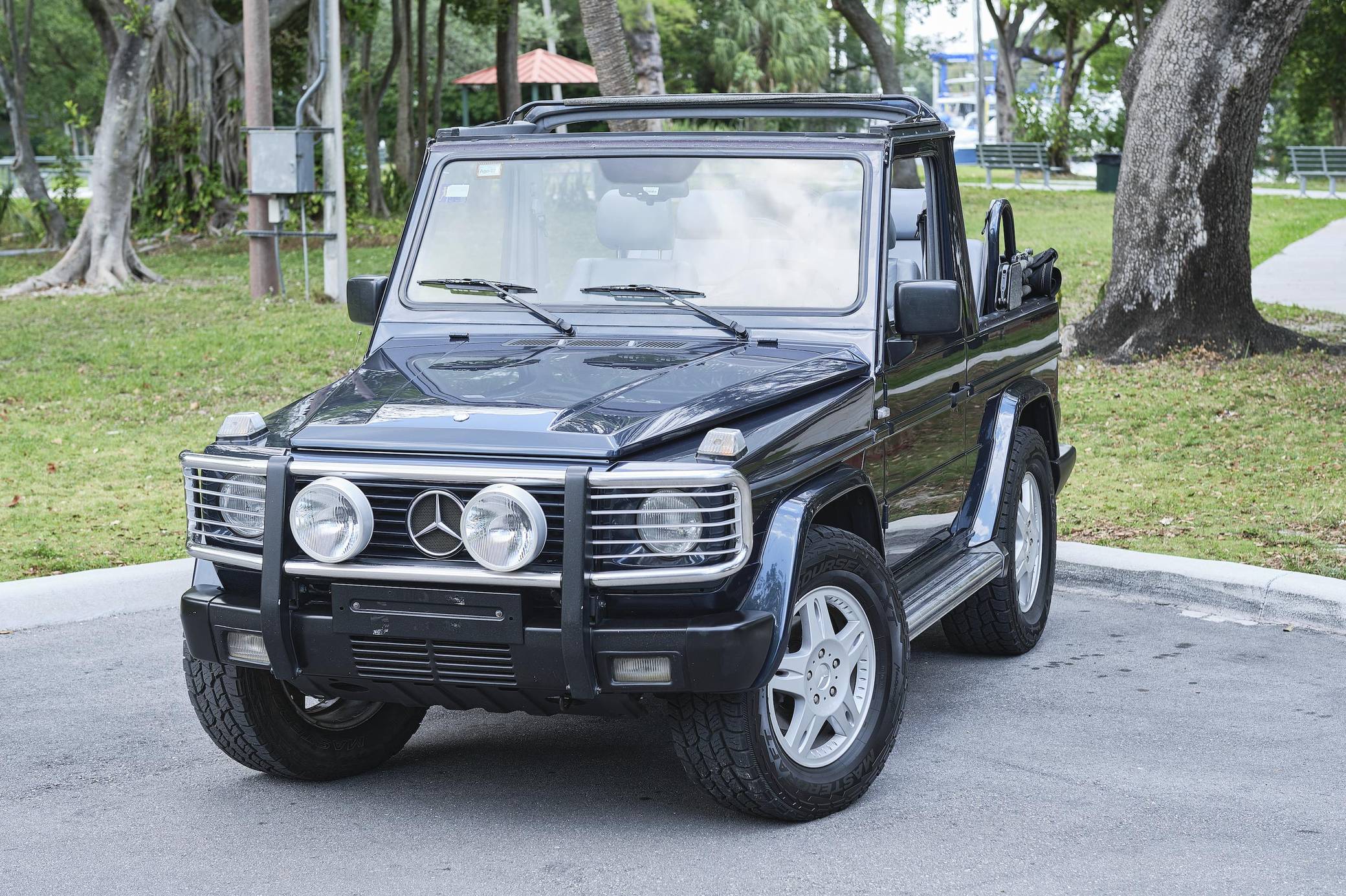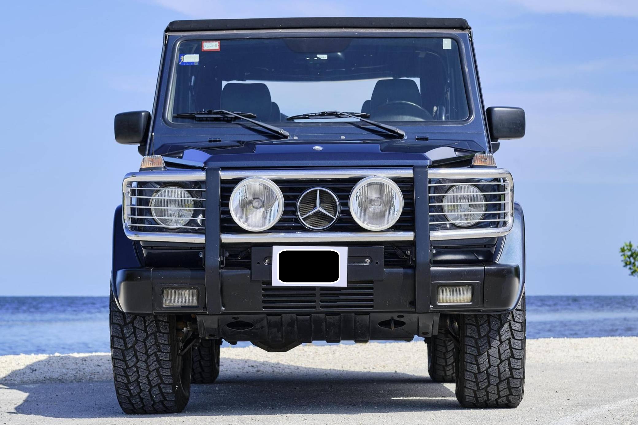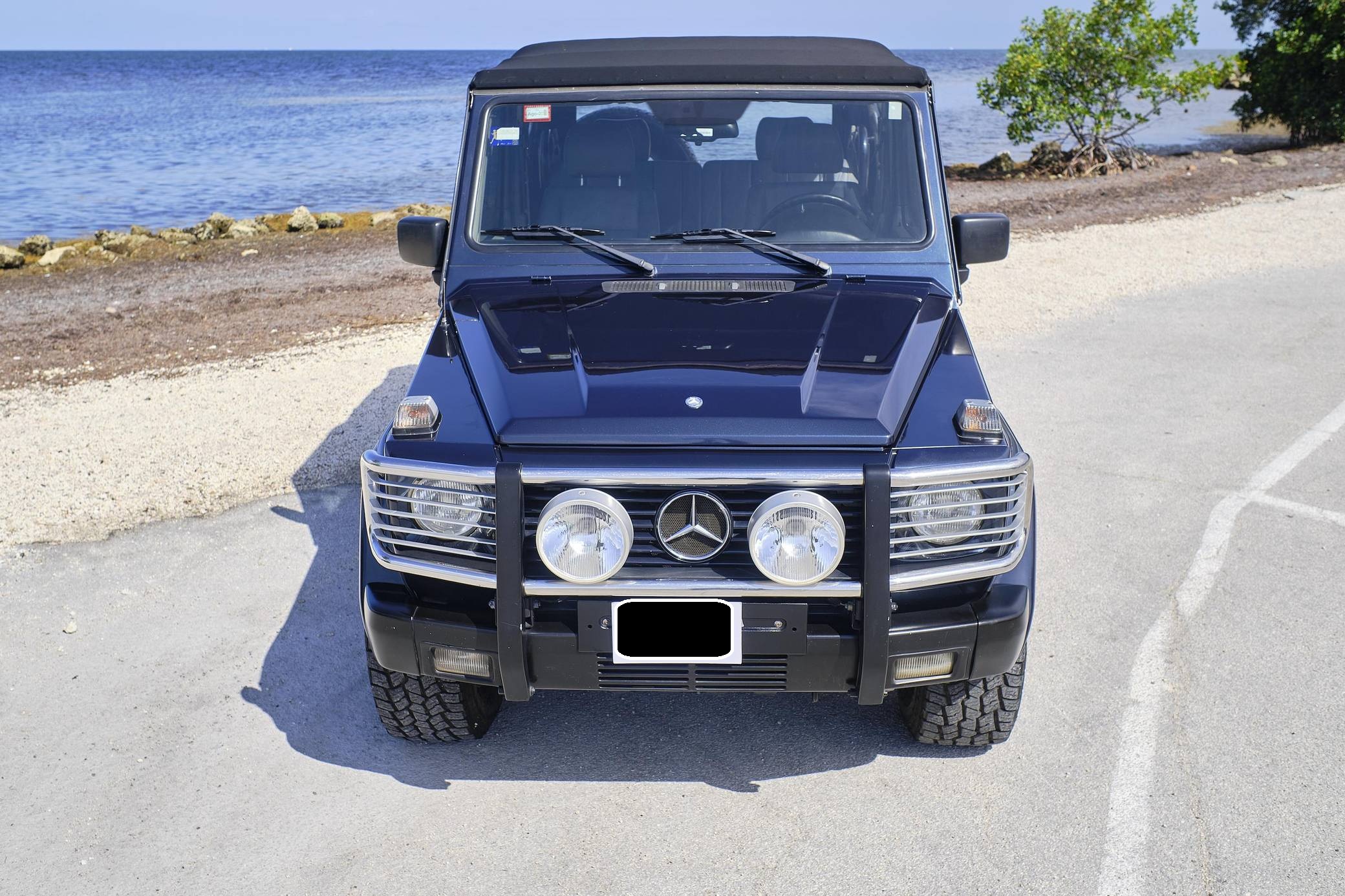 1997 Mercedes-Benz G320 Cabriolet, finished in Green Black Metallic with a black soft top and a gray interior. This is a left-hand-drive G-Class that was reportedly imported from Costa Rica earlier in 2022. It's equipped with a metric instrument cluster and its odometer displays about 137,700 kilometers, which represents approximately 85,600 miles. Factory equipment includes 18-inch wheels, front, center, and rear locking differentials, side steps, a manually-folding and removable soft top, wood interior trim, leather upholstery, power-adjustable front seats, and air conditioning. This G320's build sheet is pictured in the gallery. Modifications reported by the seller include tinted front windows and a Pioneer head unit. Mercedes-Benz joined forces with Steyr-Daimler-Puch to create the original G-Class (W460). It was released in 1979 and aimed largely at farmers and adventurers; Beverly Hills wasn't on the company's radar yet. The G's upmarket ascent started when the extensively updated W463 arrived in 1990. It looked a lot like the original G, but it gained a longer list of features and a permanent four-wheel-drive system. American sales officially started for the 2003 model year and civilian production ended in 2018. The convertible model, which was never imported to the United States by Mercedes-Benz, retired in 2014. Power comes from a 3. 2-liter straight-6, rated at 208 horsepower and 221 lb-ft of torque. Called "M104" internally, it spins the four wheels via a 4-speed automatic transmission and a 2-speed transfer case.