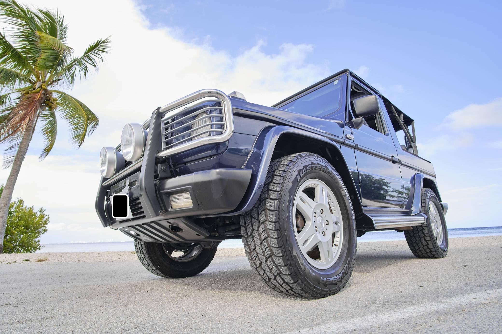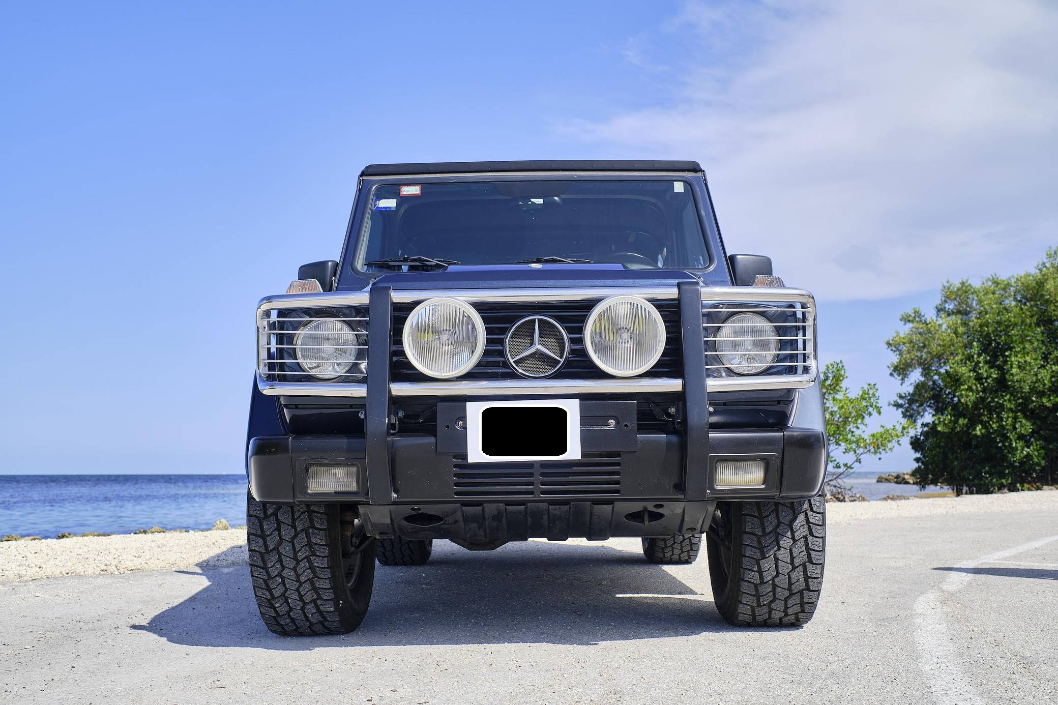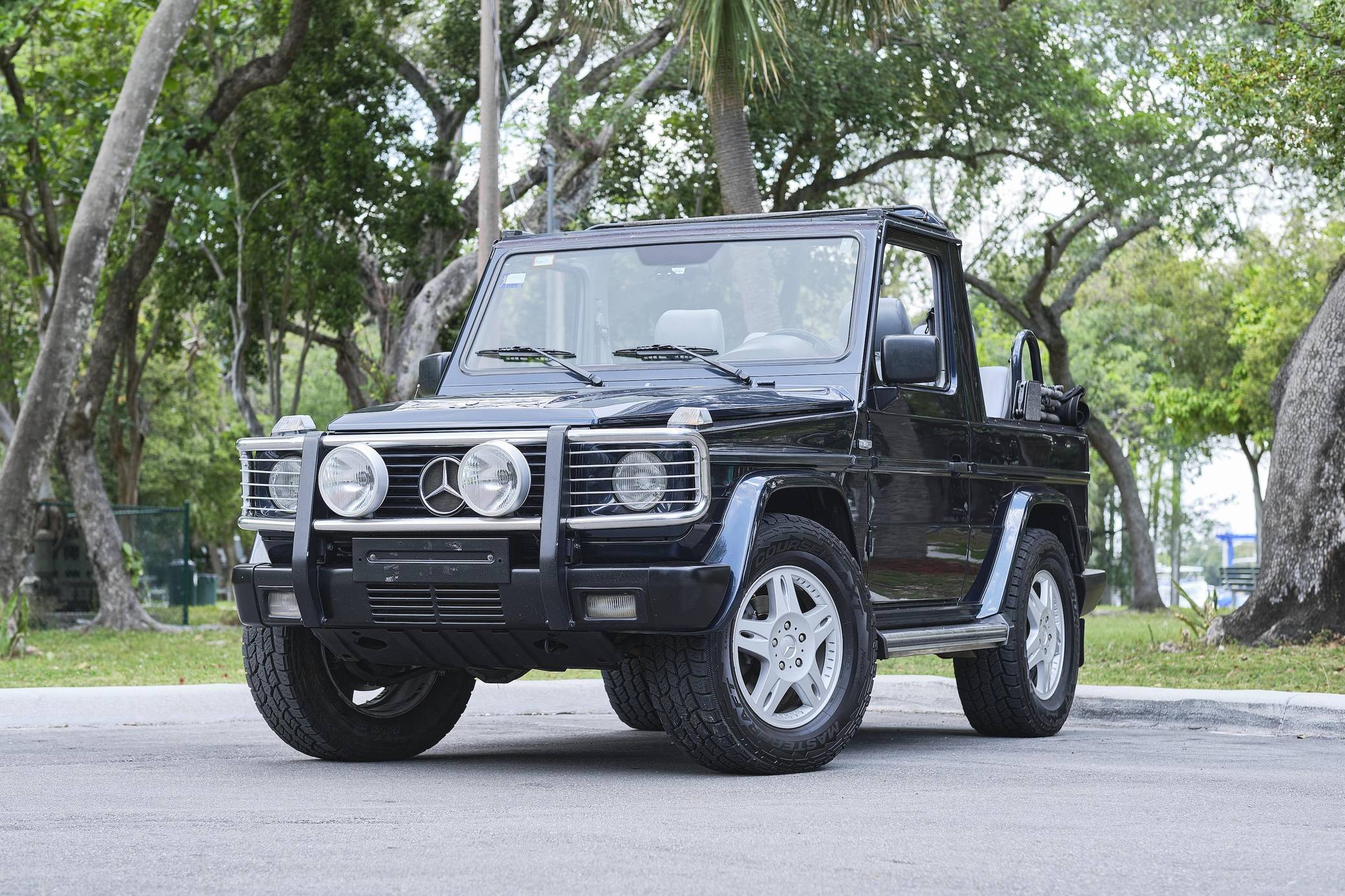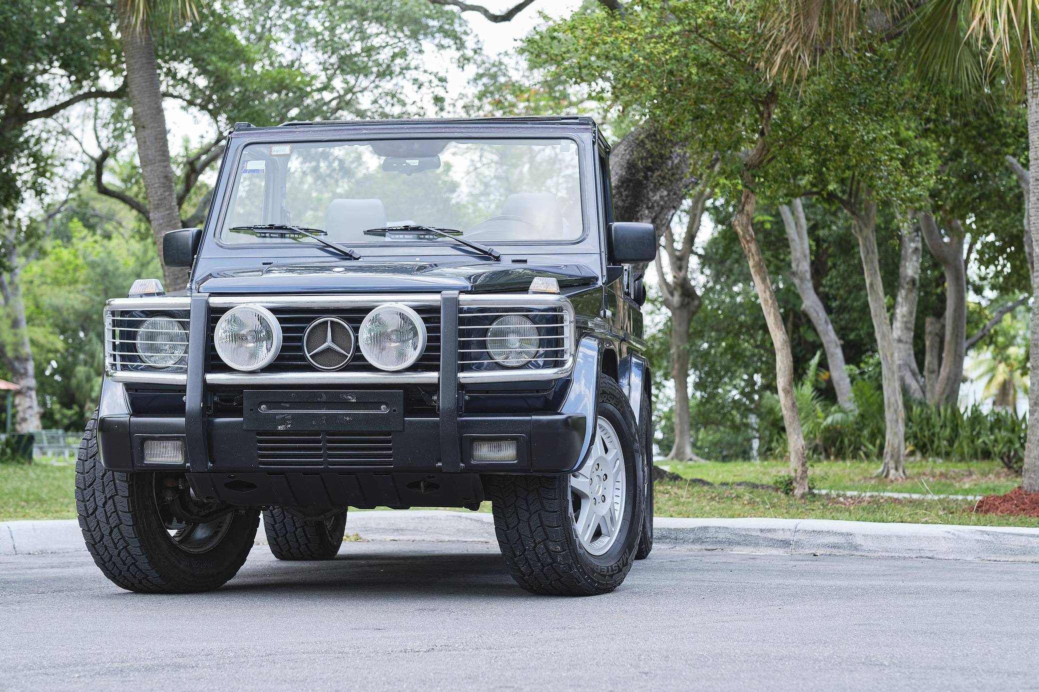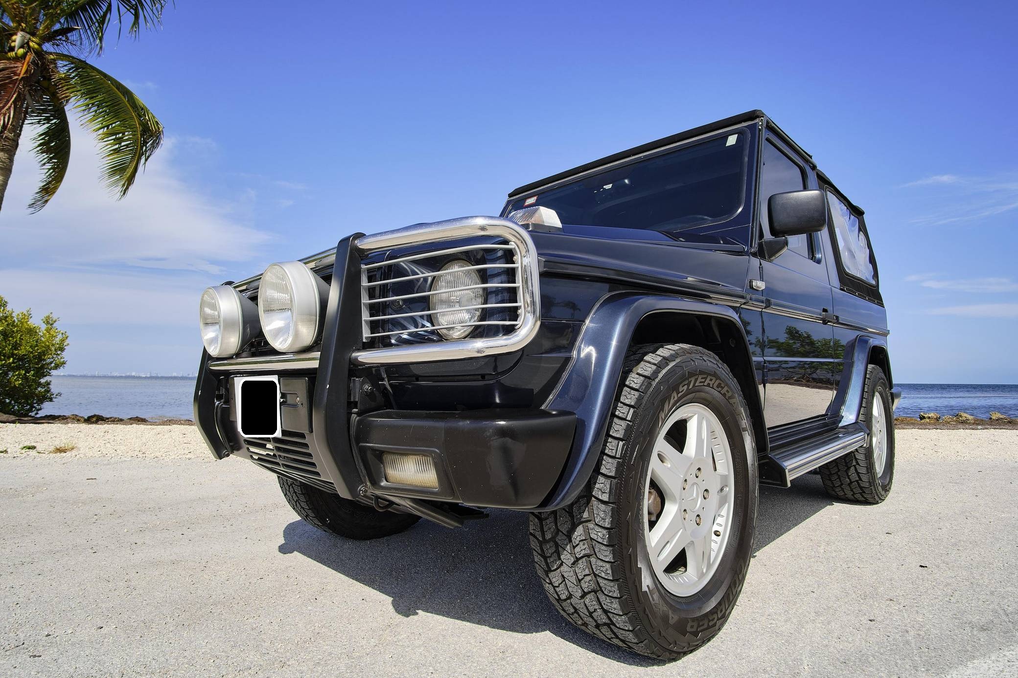 1997 Mercedes-Benz G320 Cabriolet, finished in Green Black Metallic with a black soft top and a gray interior. This is a left-hand-drive G-Class that was reportedly imported from Costa Rica earlier in 2022. It's equipped with a metric instrument cluster and its odometer displays about 137,700 kilometers, which represents approximately 85,600 miles. Factory equipment includes 18-inch wheels, front, center, and rear locking differentials, side steps, a manually-folding and removable soft top, wood interior trim, leather upholstery, power-adjustable front seats, and air conditioning. This G320's build sheet is pictured in the gallery. Modifications reported by the seller include tinted front windows and a Pioneer head unit. Mercedes-Benz joined forces with Steyr-Daimler-Puch to create the original G-Class (W460). It was released in 1979 and aimed largely at farmers and adventurers; Beverly Hills wasn't on the company's radar yet. The G's upmarket ascent started when the extensively updated W463 arrived in 1990. It looked a lot like the original G, but it gained a longer list of features and a permanent four-wheel-drive system. American sales officially started for the 2003 model year and civilian production ended in 2018. The convertible model, which was never imported to the United States by Mercedes-Benz, retired in 2014. Power comes from a 3. 2-liter straight-6, rated at 208 horsepower and 221 lb-ft of torque. Called "M104" internally, it spins the four wheels via a 4-speed automatic transmission and a 2-speed transfer case.
