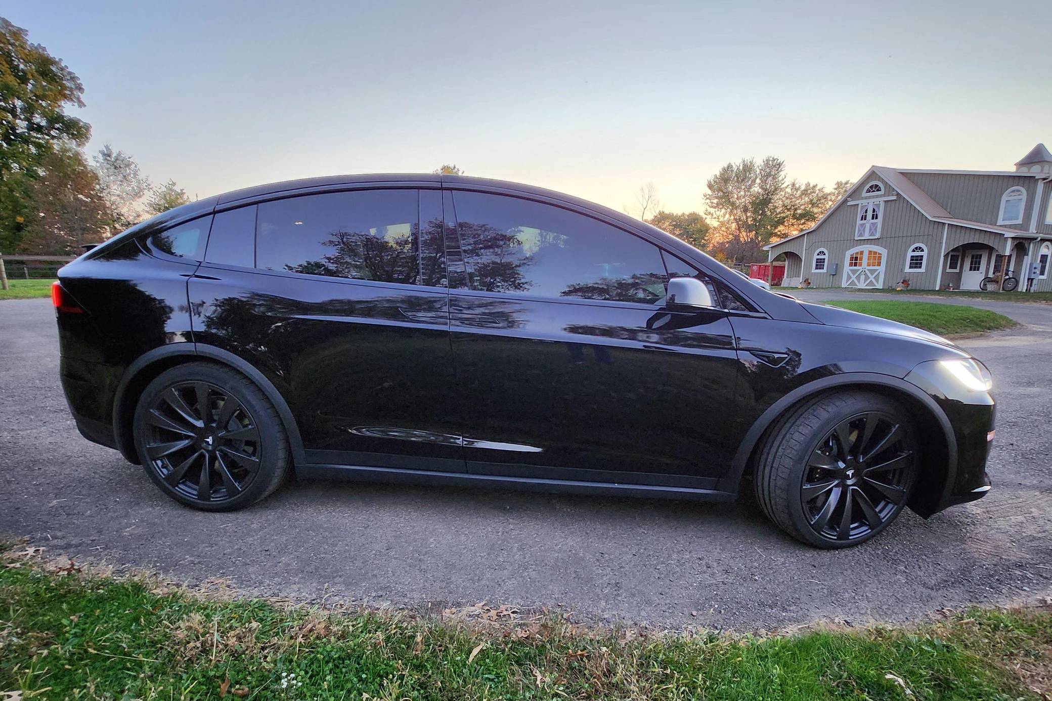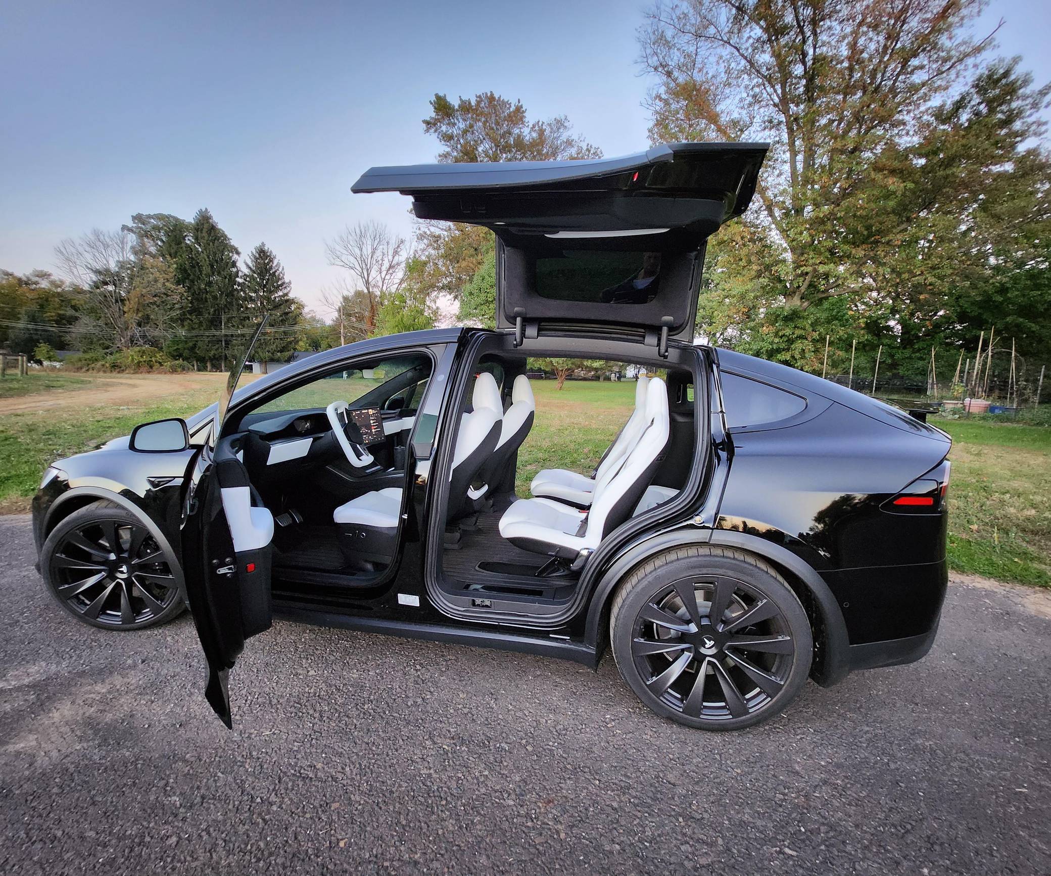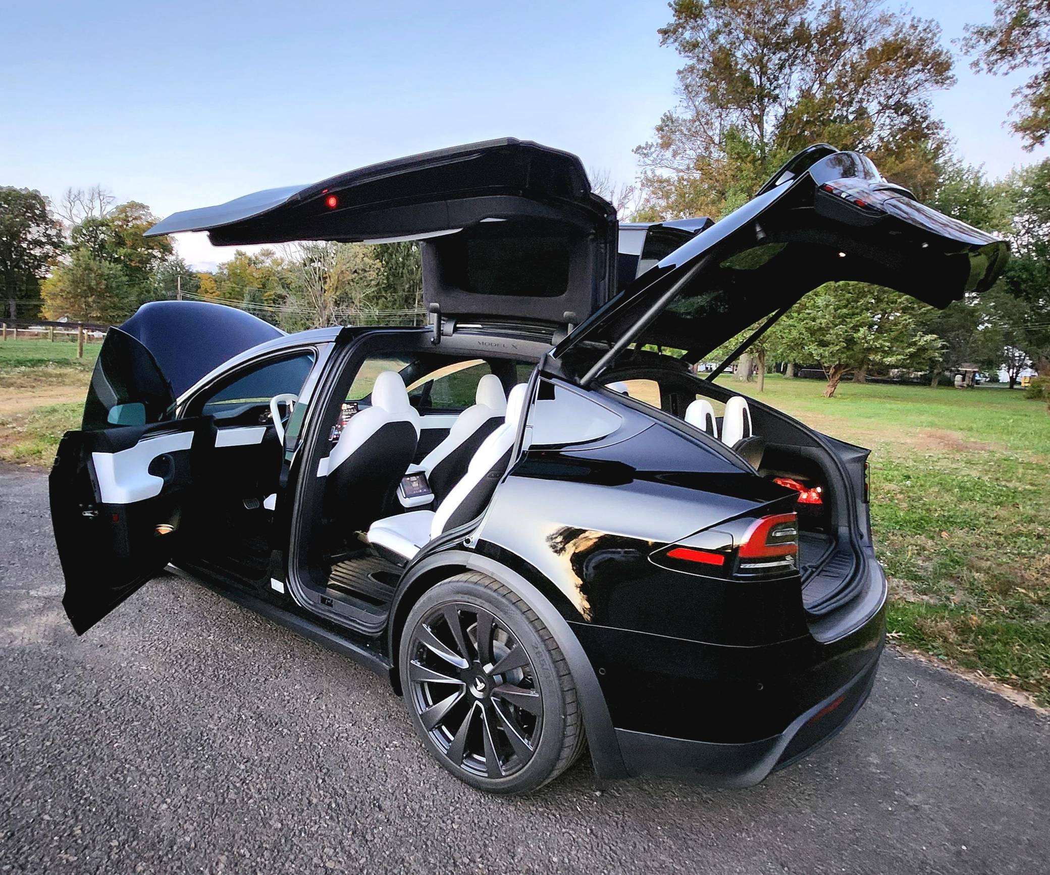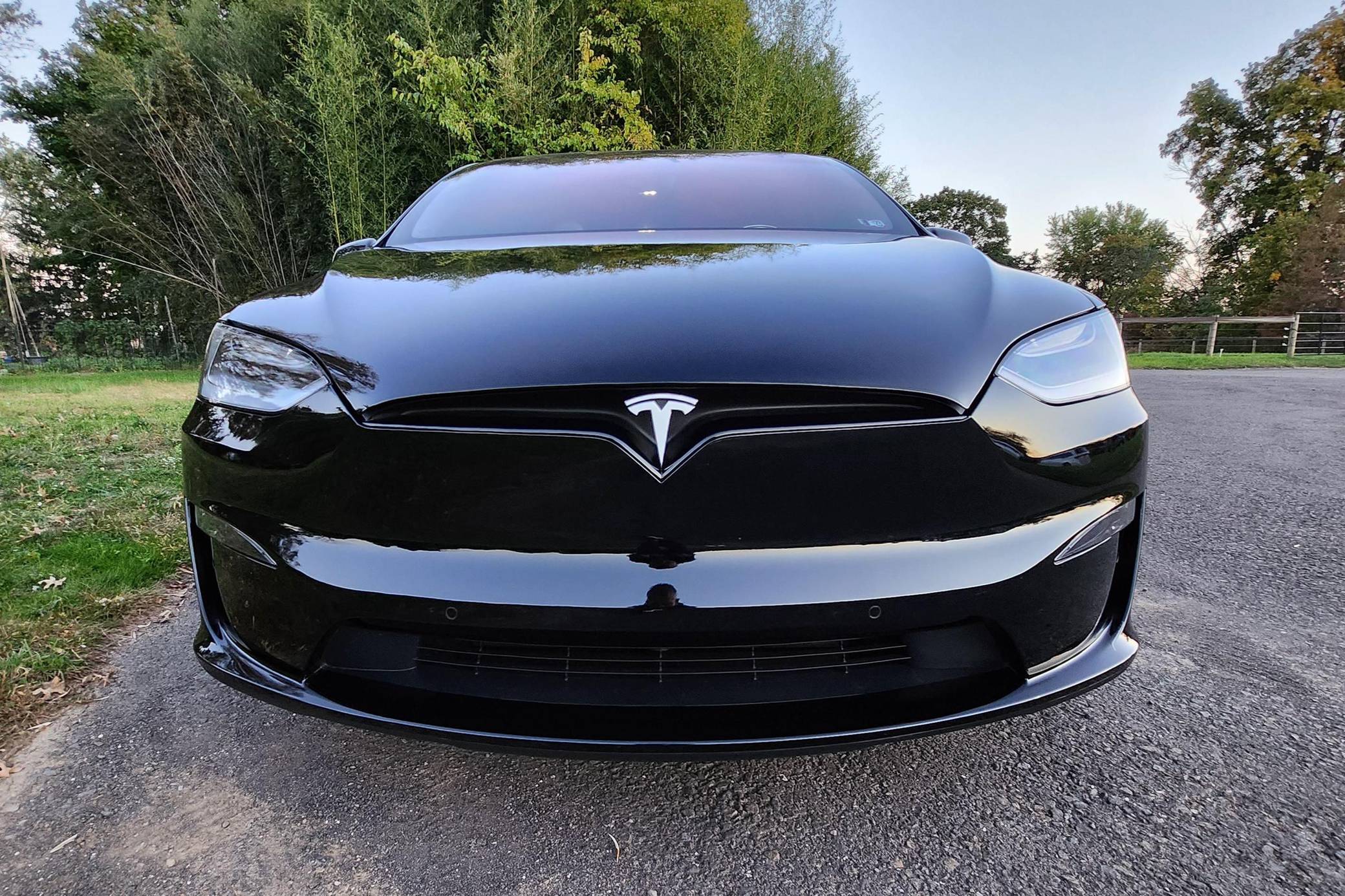 THIS. . . is a 2022 Tesla Model X Plaid, finished in black with a white interior. Modifications reported by the seller include a power-operated front trunk, paint protection film, front window tint, and a white yoke steering wheel. Tesla introduced the Model X for the 2016 model year as a taller, more spacious alternative to the Model S. It stood out from other crossovers with unusual double-hinged falcon rear doors. It has gone through several powertrain and interior evolutions since its launch, and it's still available new today. Power comes from three electric motors, which draw electricity from a 100-kilowatt-hour lithium-ion battery pack to zap the four wheels with 1,020 horsepower. Fitted with 22-inch wheels, the Model X Plaid earned a maximum driving range rating of 311 miles from the EPA.