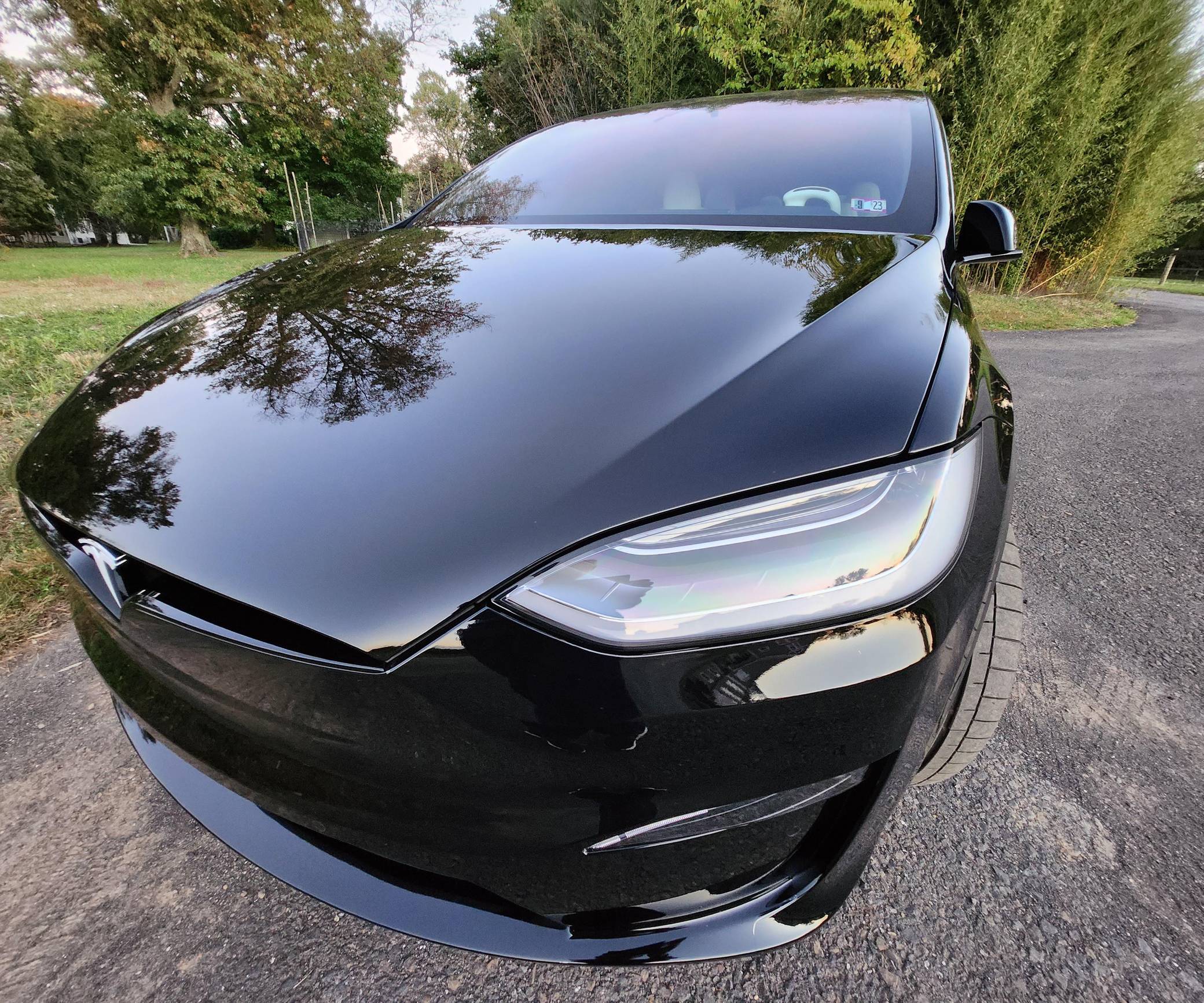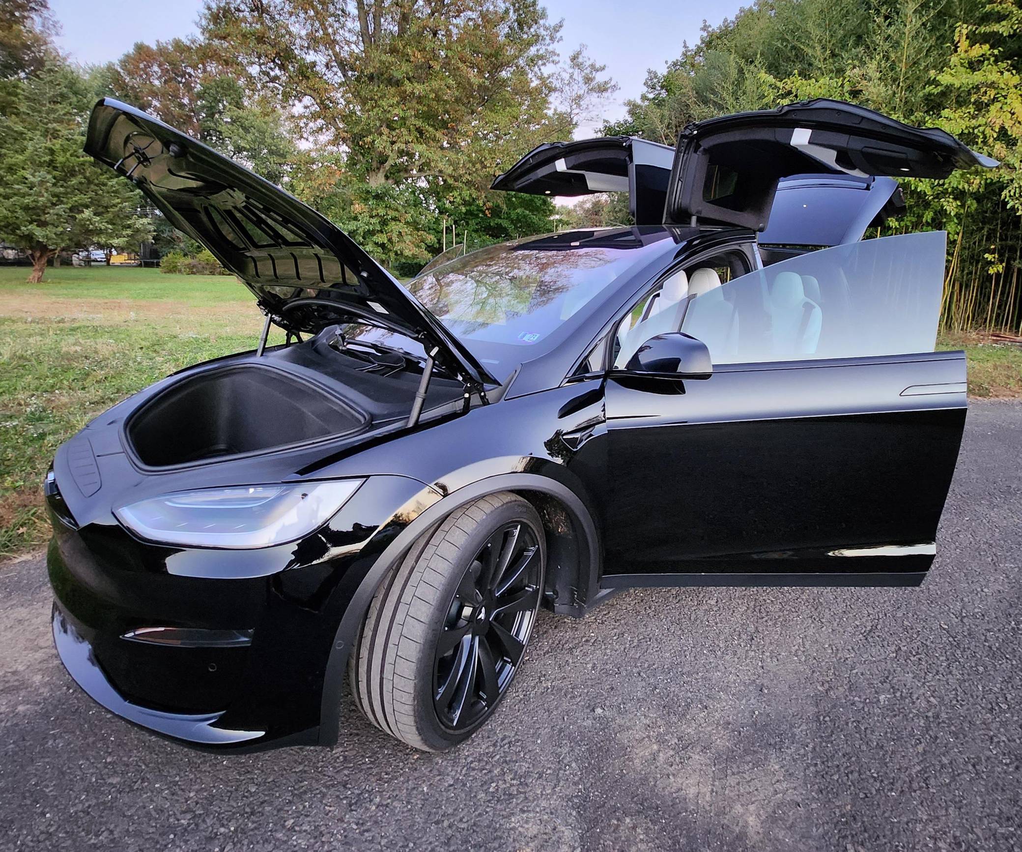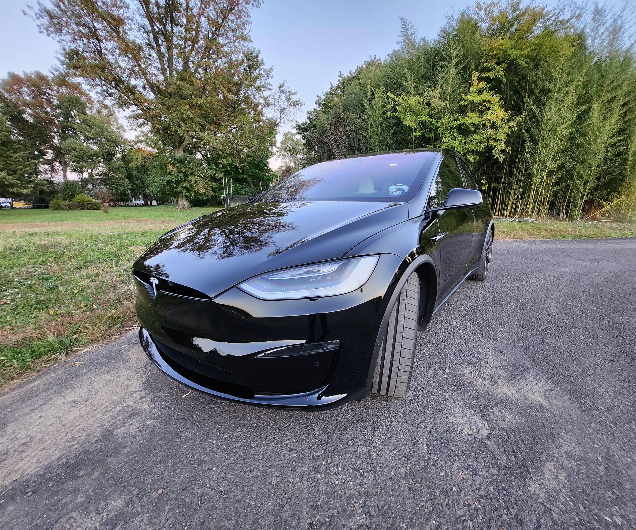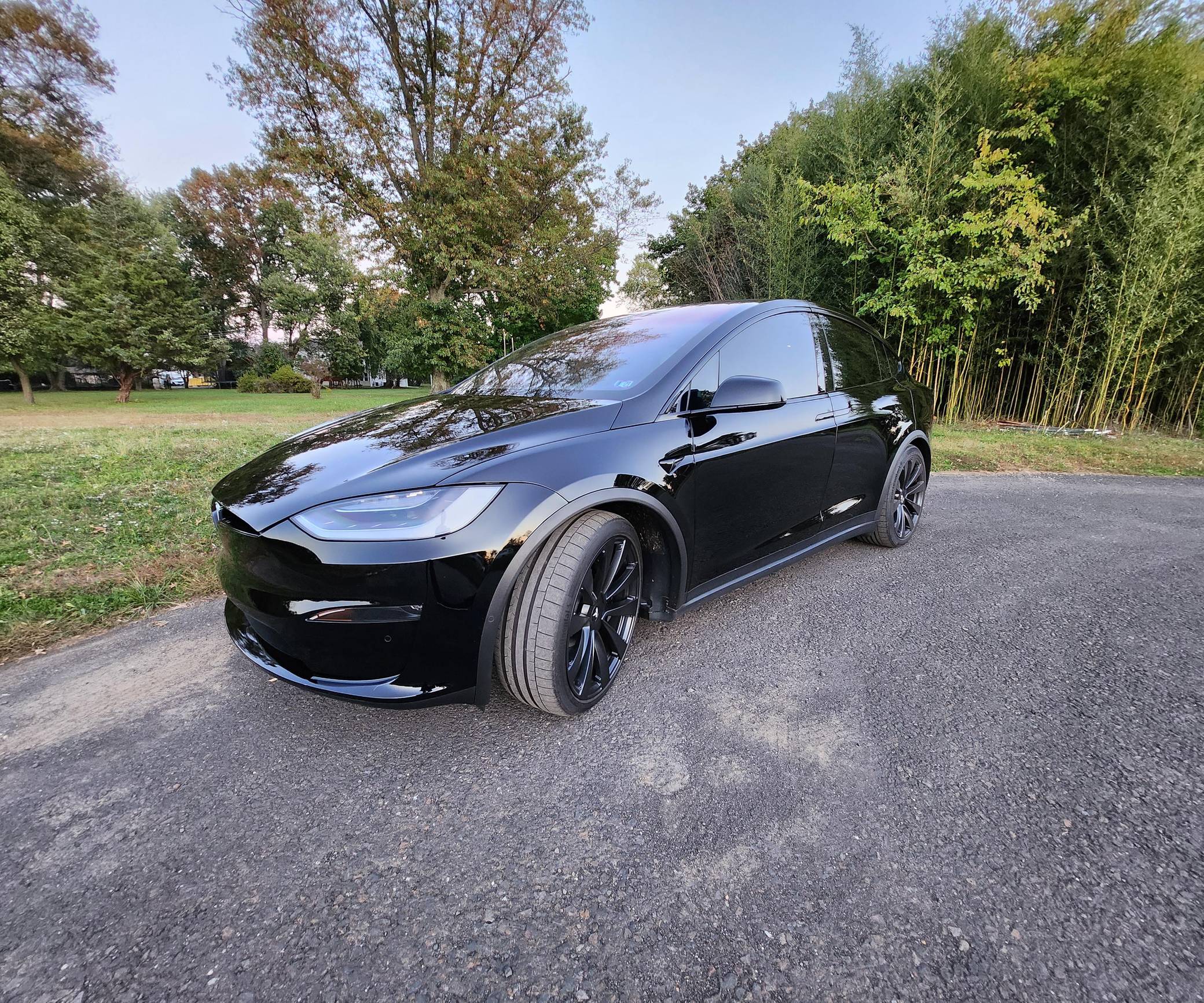 THIS. . . is a 2022 Tesla Model X Plaid, finished in black with a white interior. Modifications reported by the seller include a power-operated front trunk, paint protection film, front window tint, and a white yoke steering wheel. Tesla introduced the Model X for the 2016 model year as a taller, more spacious alternative to the Model S. It stood out from other crossovers with unusual double-hinged falcon rear doors. It has gone through several powertrain and interior evolutions since its launch, and it's still available new today. Power comes from three electric motors, which draw electricity from a 100-kilowatt-hour lithium-ion battery pack to zap the four wheels with 1,020 horsepower. Fitted with 22-inch wheels, the Model X Plaid earned a maximum driving range rating of 311 miles from the EPA.
