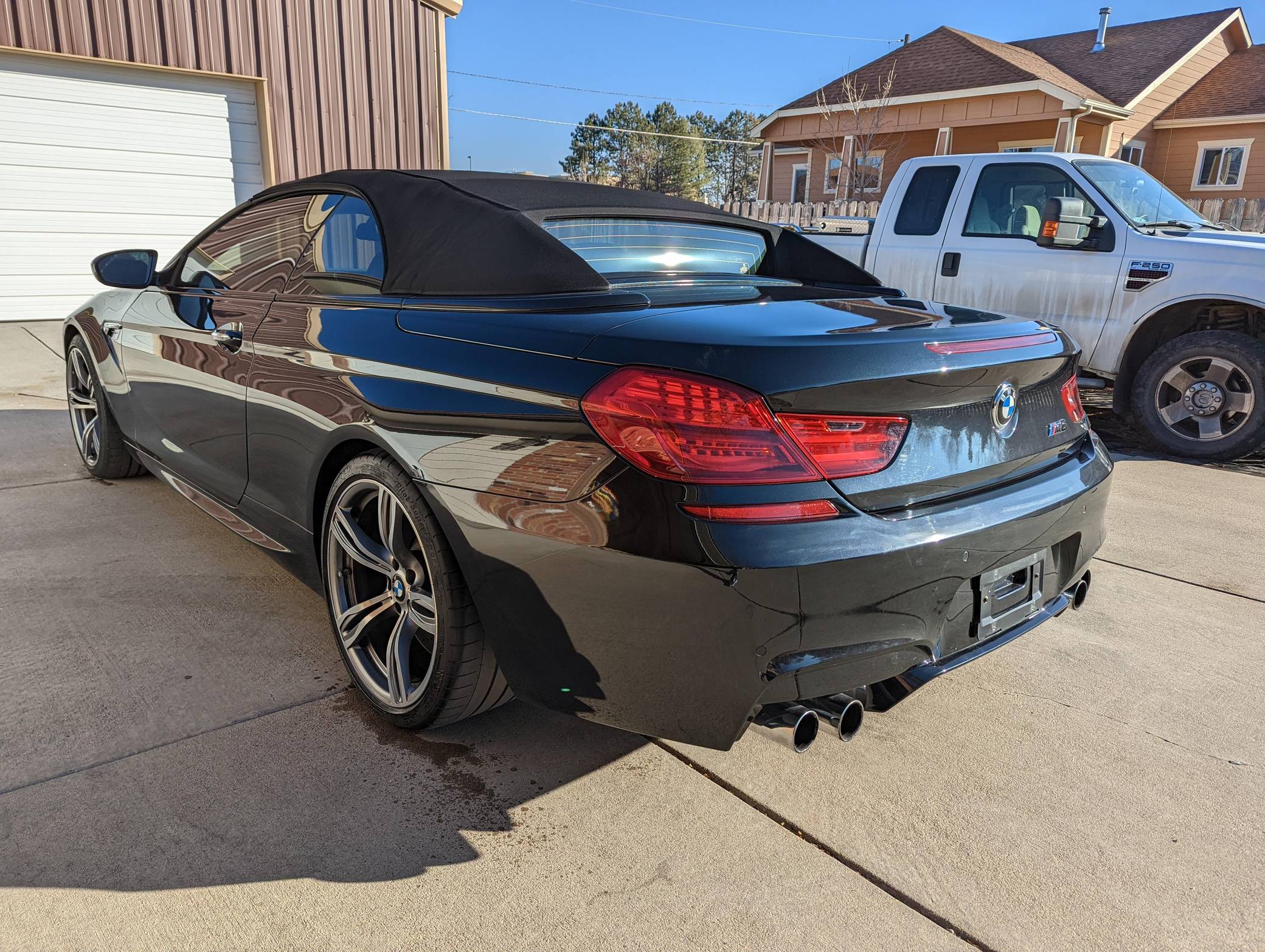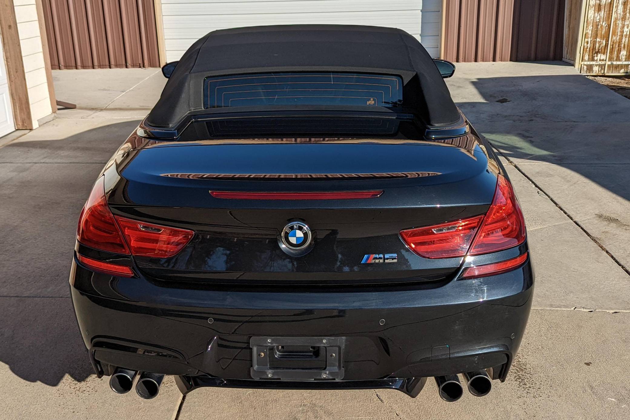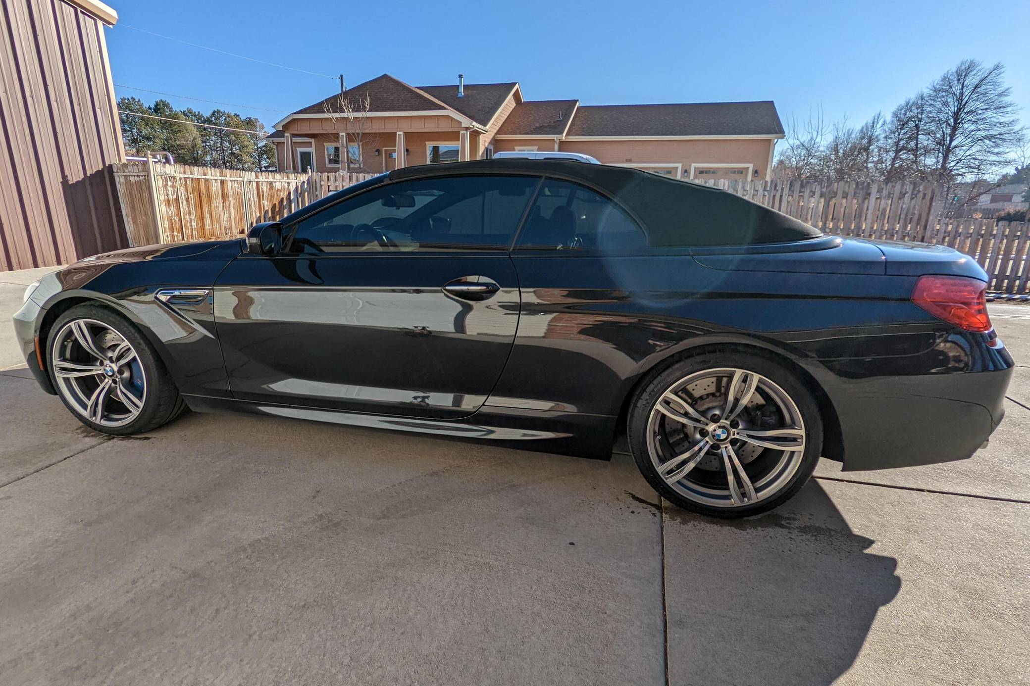 THIS. . . is a 2014 BMW M6 Convertible, finished in Black Sapphire Metallic with a black soft top and a black interior. Factory equipment includes 20-inch Style 343M wheels, the Executive Package (heated steering wheel, soft-close automatic doors, active front seats, full LED lights, head-up display, satellite radio, smartphone integration, and BMW apps), Driver Assistance Plus Package (lane departure warning, active blind spot detection, side and top view camera, speed limit info), Merino leather upholstery, carbon fiber interior trim, and Park Distance Control (PDC), among others detailed below. The sole modification reported by the seller is window tint. Parts receipts and engine pictures pictured in the photo gallery show that this M6 had the main bearings, rod bearings, and related hoses and gaskets replaced at 62,000 miles. Known as "F12" internally, the M6 convertible was produced from June 2011 until October 2017. Powered by the same turbocharged V8 as the "F10" M5, the drop-top featured plenty of comfort and tech to go along with its brutal power output, and its top is capable of being raised or lowered at speeds up to 25 mph. Power comes from a twin-turbocharged 4. 4-liter DOHC V8, which produces 560 horsepower and 500 lb-ft of torque. Output is directed to the rear wheels through a 7-speed dual-clutch automatic transmission linked to a pair of shift paddles.