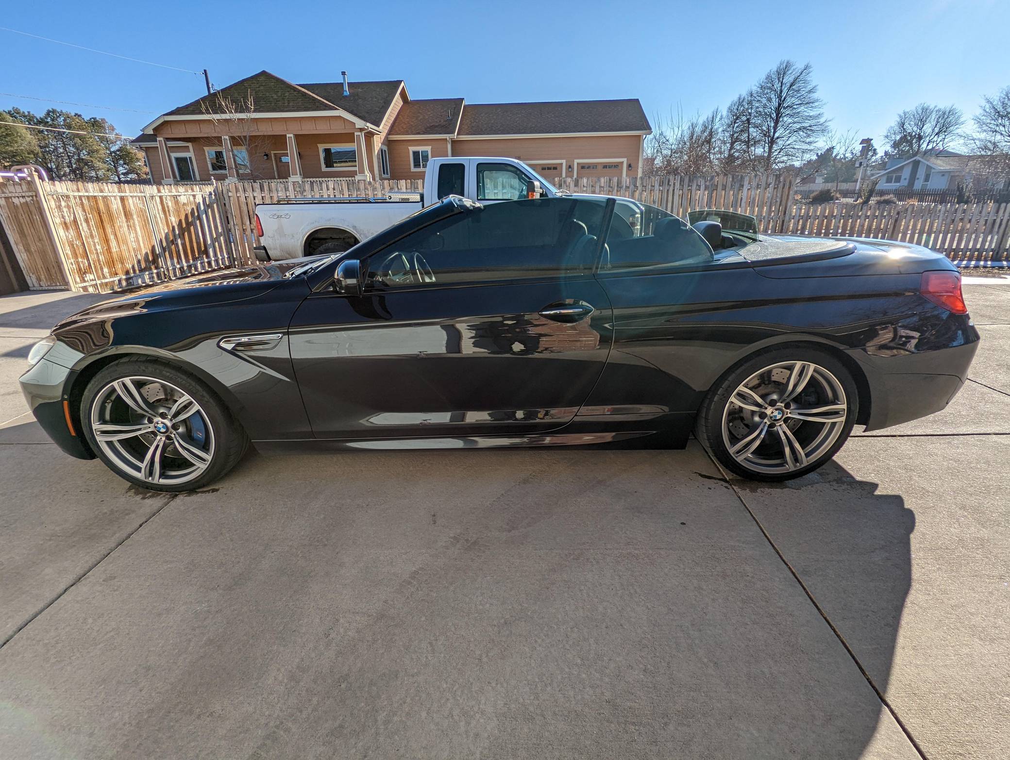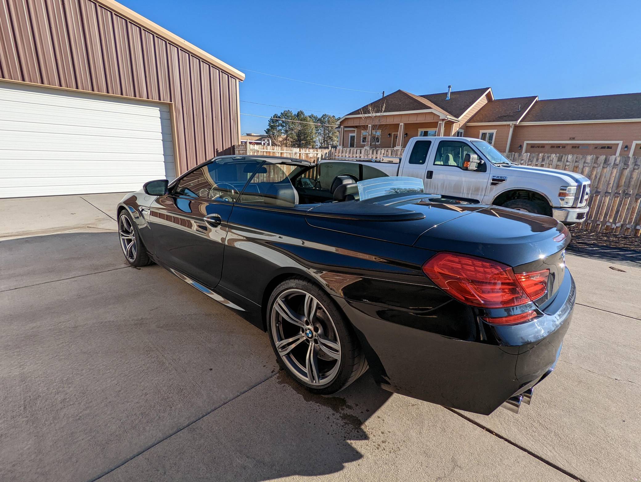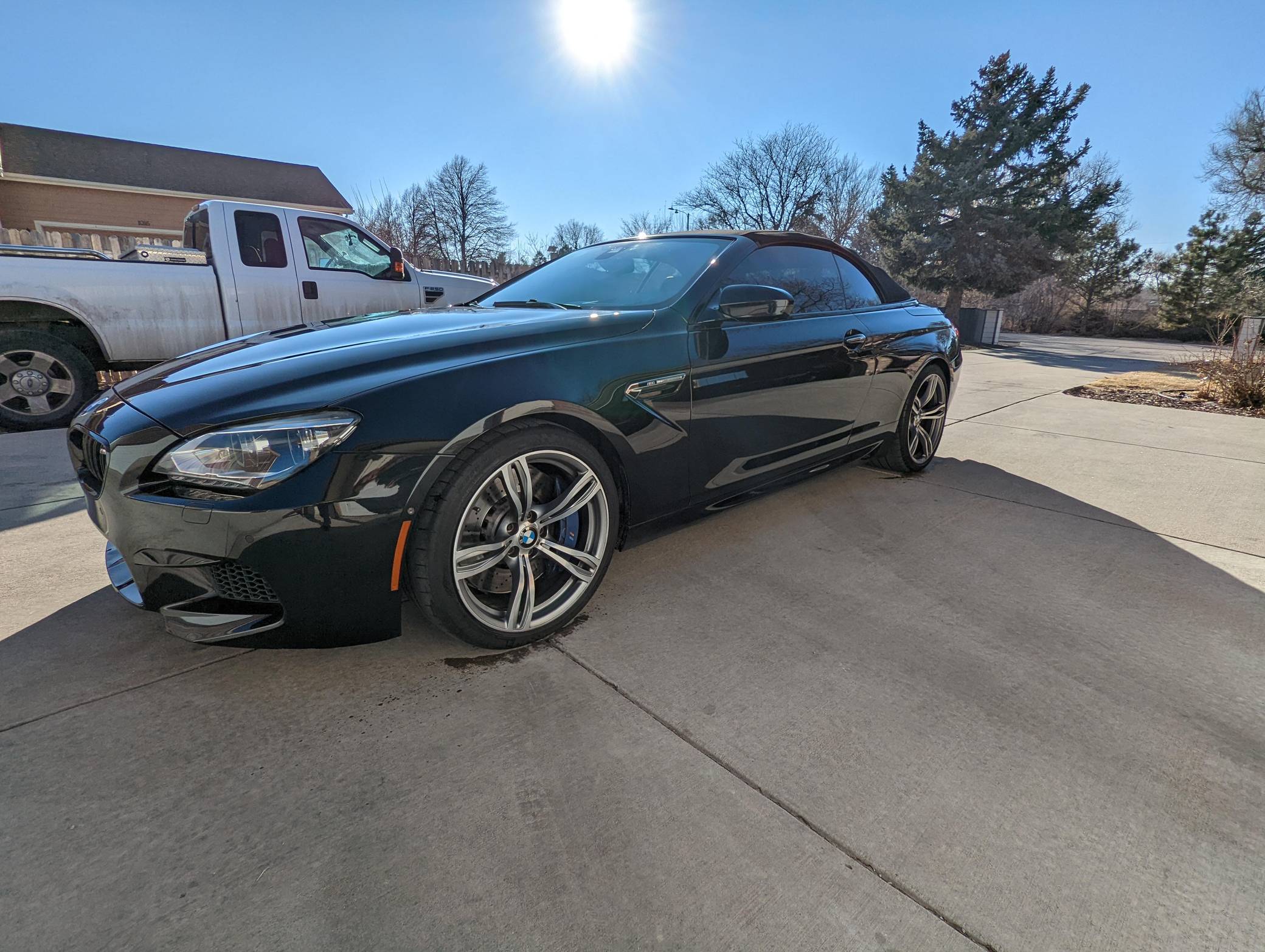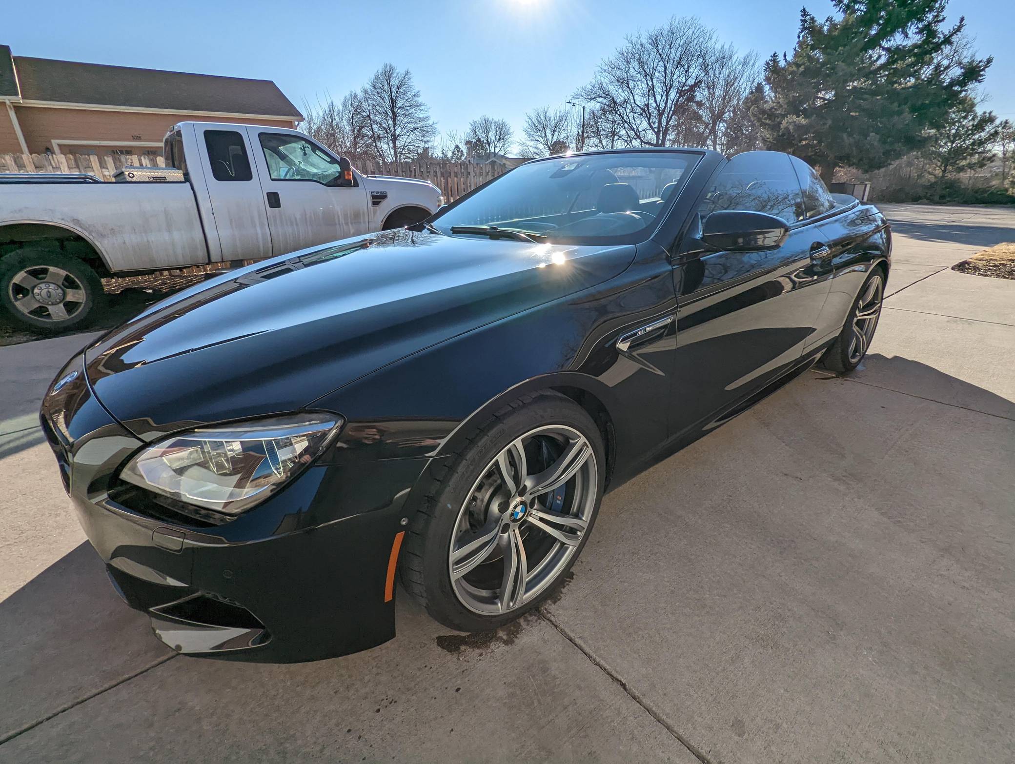 THIS. . . is a 2014 BMW M6 Convertible, finished in Black Sapphire Metallic with a black soft top and a black interior. Factory equipment includes 20-inch Style 343M wheels, the Executive Package (heated steering wheel, soft-close automatic doors, active front seats, full LED lights, head-up display, satellite radio, smartphone integration, and BMW apps), Driver Assistance Plus Package (lane departure warning, active blind spot detection, side and top view camera, speed limit info), Merino leather upholstery, carbon fiber interior trim, and Park Distance Control (PDC), among others detailed below. The sole modification reported by the seller is window tint. Parts receipts and engine pictures pictured in the photo gallery show that this M6 had the main bearings, rod bearings, and related hoses and gaskets replaced at 62,000 miles. Known as "F12" internally, the M6 convertible was produced from June 2011 until October 2017. Powered by the same turbocharged V8 as the "F10" M5, the drop-top featured plenty of comfort and tech to go along with its brutal power output, and its top is capable of being raised or lowered at speeds up to 25 mph. Power comes from a twin-turbocharged 4. 4-liter DOHC V8, which produces 560 horsepower and 500 lb-ft of torque. Output is directed to the rear wheels through a 7-speed dual-clutch automatic transmission linked to a pair of shift paddles.