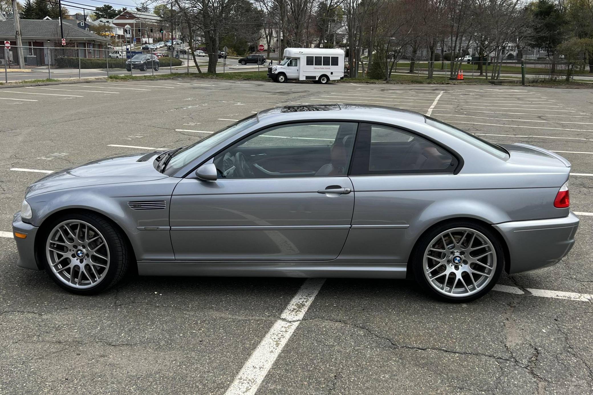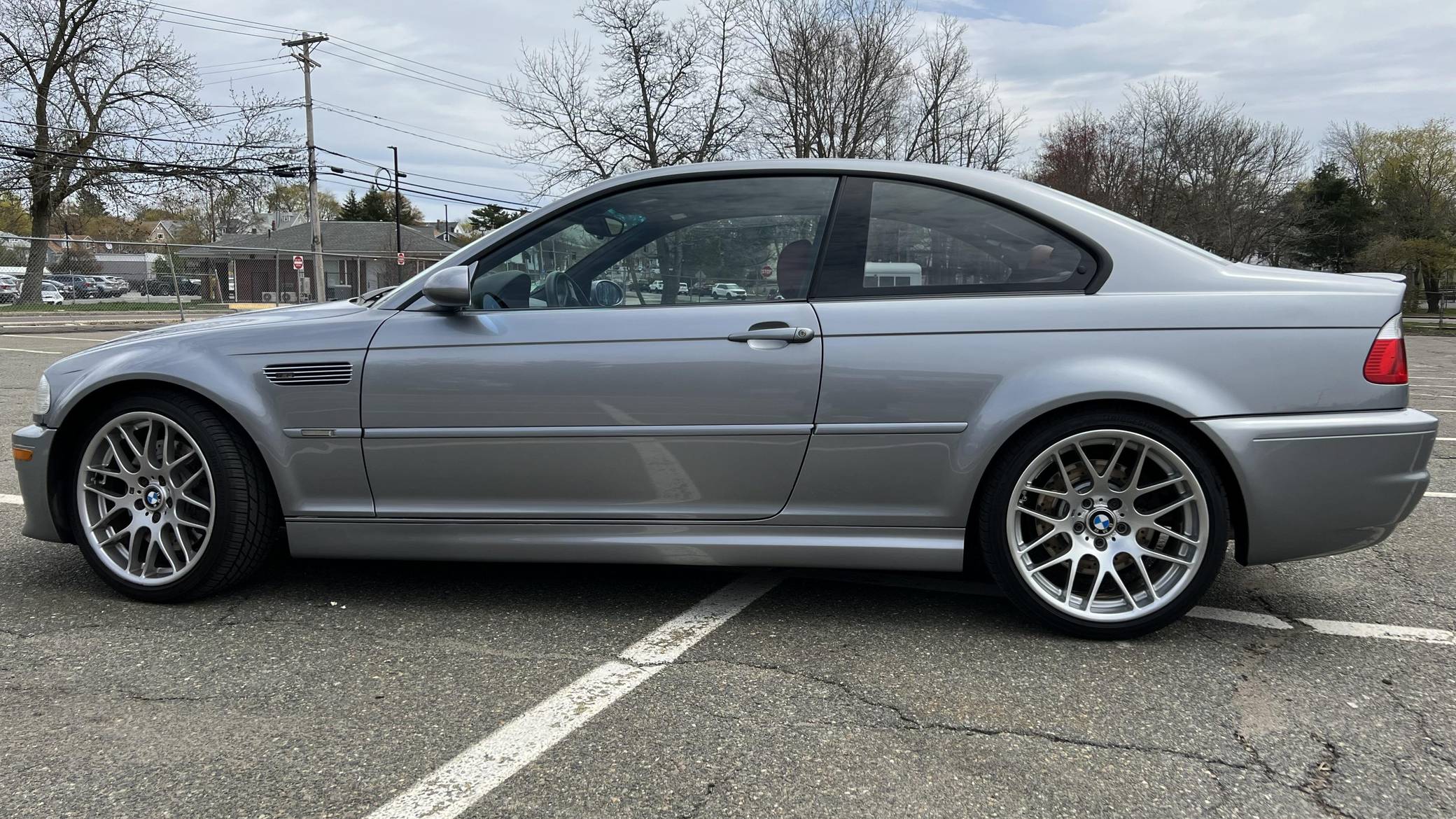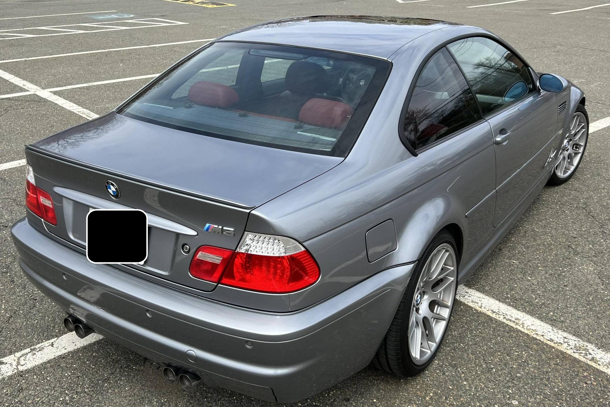 2006 BMW M3 Coupe, finished in Silver Grey Metallic with an Imola Red and black interior. According to the build sheet shown in the photo gallery, equipment on this M3 includes the Competition Package, fog lights, a sunroof, Nappa leather upholstery, heated and power-adjustable front seats, a Harman/Kardon sound system, and more detailed below. The seller reports no modifications. Service documentation included in the photo gallery shows that this M3 received a major service in May 2021, at 137,862 miles, which included a full rebuild of the VANOS system, installation of anti-rattle plates, new cam gear bolts, a new thermostat, a valve adjustment, a cam timing adjustment, and more detailed below. The third-generation M3 was the final one to utilize a naturally aspirated straight-6 engine and was sold from 2000 to 2006. Power comes from a 3. 2-liter "S54" inline-6, rated at 333 horsepower and 262 lb-ft of torque. Power is sent to the rear wheels via a 6-speed automatic transmission.