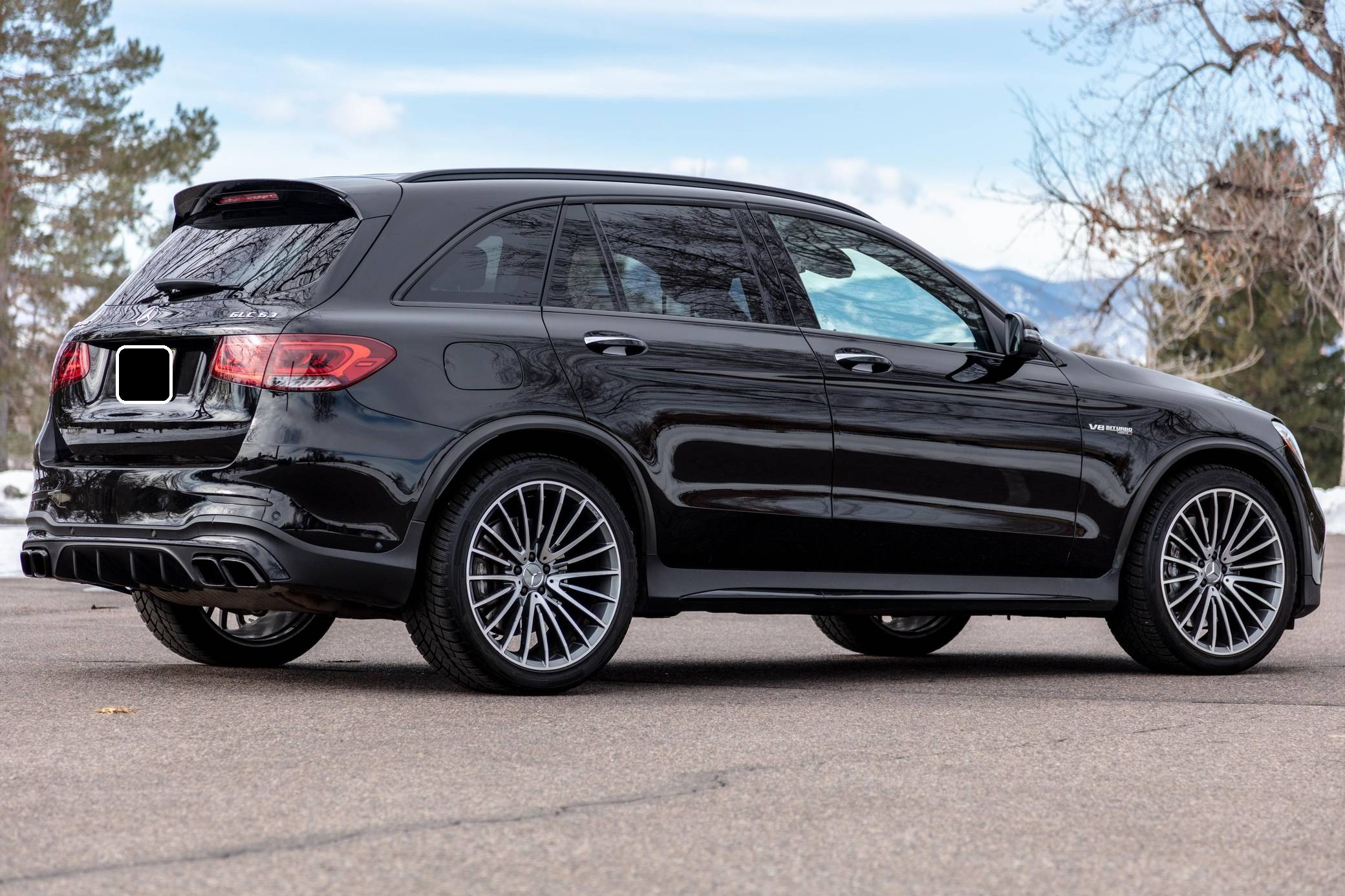 THIS. . . is a 2020 Mercedes-AMG GLC 63, finished in Obsidian Black Metallic with a black interior. Highly optioned, it's equipped with the AMG Night, Exterior Lighting, and Driver Assistance packages, an AMG Sport suspension system, an electronic limited-slip differential, carbon fiber interior trim, heated, ventilated, and power-adjustable front seats, heated rear seats, a wireless device charger, a 10. 25-inch display for the MBUX infotainment system, and a Burmester surround sound system, among other features. Modifications reported by the seller are limited to tinted rear windows, a Stealth Hitches trailer hitch, and a gray finish on the factory 21-inch wheels. Mercedes-AMG created the GLC 63 by combining the C63's V8 with the E63's transmission and performance-tuned all-wheel drive system. Launched for 2018, the GLC 63 was available as an SUV and as a four-door fastback labeled Coupe by the manufacturer. Production ended in 2023. Power comes from a 4. 0-liter twin-turbocharged V8, rated at 469 horsepower and 479 lb-ft of torque. It spins the four wheels via a 9-speed automatic transmission.